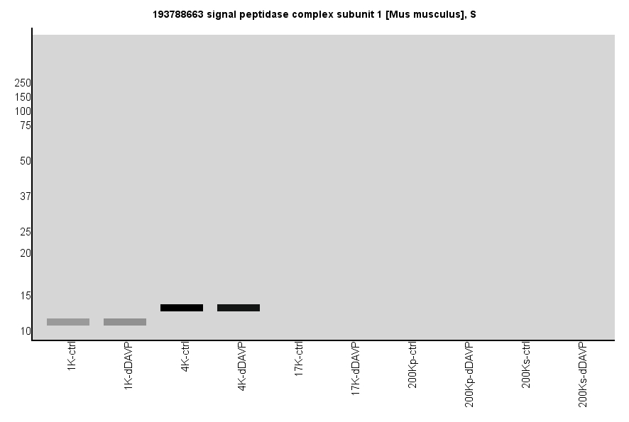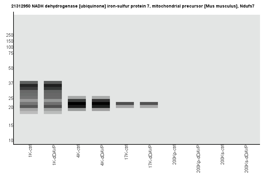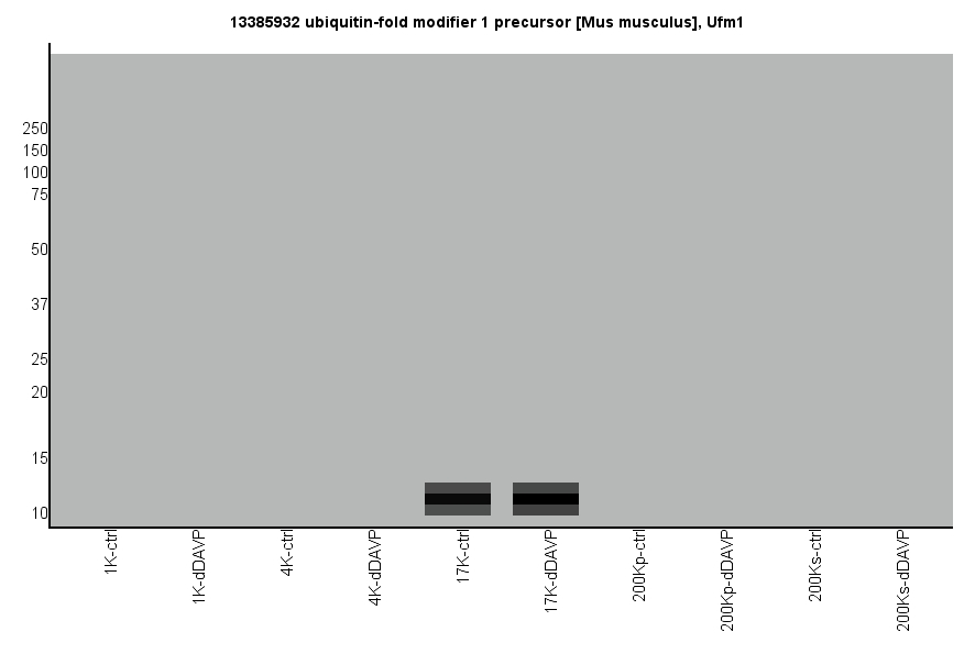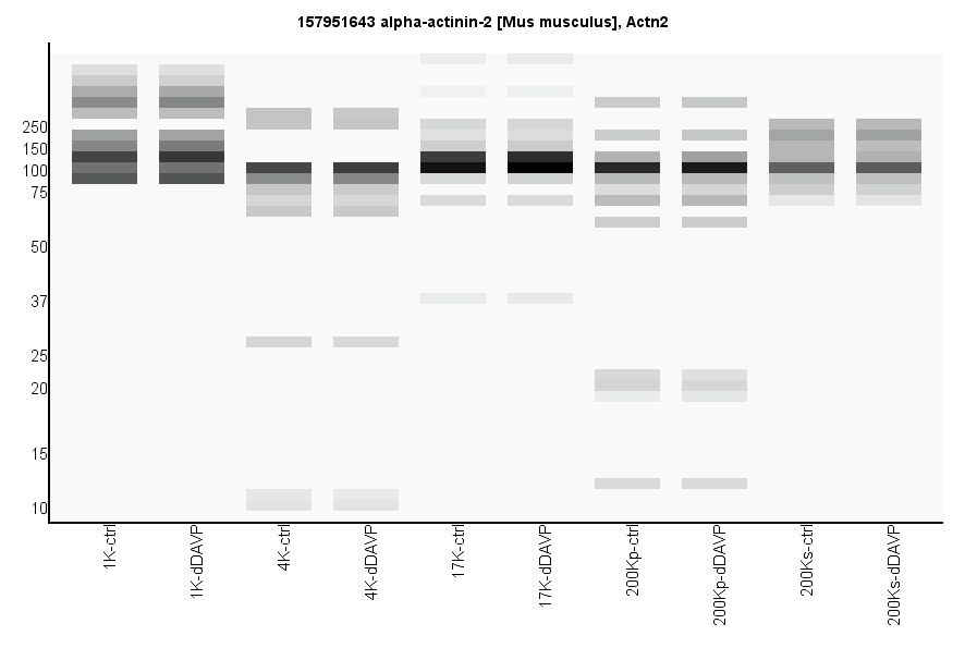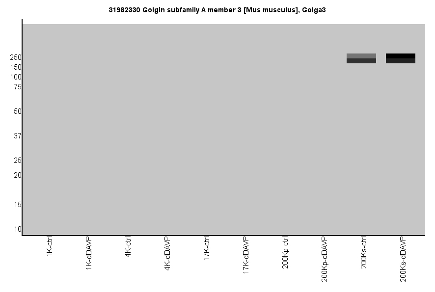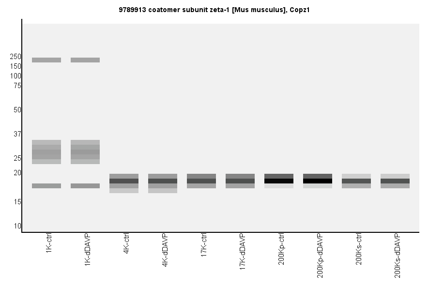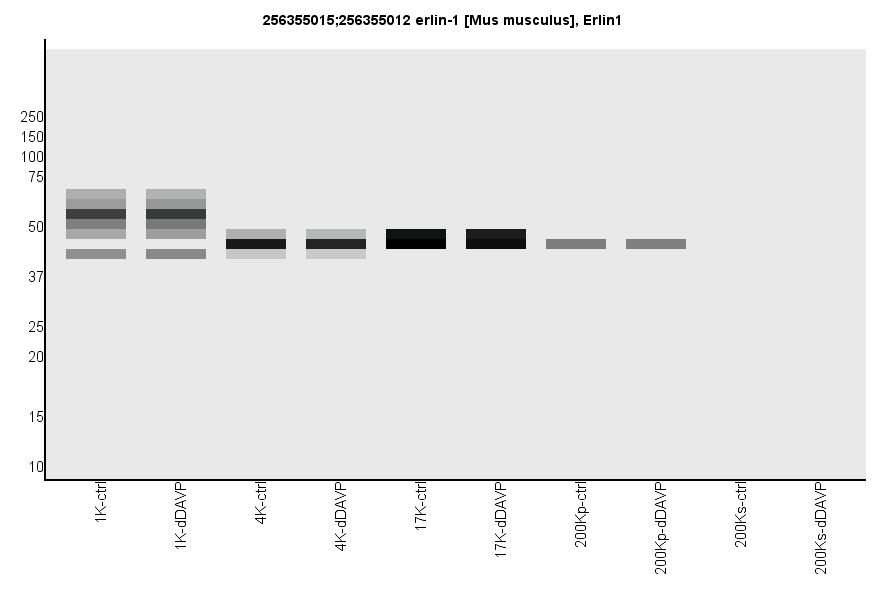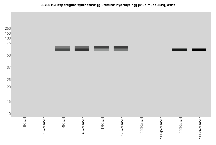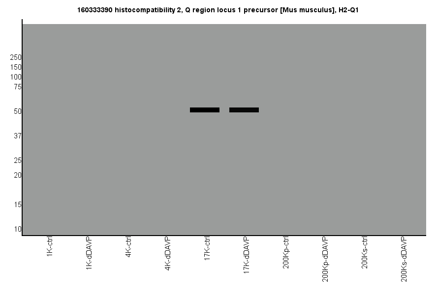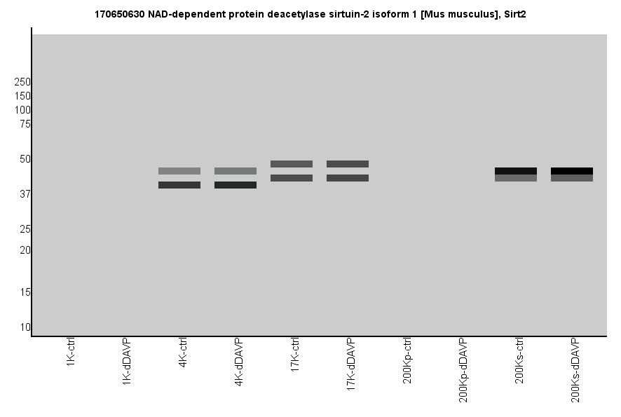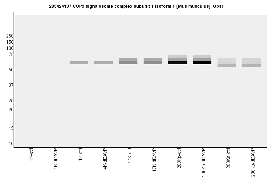 The virtual western blot images show data normalized using a logarithmic conversion scale to map peptide intensities to gray-scale levels. Using this conversion method, low-abundance peptides are generally visible in the blot images. Switch back to the default linear conversion scale database page.