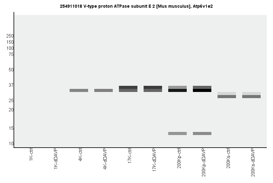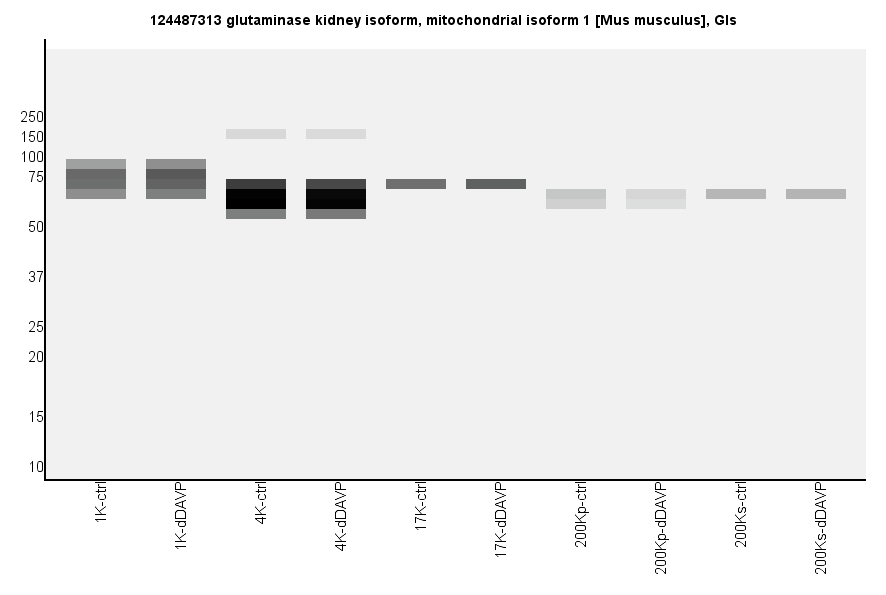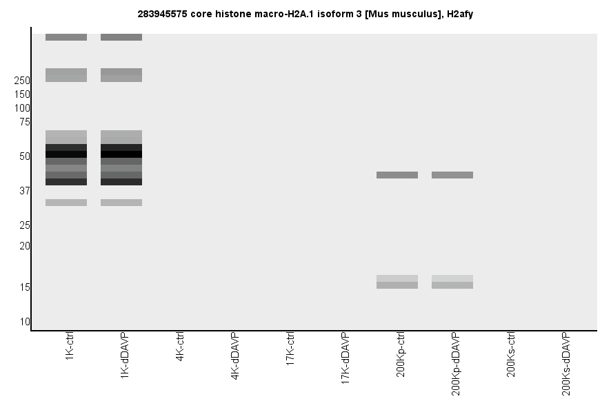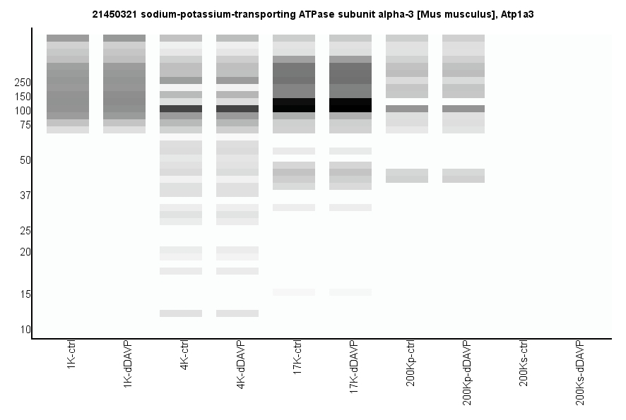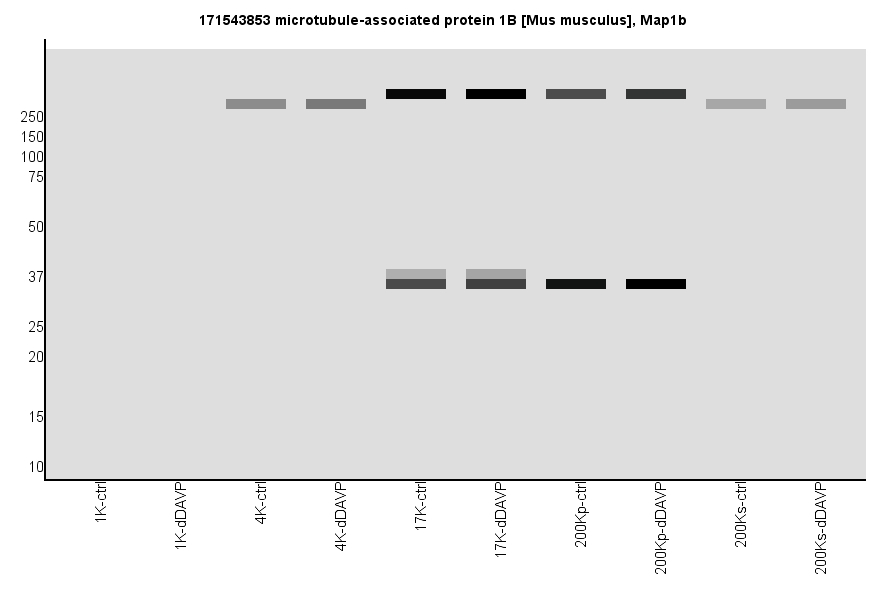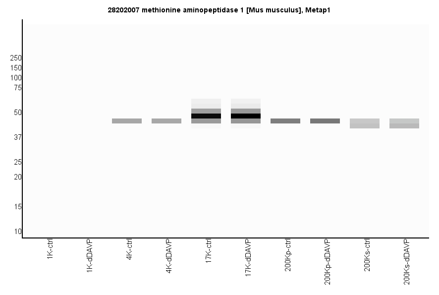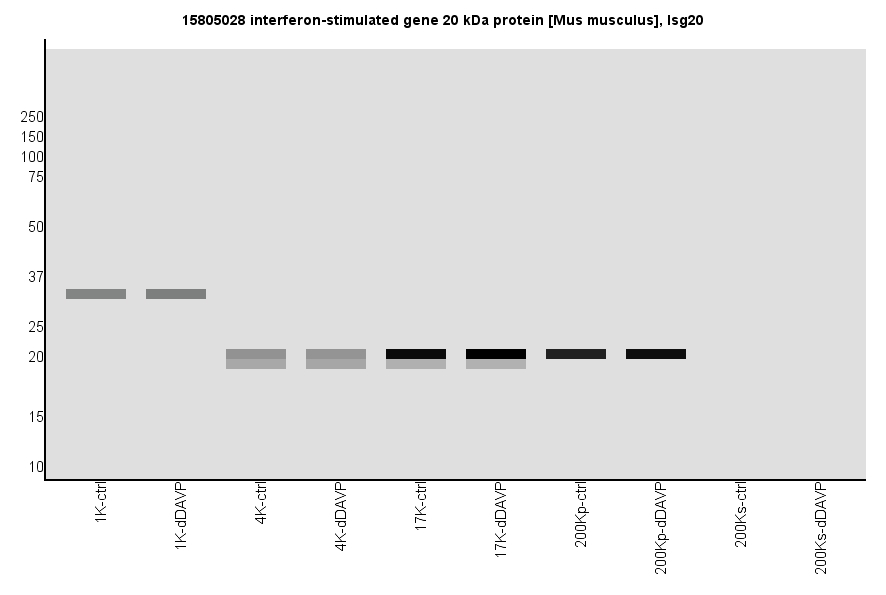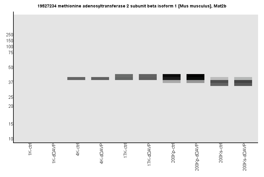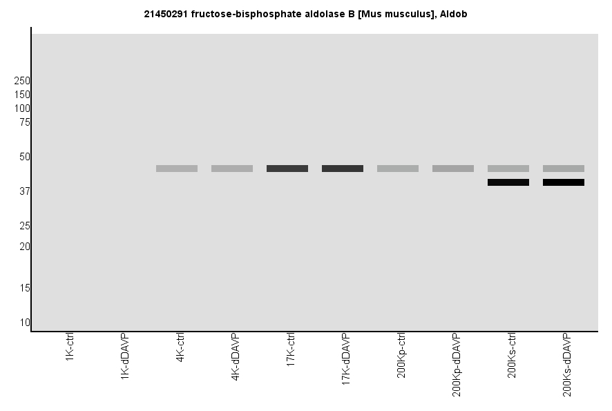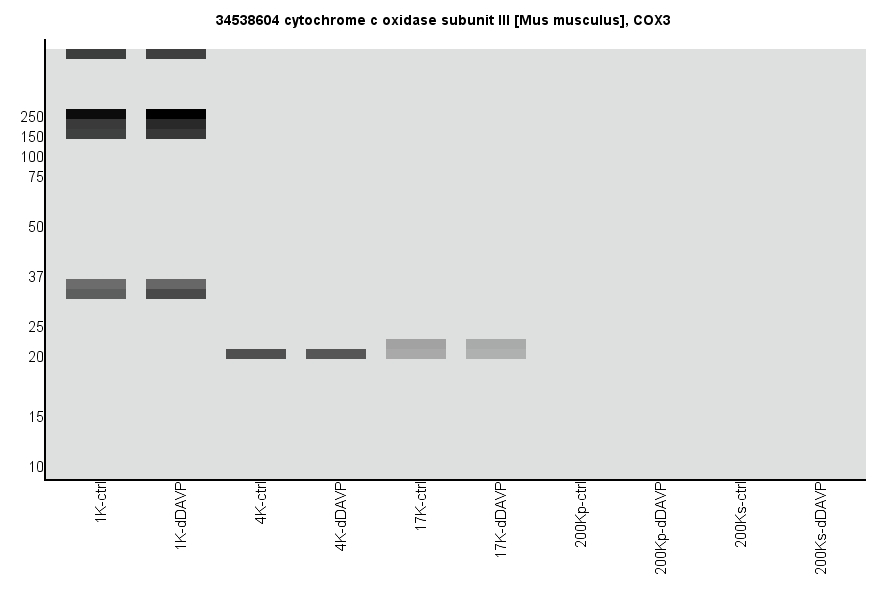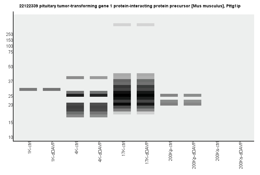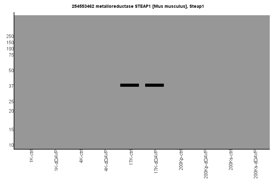 The virtual western blot images show data normalized using a logarithmic conversion scale to map peptide intensities to gray-scale levels. Using this conversion method, low-abundance peptides are generally visible in the blot images. Switch back to the default linear conversion scale database page.