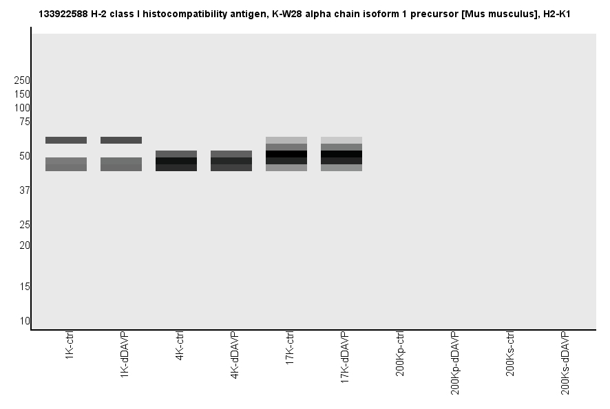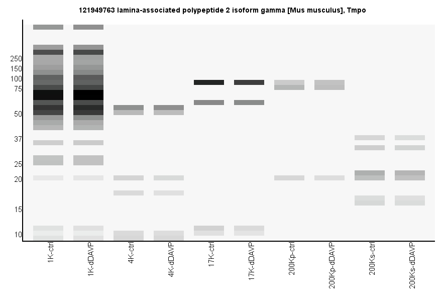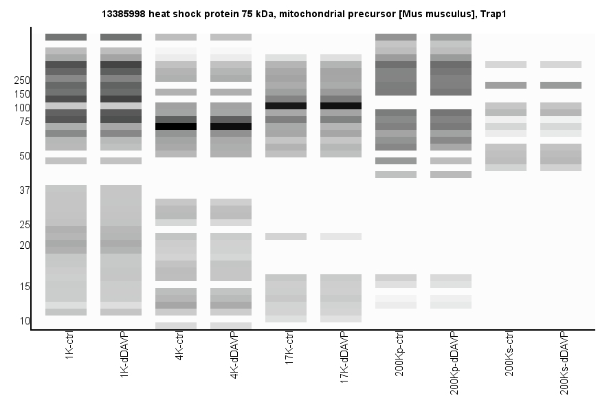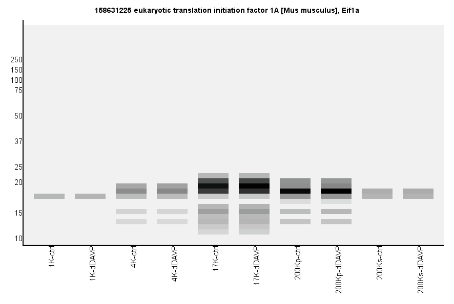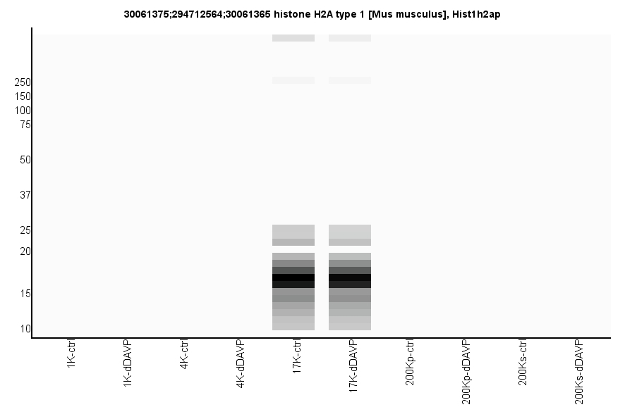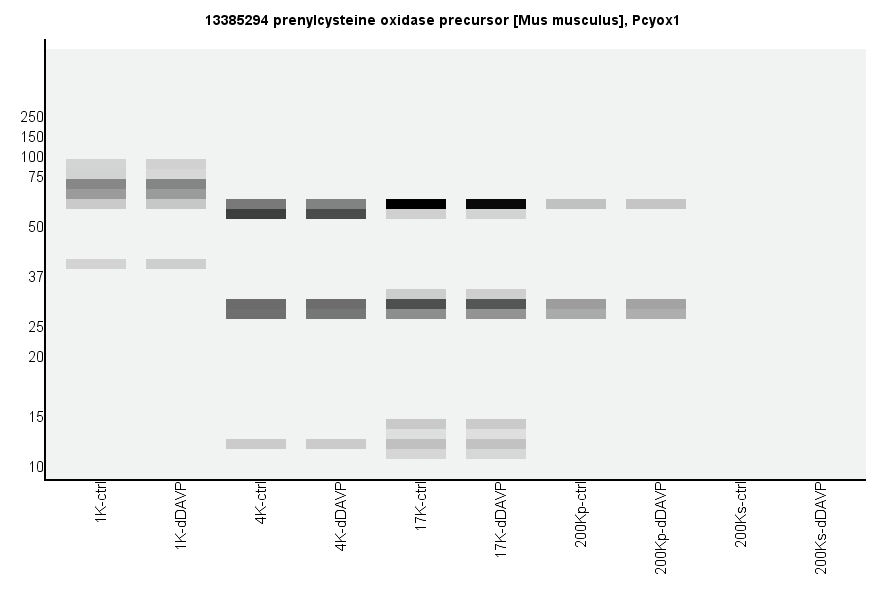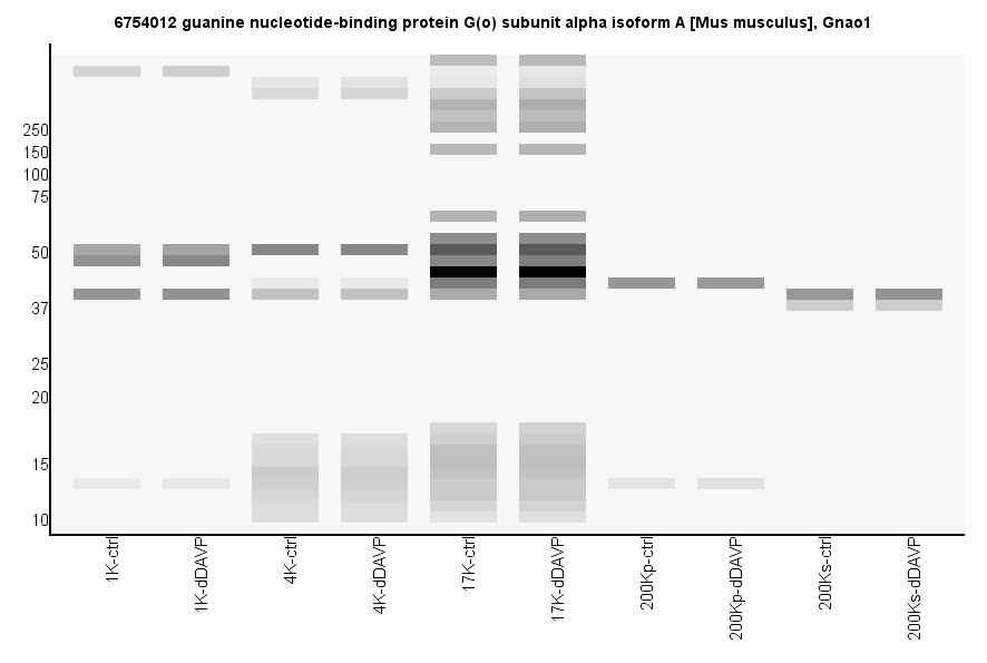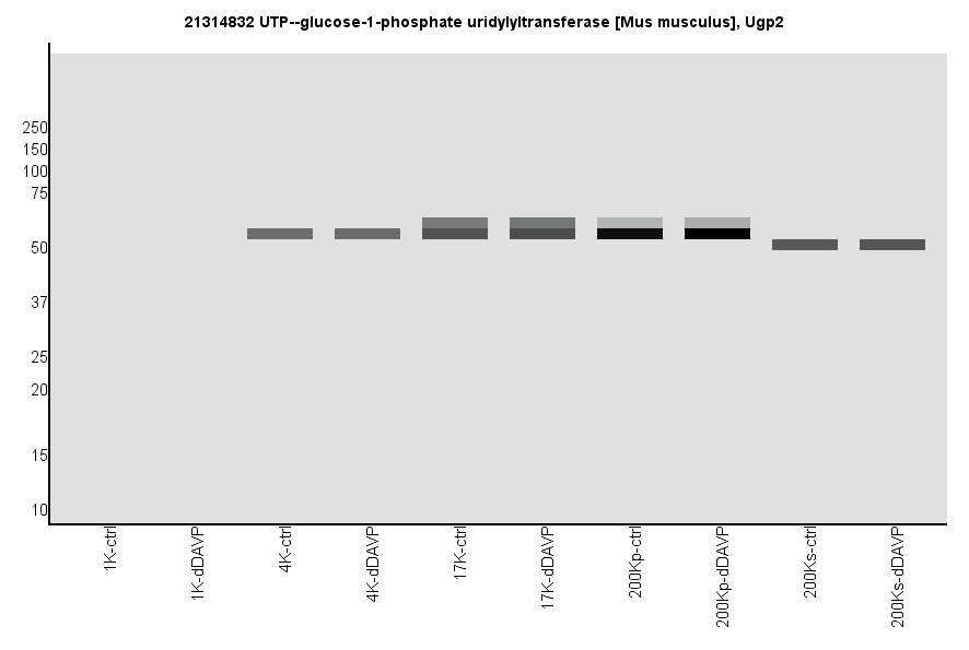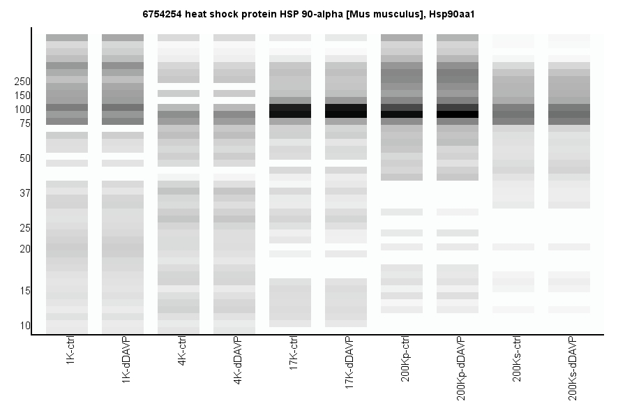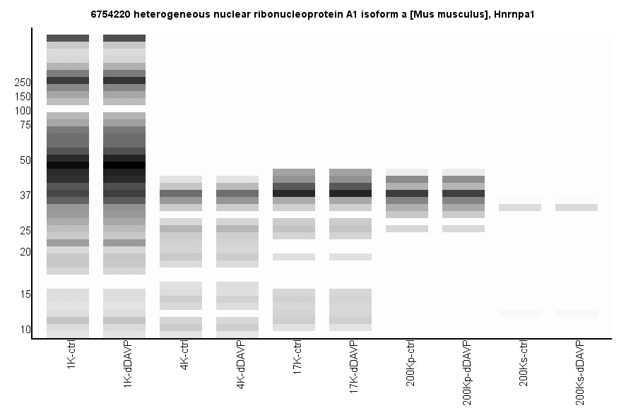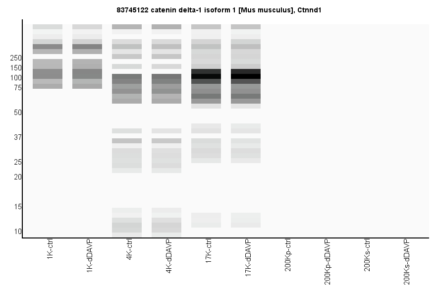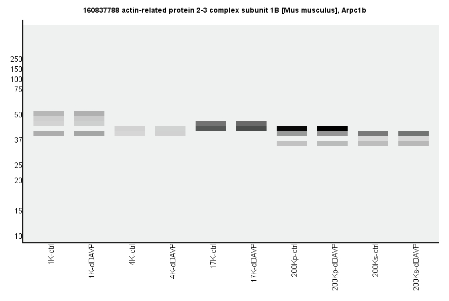 The virtual western blot images show data normalized using a logarithmic conversion scale to map peptide intensities to gray-scale levels. Using this conversion method, low-abundance peptides are generally visible in the blot images. Switch back to the default linear conversion scale database page.