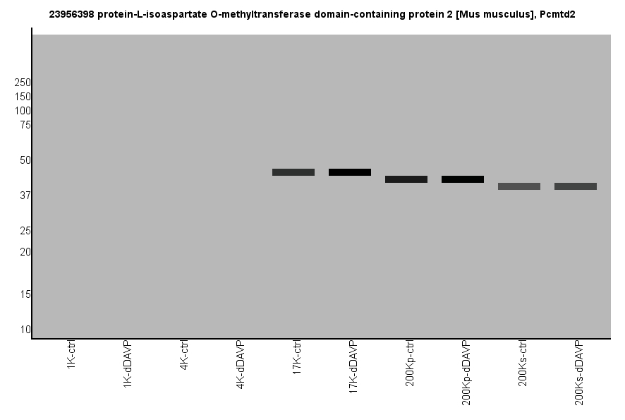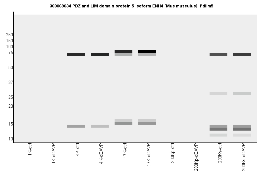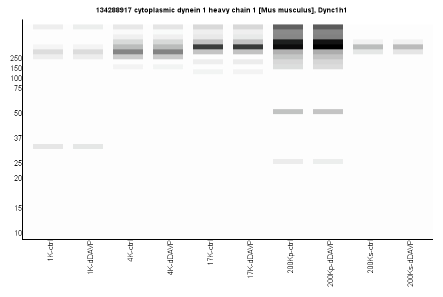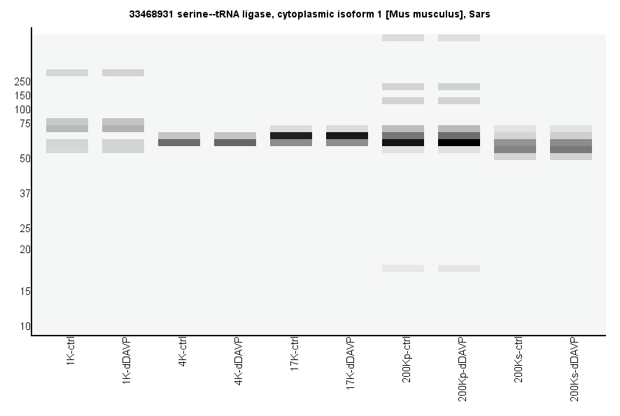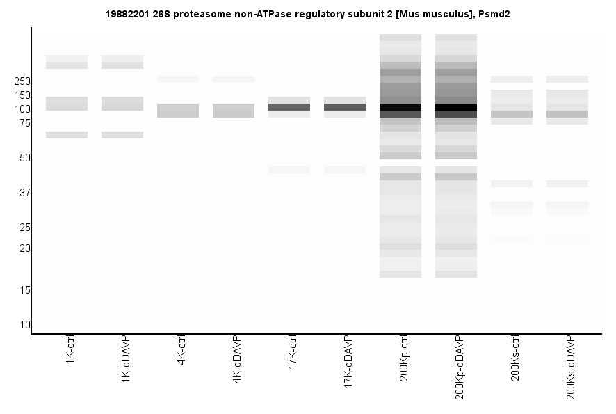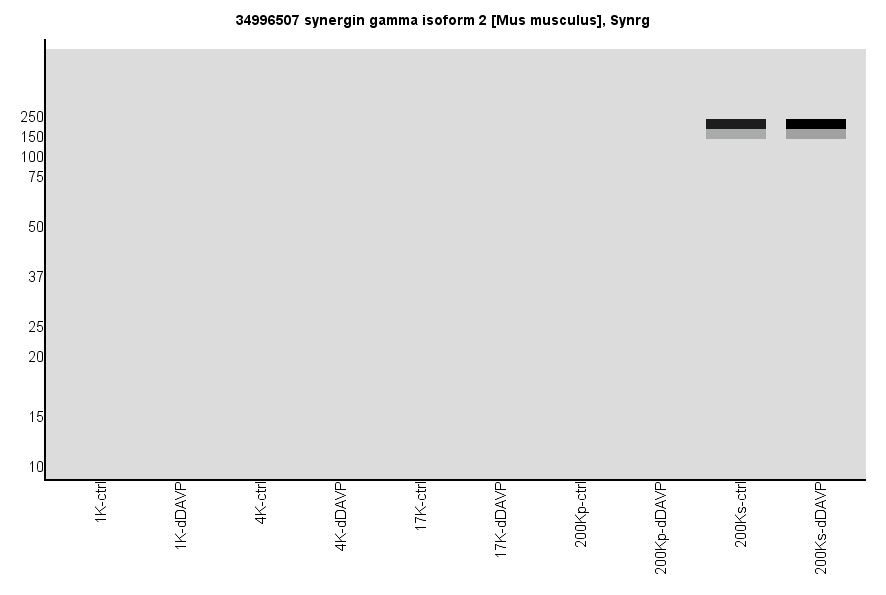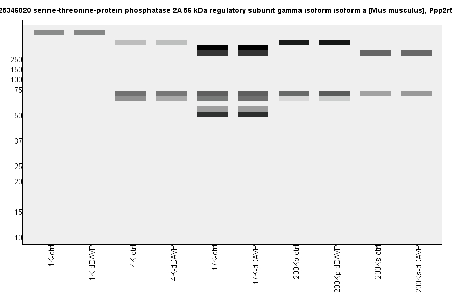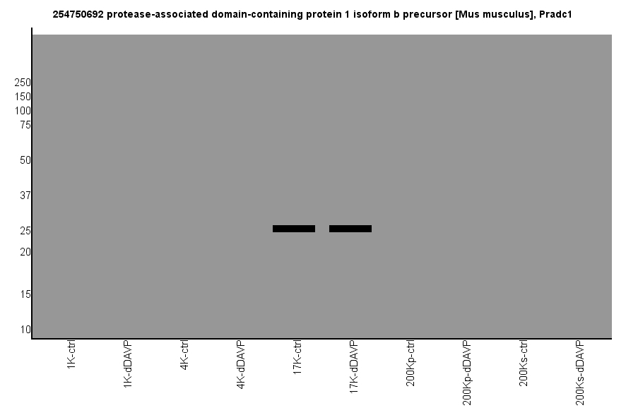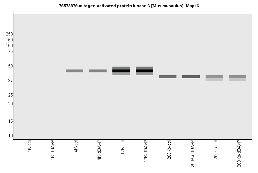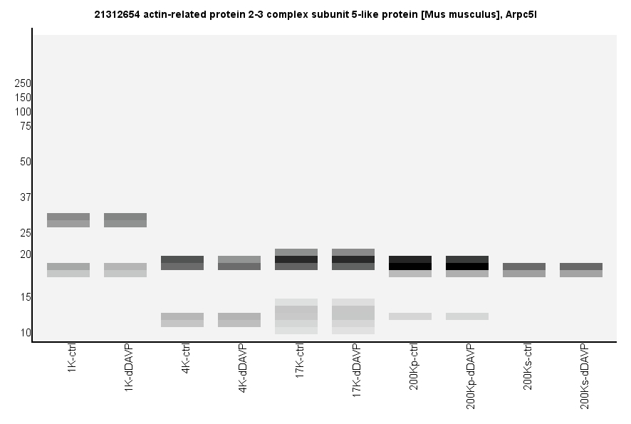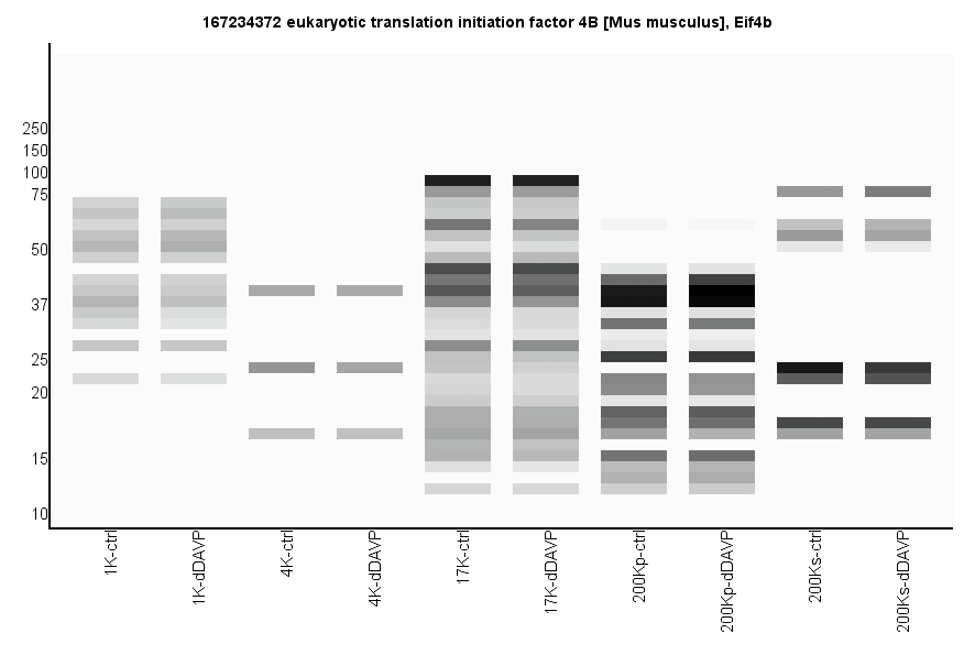 The virtual western blot images show data normalized using a logarithmic conversion scale to map peptide intensities to gray-scale levels. Using this conversion method, low-abundance peptides are generally visible in the blot images. Switch back to the default linear conversion scale database page.