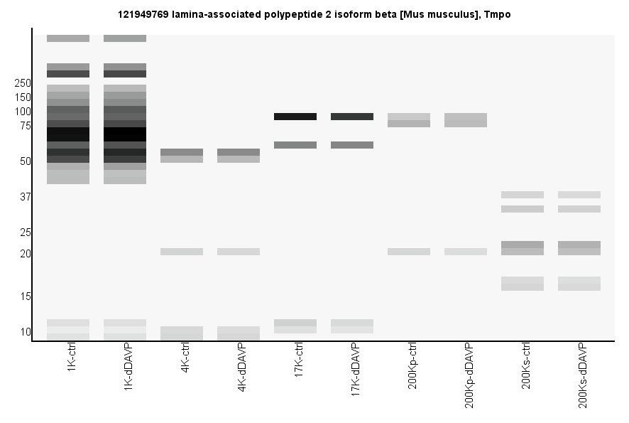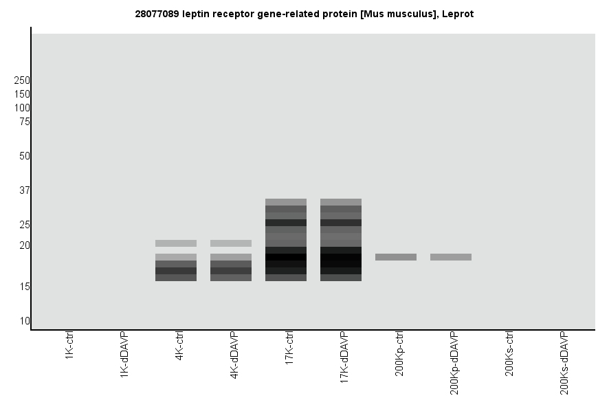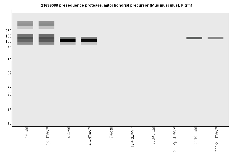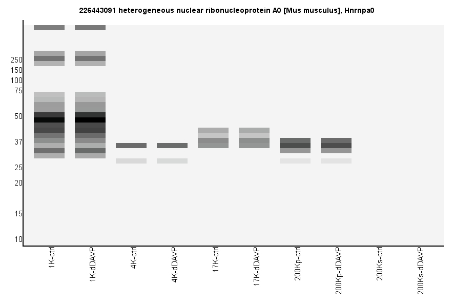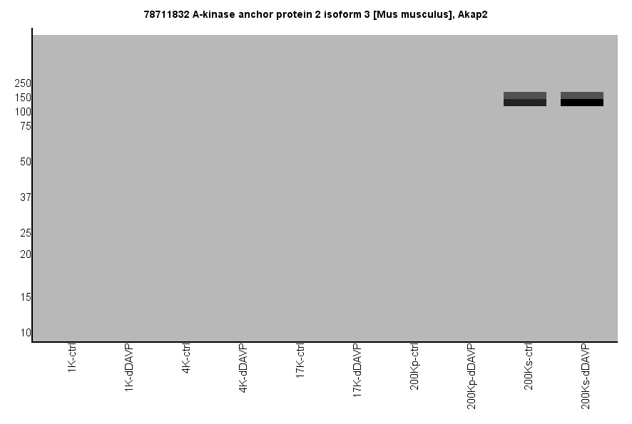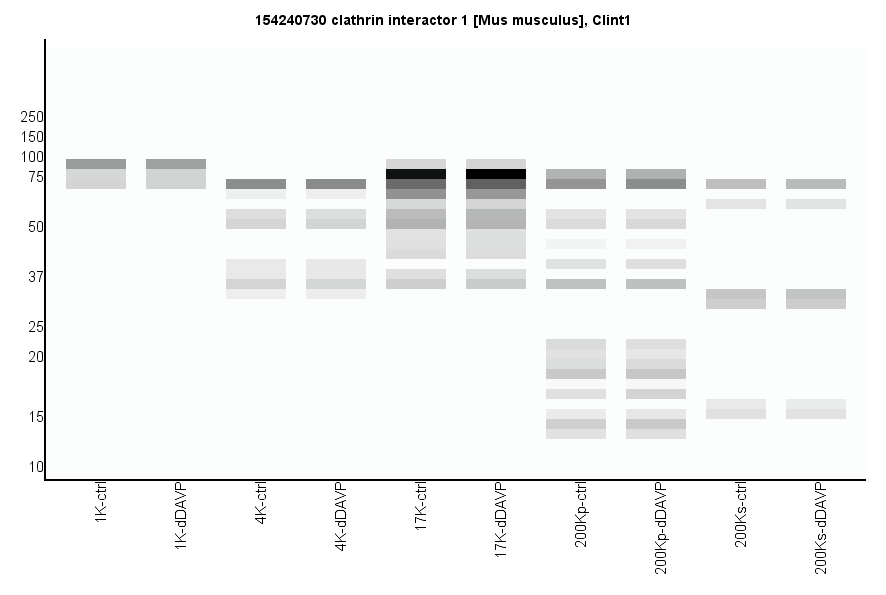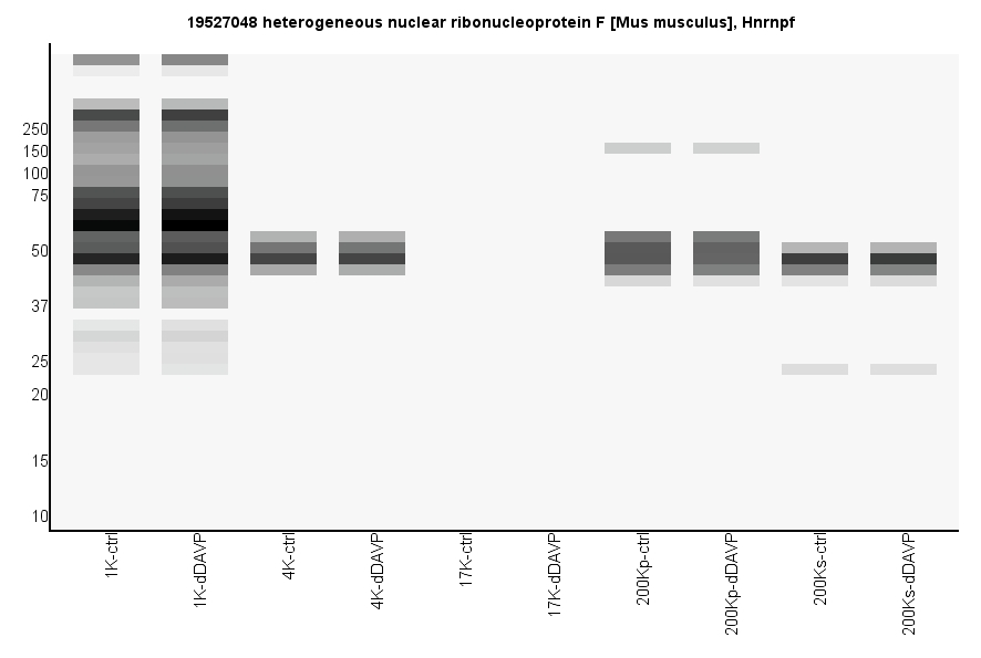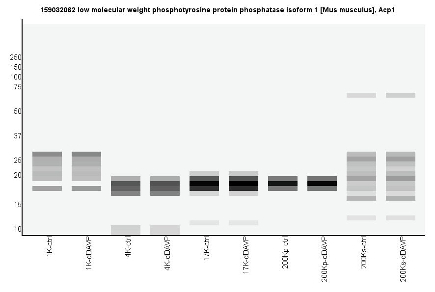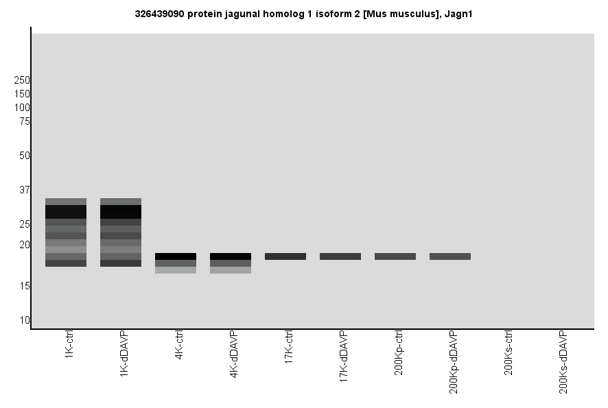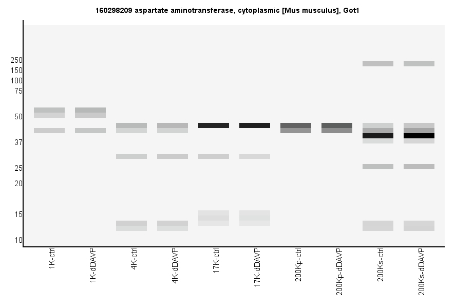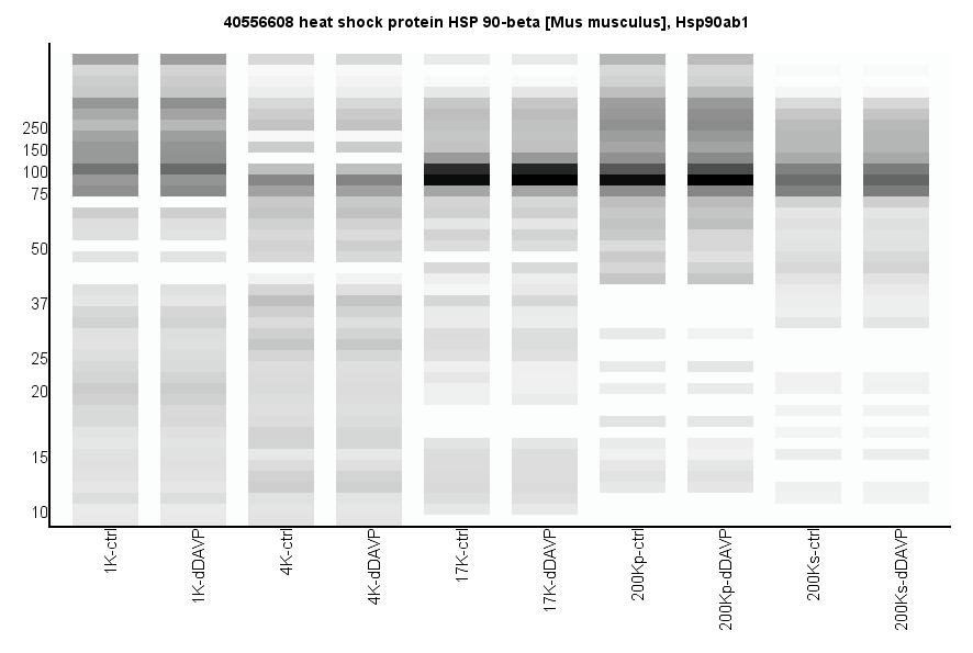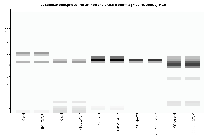 The virtual western blot images show data normalized using a logarithmic conversion scale to map peptide intensities to gray-scale levels. Using this conversion method, low-abundance peptides are generally visible in the blot images. Switch back to the default linear conversion scale database page.
