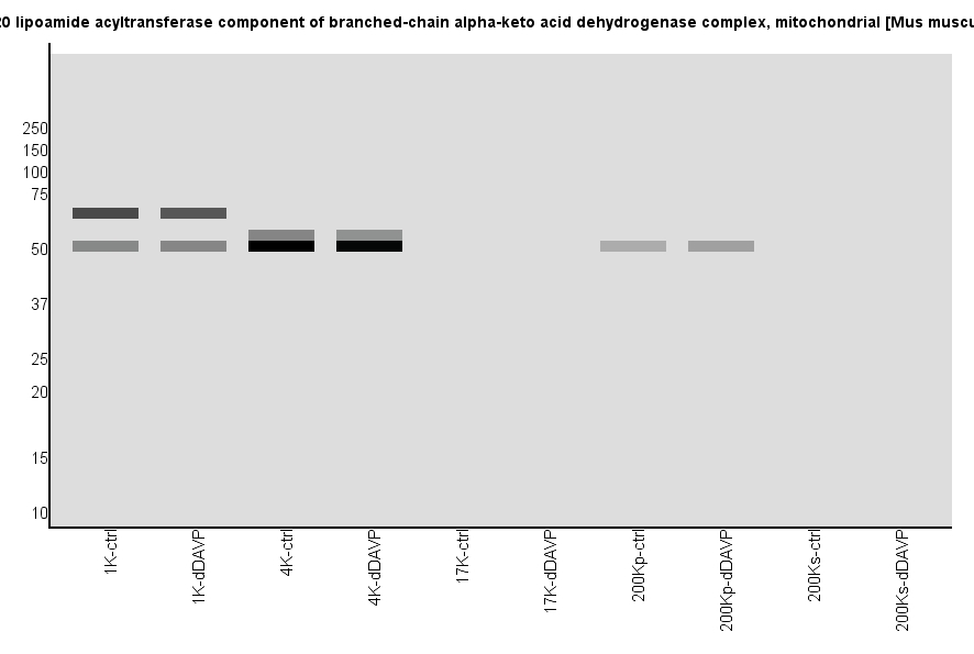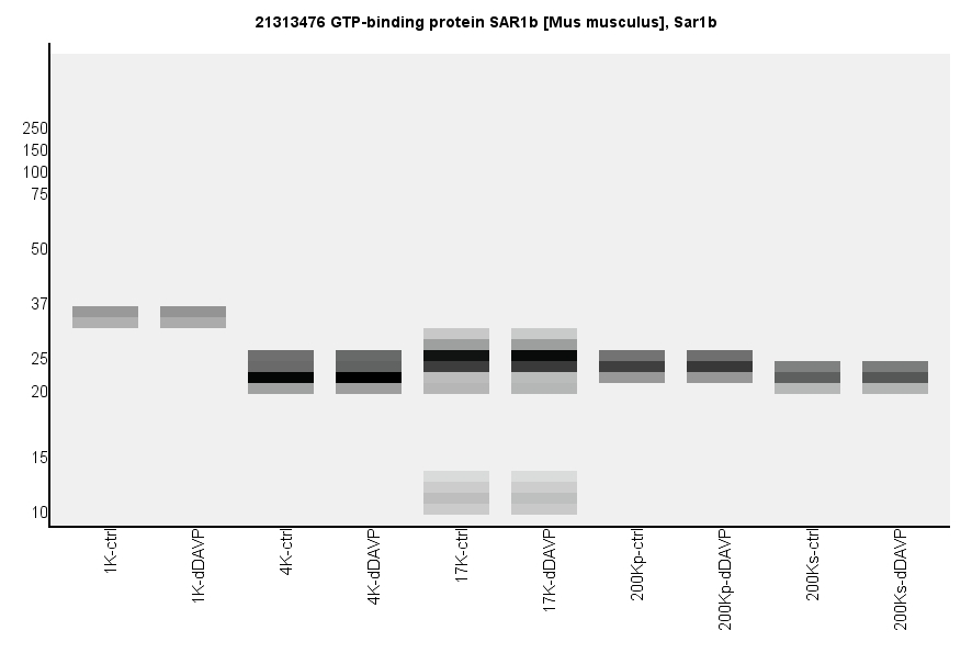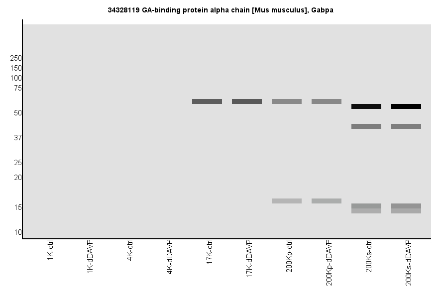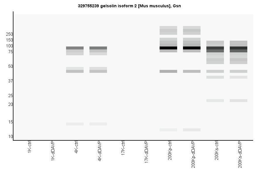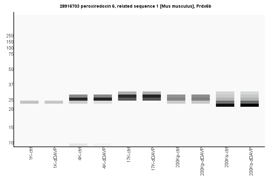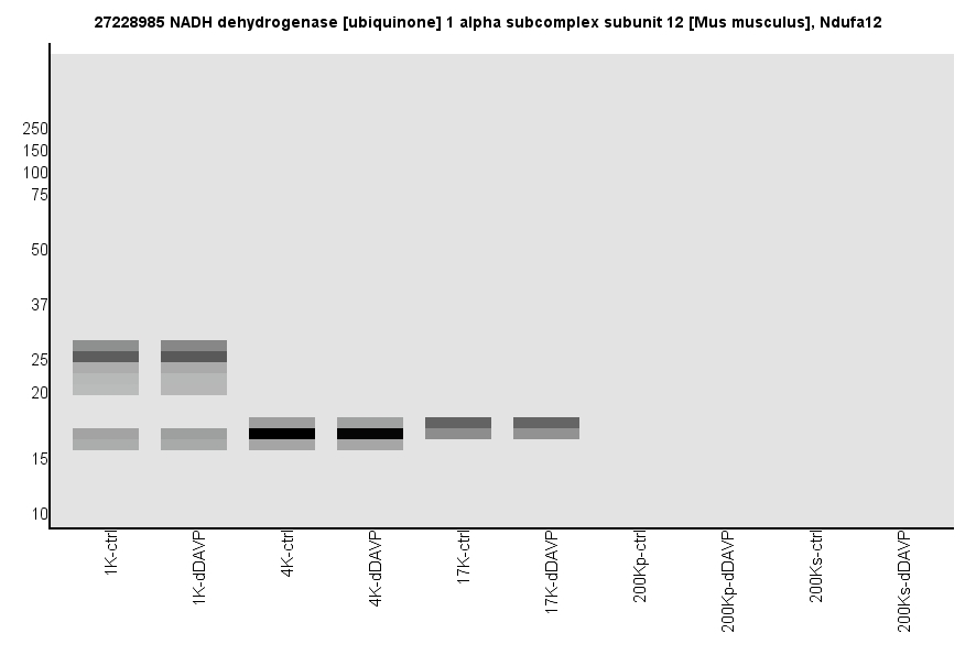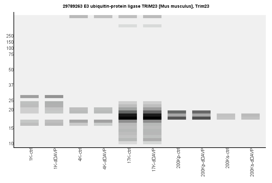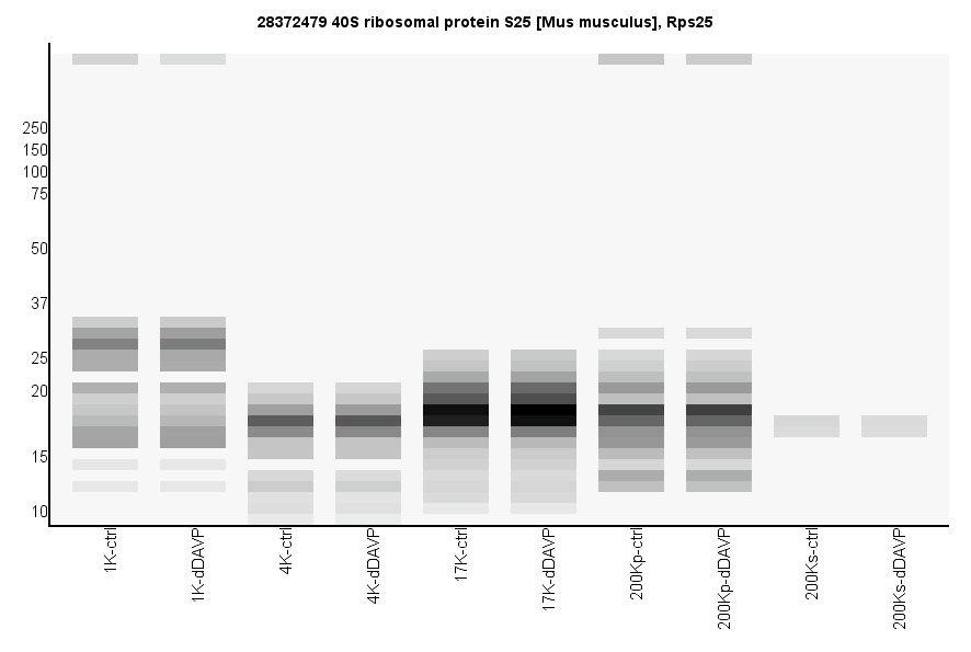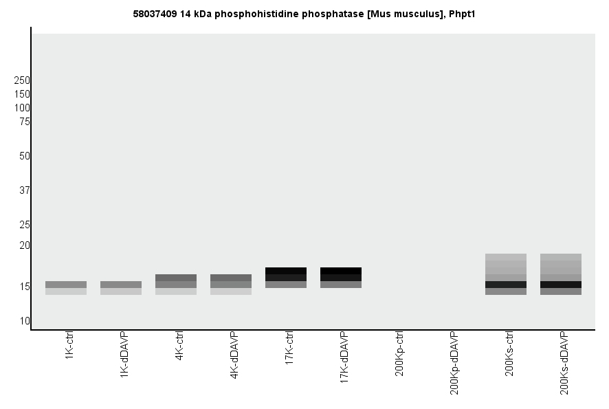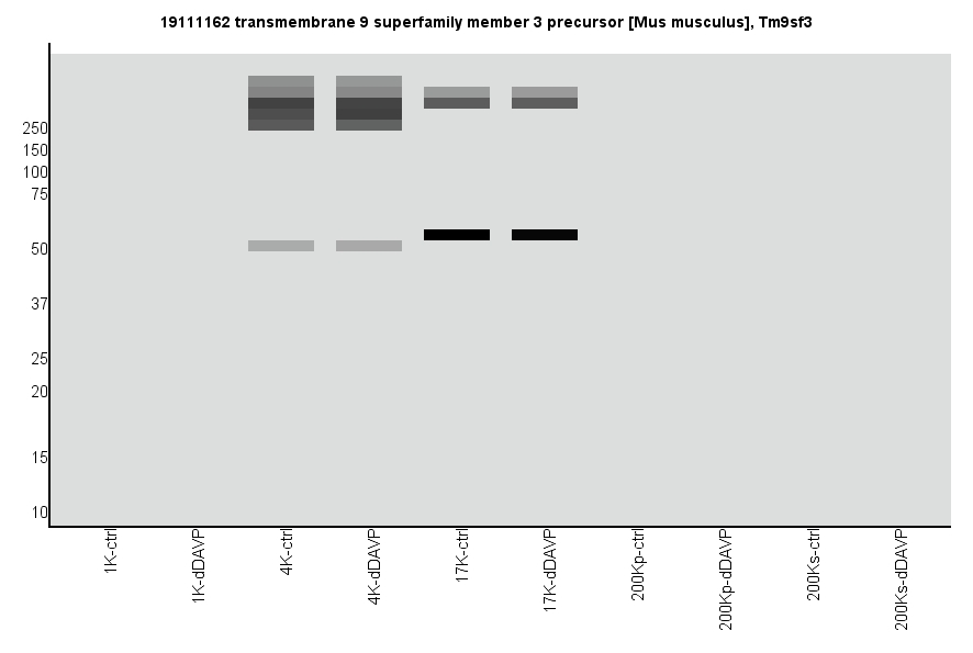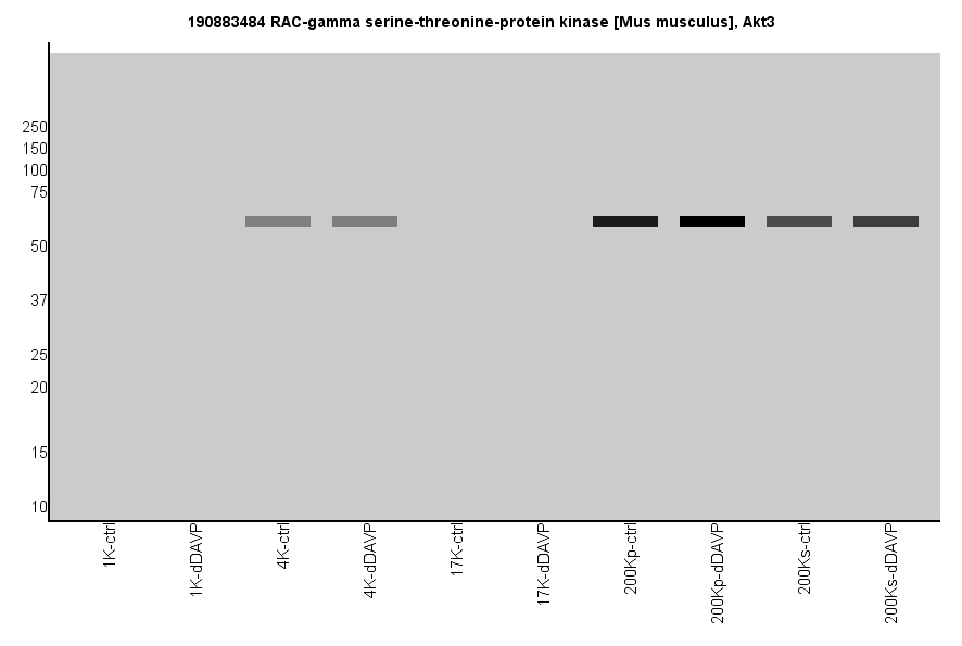 The virtual western blot images show data normalized using a logarithmic conversion scale to map peptide intensities to gray-scale levels. Using this conversion method, low-abundance peptides are generally visible in the blot images. Switch back to the default linear conversion scale database page.