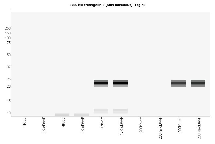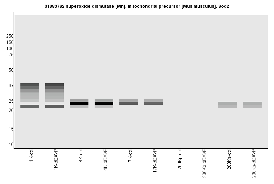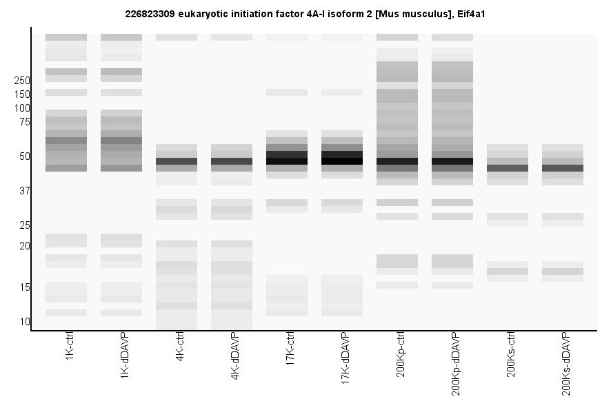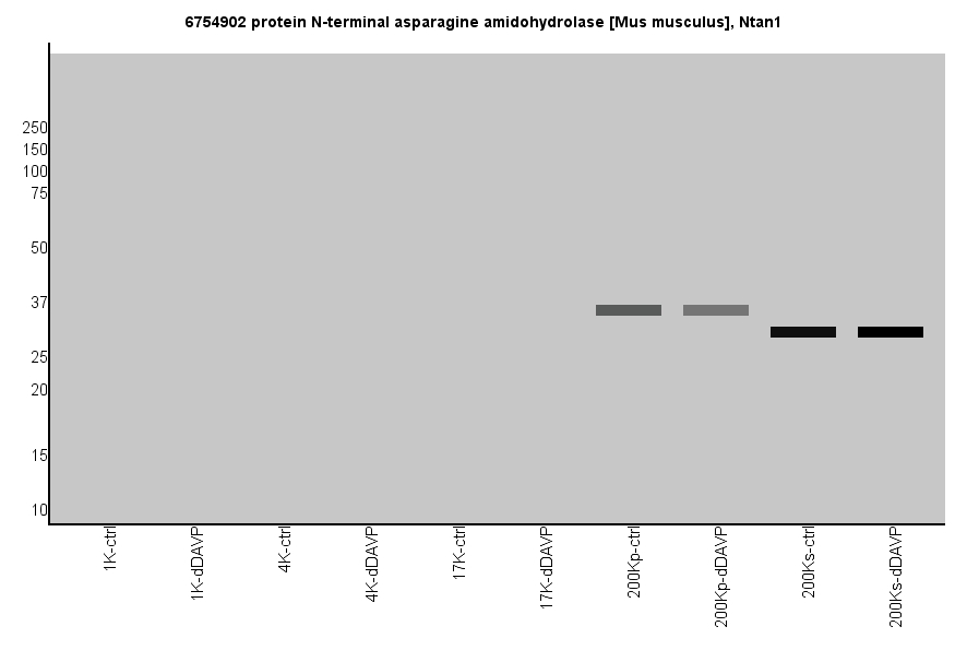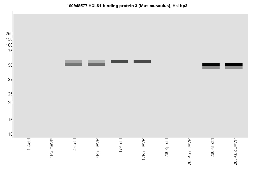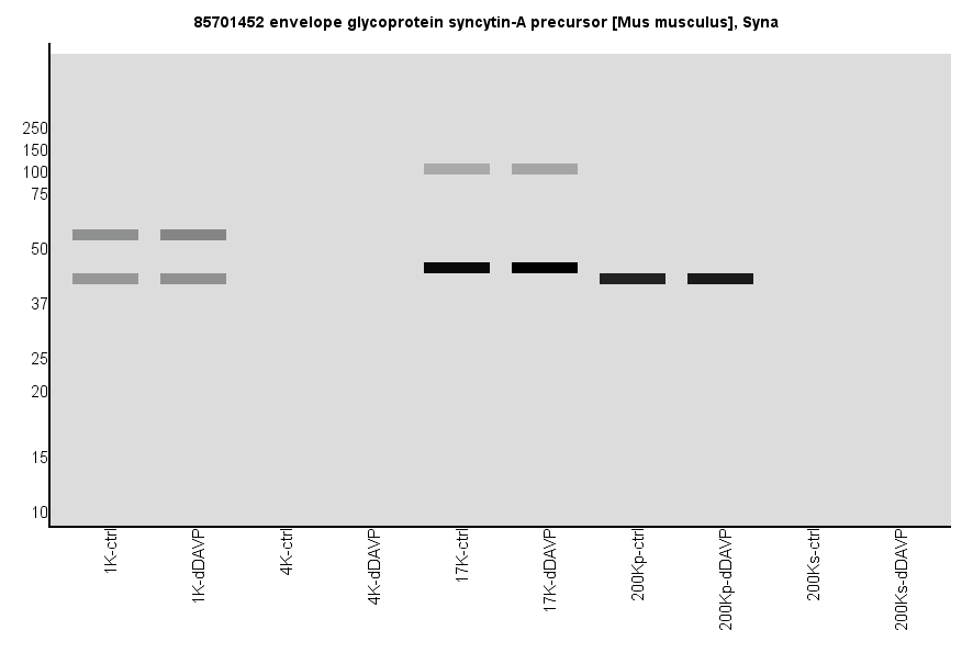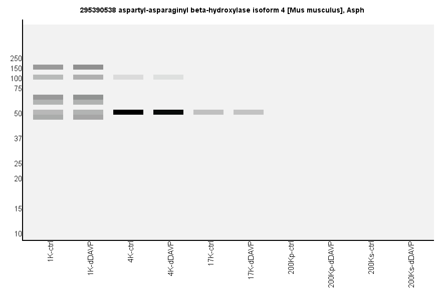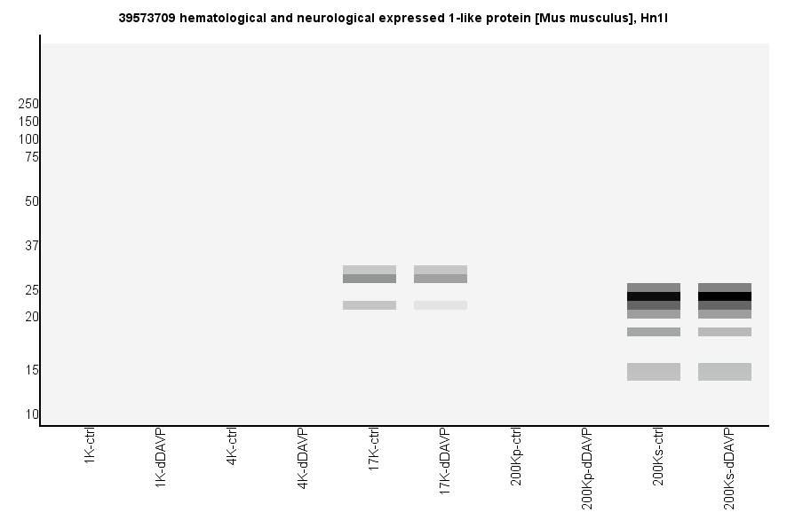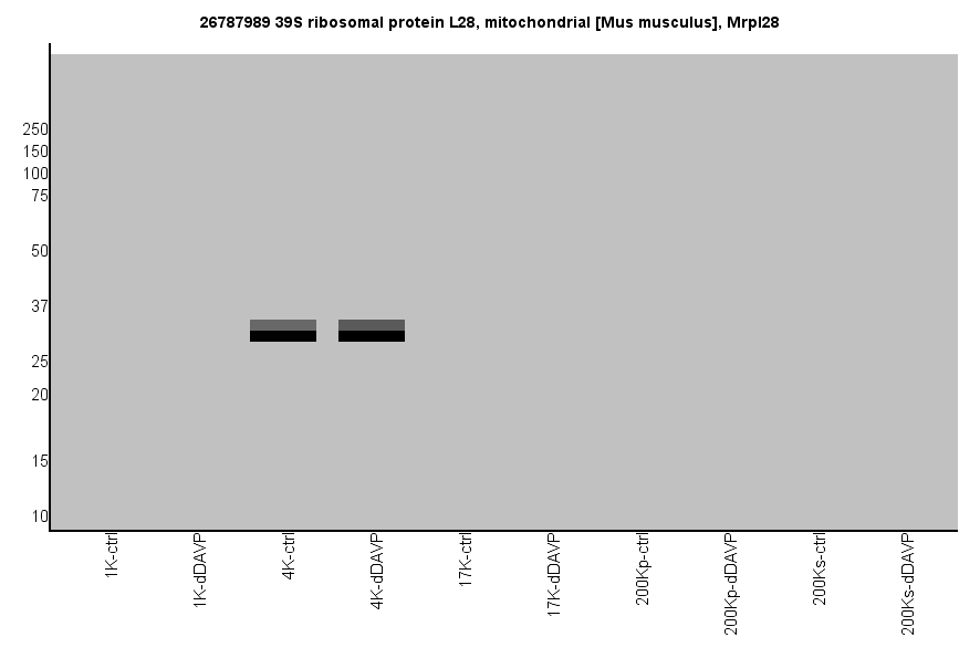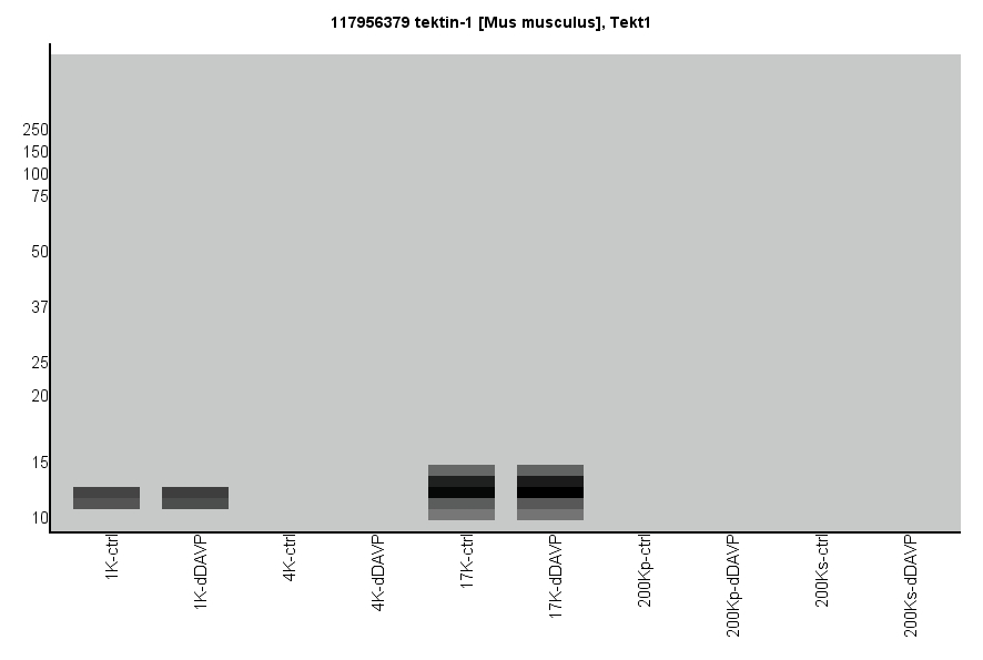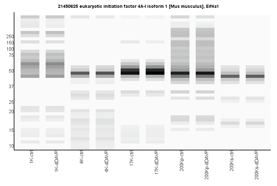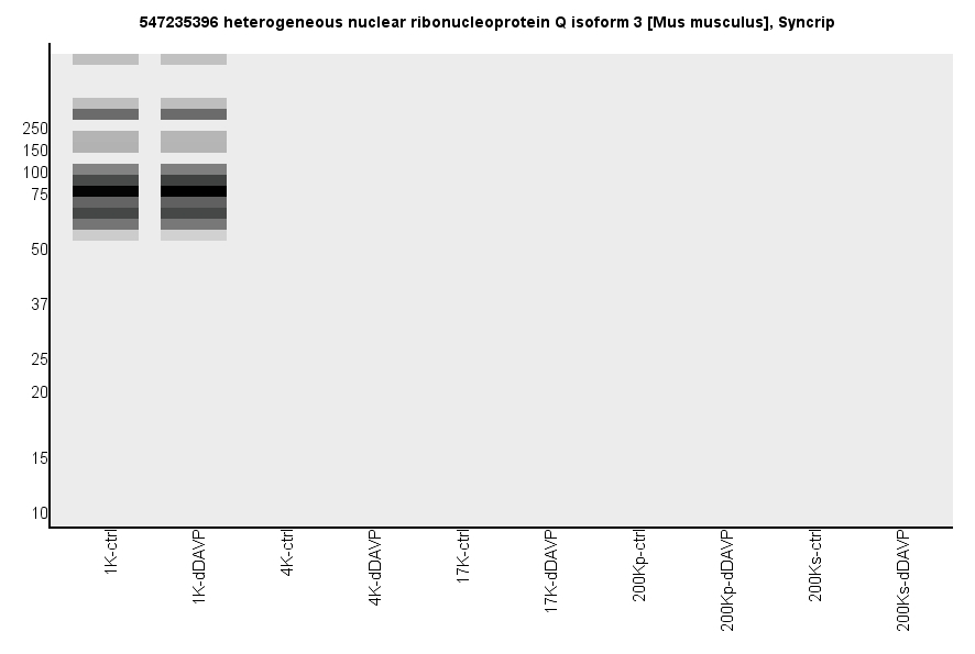 The virtual western blot images show data normalized using a logarithmic conversion scale to map peptide intensities to gray-scale levels. Using this conversion method, low-abundance peptides are generally visible in the blot images. Switch back to the default linear conversion scale database page.