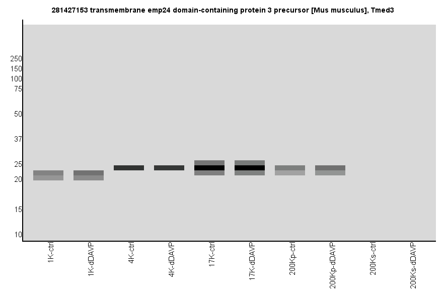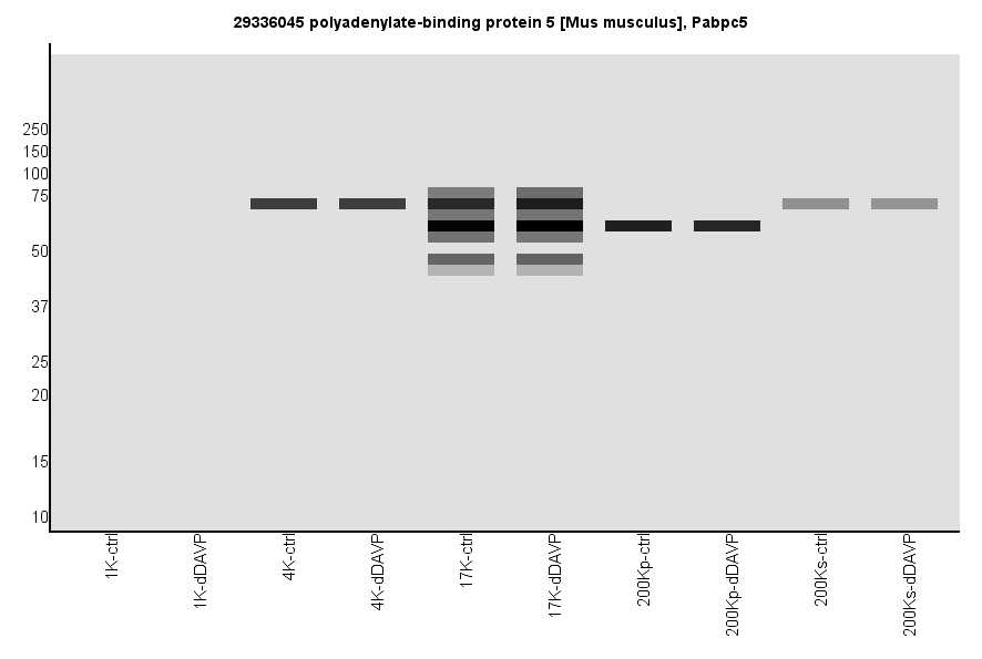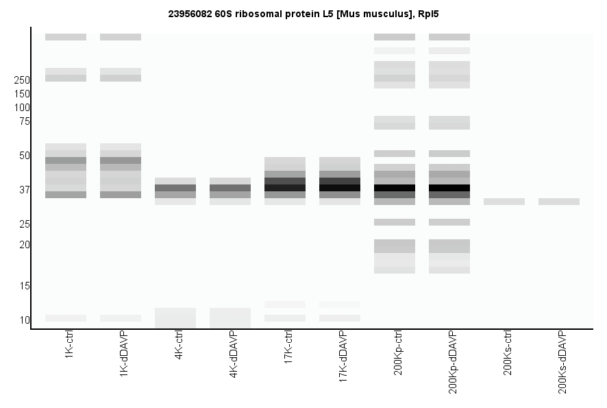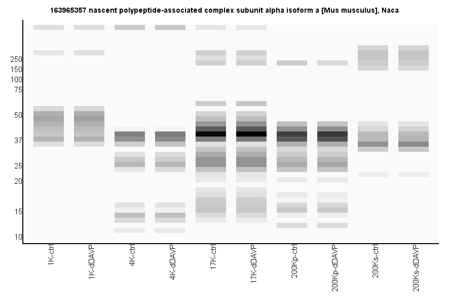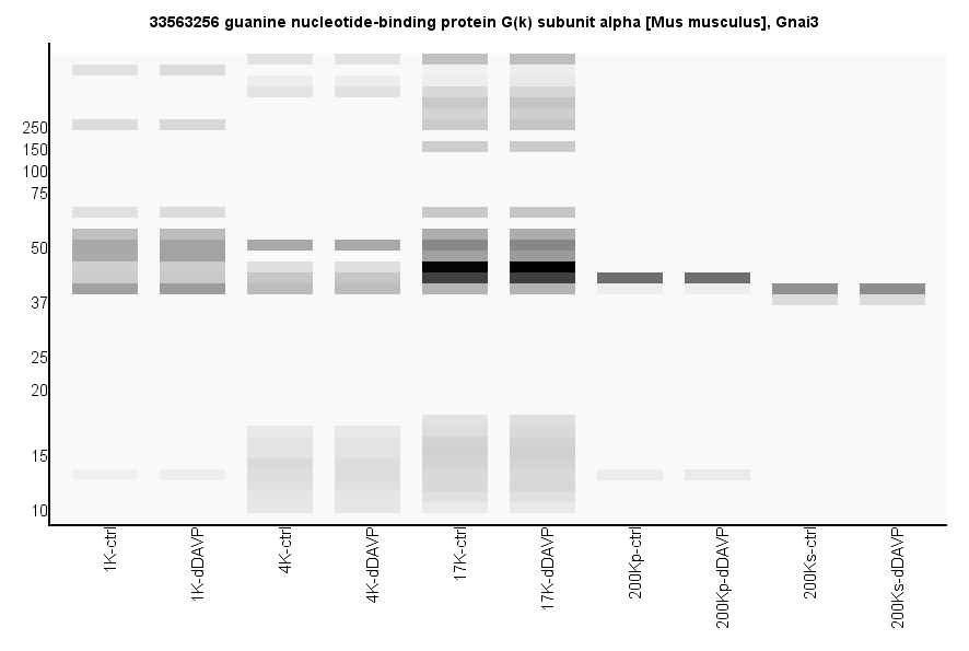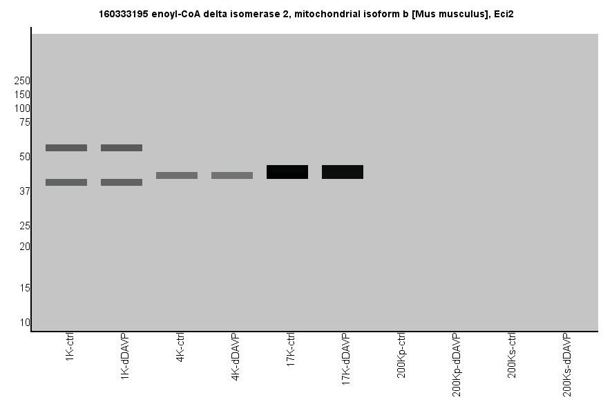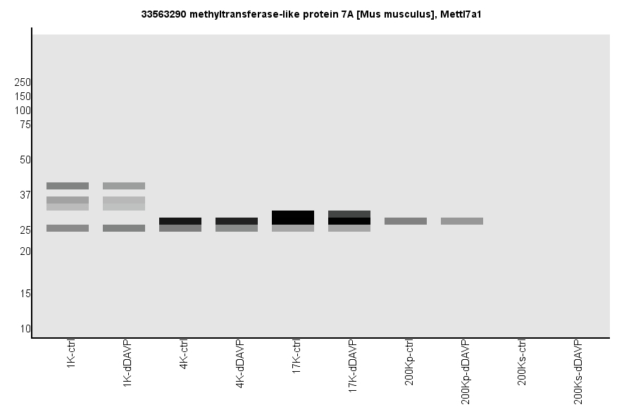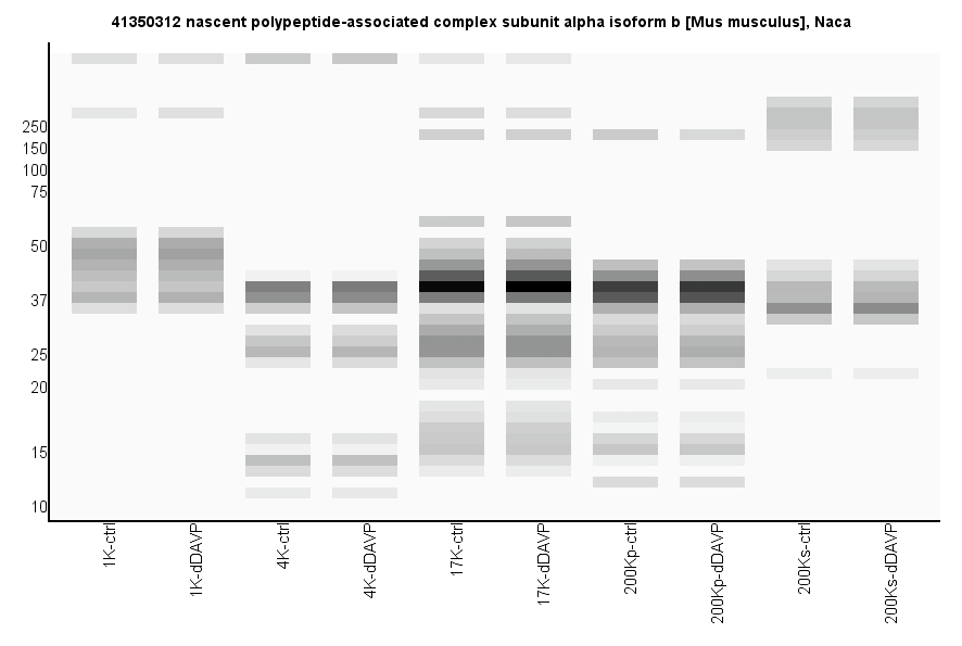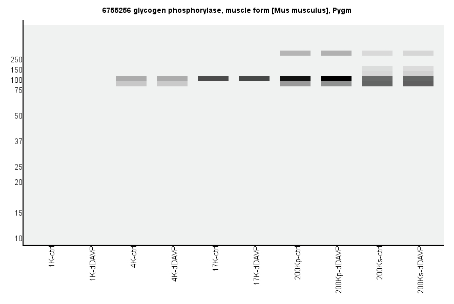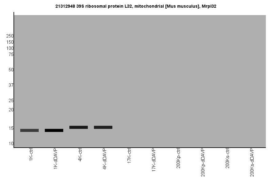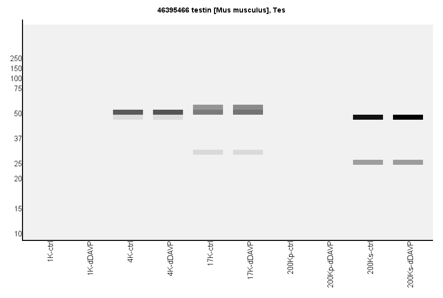 The virtual western blot images show data normalized using a logarithmic conversion scale to map peptide intensities to gray-scale levels. Using this conversion method, low-abundance peptides are generally visible in the blot images. Switch back to the default linear conversion scale database page.