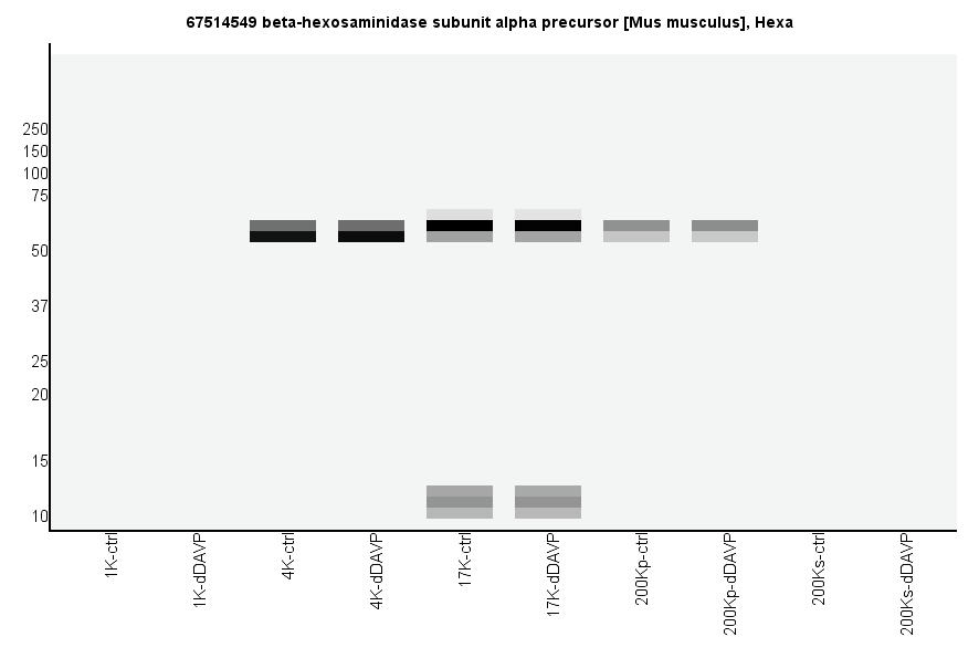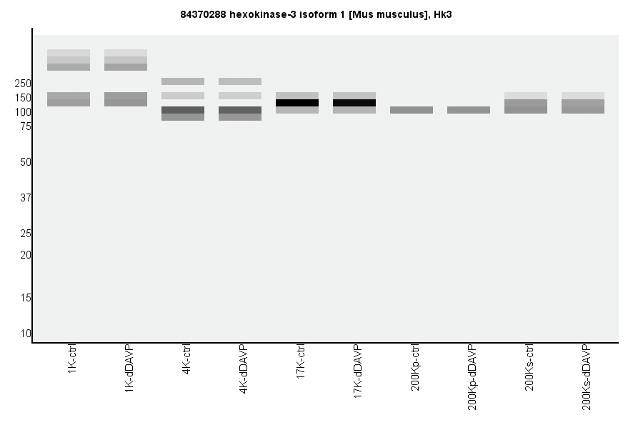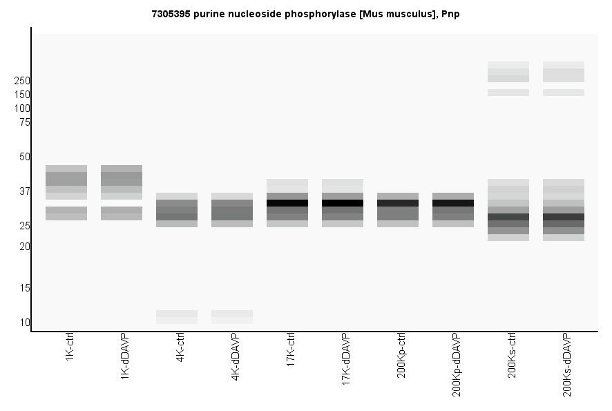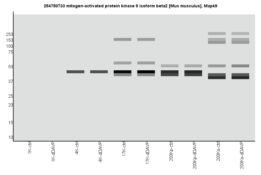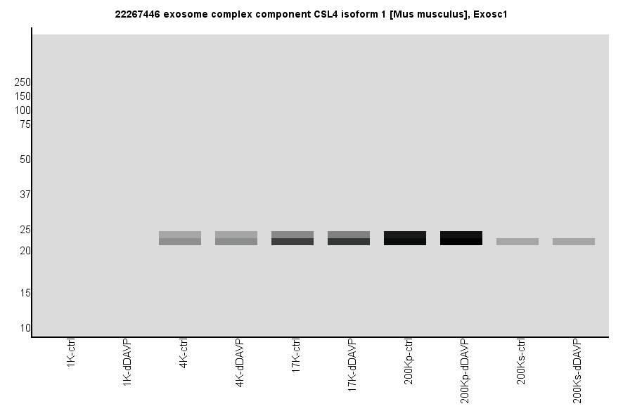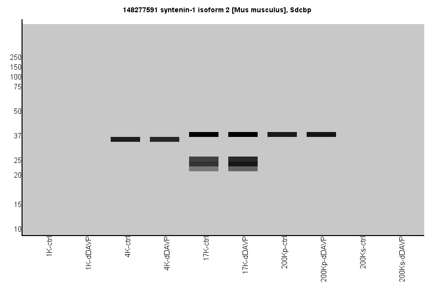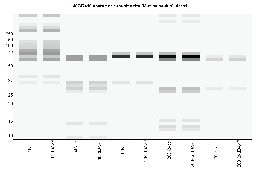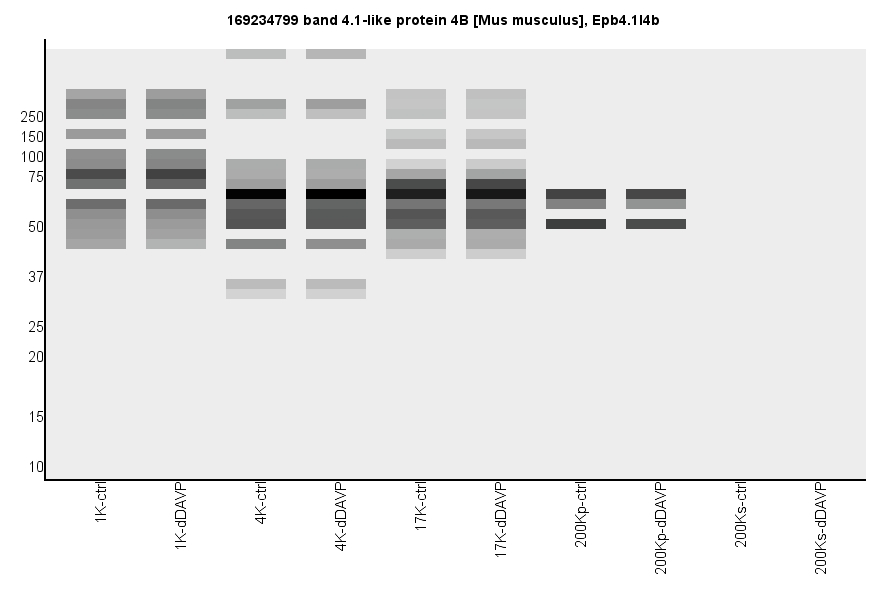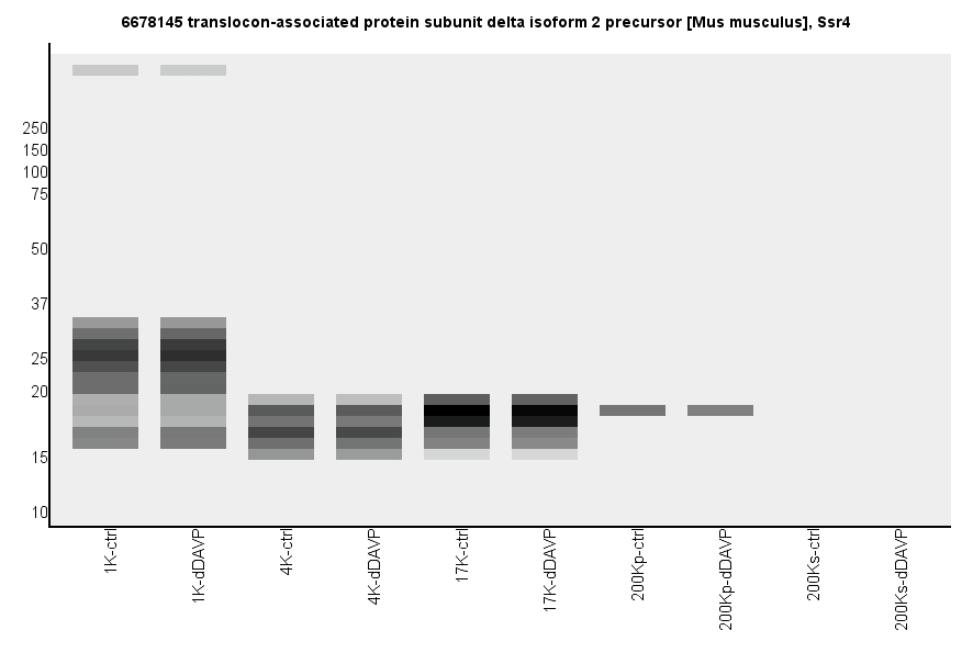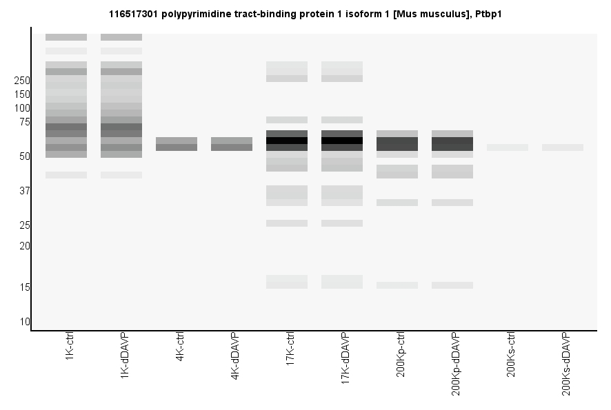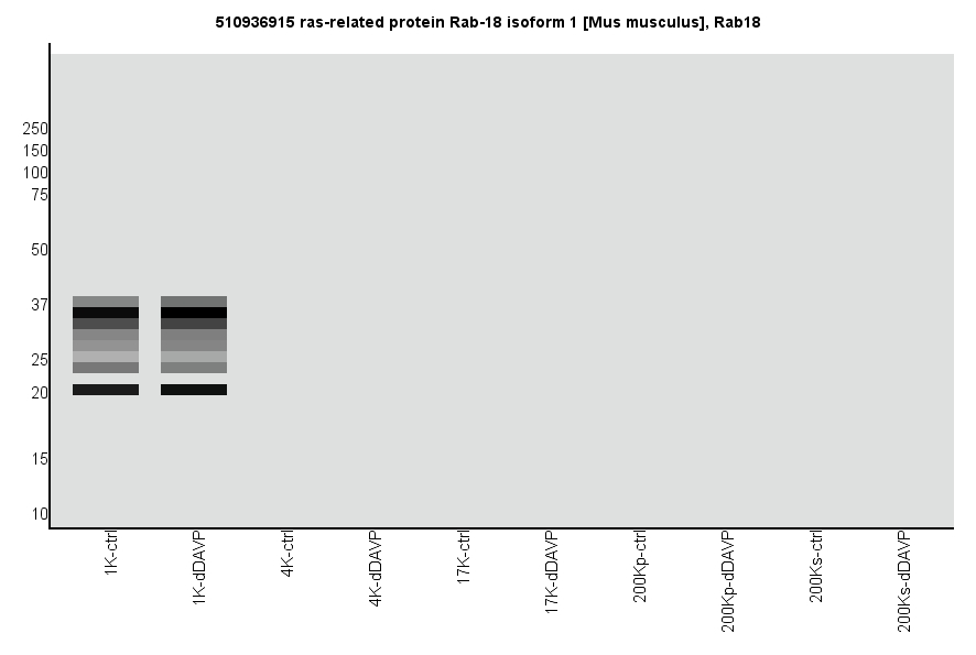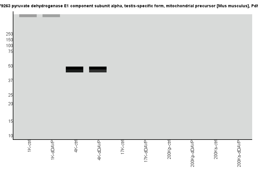 The virtual western blot images show data normalized using a logarithmic conversion scale to map peptide intensities to gray-scale levels. Using this conversion method, low-abundance peptides are generally visible in the blot images. Switch back to the default linear conversion scale database page.