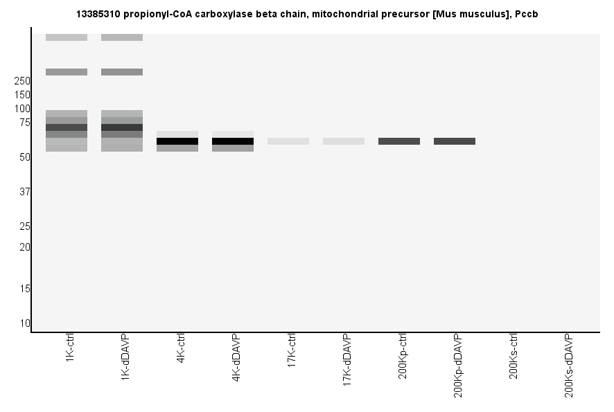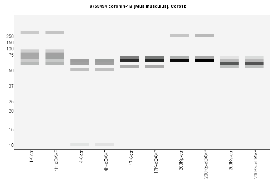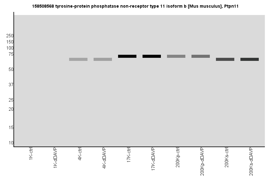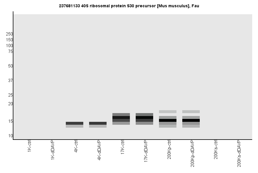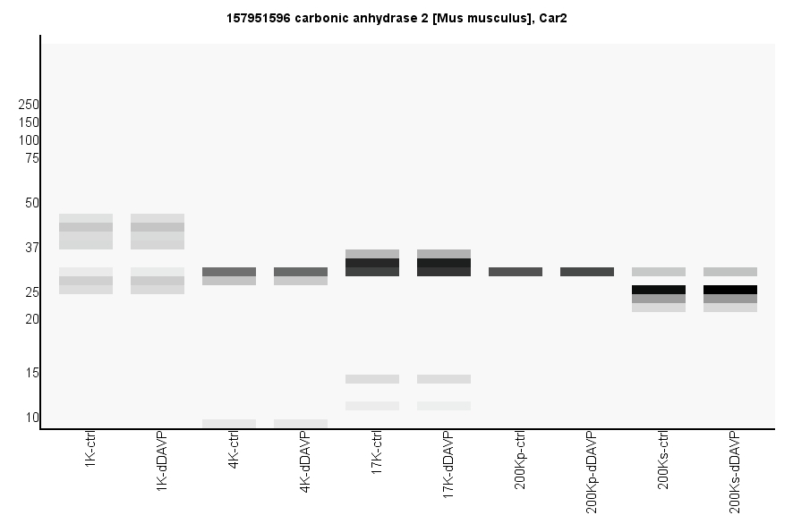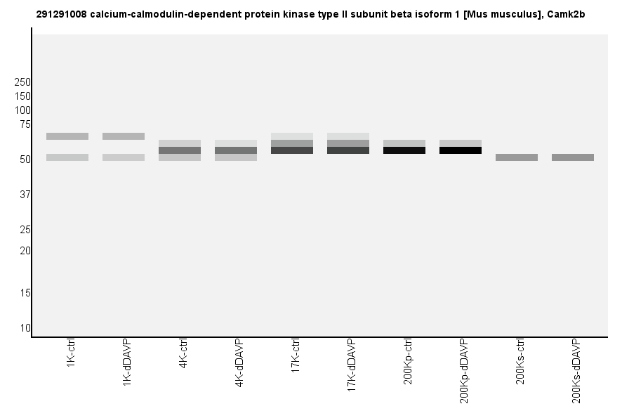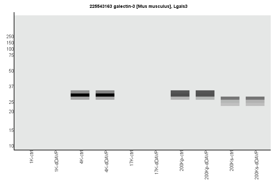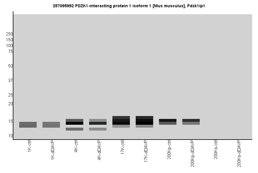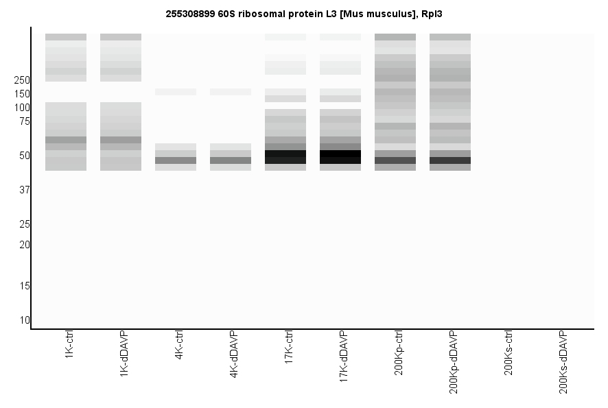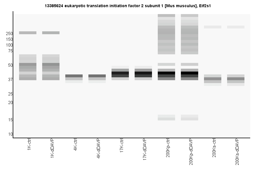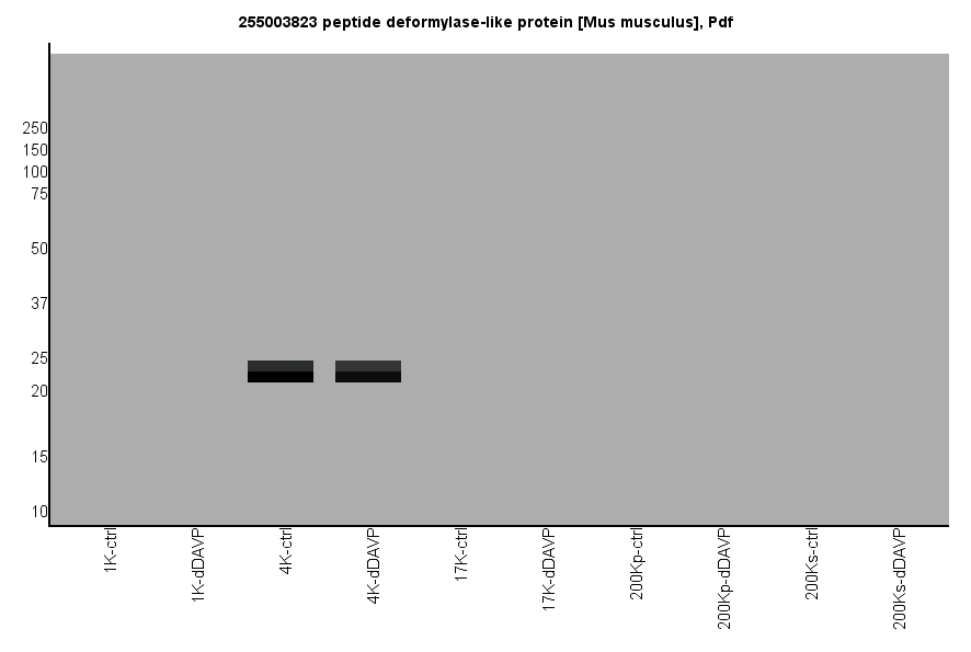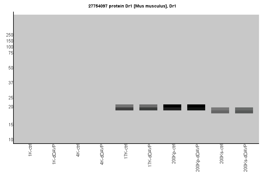 The virtual western blot images show data normalized using a logarithmic conversion scale to map peptide intensities to gray-scale levels. Using this conversion method, low-abundance peptides are generally visible in the blot images. Switch back to the default linear conversion scale database page.