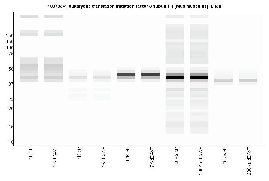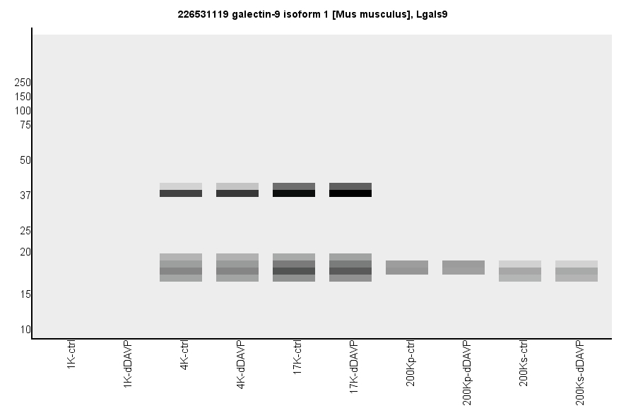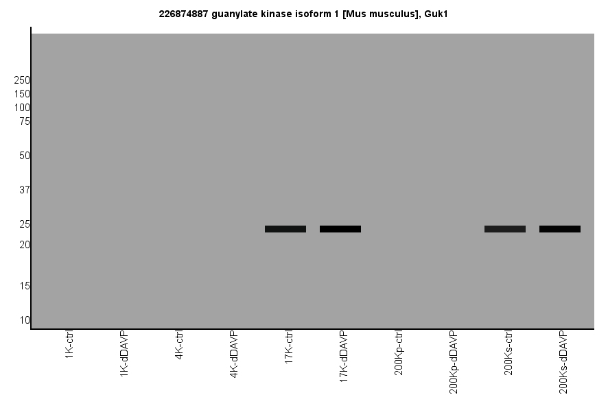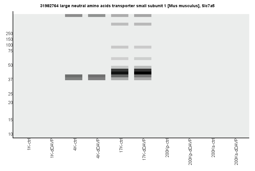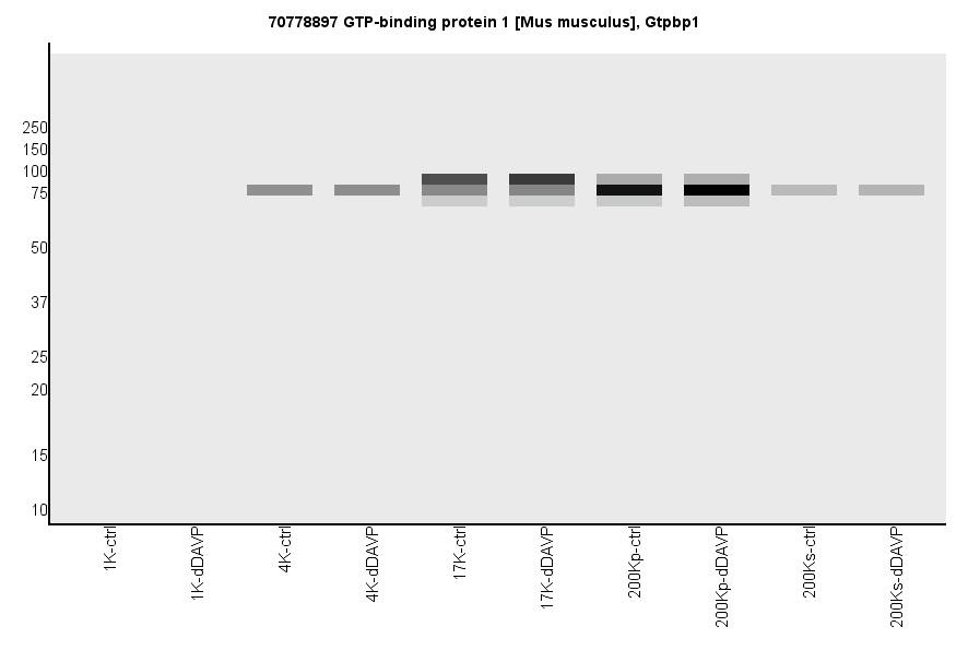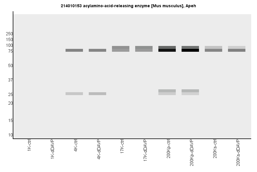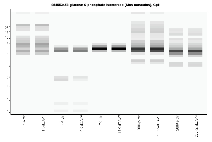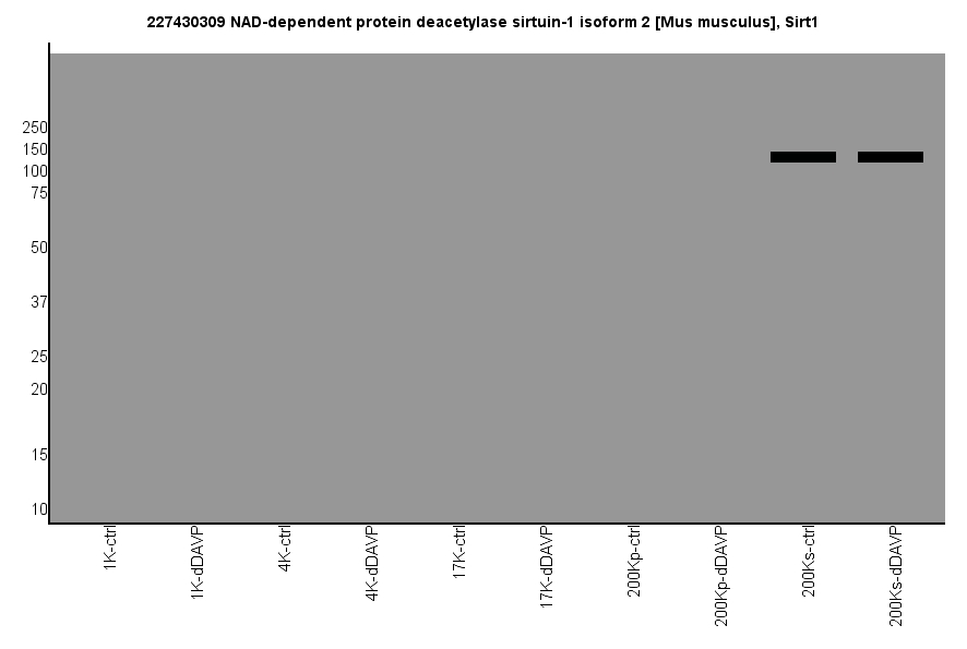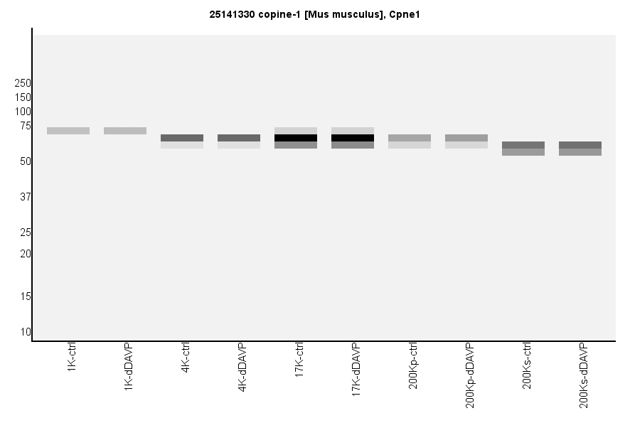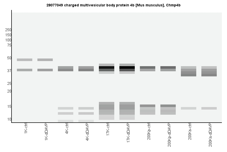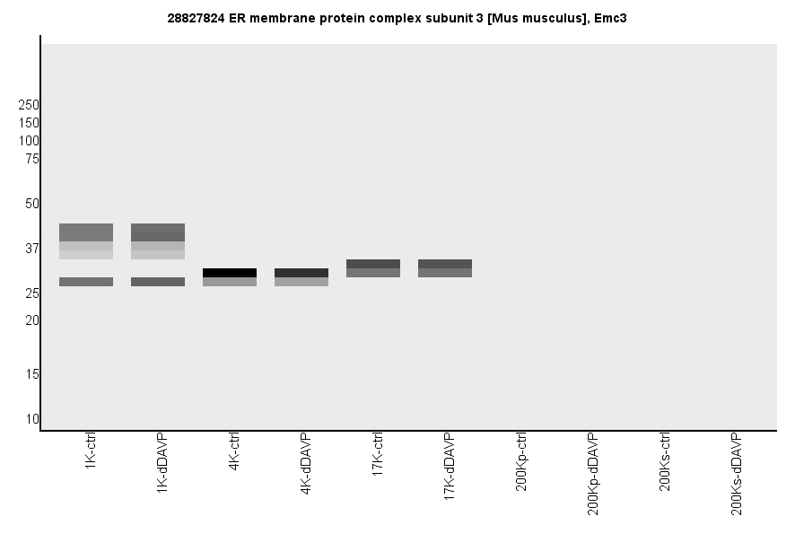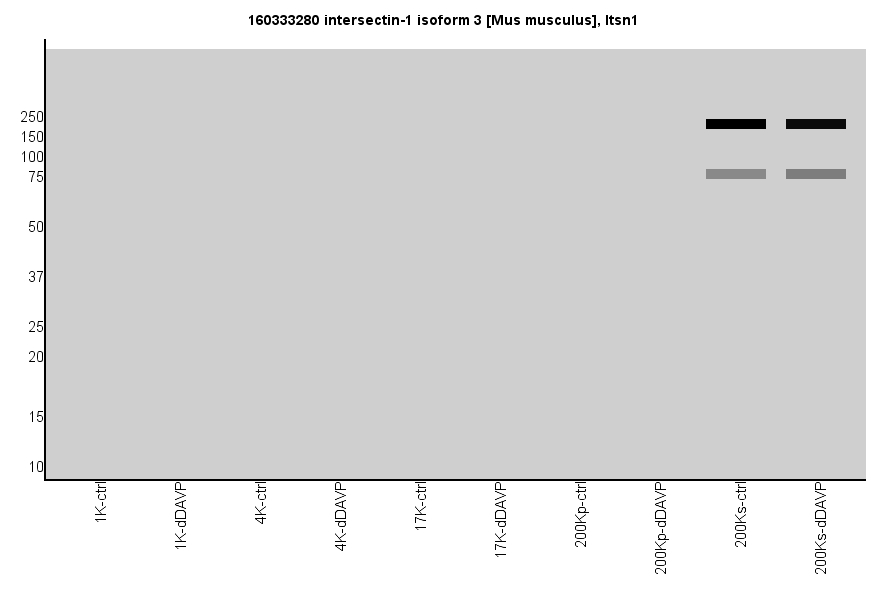The virtual western blot images show data normalized using a logarithmic conversion scale to map peptide intensities to gray-scale levels. Using this conversion method, low-abundance peptides are generally visible in the blot images. Switch back to the default linear conversion scale database page.