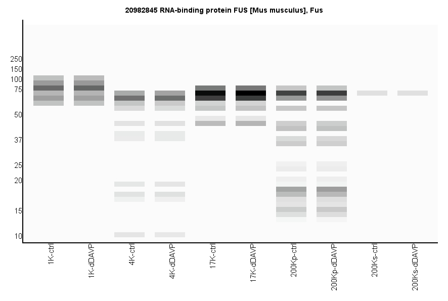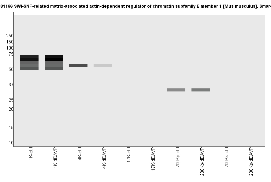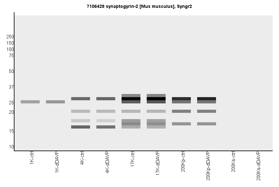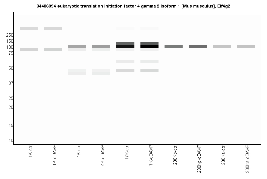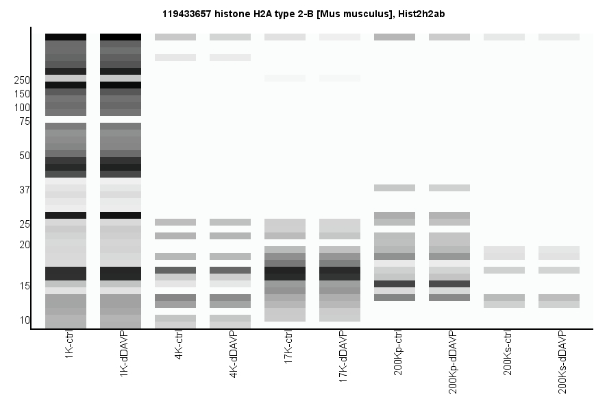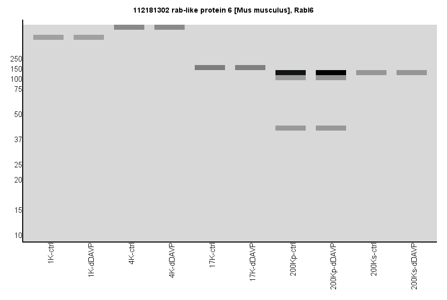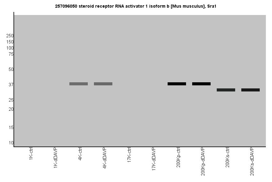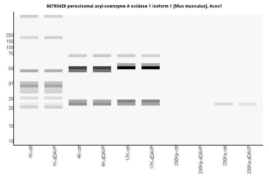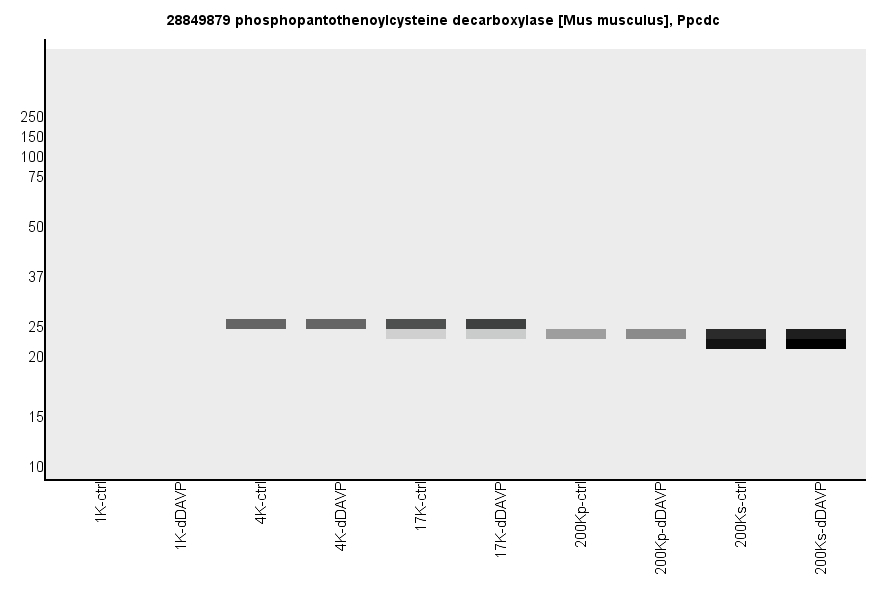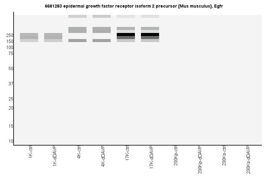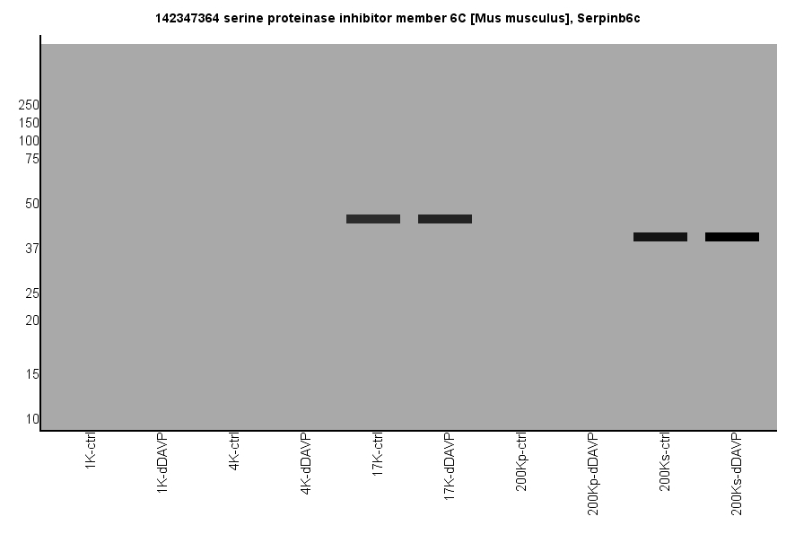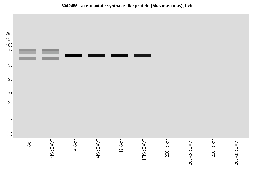 The virtual western blot images show data normalized using a logarithmic conversion scale to map peptide intensities to gray-scale levels. Using this conversion method, low-abundance peptides are generally visible in the blot images. Switch back to the default linear conversion scale database page.