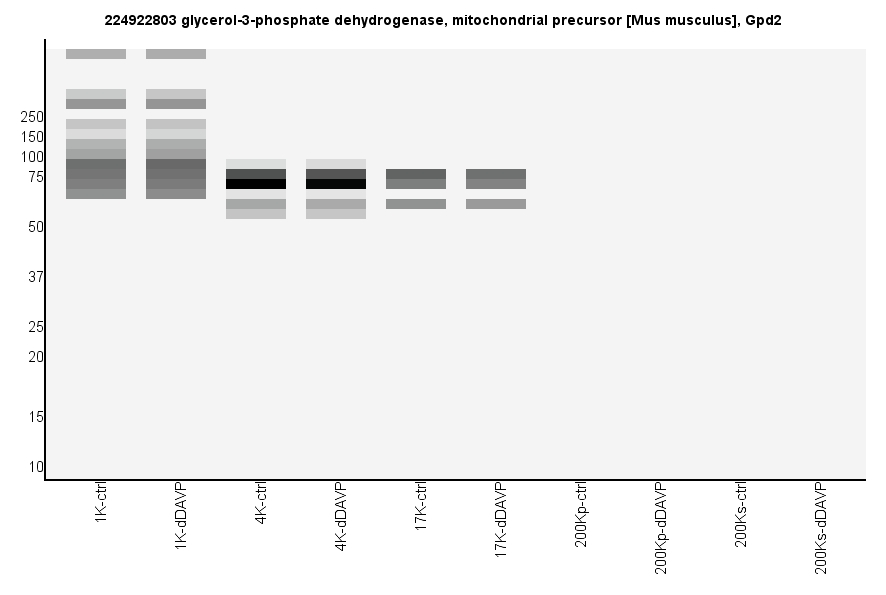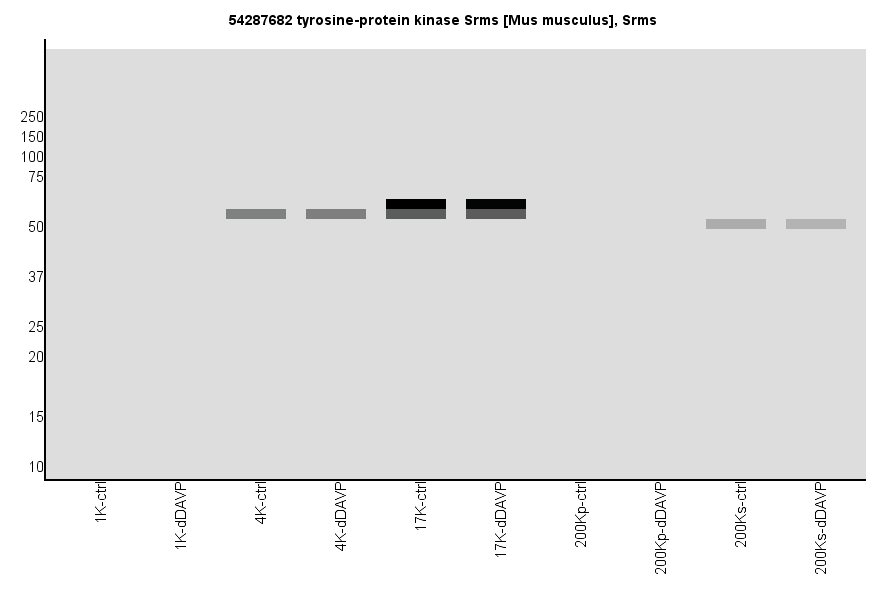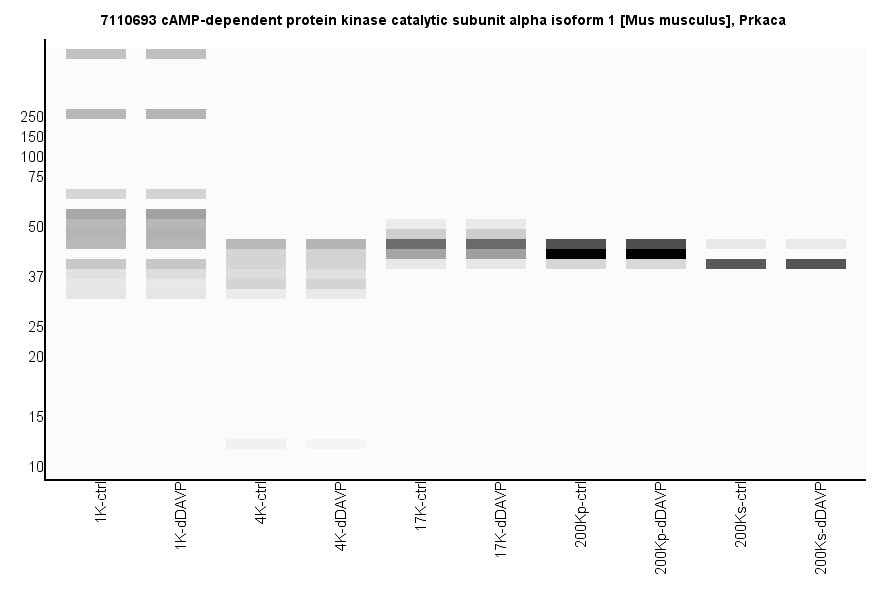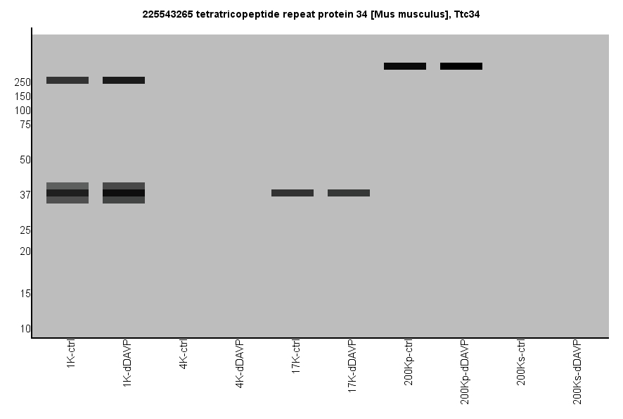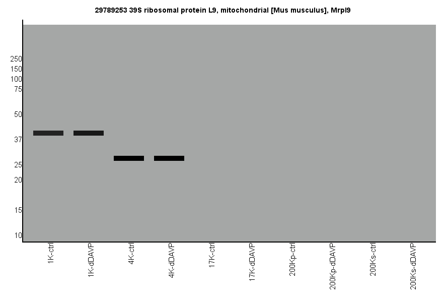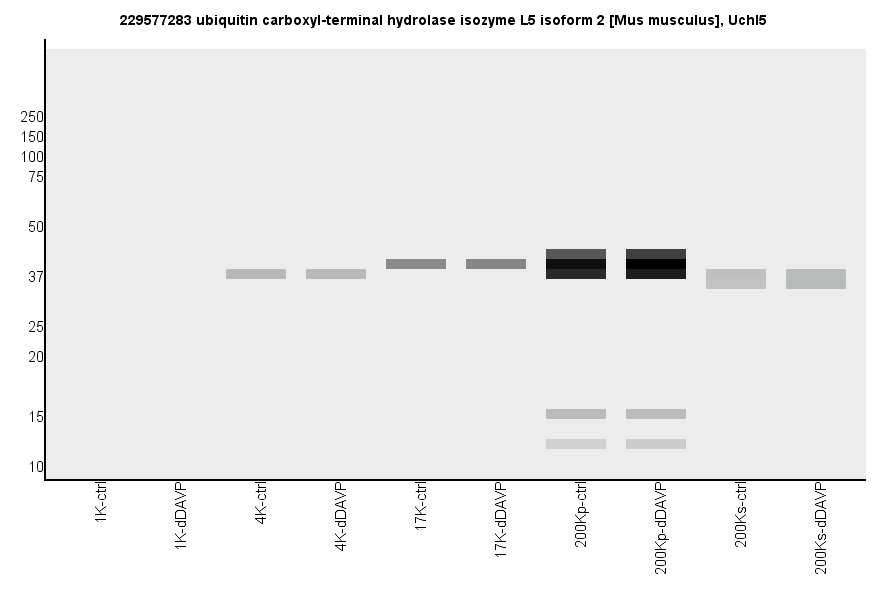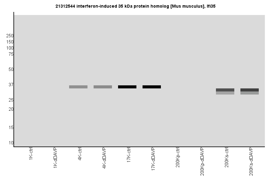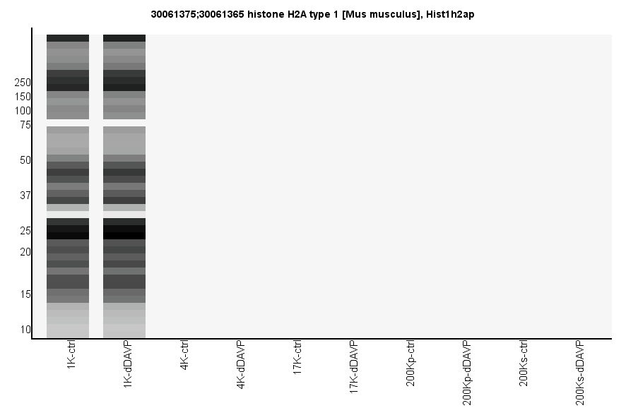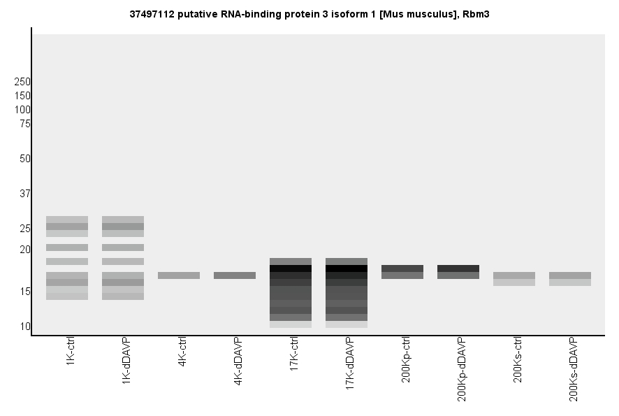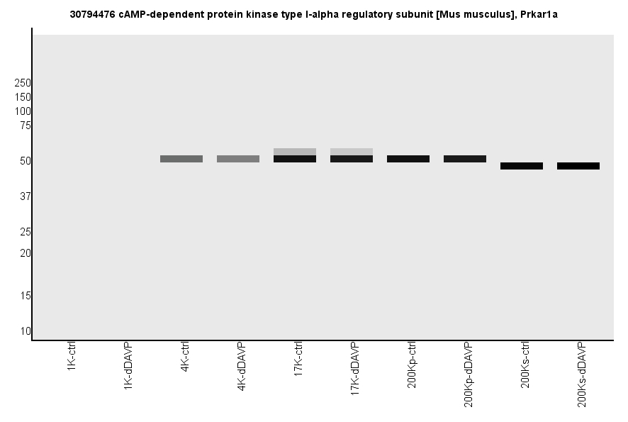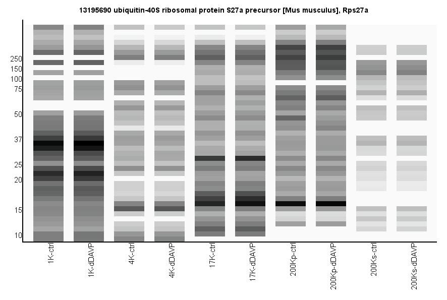 The virtual western blot images show data normalized using a logarithmic conversion scale to map peptide intensities to gray-scale levels. Using this conversion method, low-abundance peptides are generally visible in the blot images. Switch back to the default linear conversion scale database page.