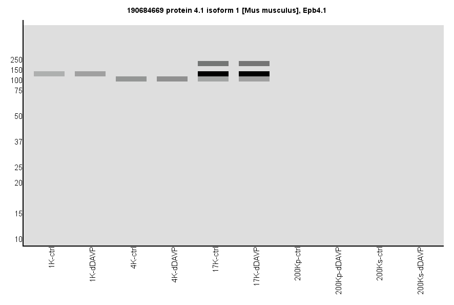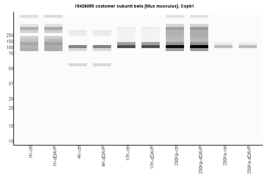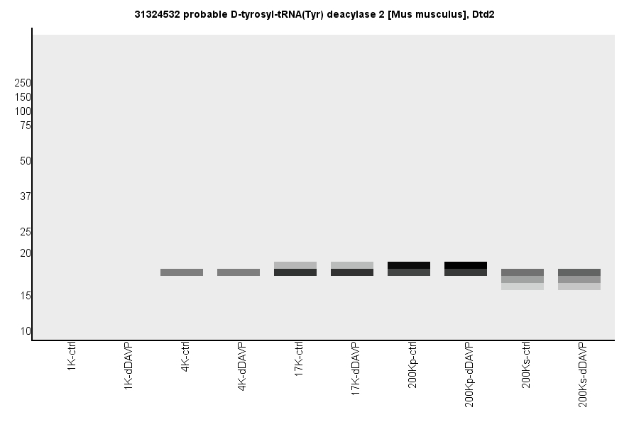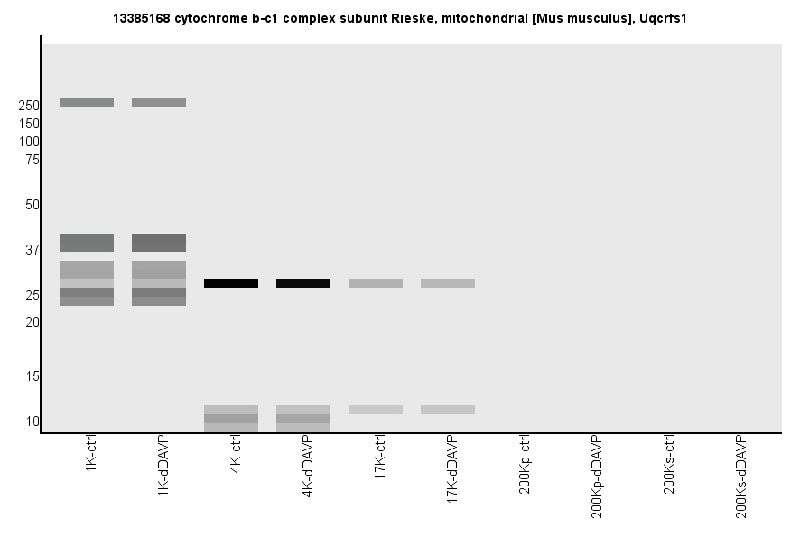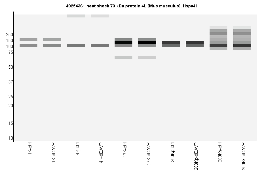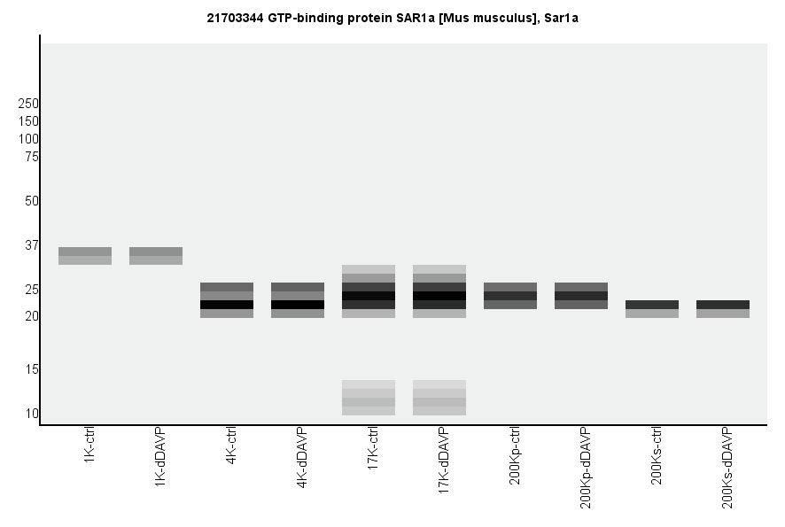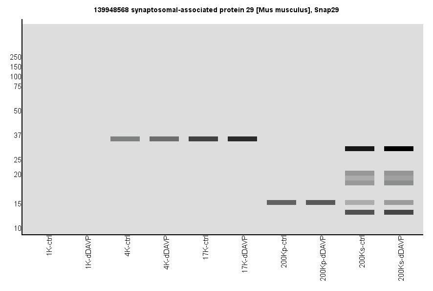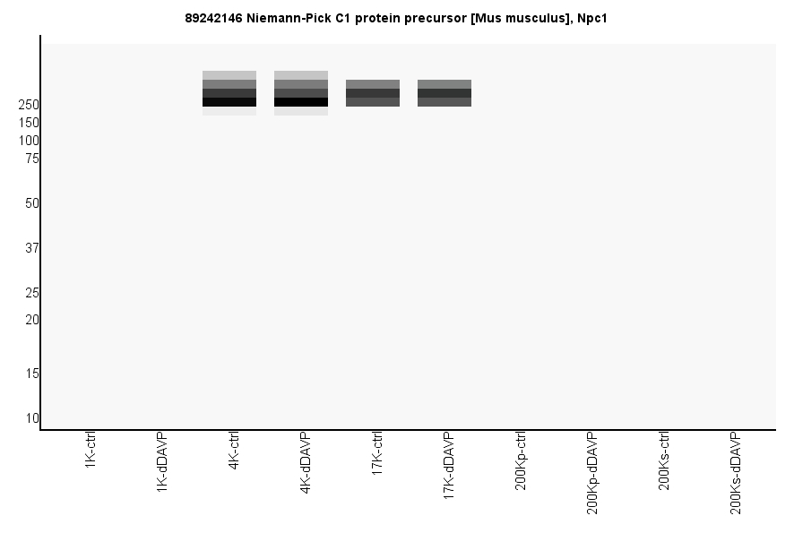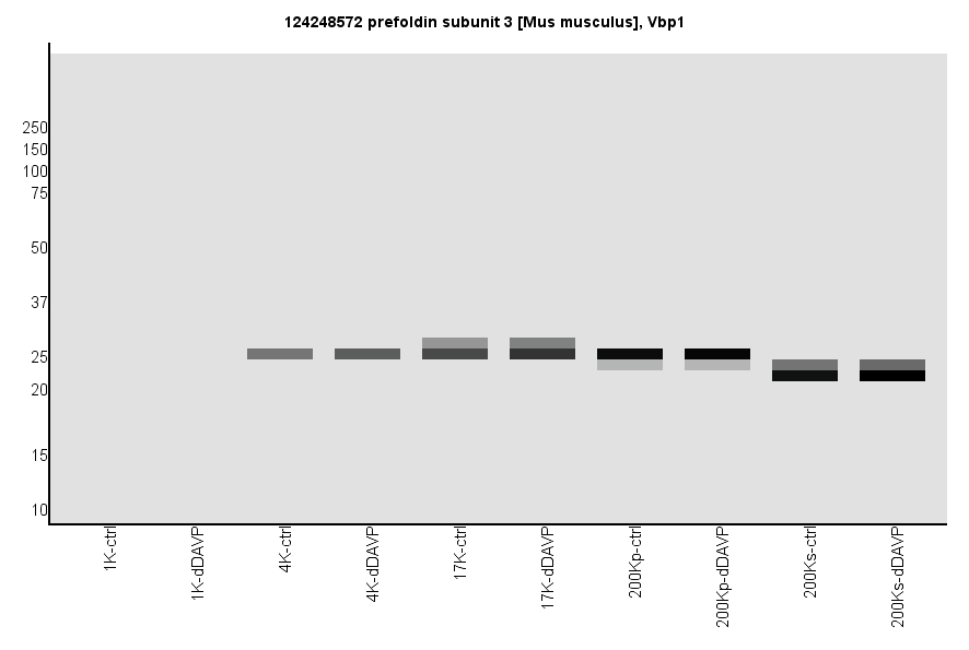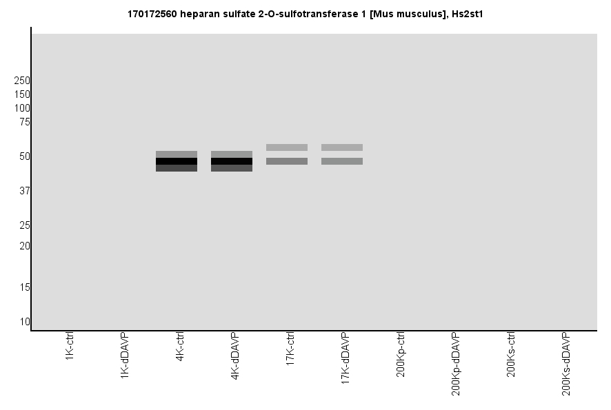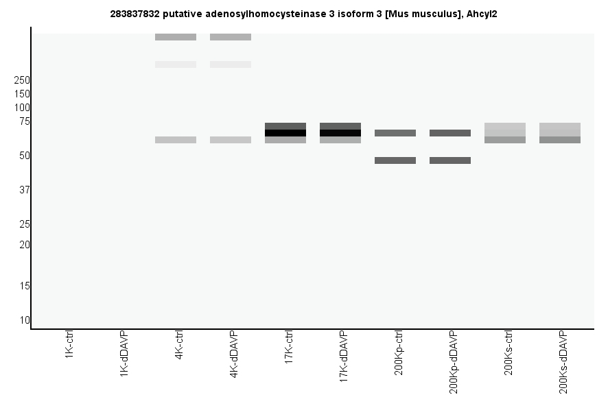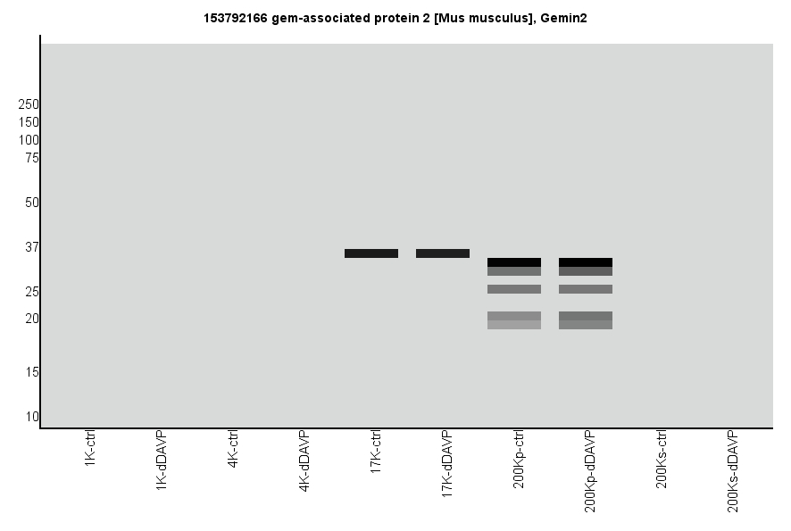 The virtual western blot images show data normalized using a logarithmic conversion scale to map peptide intensities to gray-scale levels. Using this conversion method, low-abundance peptides are generally visible in the blot images. Switch back to the default linear conversion scale database page.