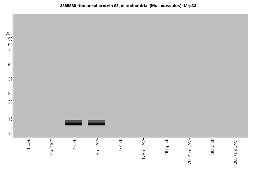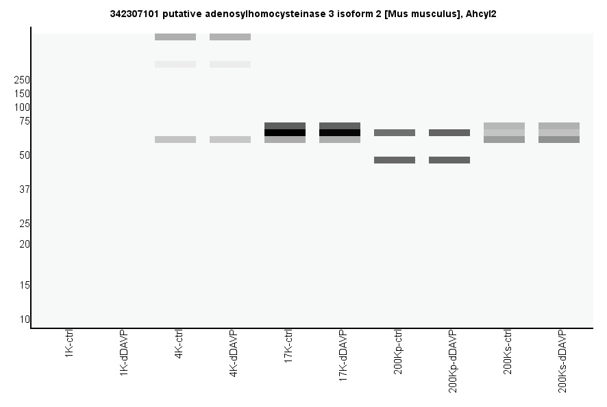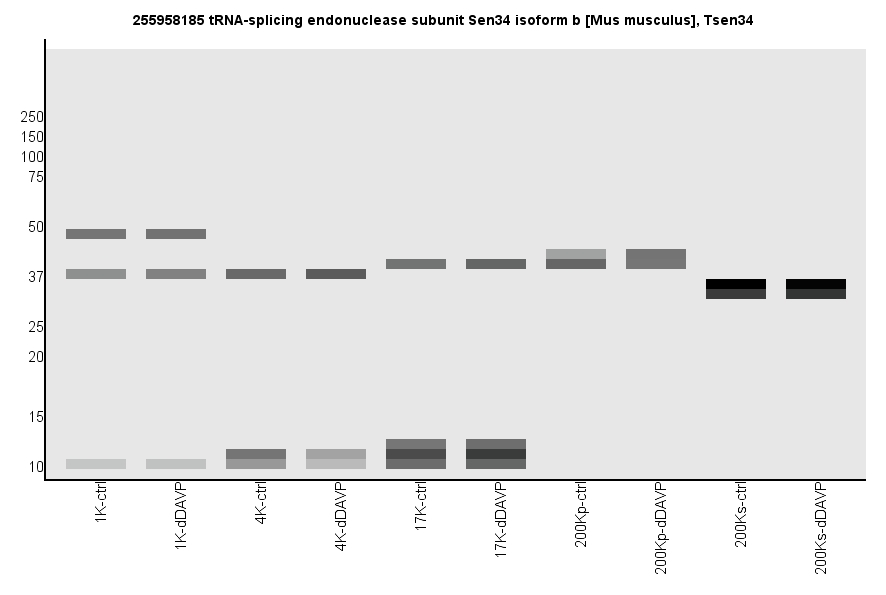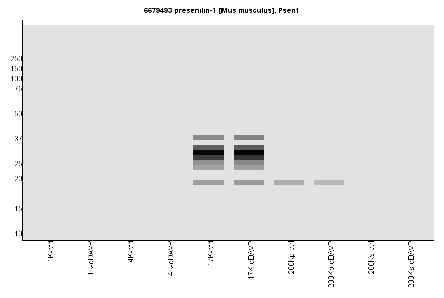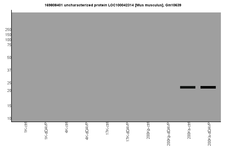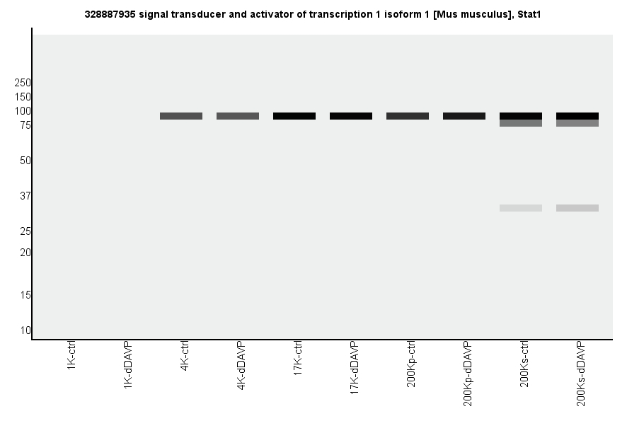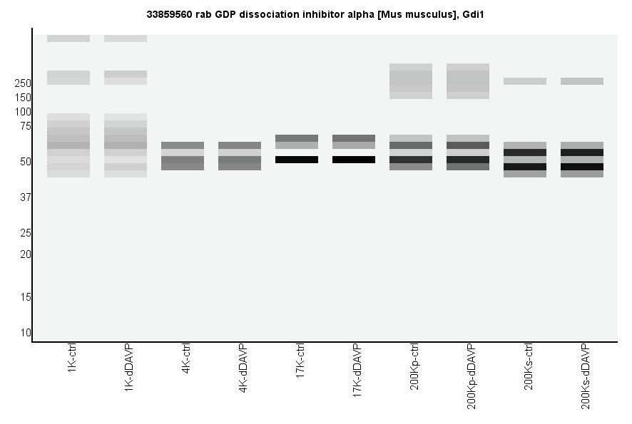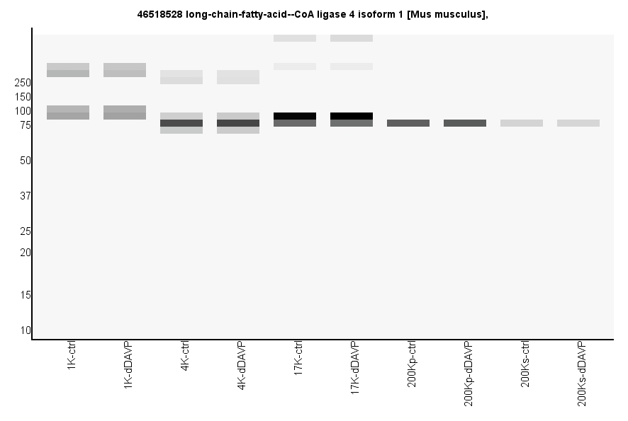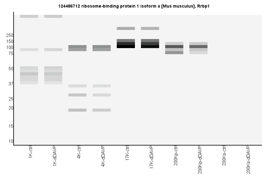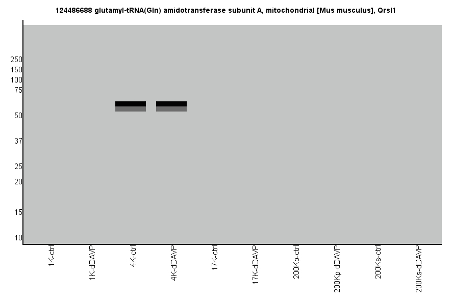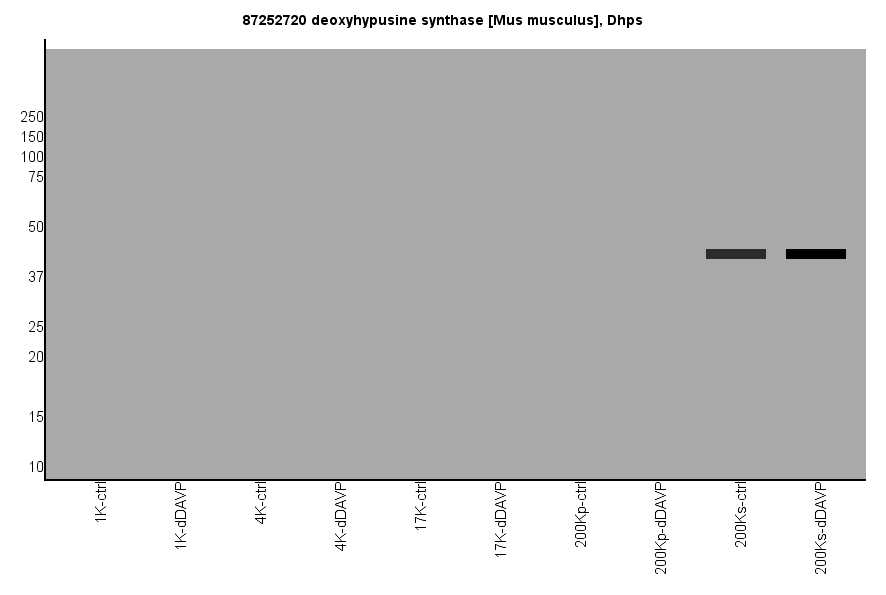 The virtual western blot images show data normalized using a logarithmic conversion scale to map peptide intensities to gray-scale levels. Using this conversion method, low-abundance peptides are generally visible in the blot images. Switch back to the default linear conversion scale database page.