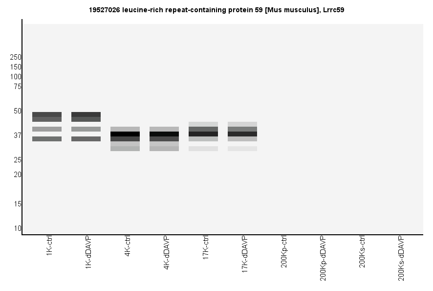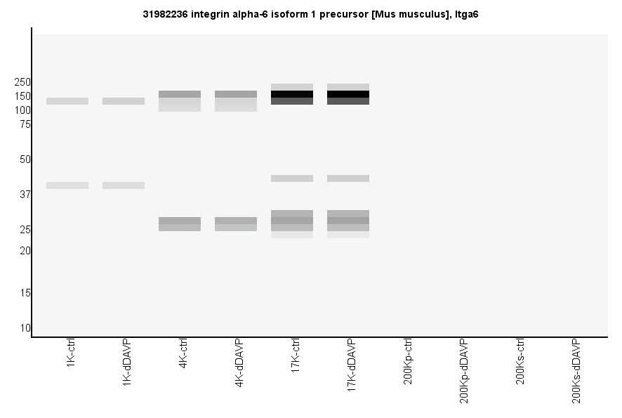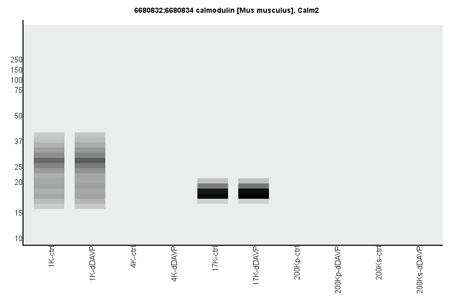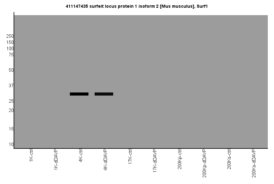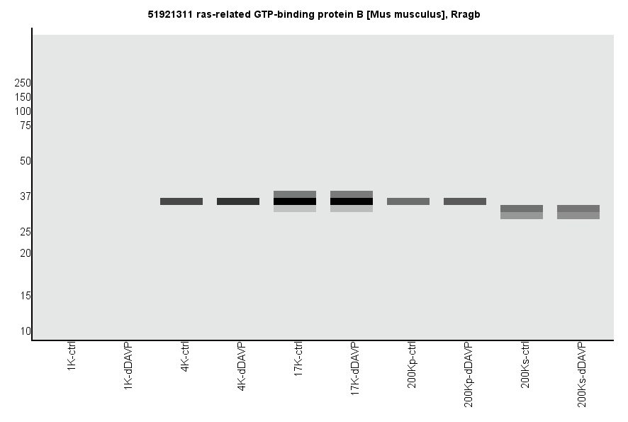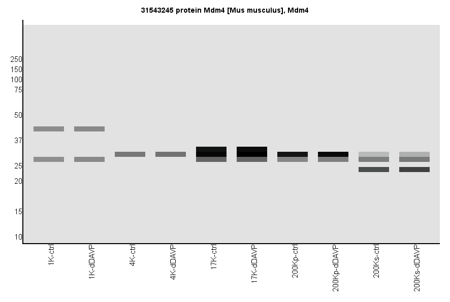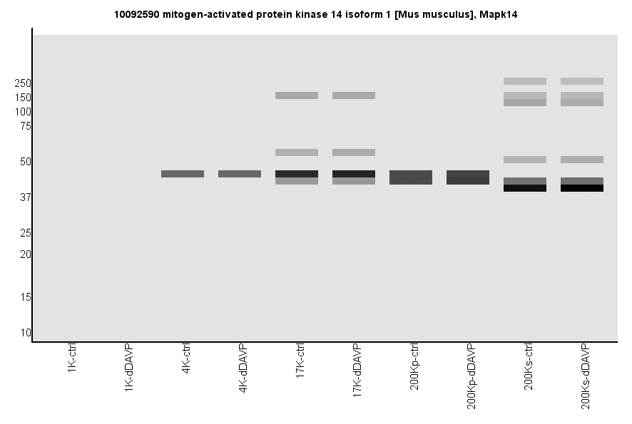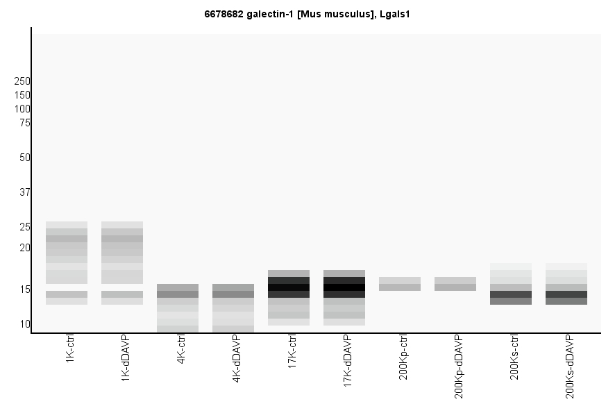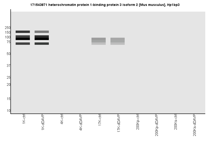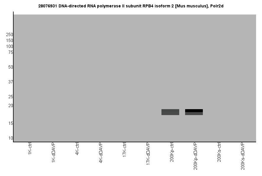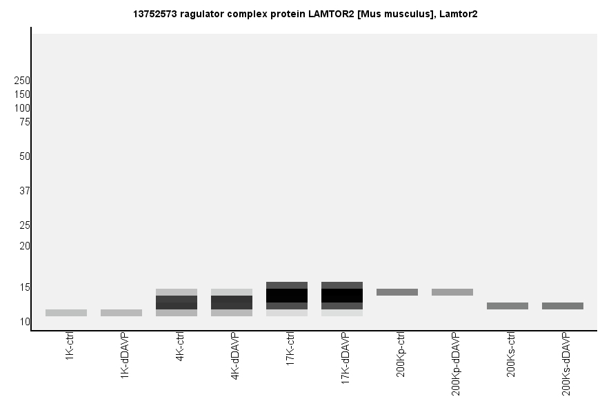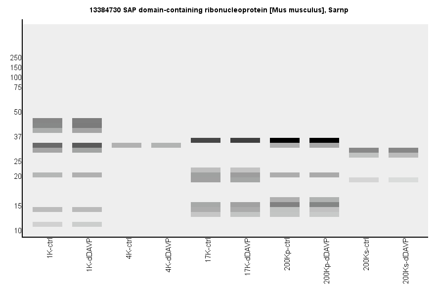 The virtual western blot images show data normalized using a logarithmic conversion scale to map peptide intensities to gray-scale levels. Using this conversion method, low-abundance peptides are generally visible in the blot images. Switch back to the default linear conversion scale database page.