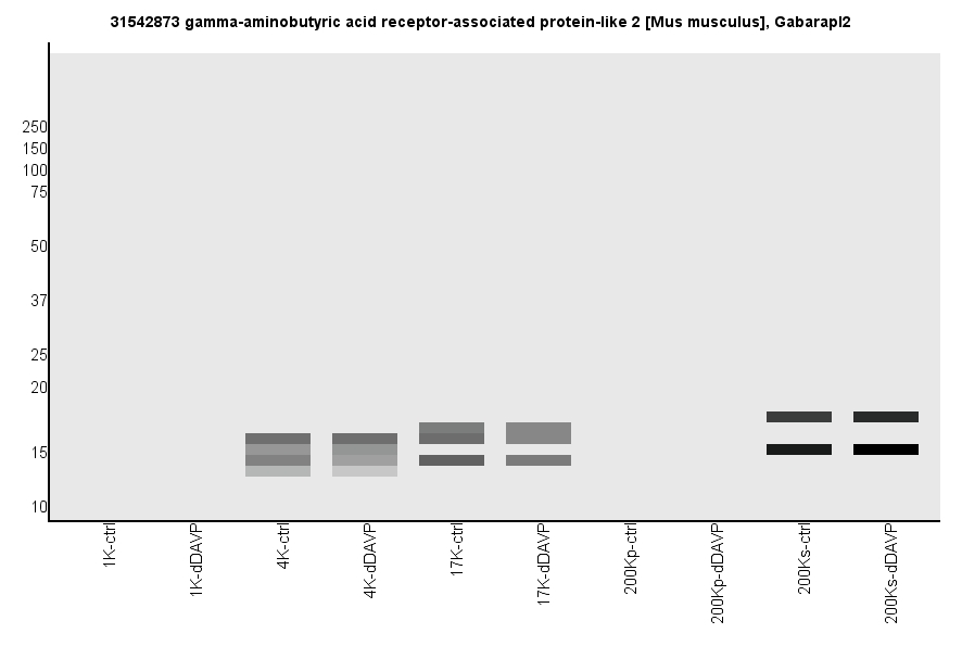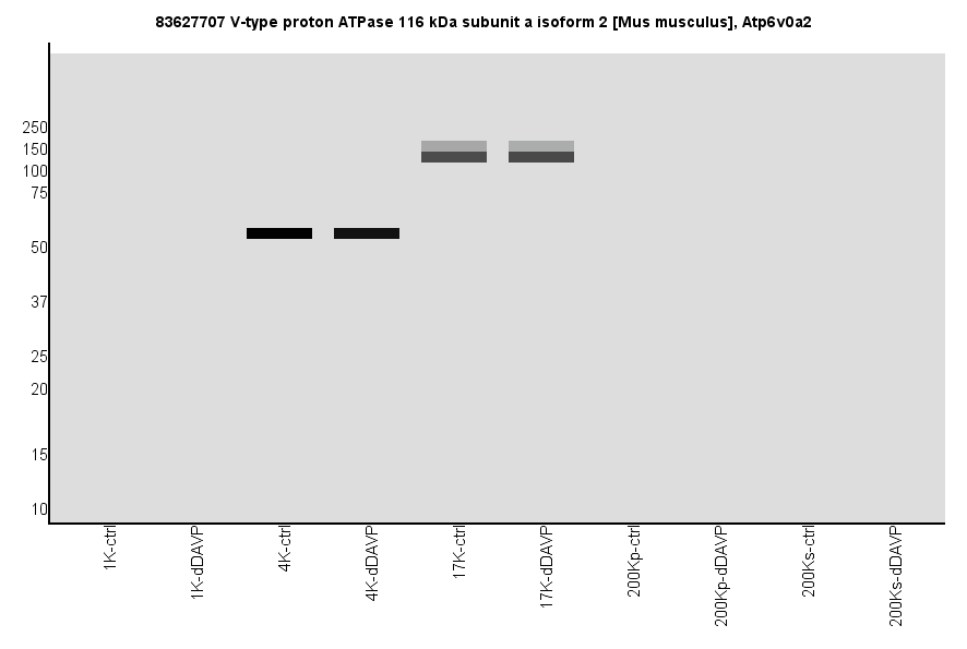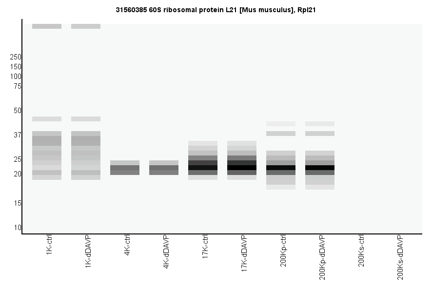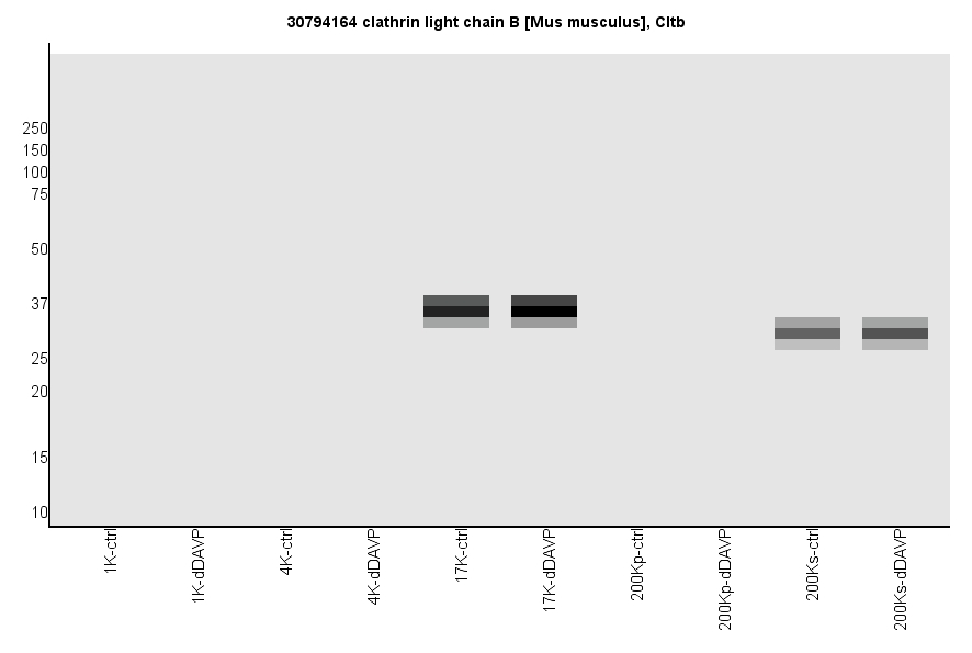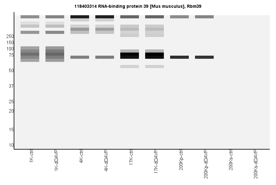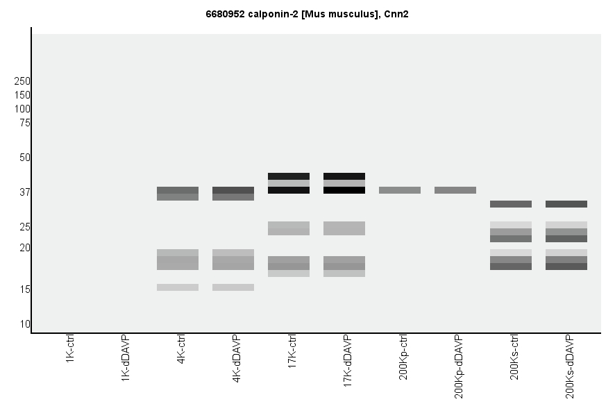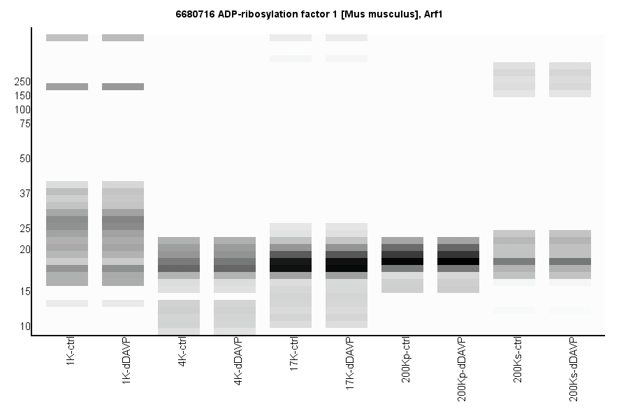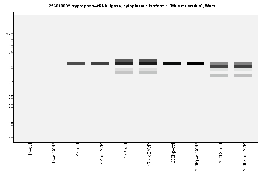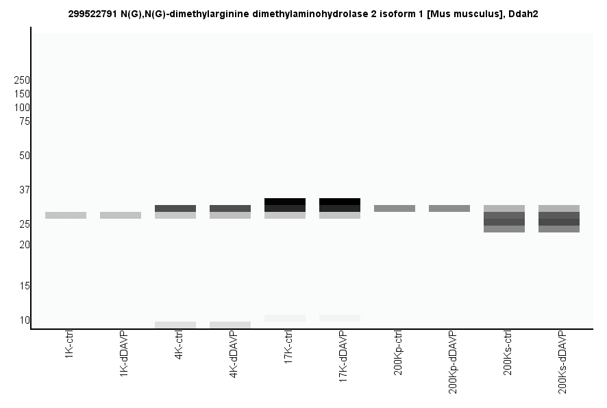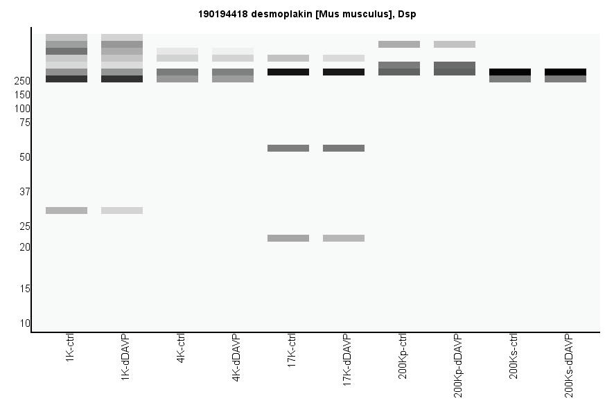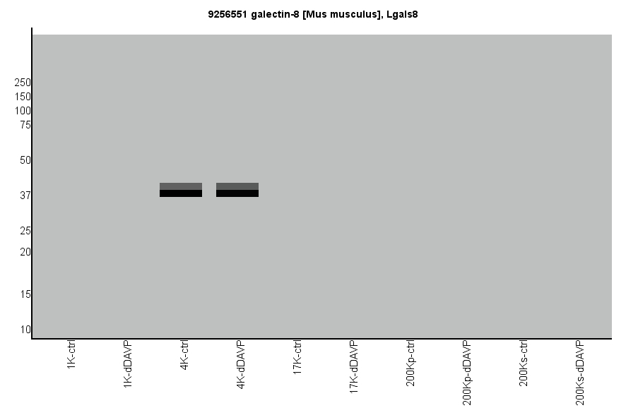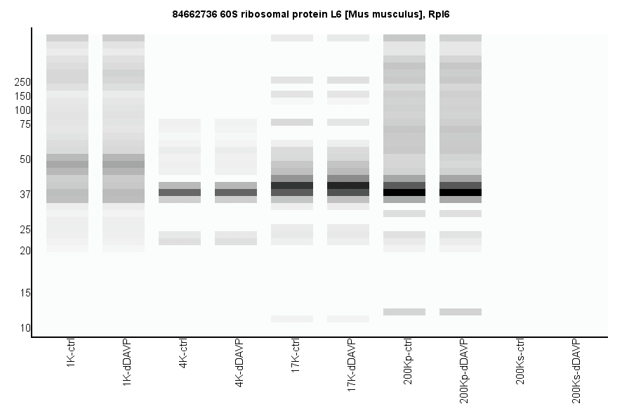 The virtual western blot images show data normalized using a logarithmic conversion scale to map peptide intensities to gray-scale levels. Using this conversion method, low-abundance peptides are generally visible in the blot images. Switch back to the default linear conversion scale database page.