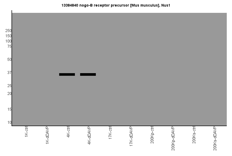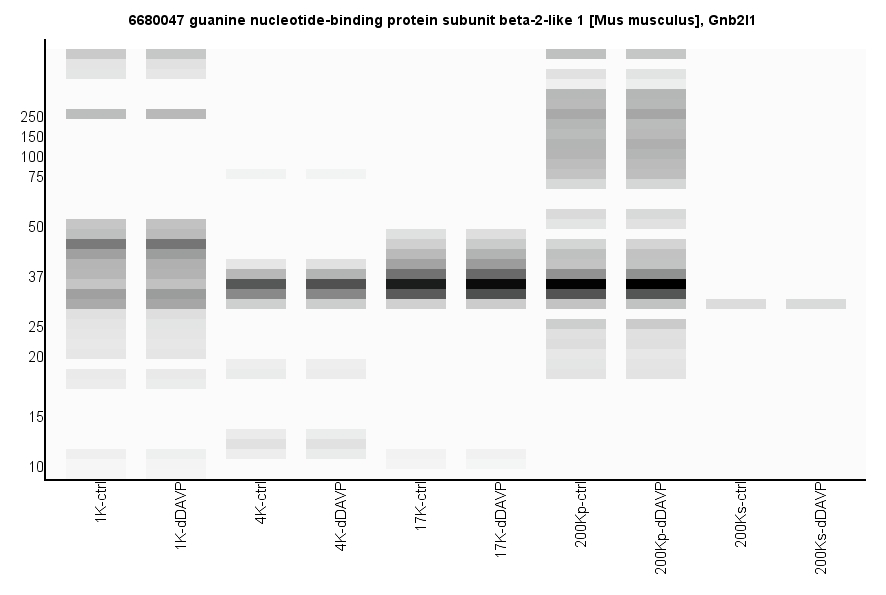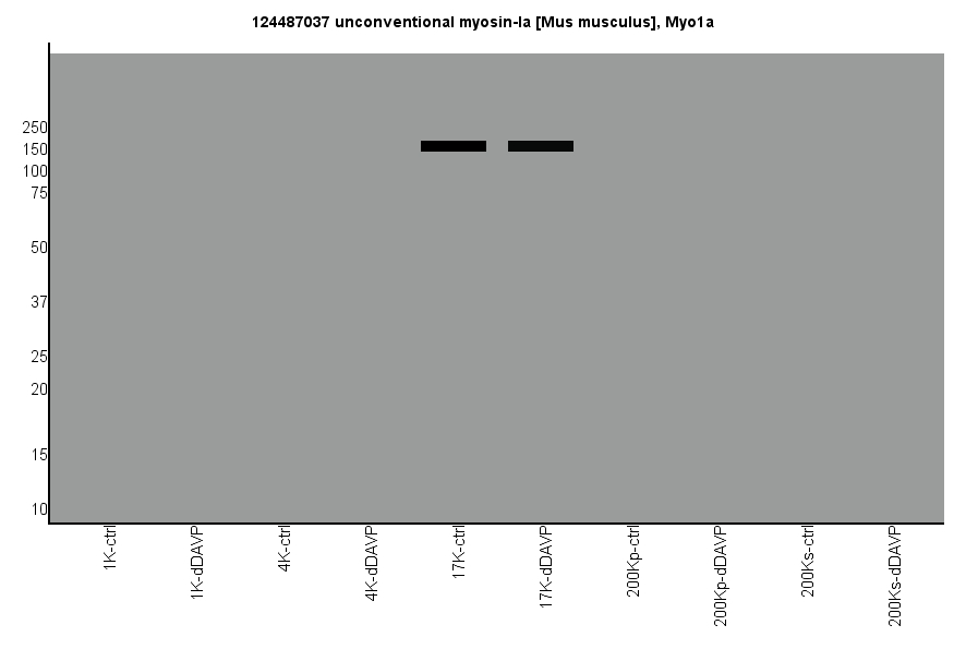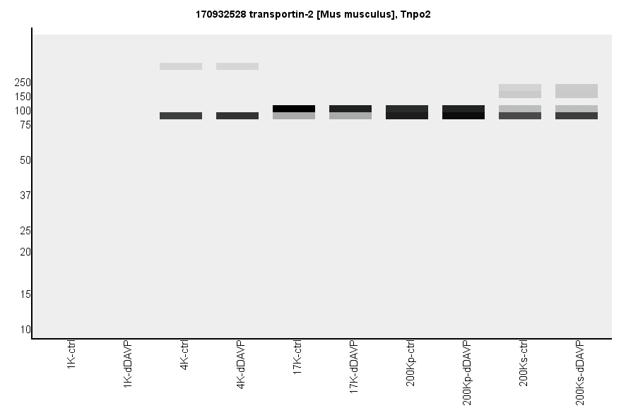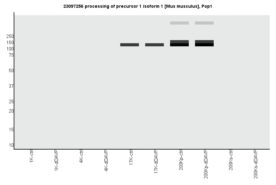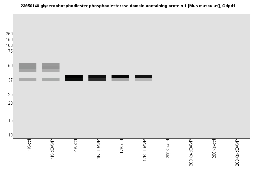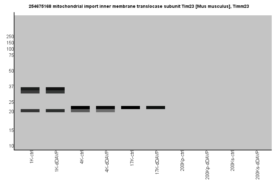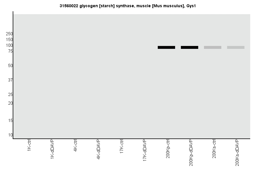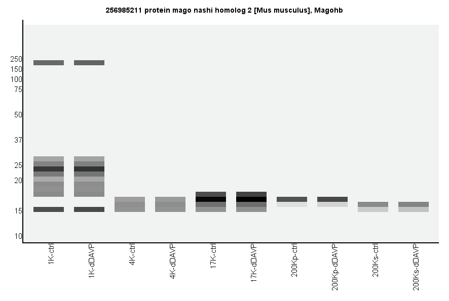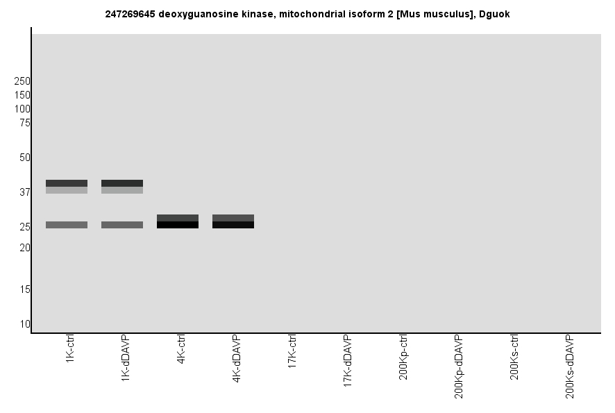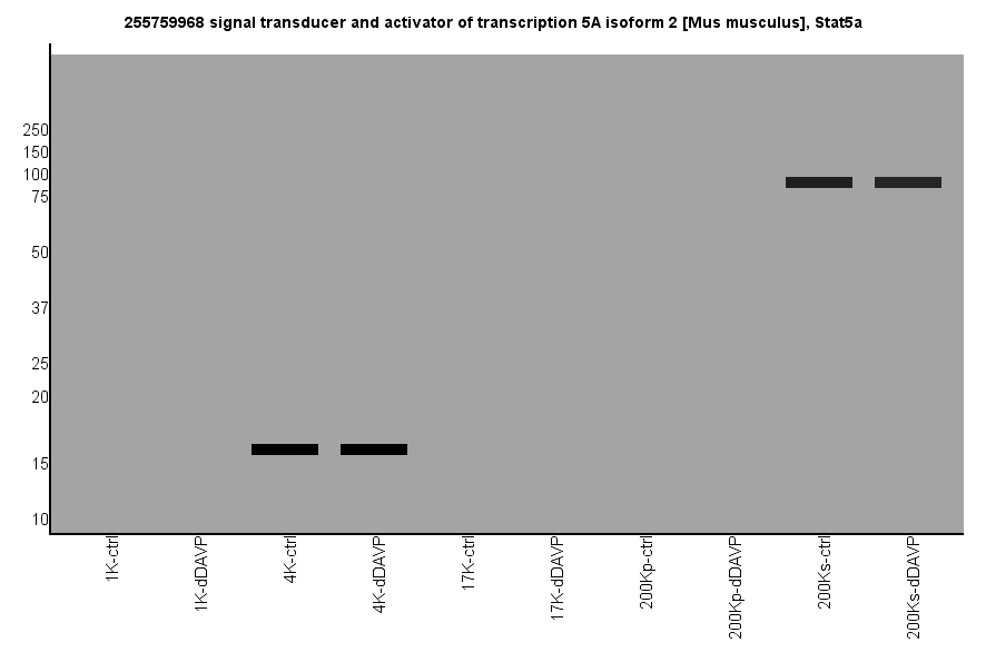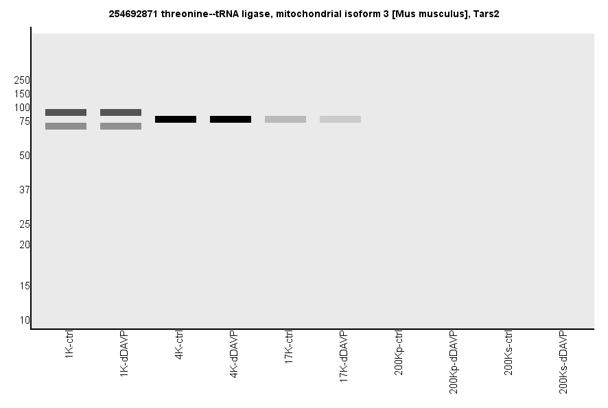 The virtual western blot images show data normalized using a logarithmic conversion scale to map peptide intensities to gray-scale levels. Using this conversion method, low-abundance peptides are generally visible in the blot images. Switch back to the default linear conversion scale database page.