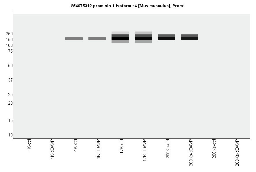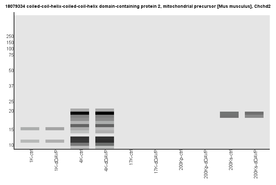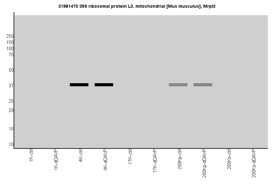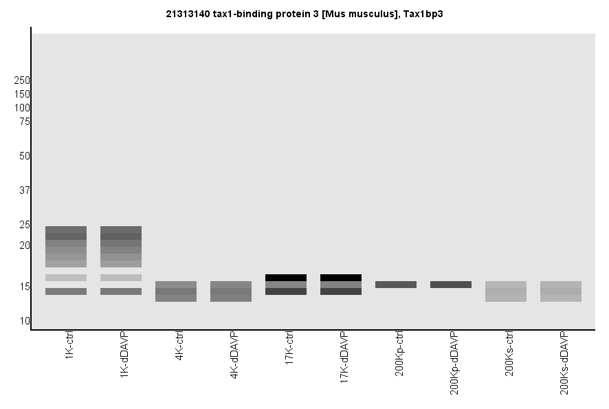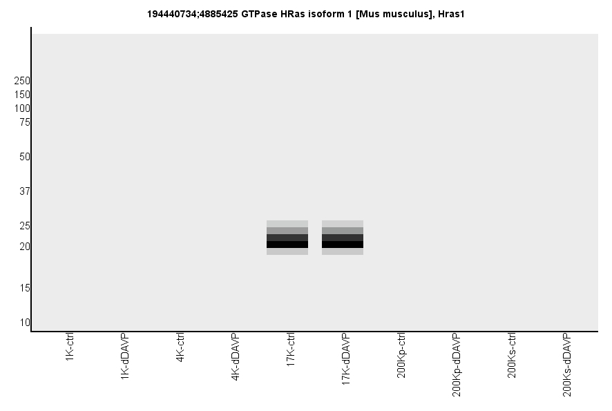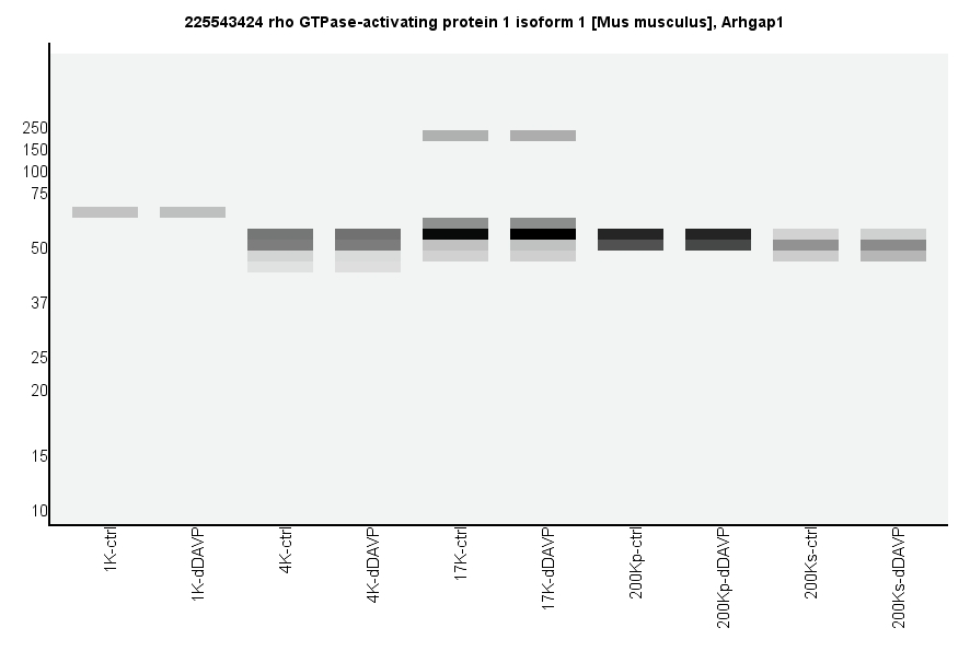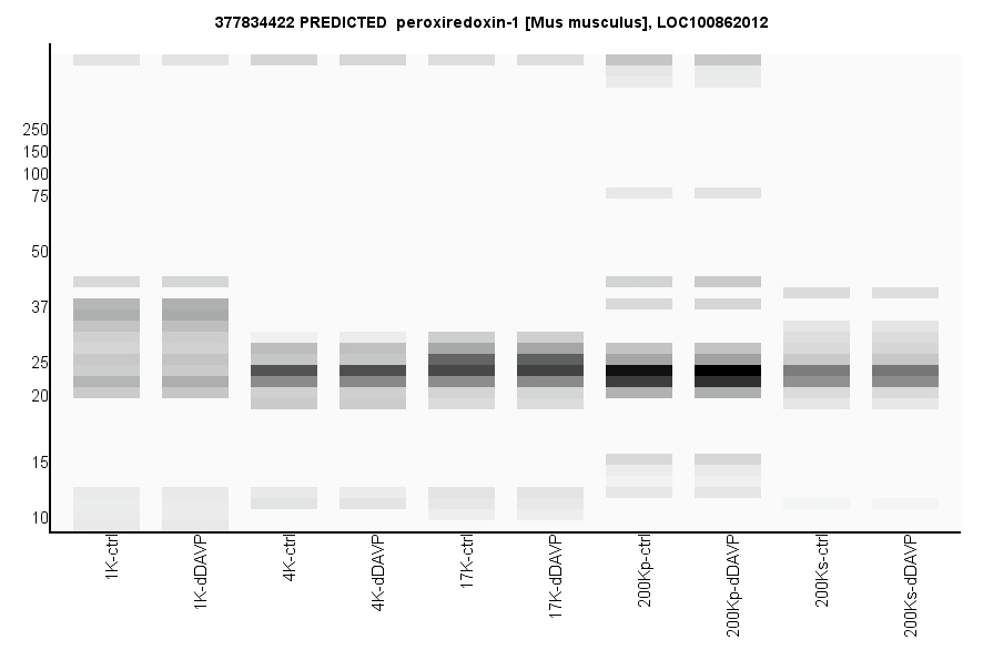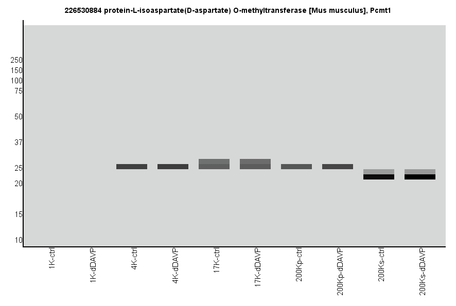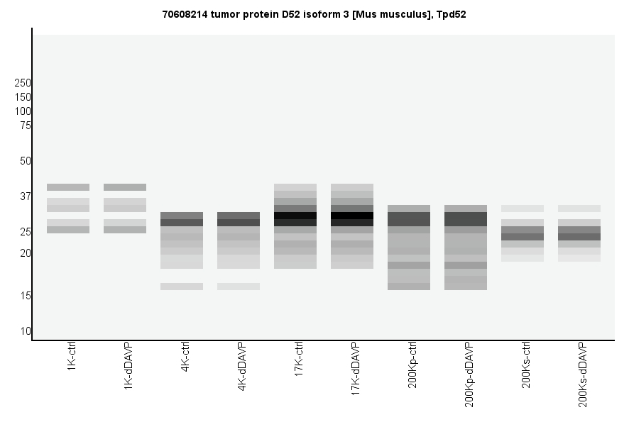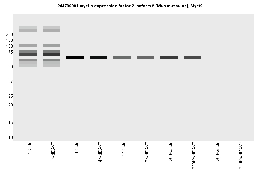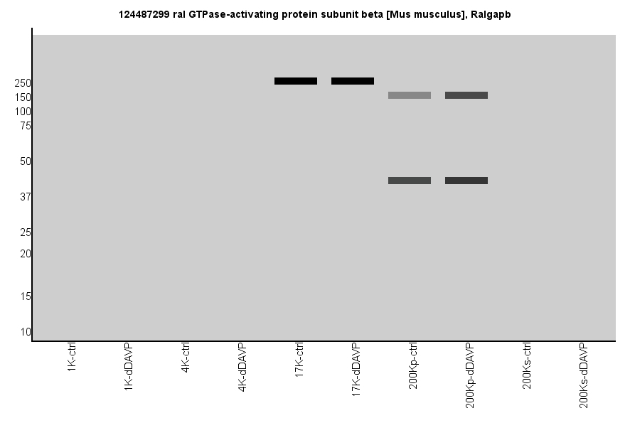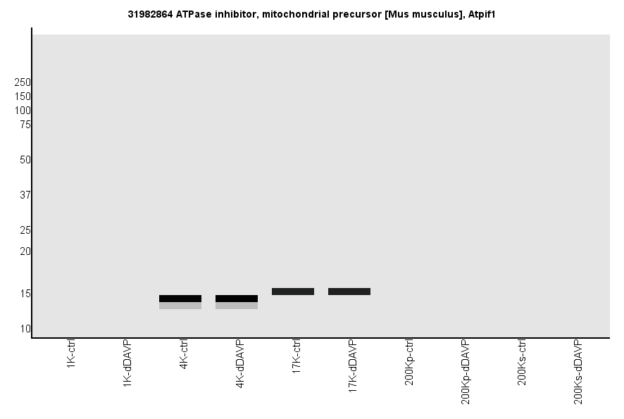 The virtual western blot images show data normalized using a logarithmic conversion scale to map peptide intensities to gray-scale levels. Using this conversion method, low-abundance peptides are generally visible in the blot images. Switch back to the default linear conversion scale database page.