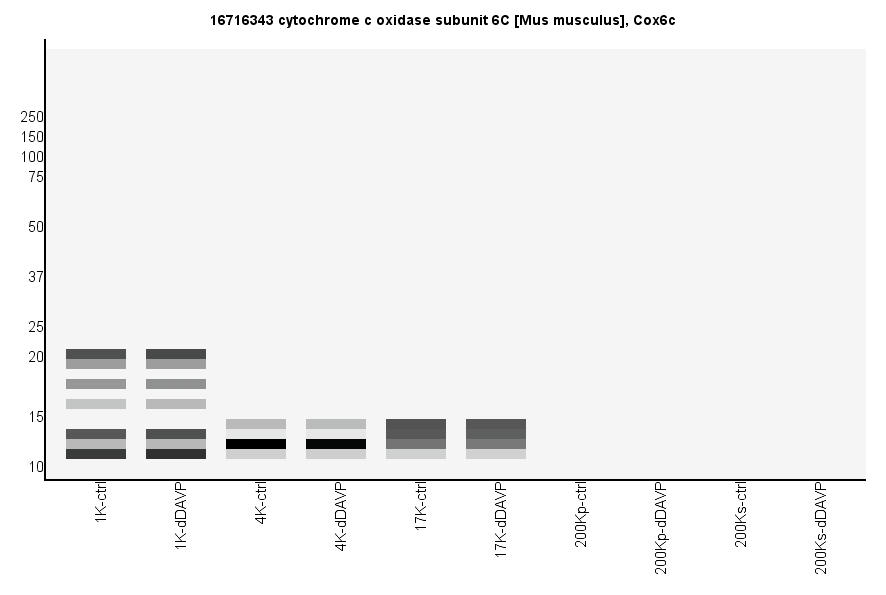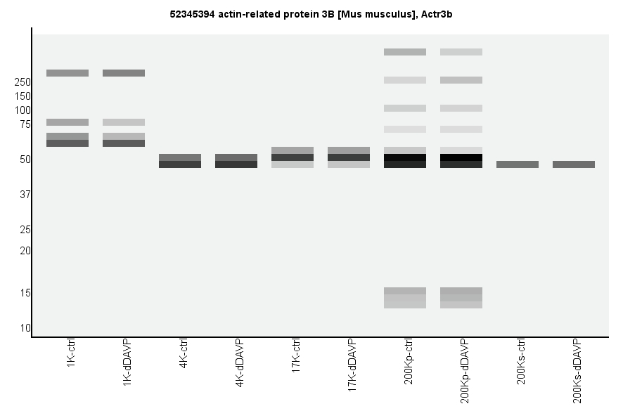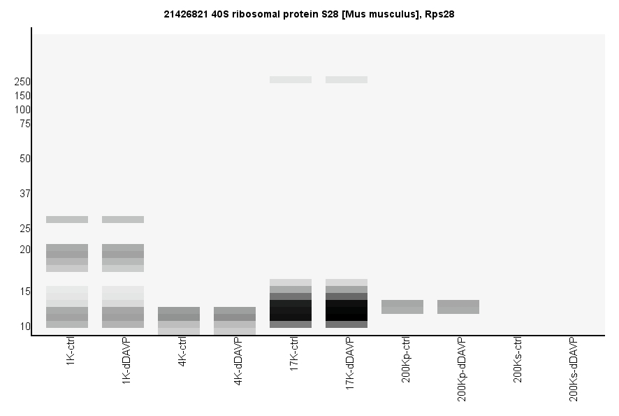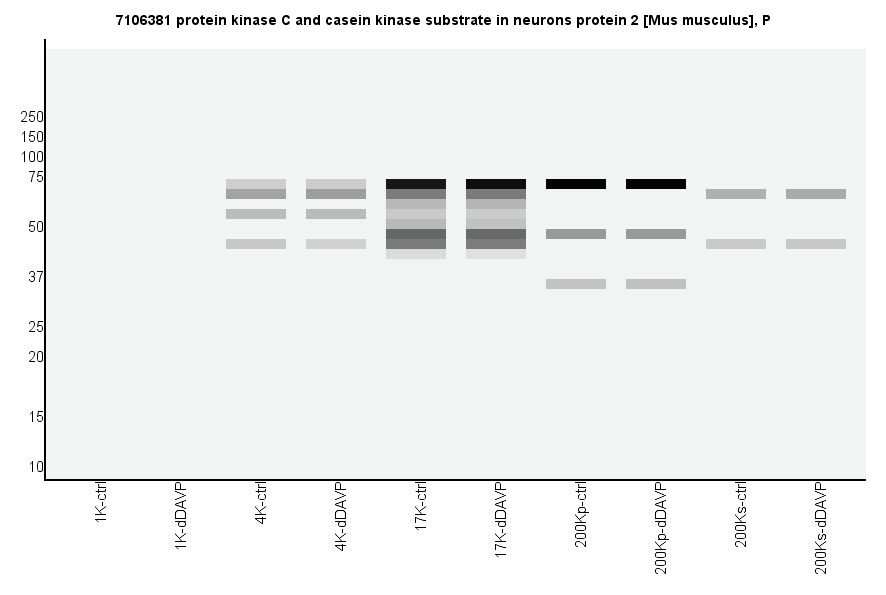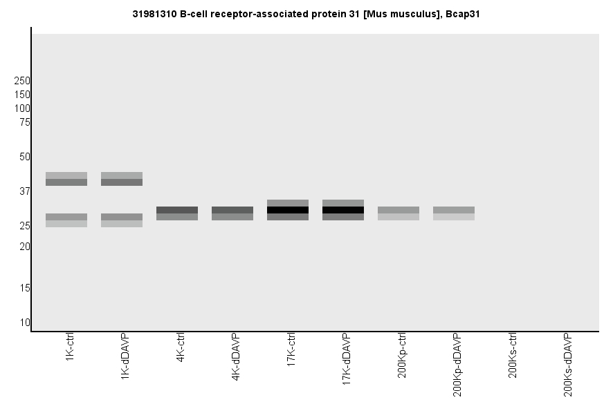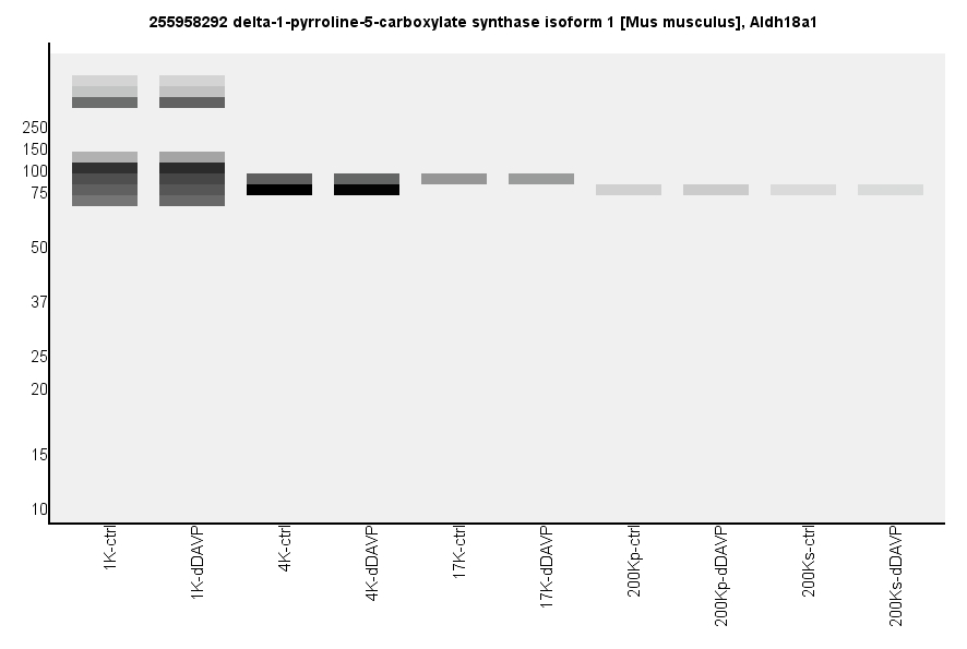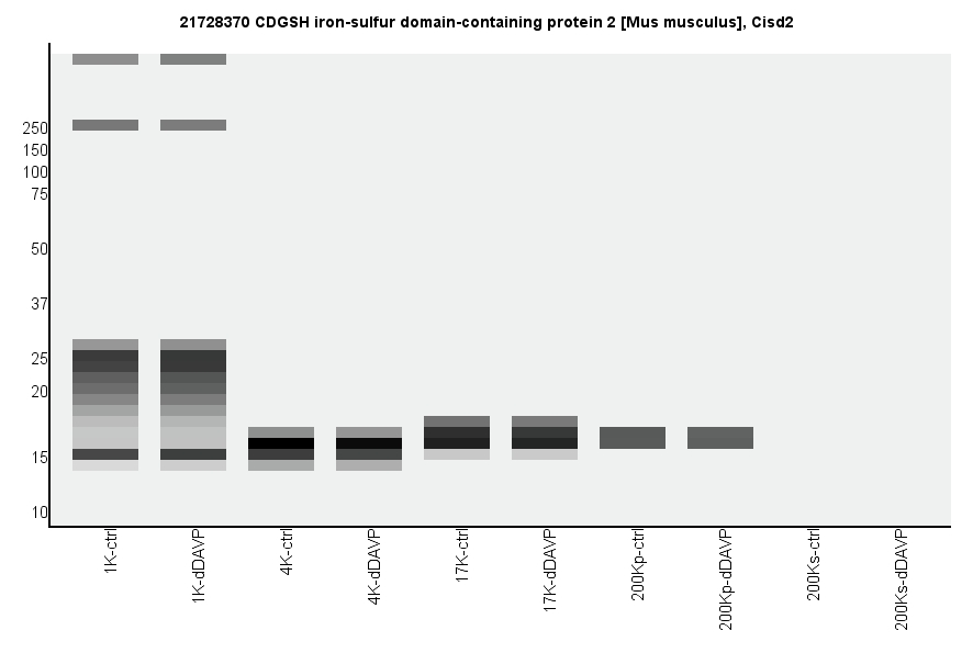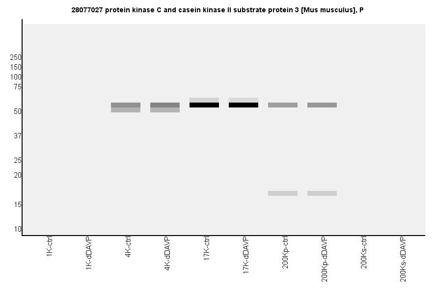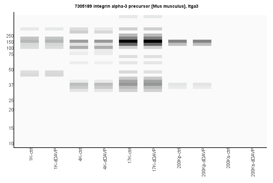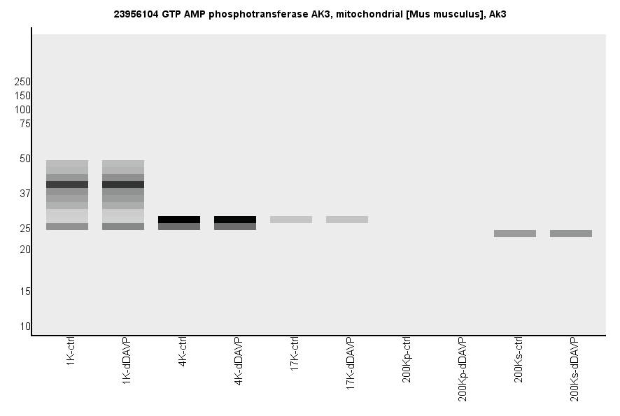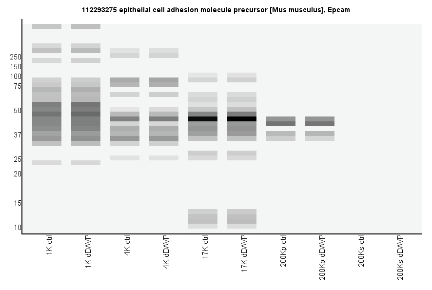 The virtual western blot images show data normalized using a logarithmic conversion scale to map peptide intensities to gray-scale levels. Using this conversion method, low-abundance peptides are generally visible in the blot images. Switch back to the default linear conversion scale database page.
