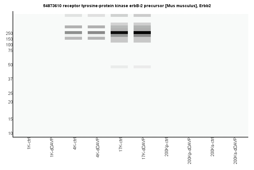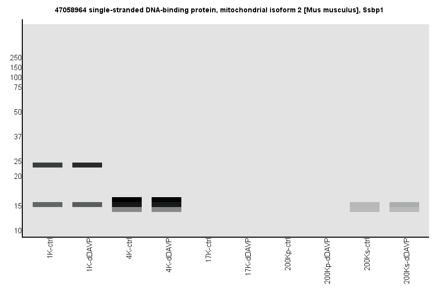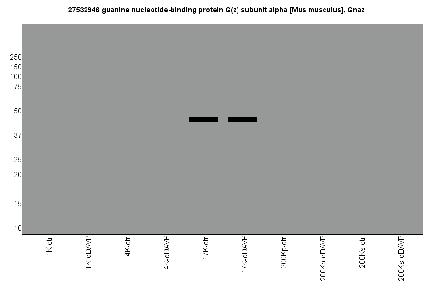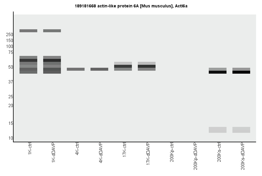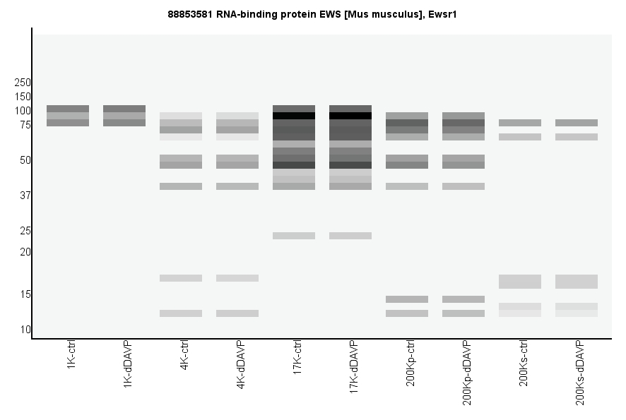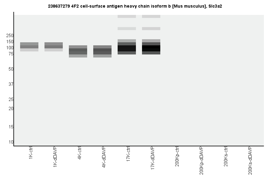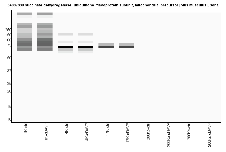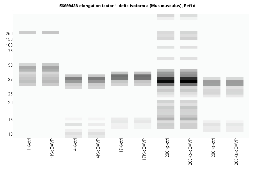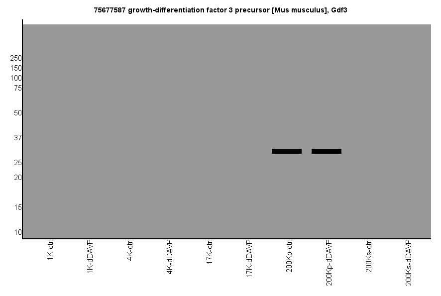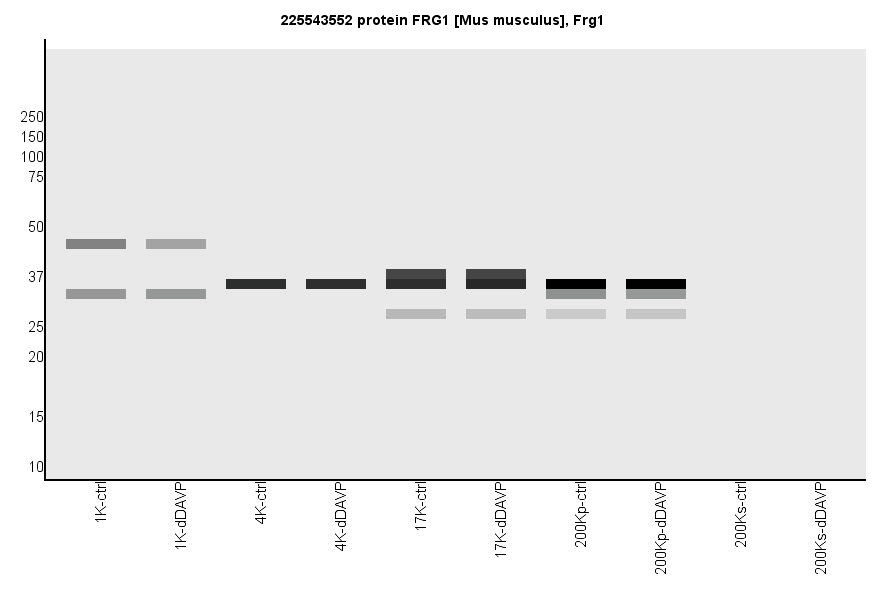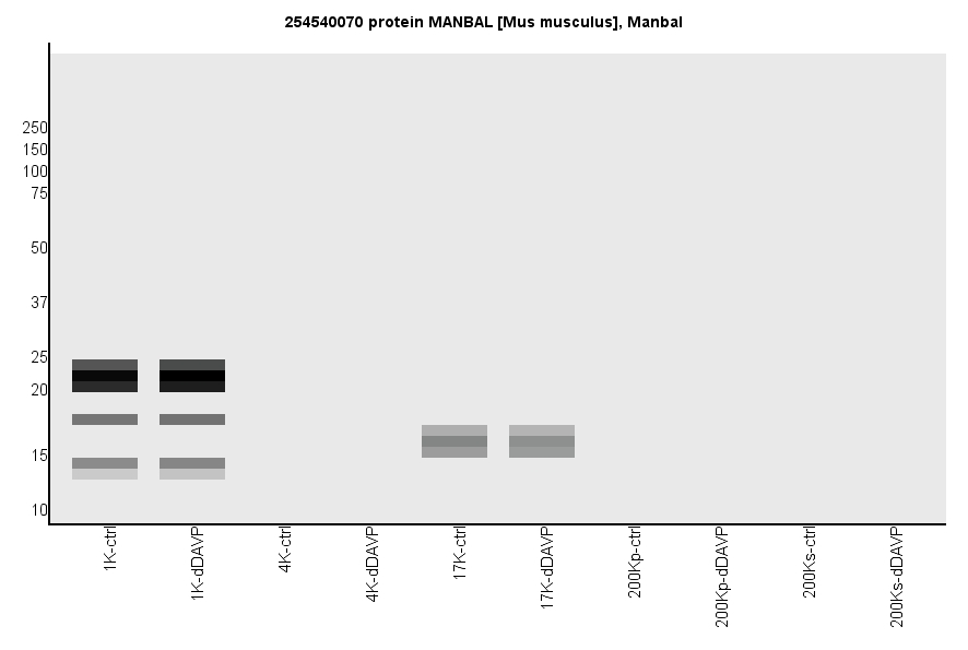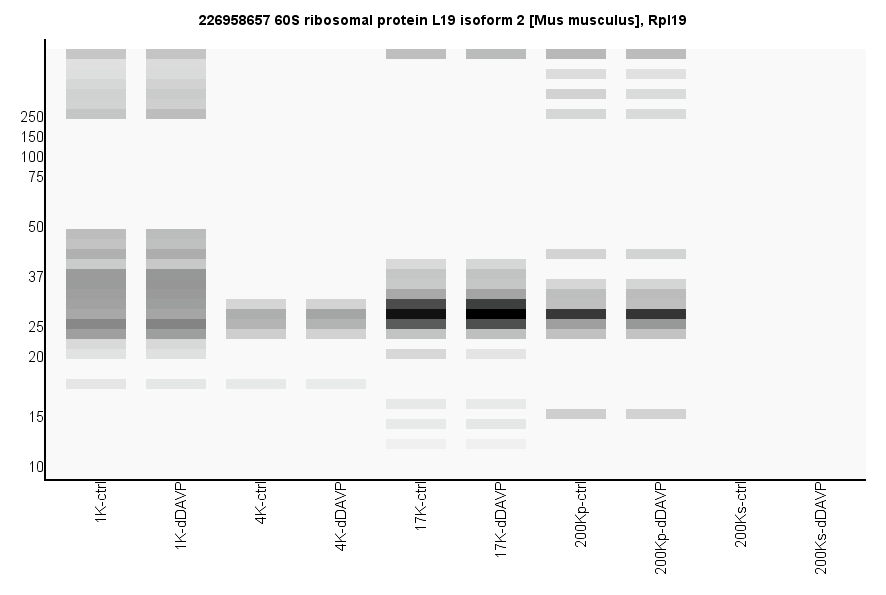 The virtual western blot images show data normalized using a logarithmic conversion scale to map peptide intensities to gray-scale levels. Using this conversion method, low-abundance peptides are generally visible in the blot images. Switch back to the default linear conversion scale database page.
