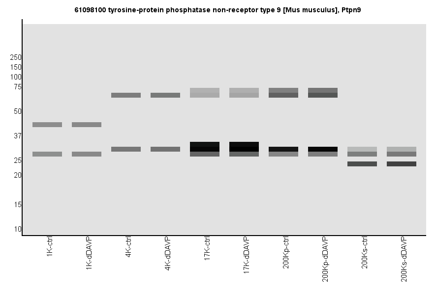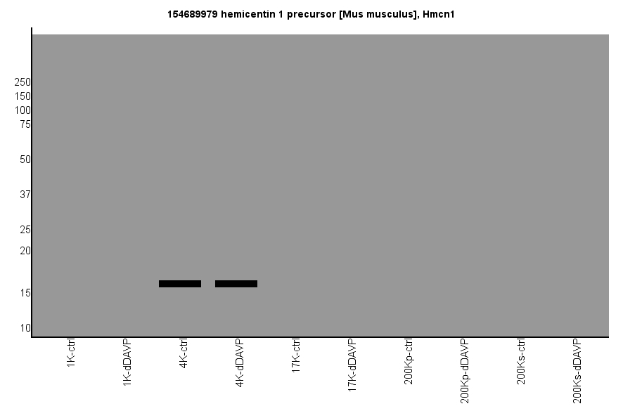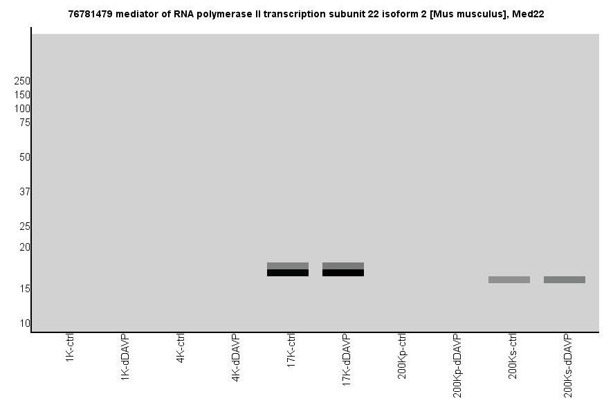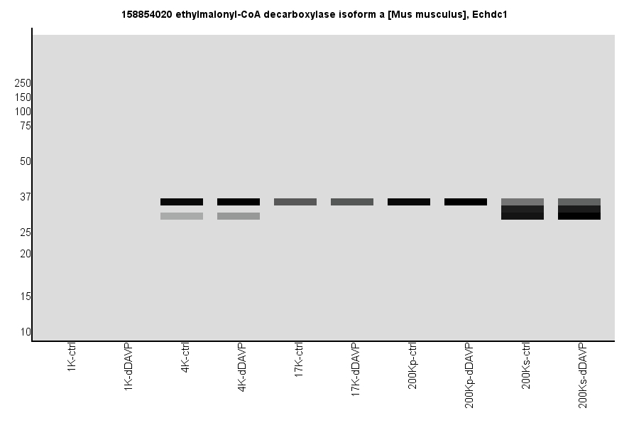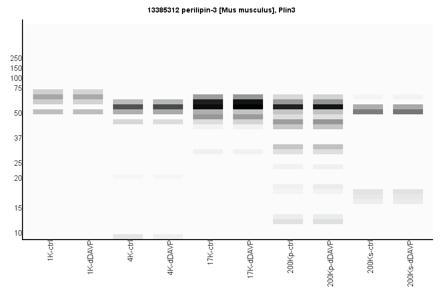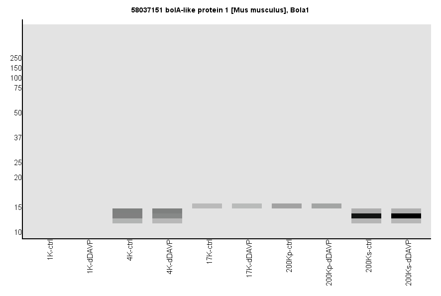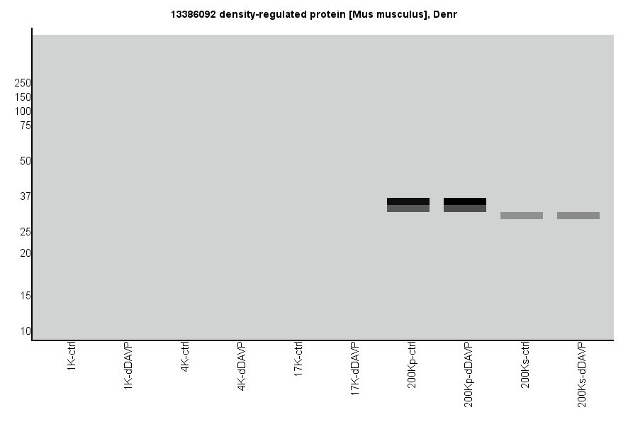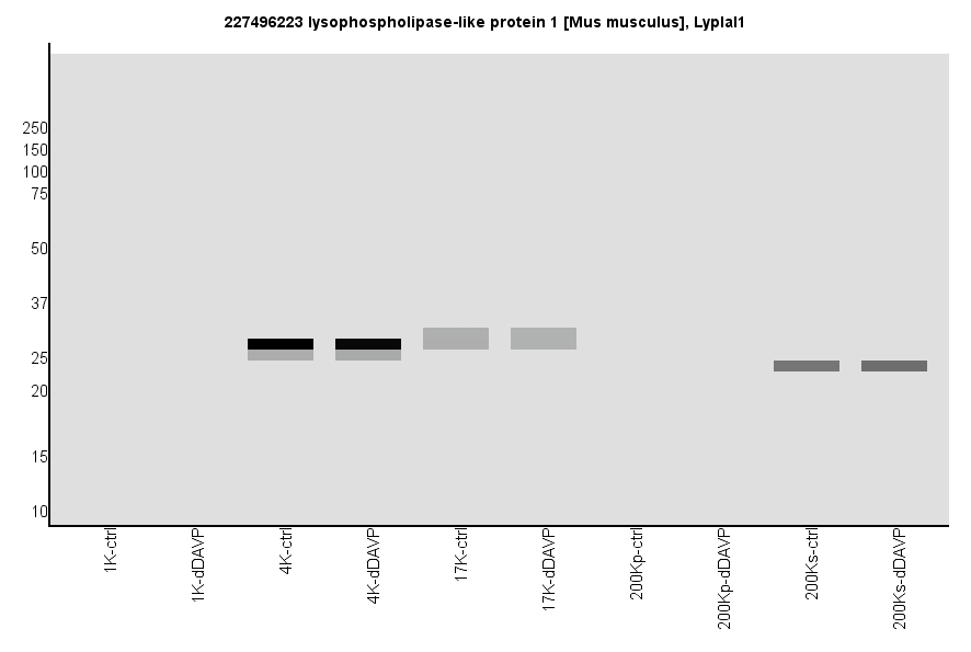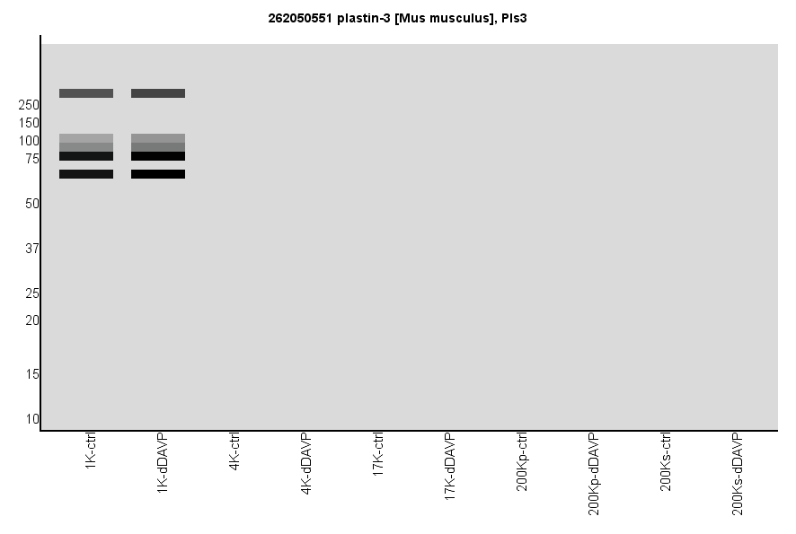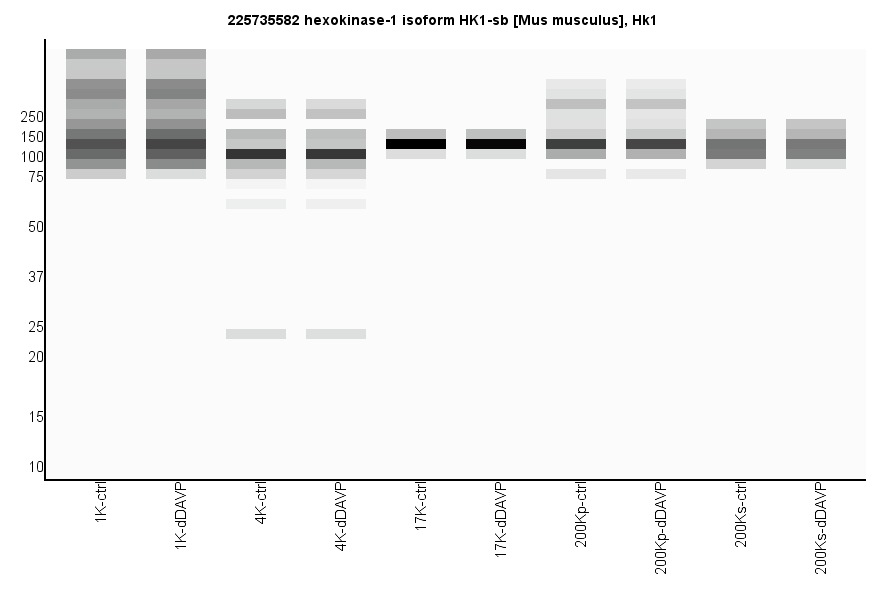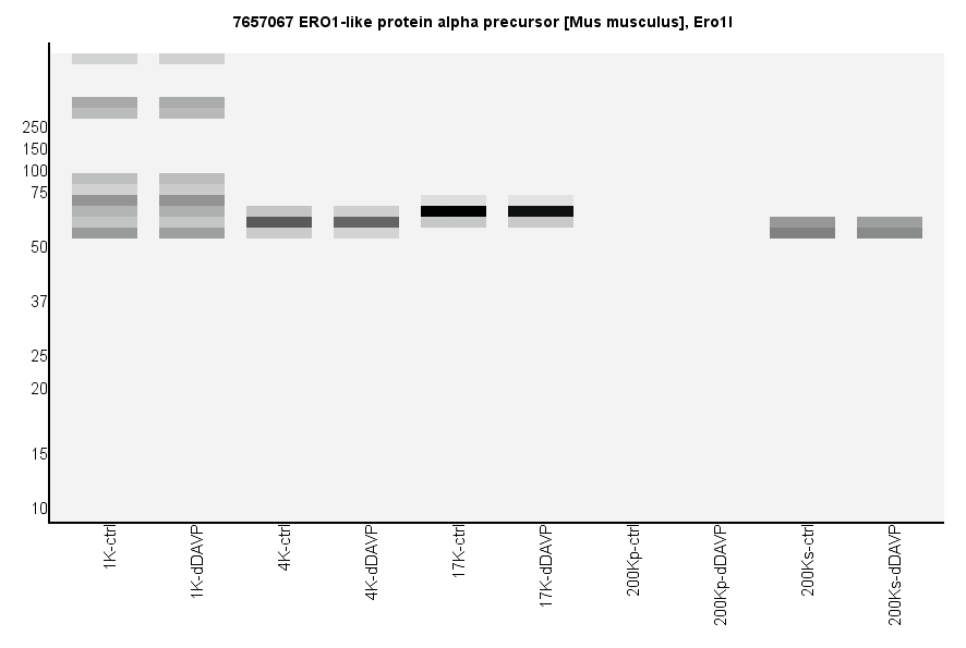 The virtual western blot images show data normalized using a logarithmic conversion scale to map peptide intensities to gray-scale levels. Using this conversion method, low-abundance peptides are generally visible in the blot images. Switch back to the default linear conversion scale database page.