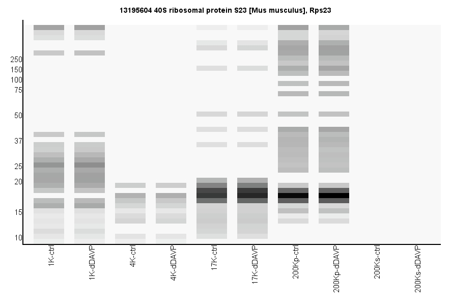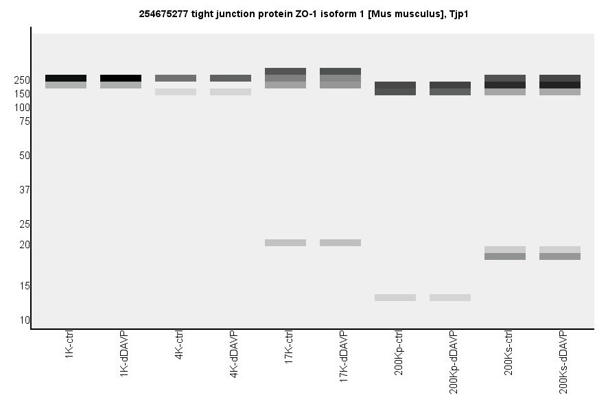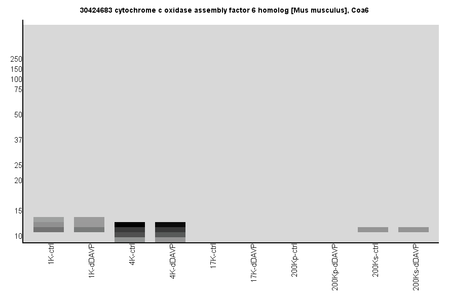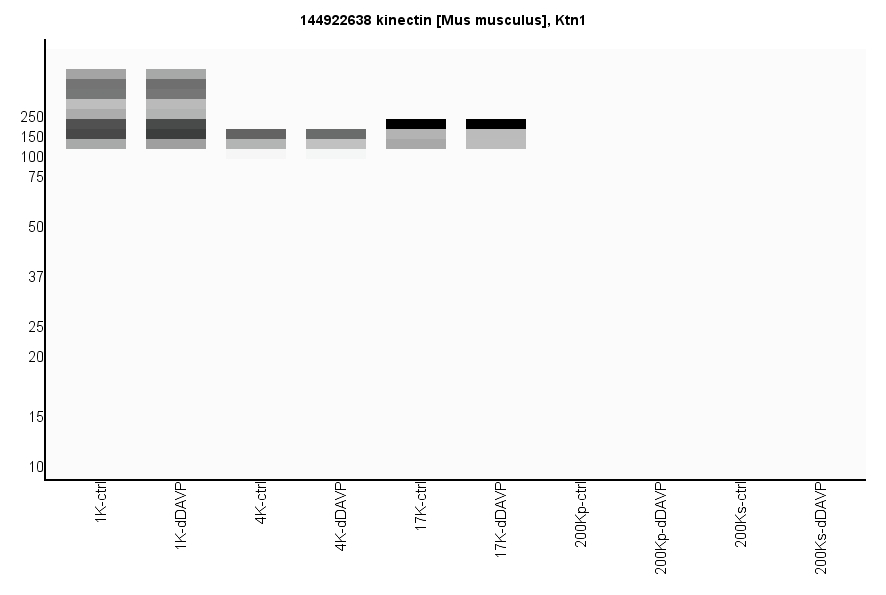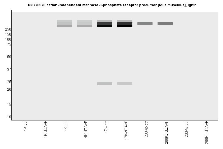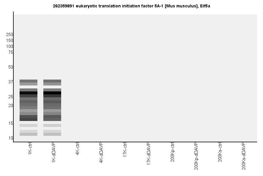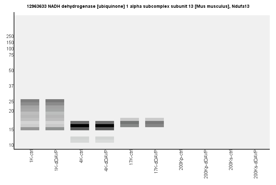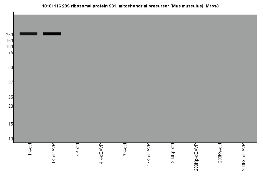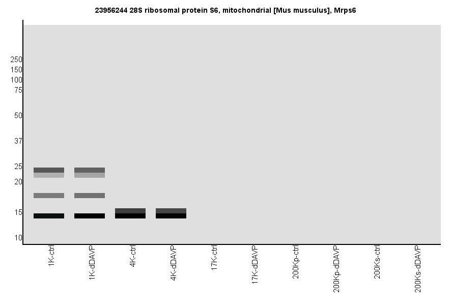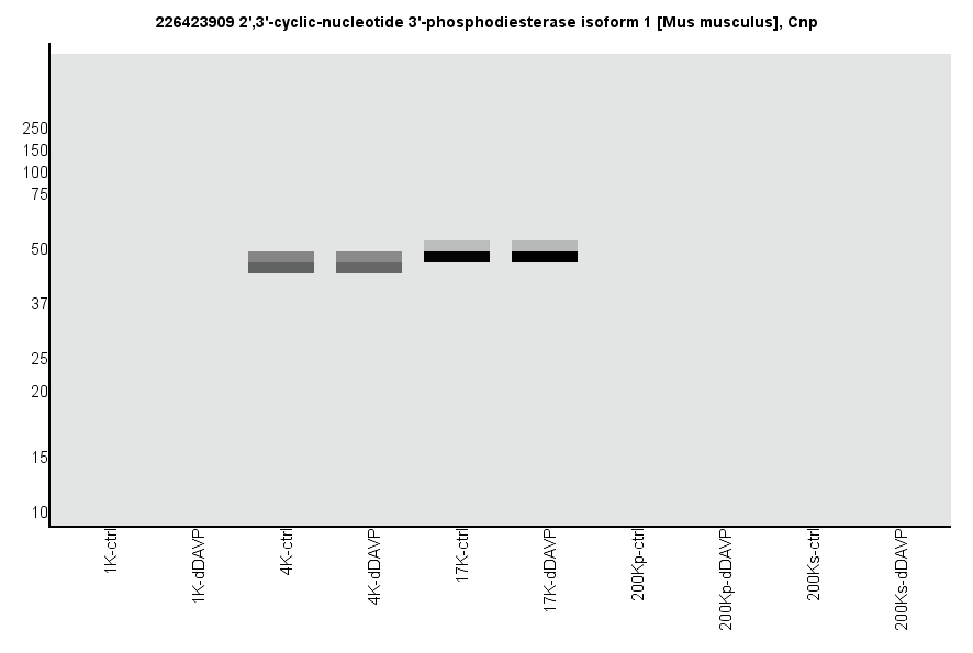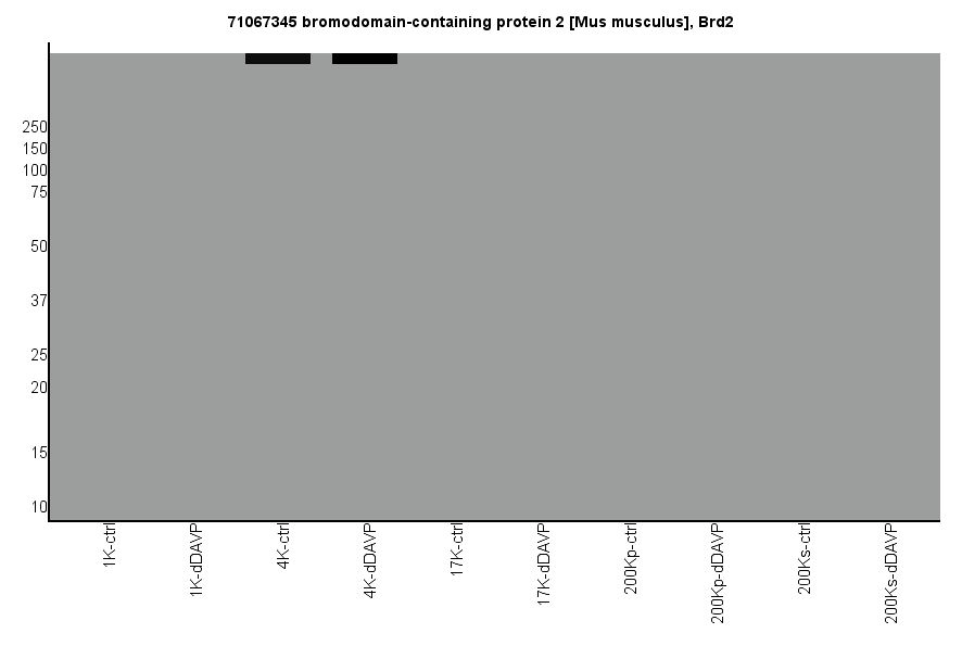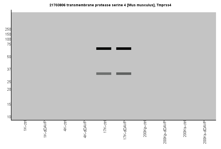 The virtual western blot images show data normalized using a logarithmic conversion scale to map peptide intensities to gray-scale levels. Using this conversion method, low-abundance peptides are generally visible in the blot images. Switch back to the default linear conversion scale database page.