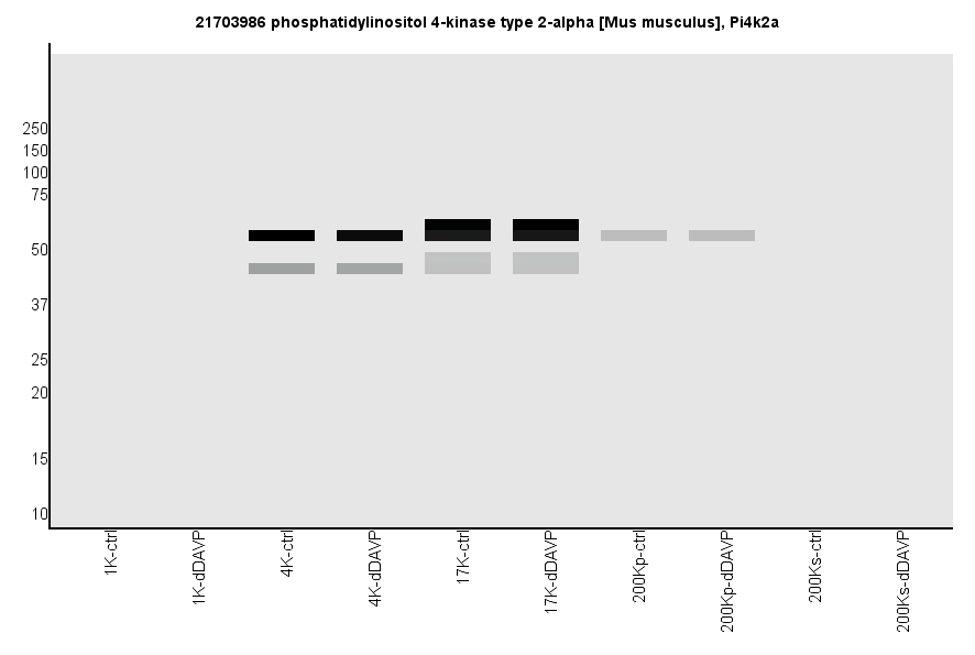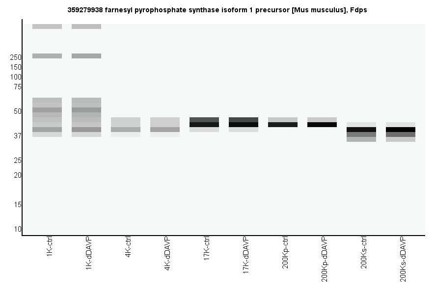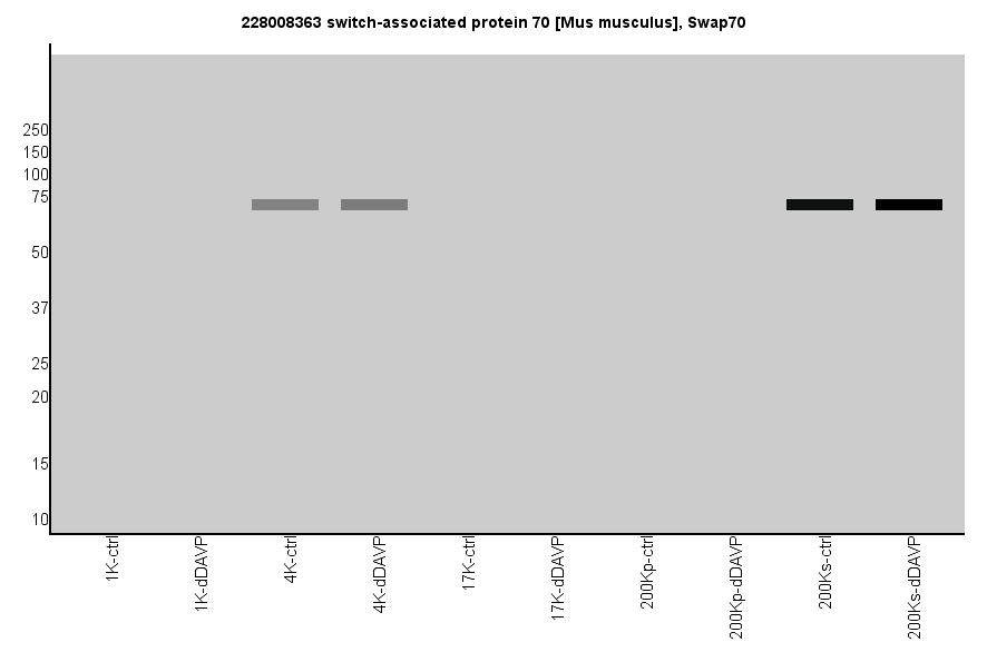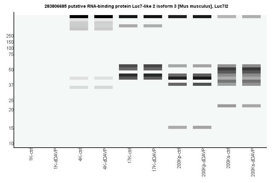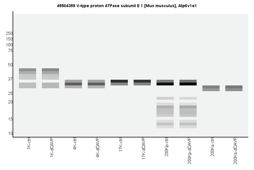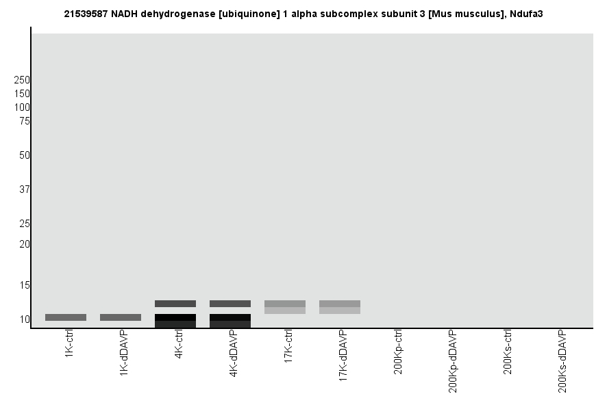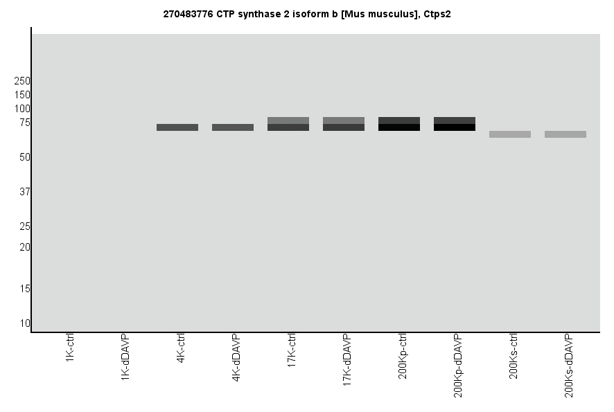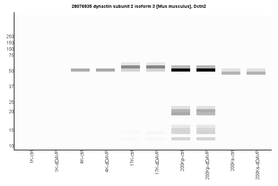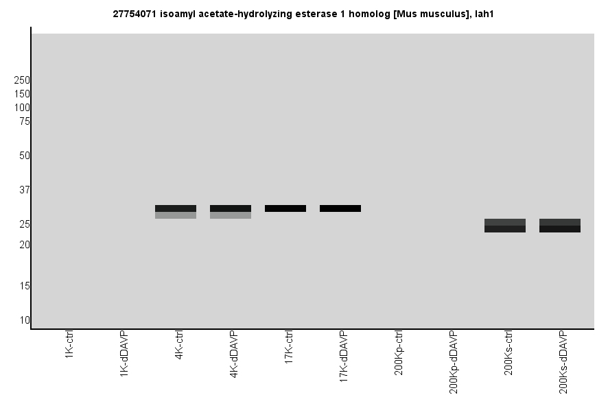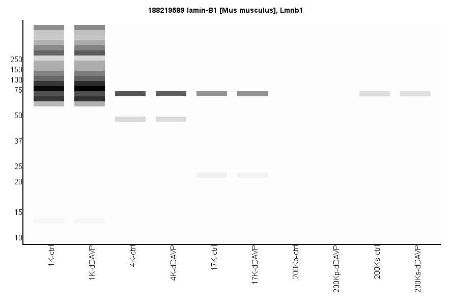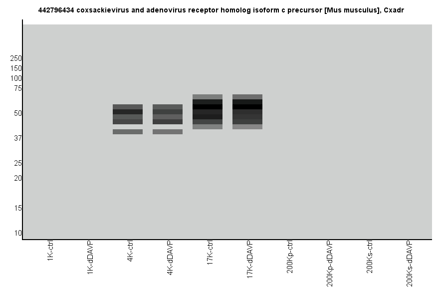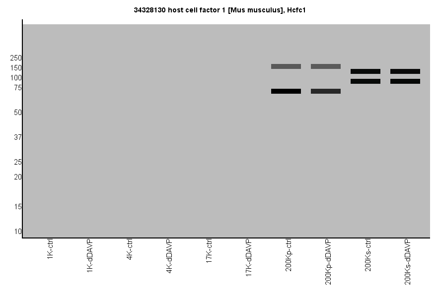 The virtual western blot images show data normalized using a logarithmic conversion scale to map peptide intensities to gray-scale levels. Using this conversion method, low-abundance peptides are generally visible in the blot images. Switch back to the default linear conversion scale database page.