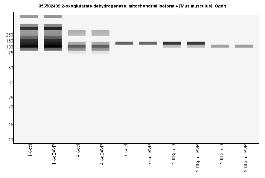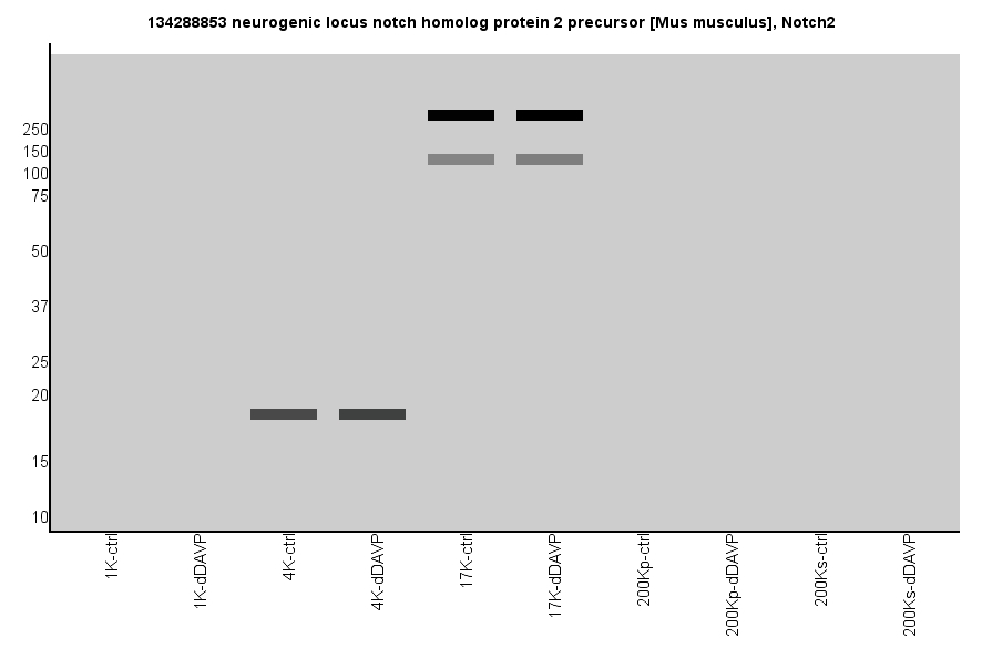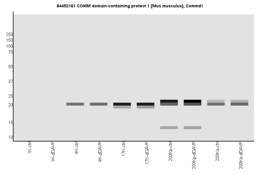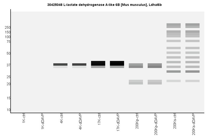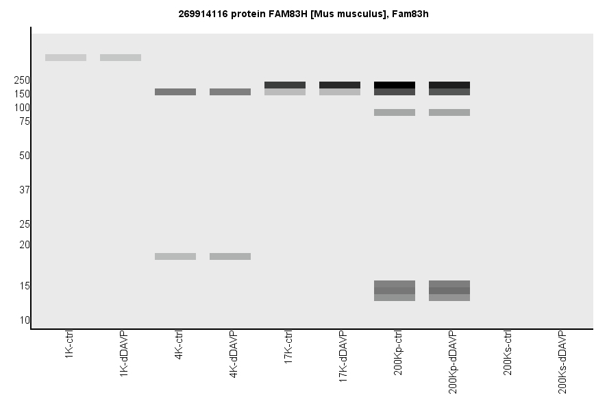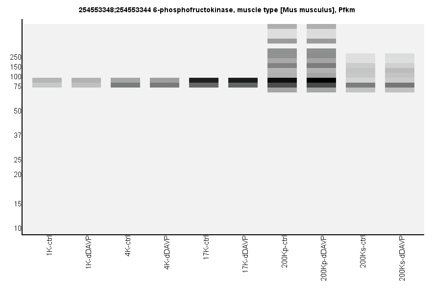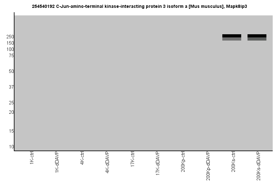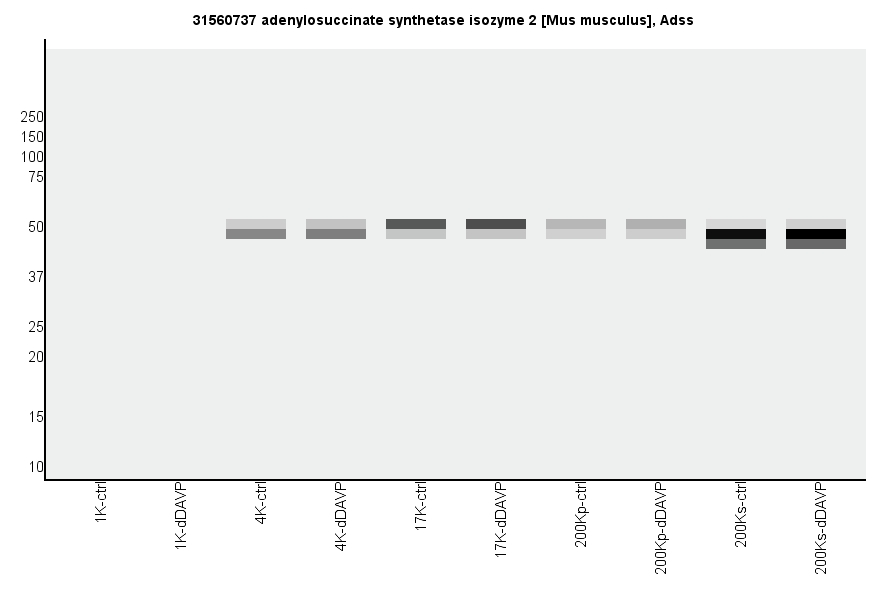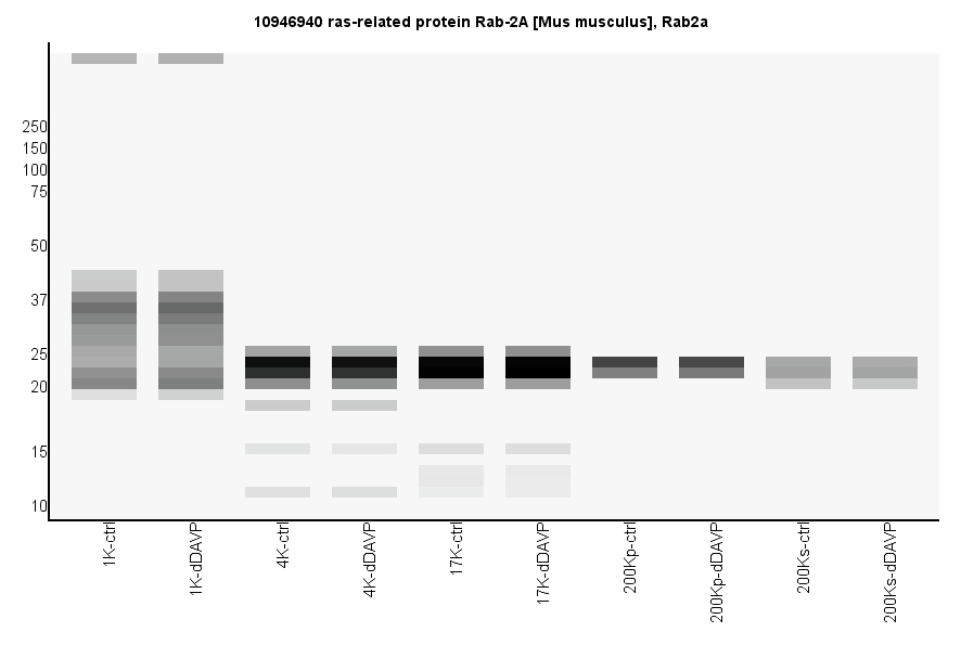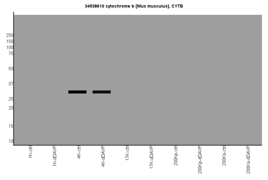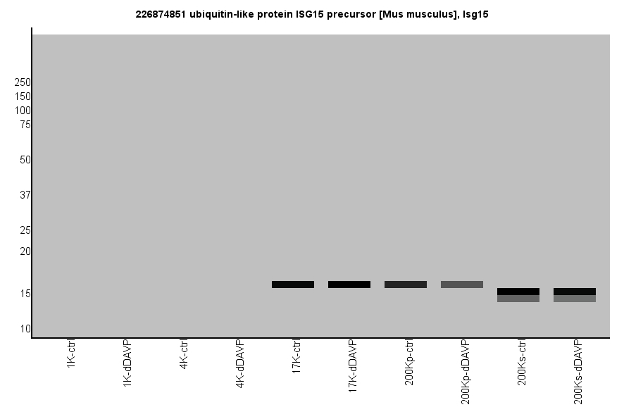 The virtual western blot images show data normalized using a logarithmic conversion scale to map peptide intensities to gray-scale levels. Using this conversion method, low-abundance peptides are generally visible in the blot images. Switch back to the default linear conversion scale database page.