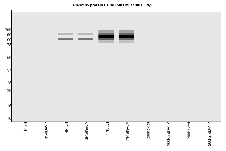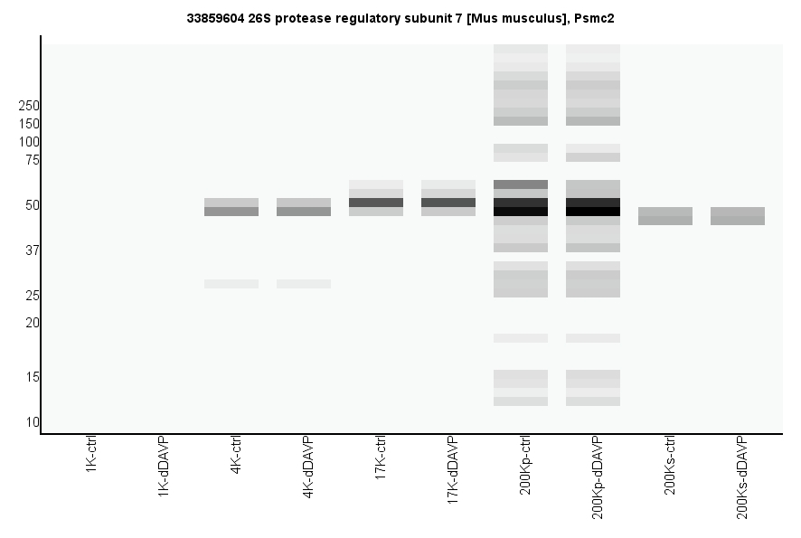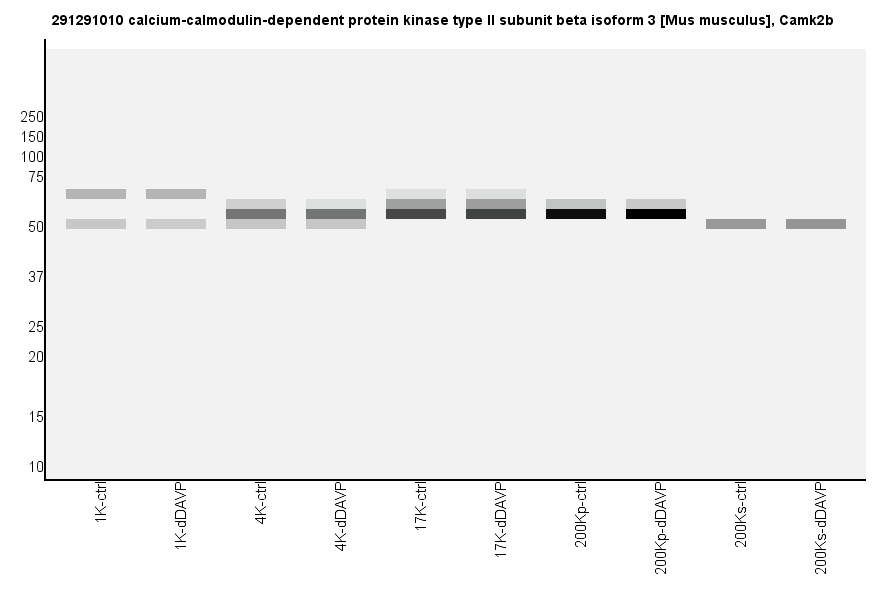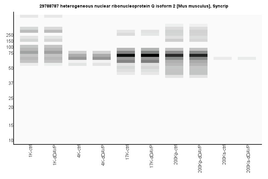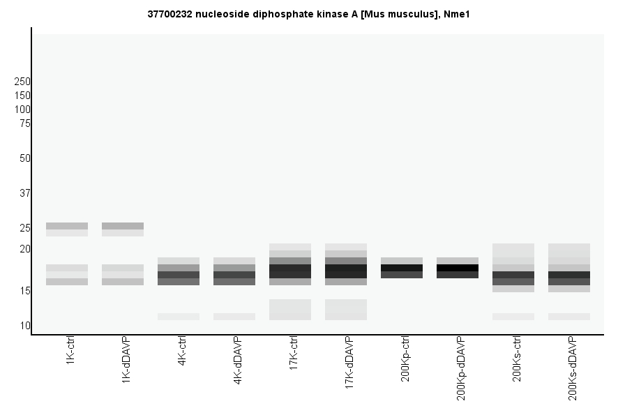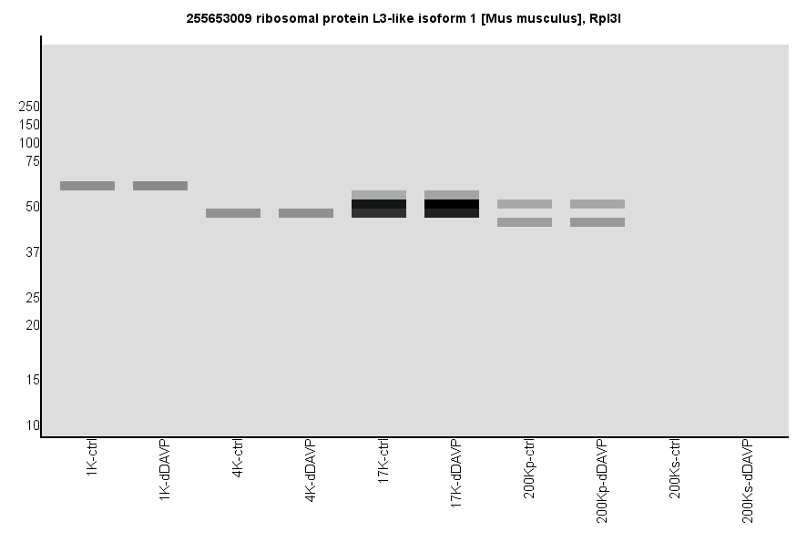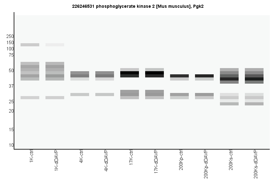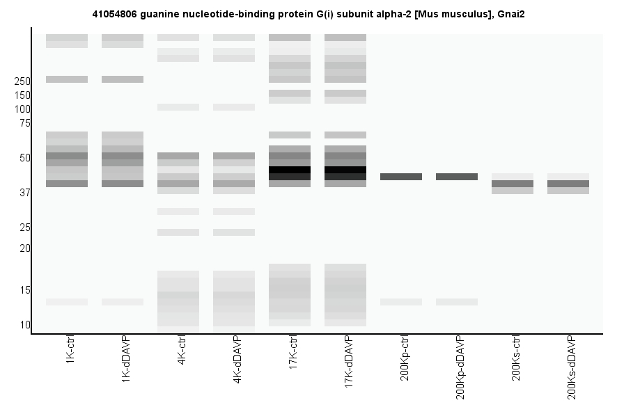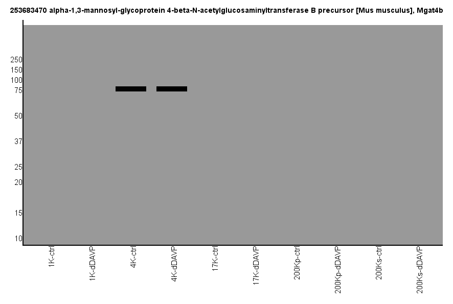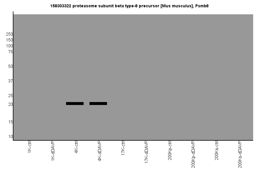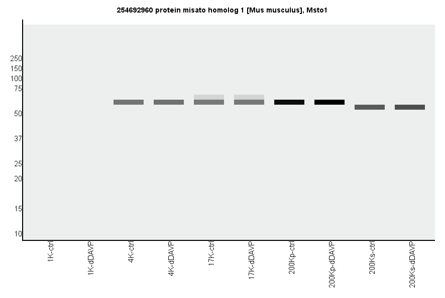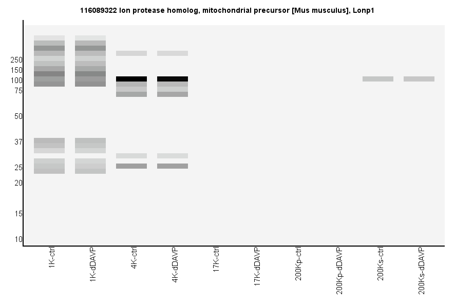 The virtual western blot images show data normalized using a logarithmic conversion scale to map peptide intensities to gray-scale levels. Using this conversion method, low-abundance peptides are generally visible in the blot images. Switch back to the default linear conversion scale database page.