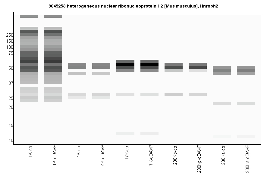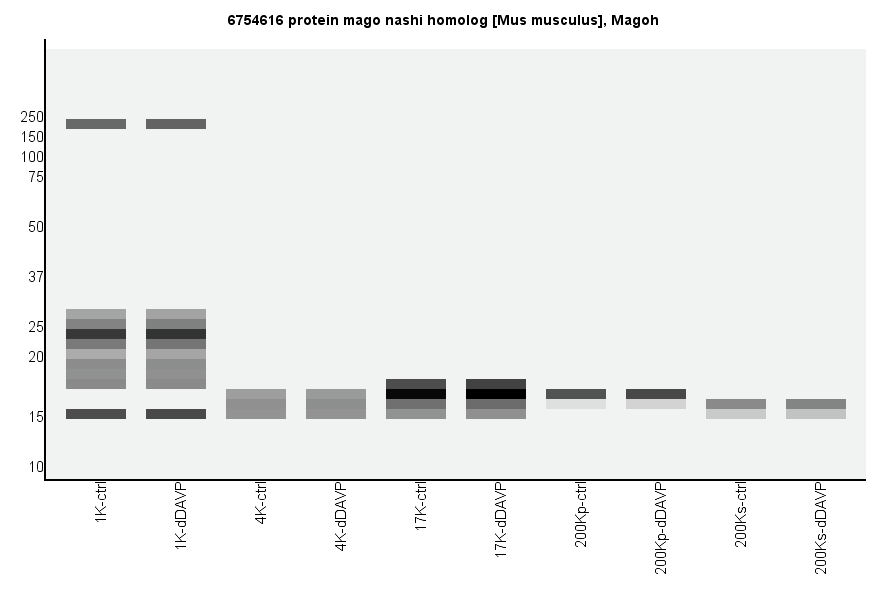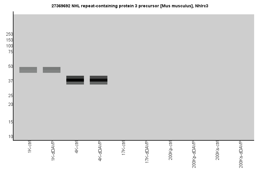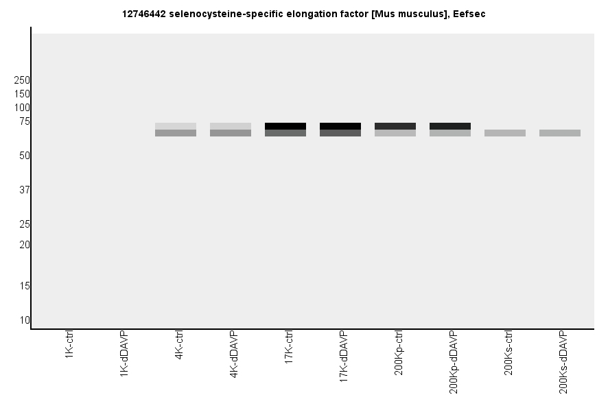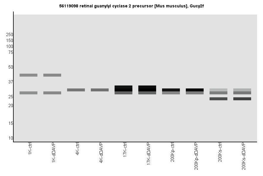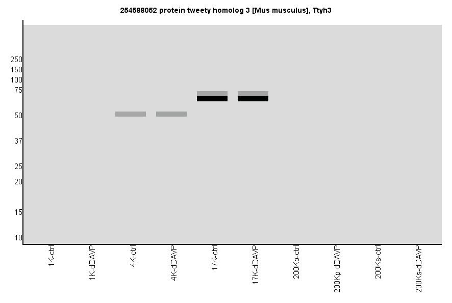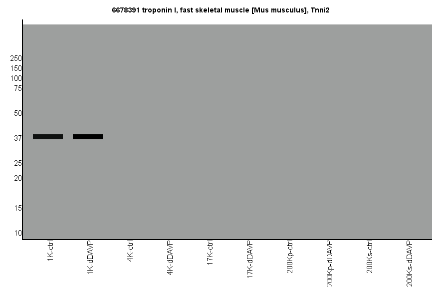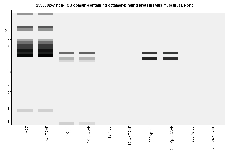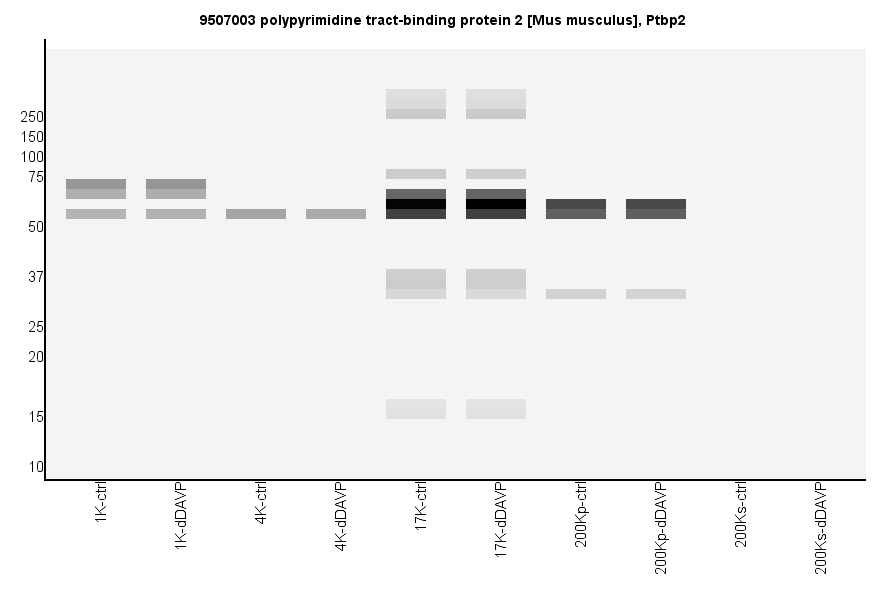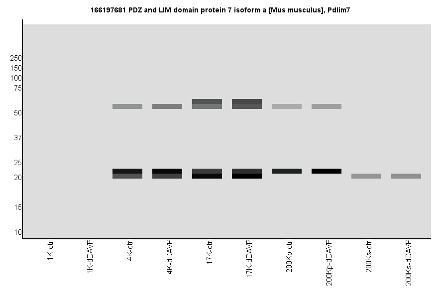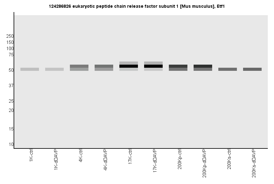 The virtual western blot images show data normalized using a logarithmic conversion scale to map peptide intensities to gray-scale levels. Using this conversion method, low-abundance peptides are generally visible in the blot images. Switch back to the default linear conversion scale database page.