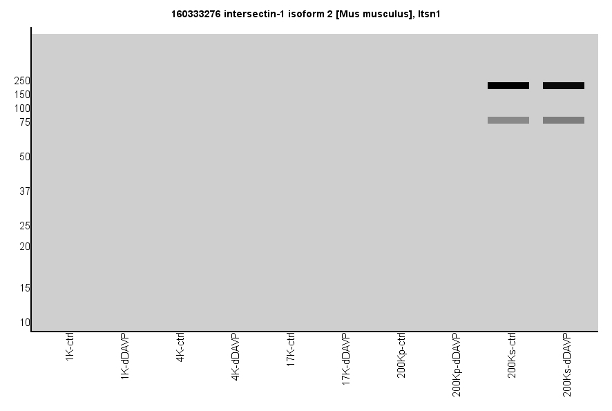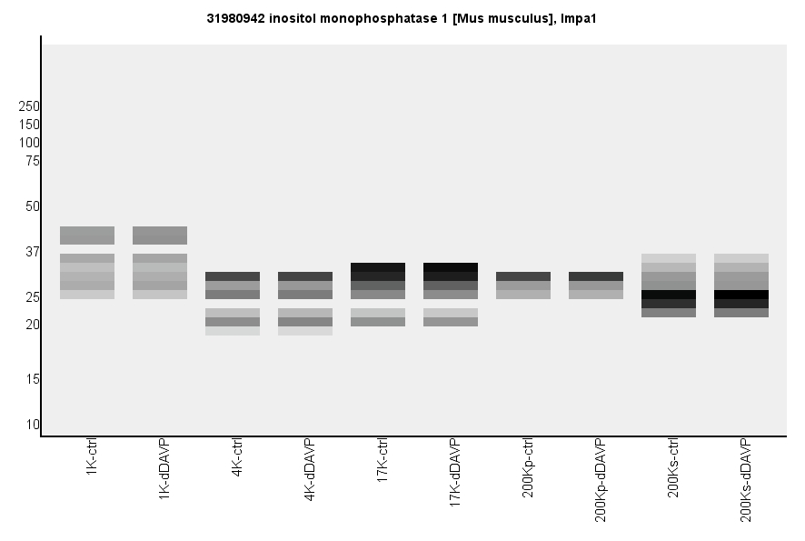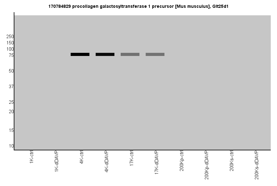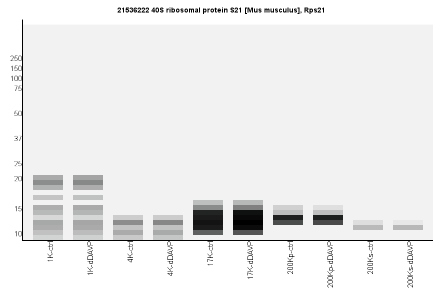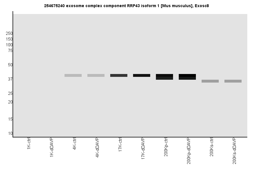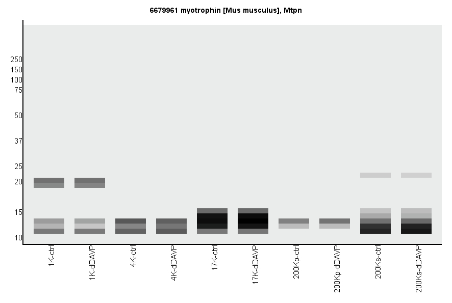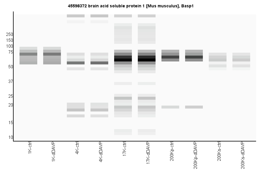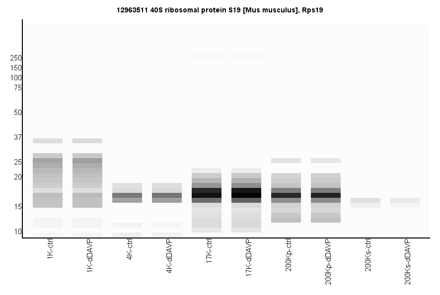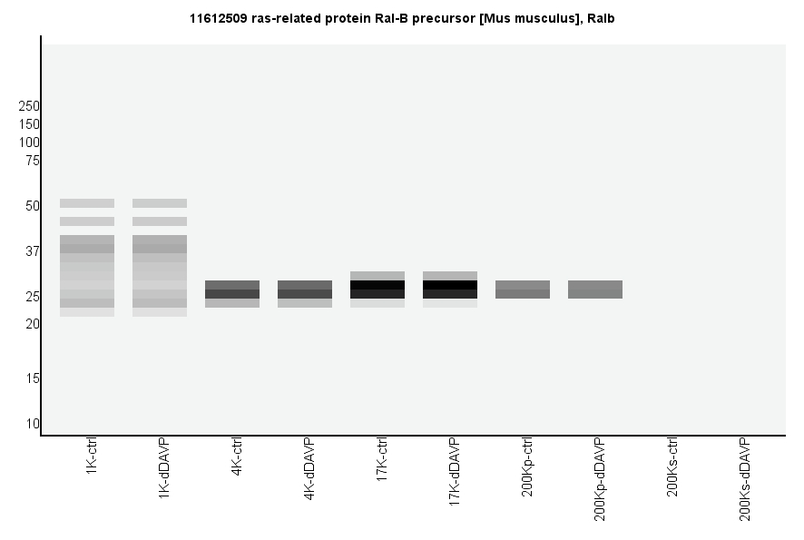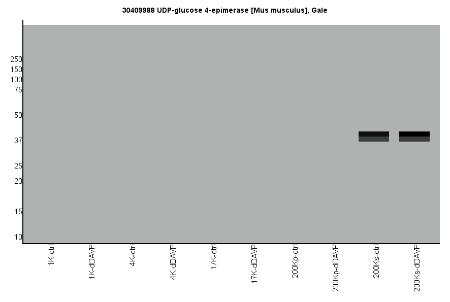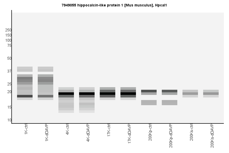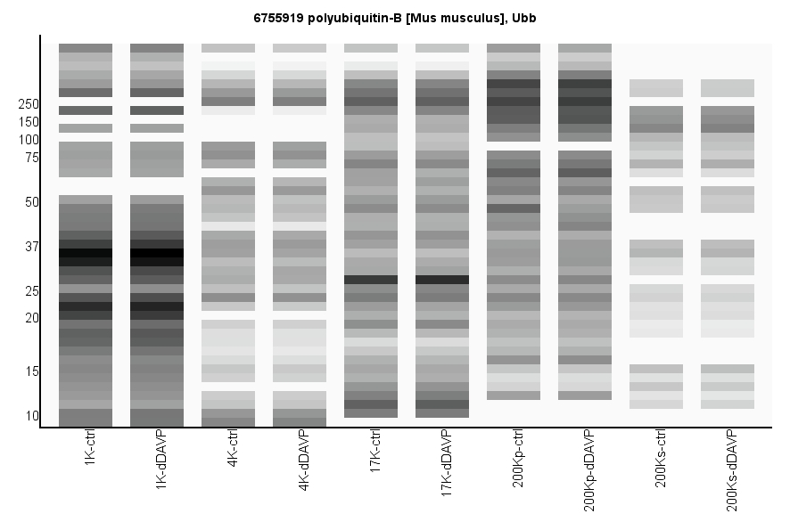 The virtual western blot images show data normalized using a logarithmic conversion scale to map peptide intensities to gray-scale levels. Using this conversion method, low-abundance peptides are generally visible in the blot images. Switch back to the default linear conversion scale database page.