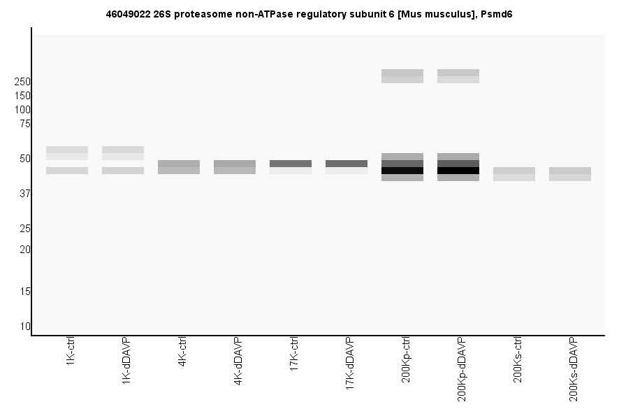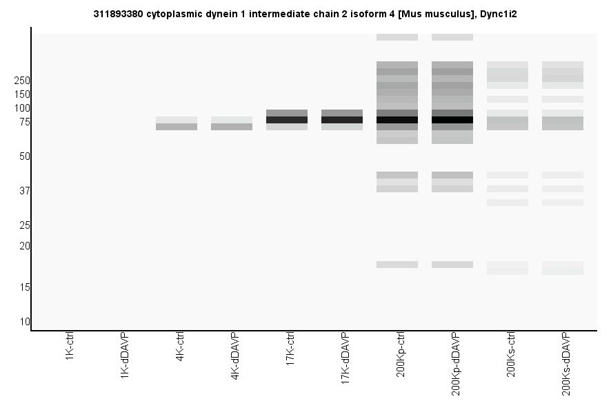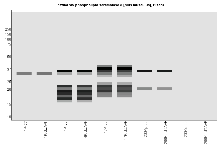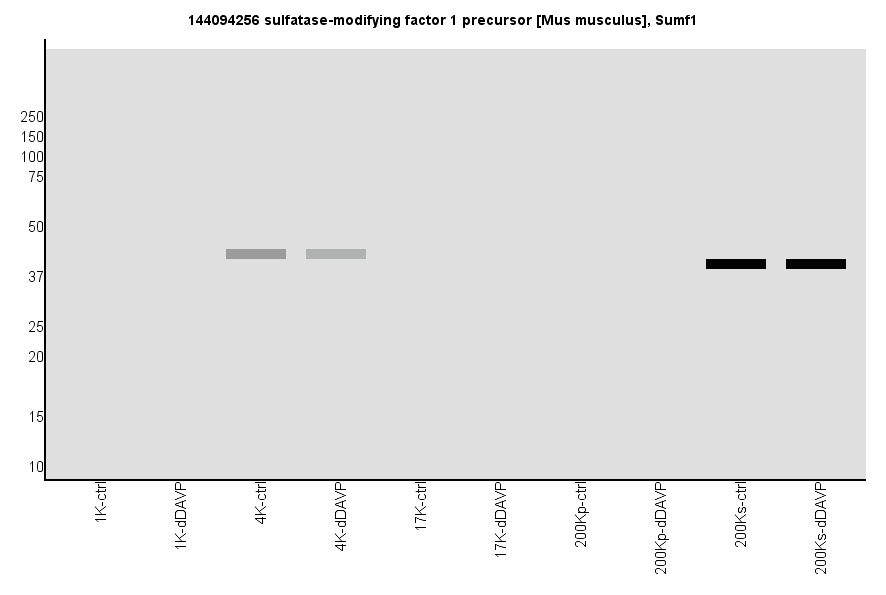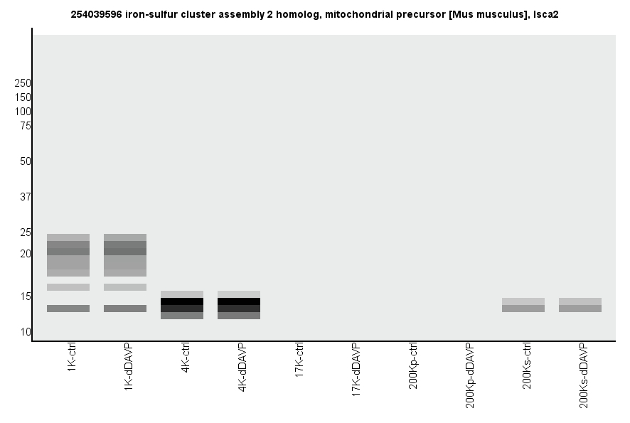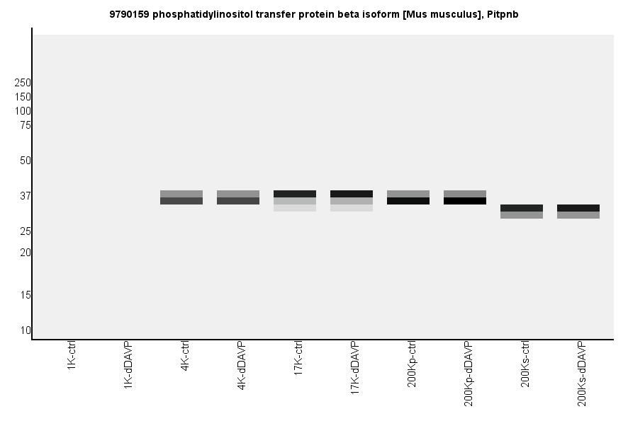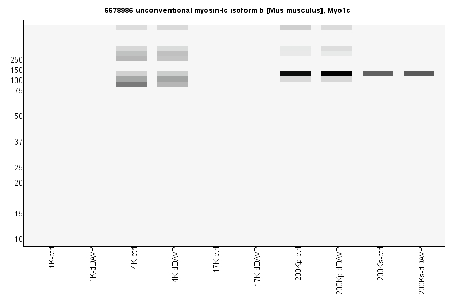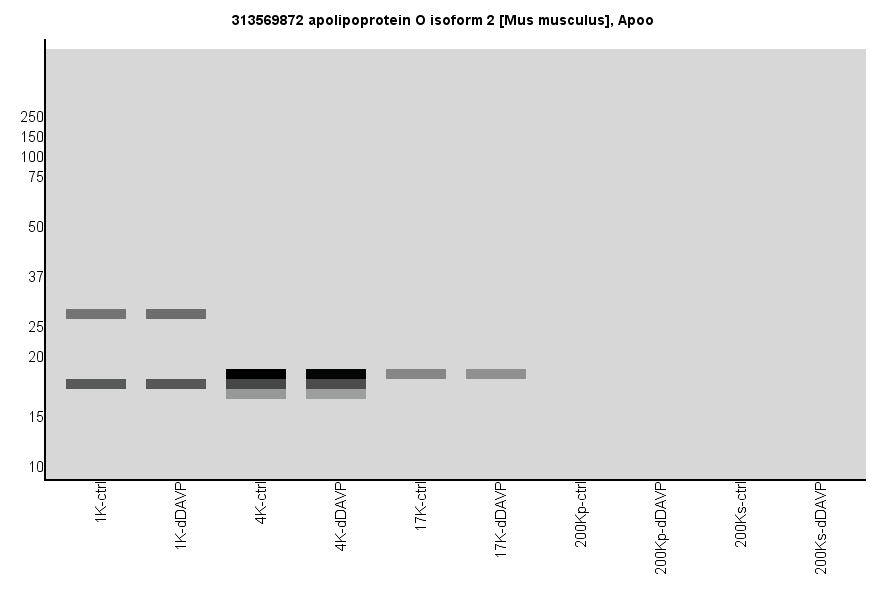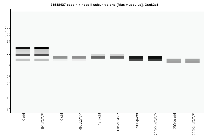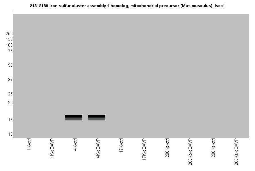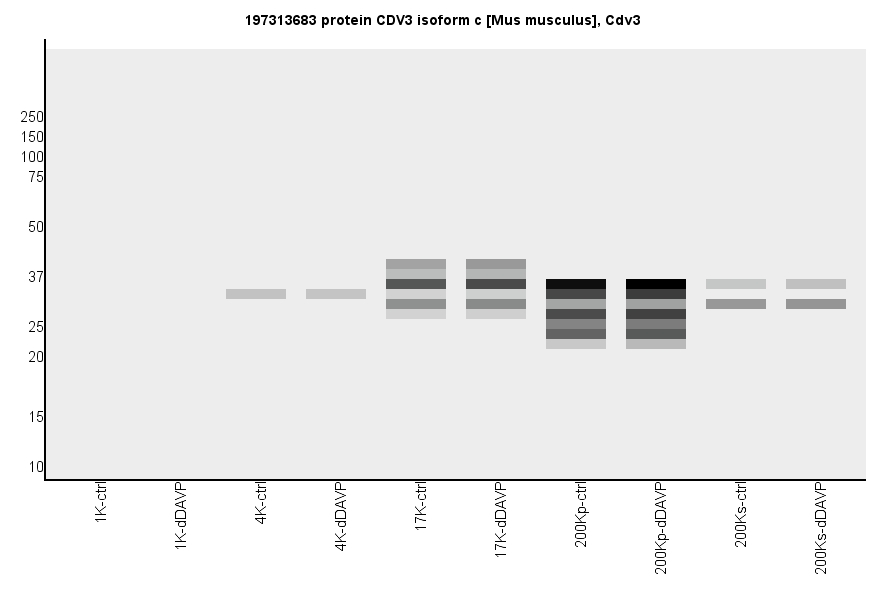 The virtual western blot images show data normalized using a logarithmic conversion scale to map peptide intensities to gray-scale levels. Using this conversion method, low-abundance peptides are generally visible in the blot images. Switch back to the default linear conversion scale database page.
