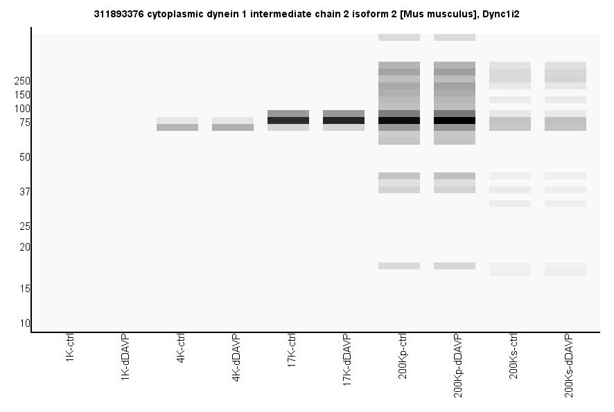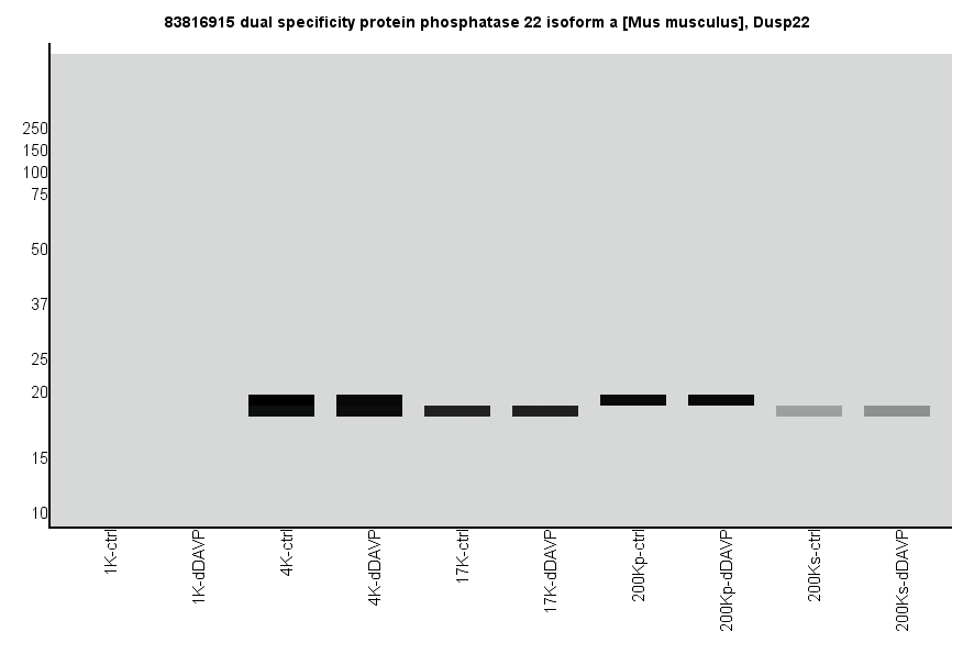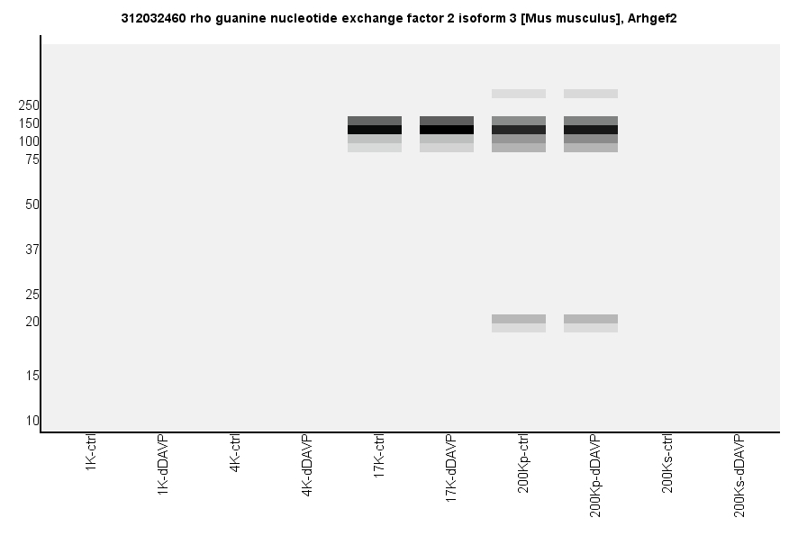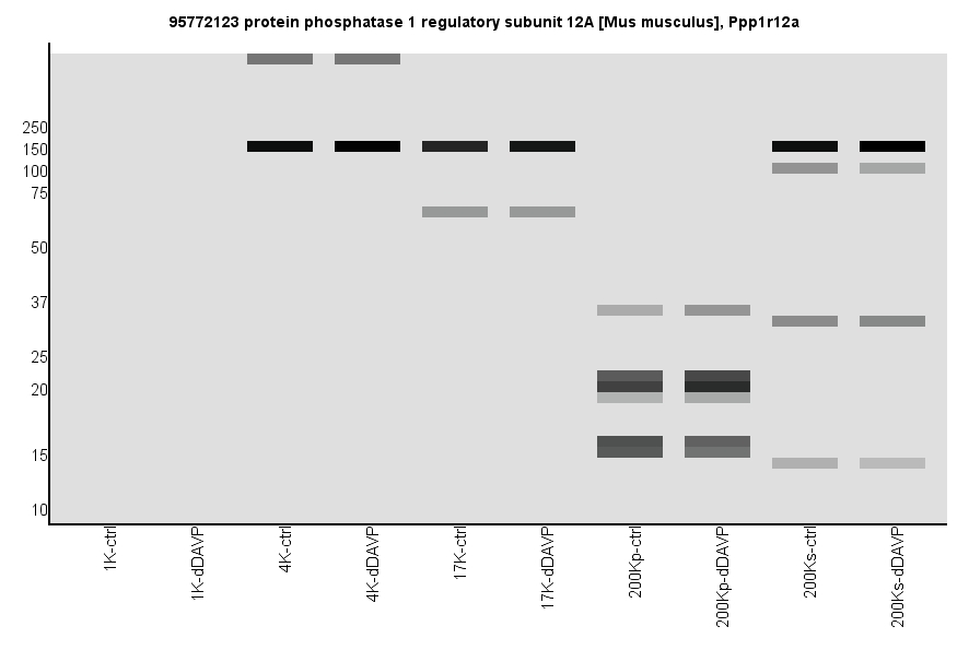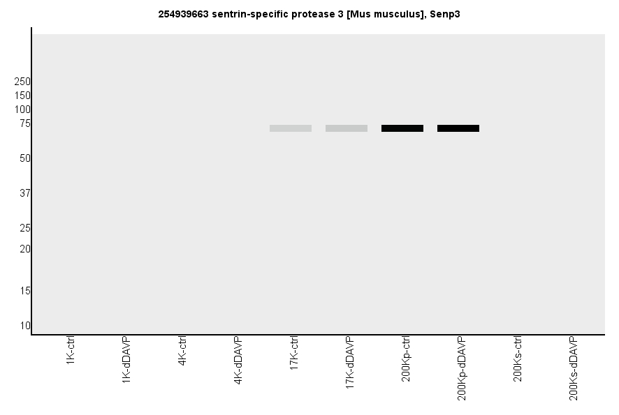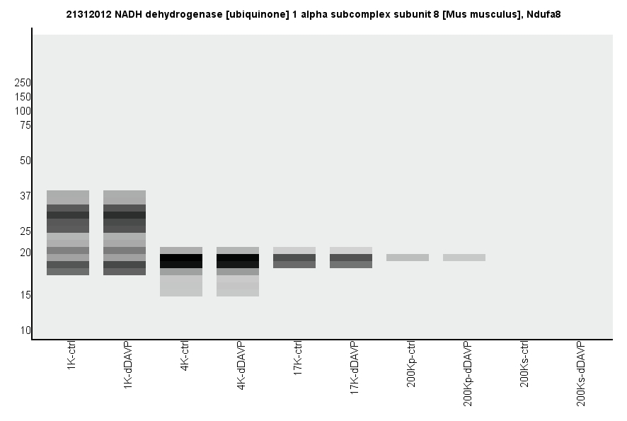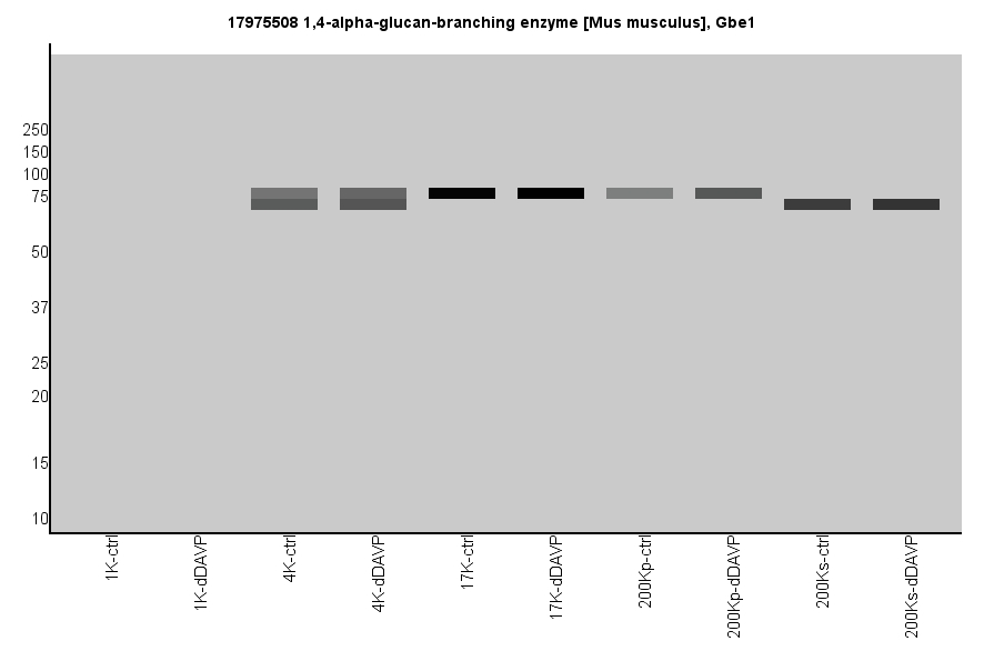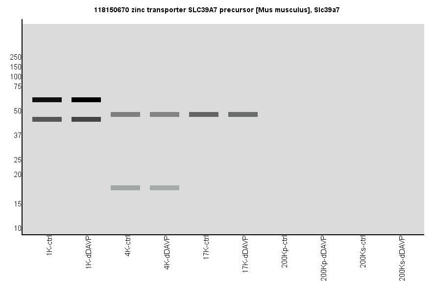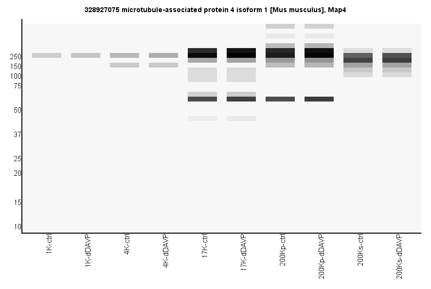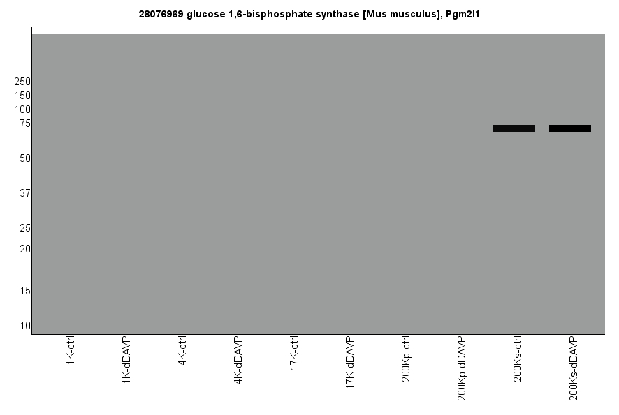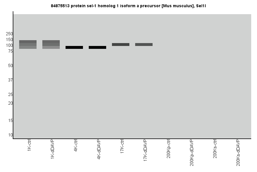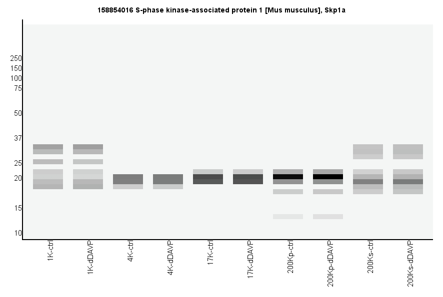 The virtual western blot images show data normalized using a logarithmic conversion scale to map peptide intensities to gray-scale levels. Using this conversion method, low-abundance peptides are generally visible in the blot images. Switch back to the default linear conversion scale database page.