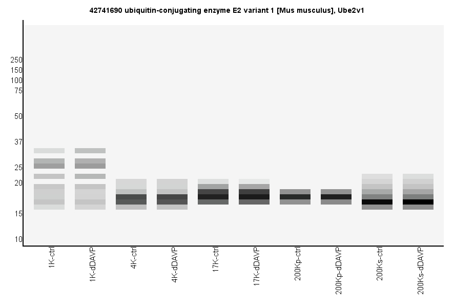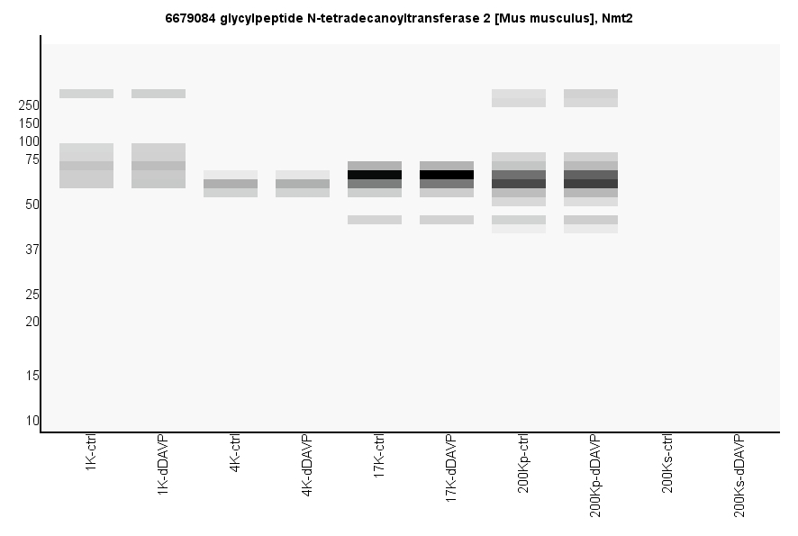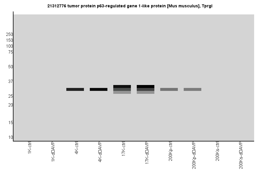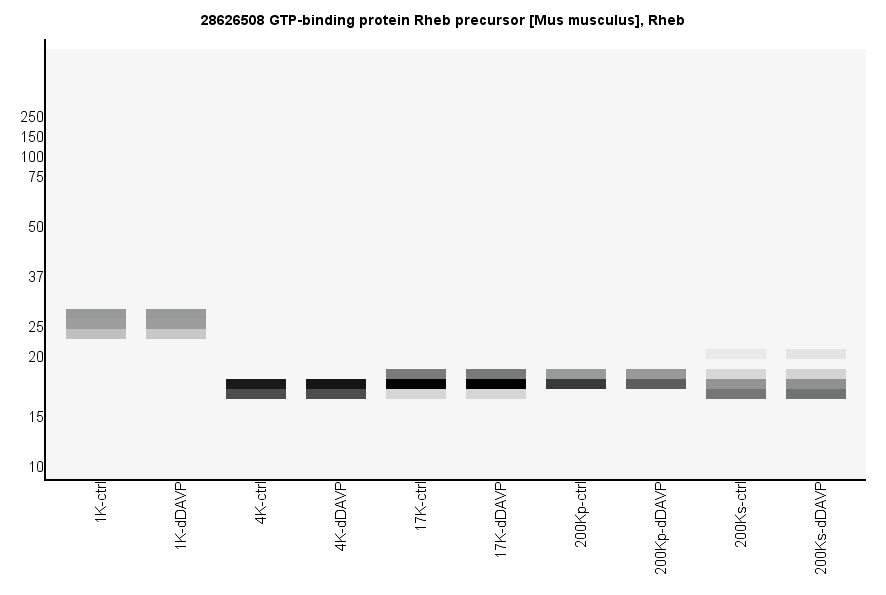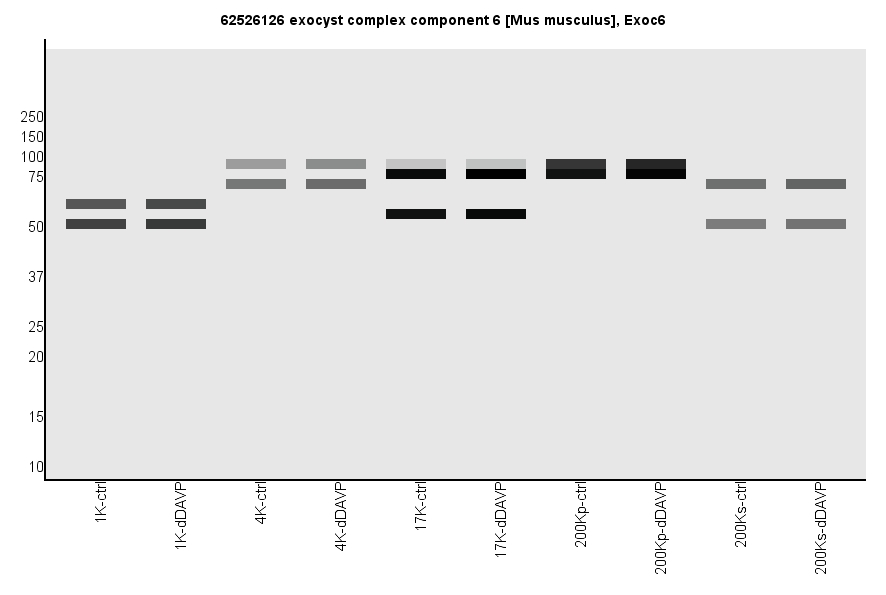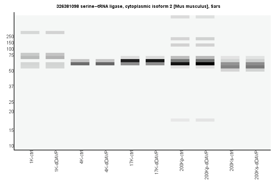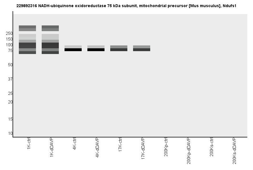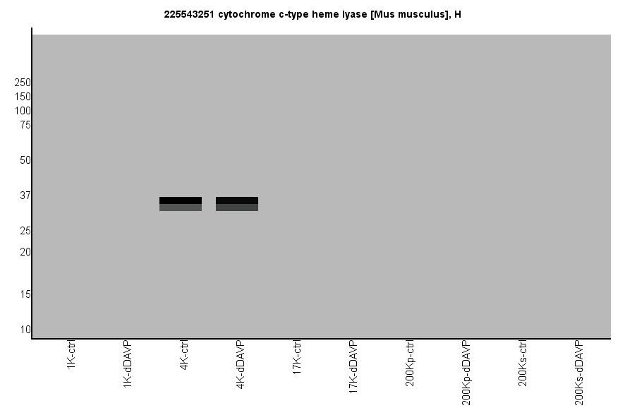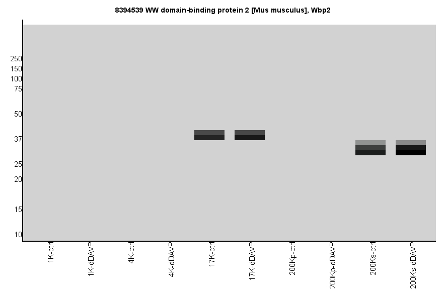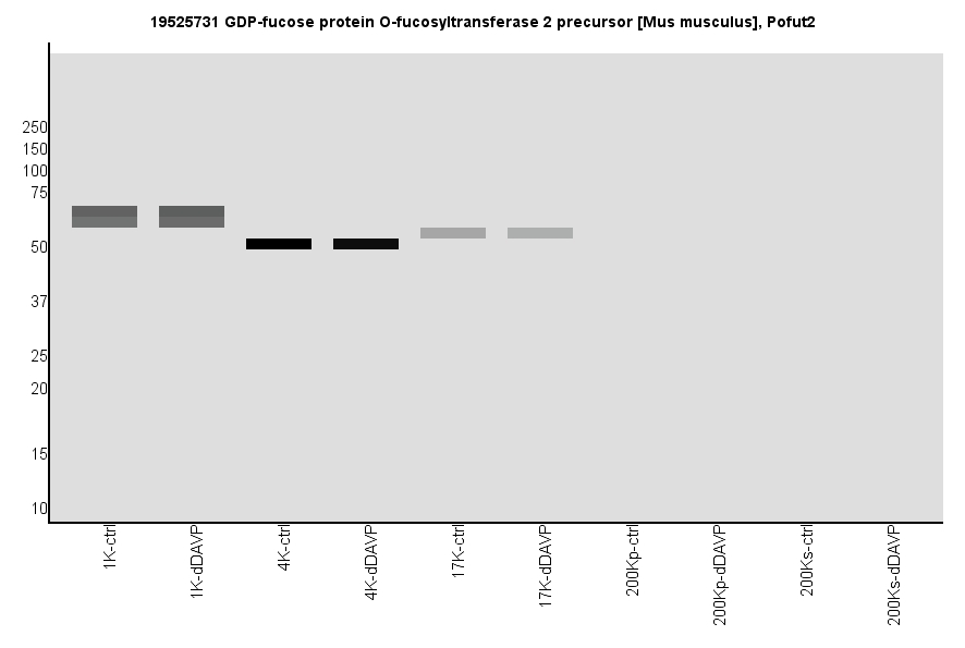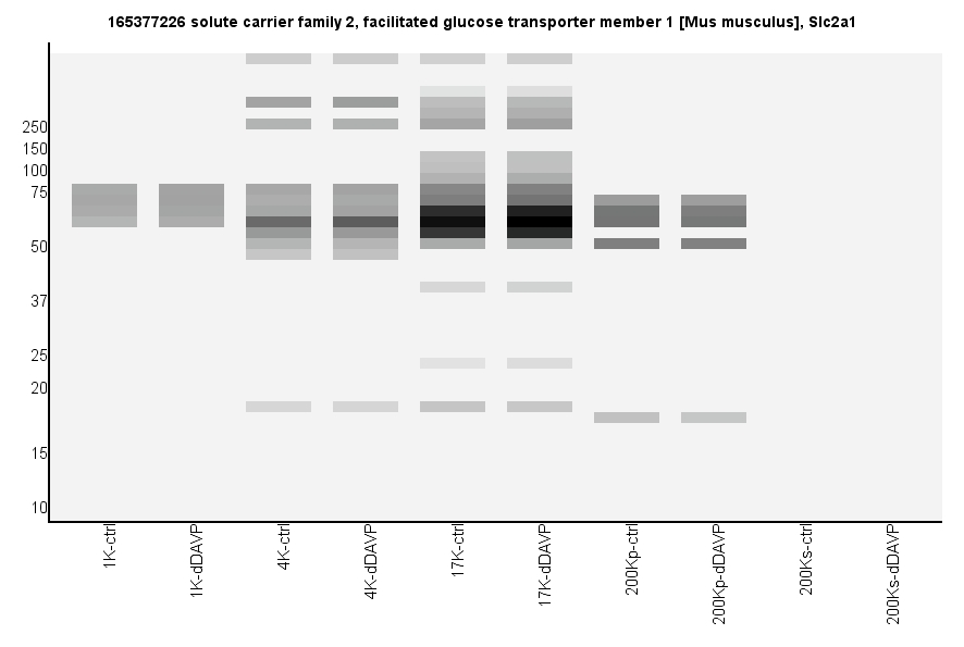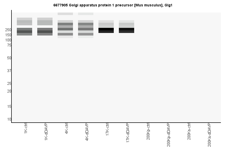 The virtual western blot images show data normalized using a logarithmic conversion scale to map peptide intensities to gray-scale levels. Using this conversion method, low-abundance peptides are generally visible in the blot images. Switch back to the default linear conversion scale database page.