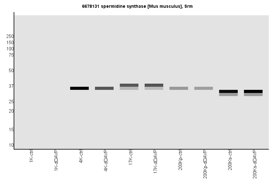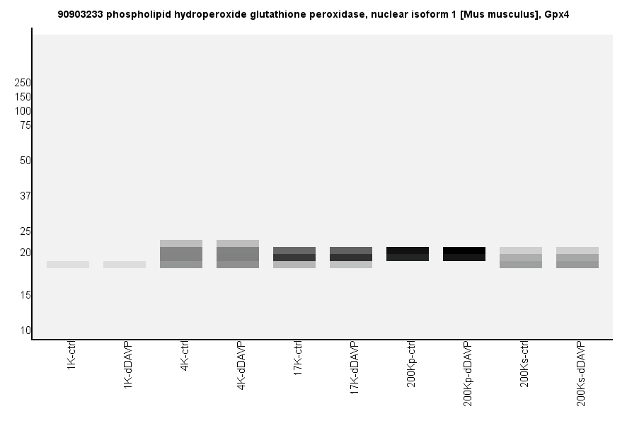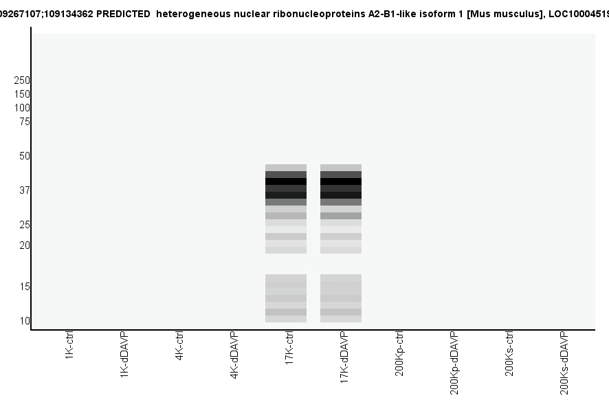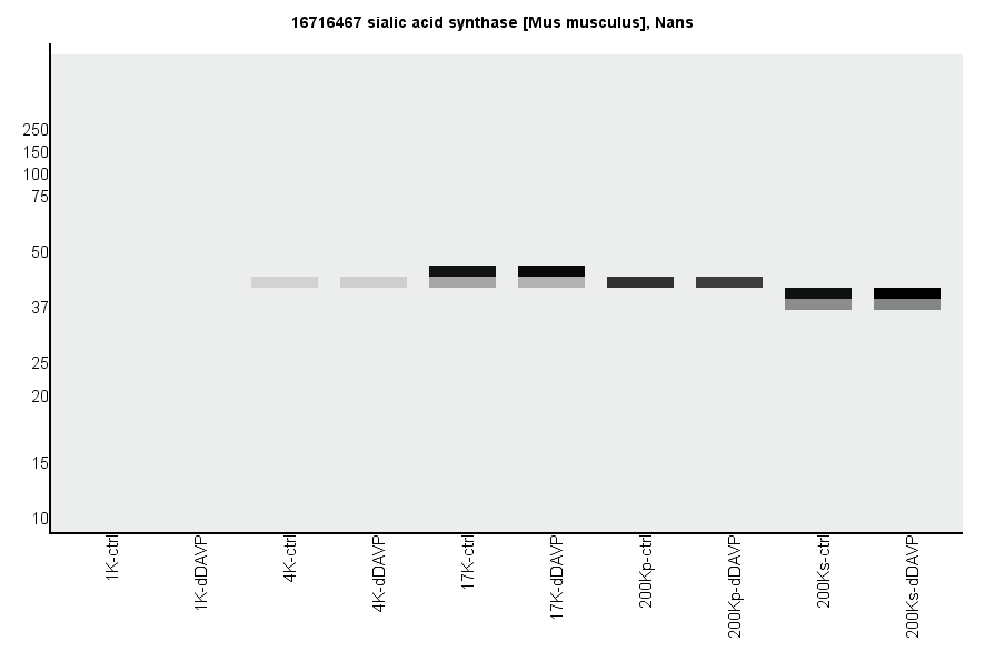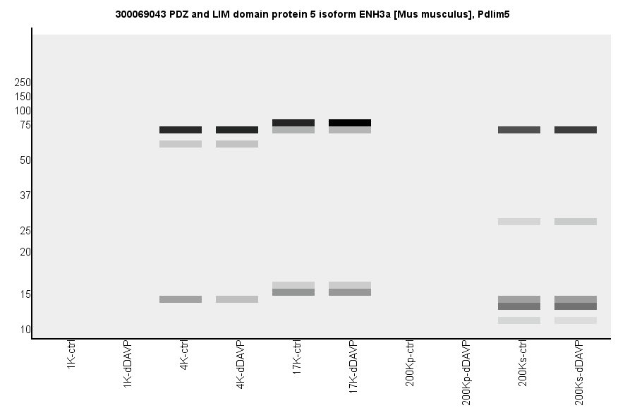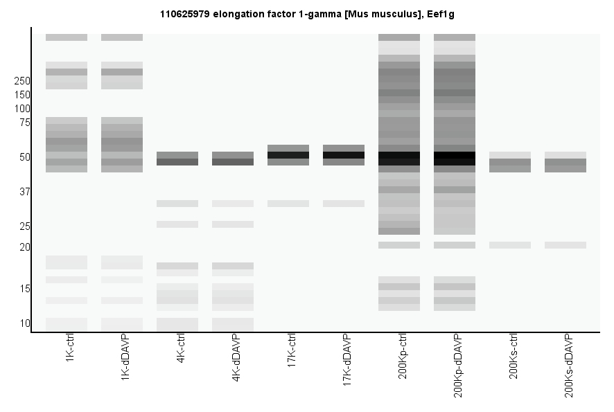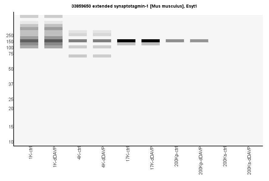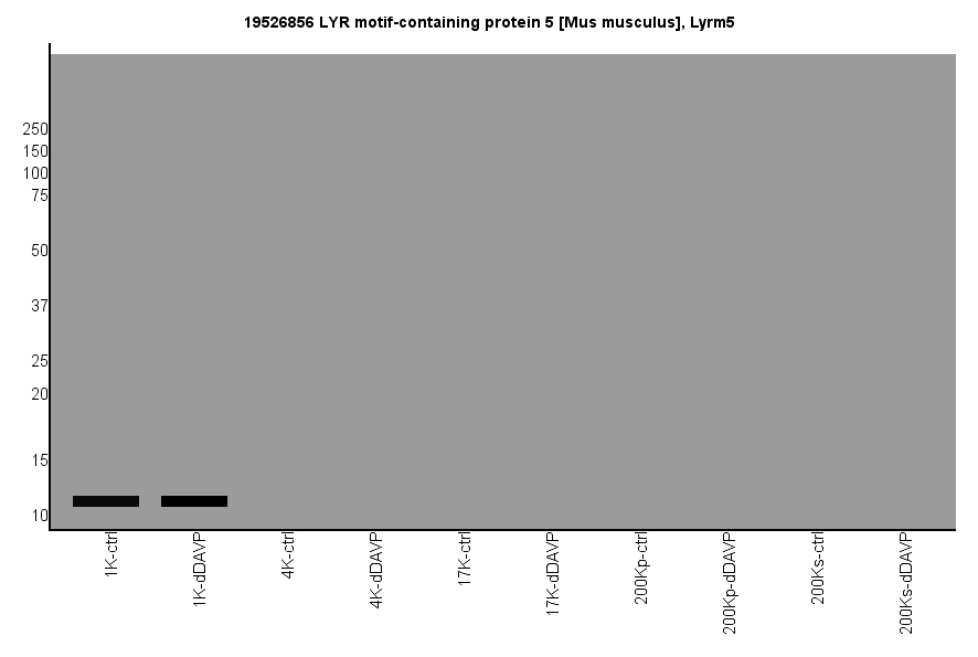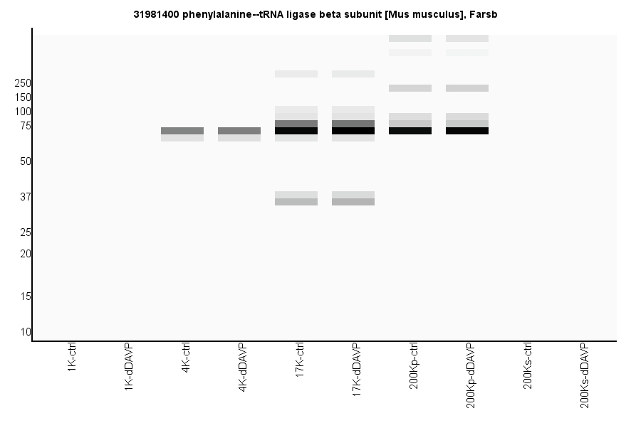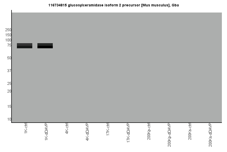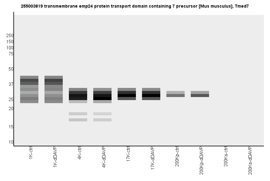 The virtual western blot images show data normalized using a logarithmic conversion scale to map peptide intensities to gray-scale levels. Using this conversion method, low-abundance peptides are generally visible in the blot images. Switch back to the default linear conversion scale database page.