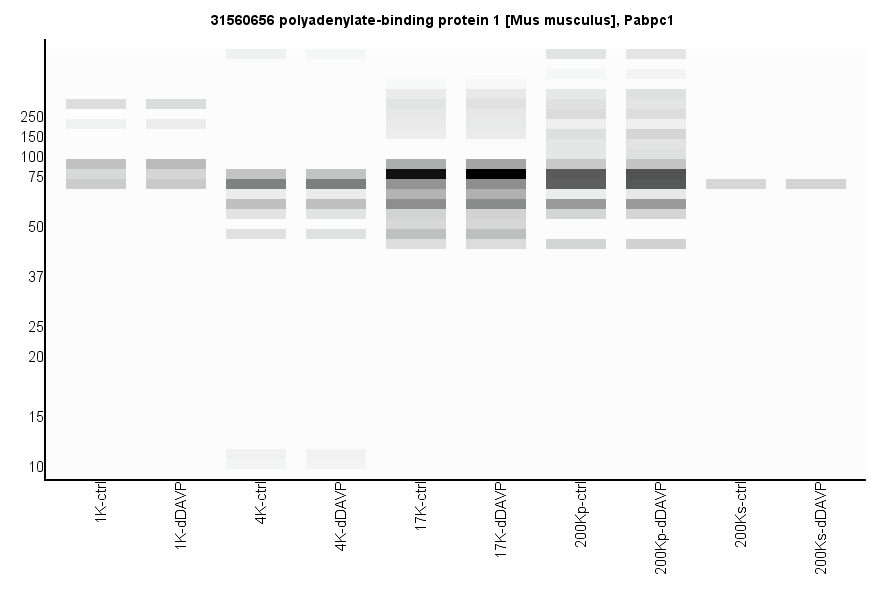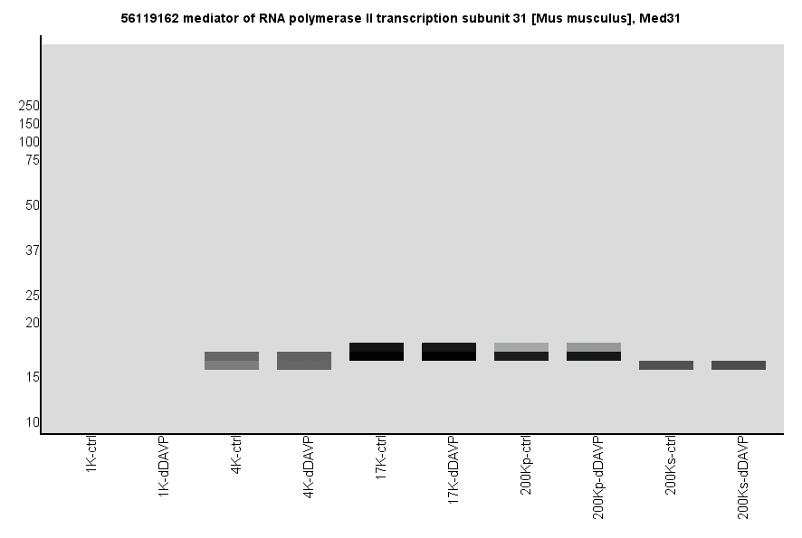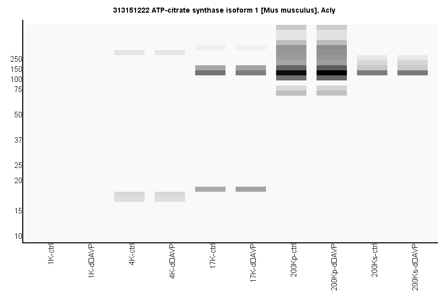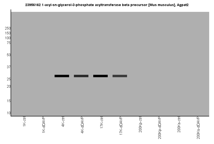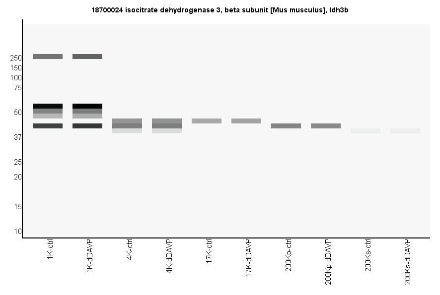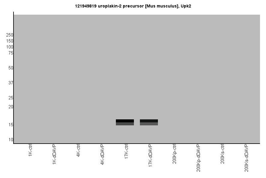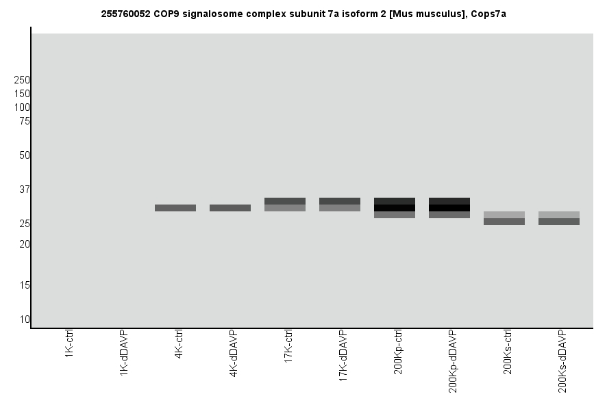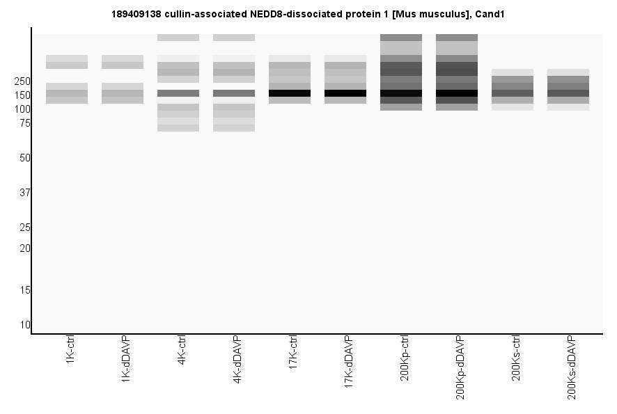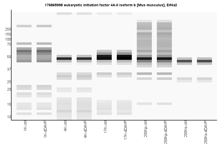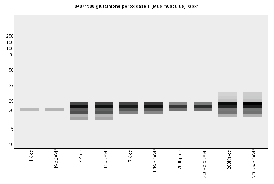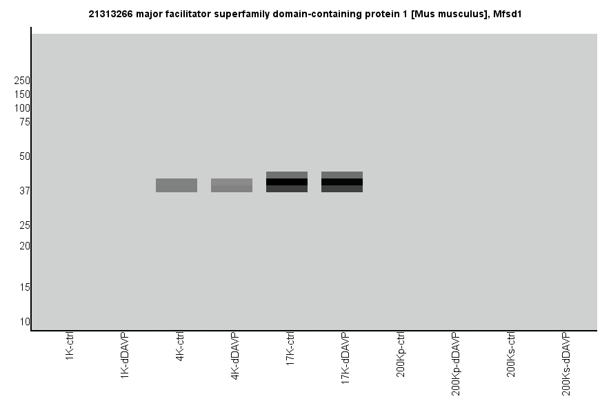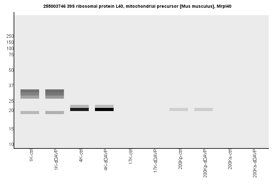 The virtual western blot images show data normalized using a logarithmic conversion scale to map peptide intensities to gray-scale levels. Using this conversion method, low-abundance peptides are generally visible in the blot images. Switch back to the default linear conversion scale database page.