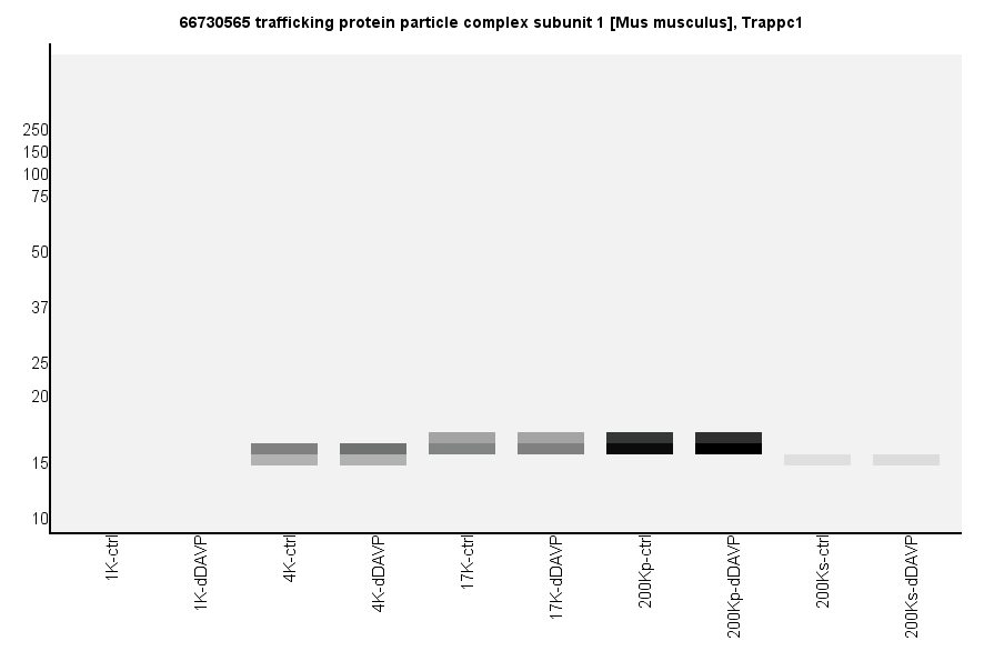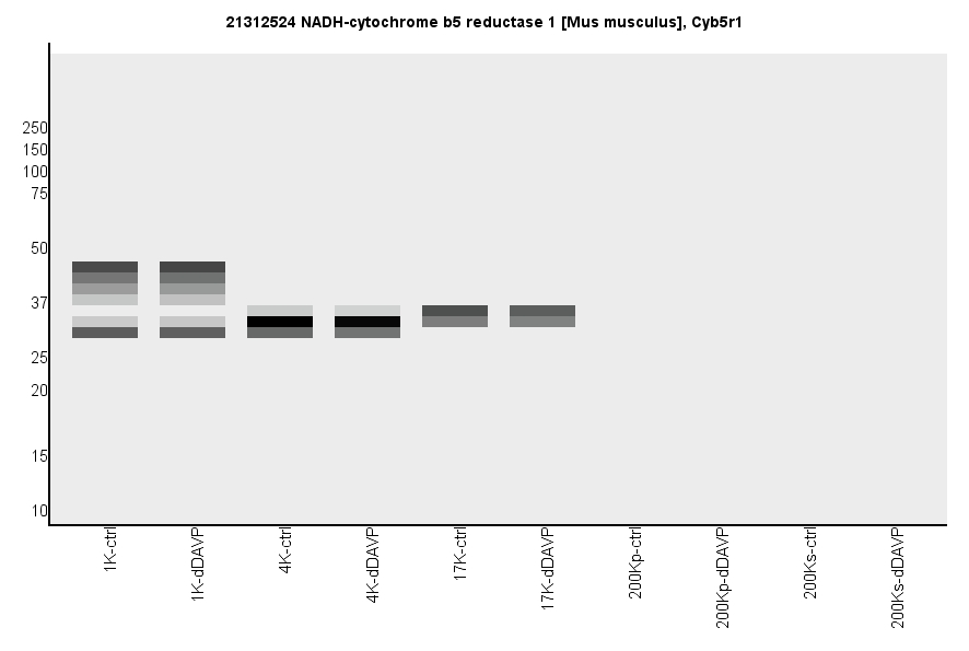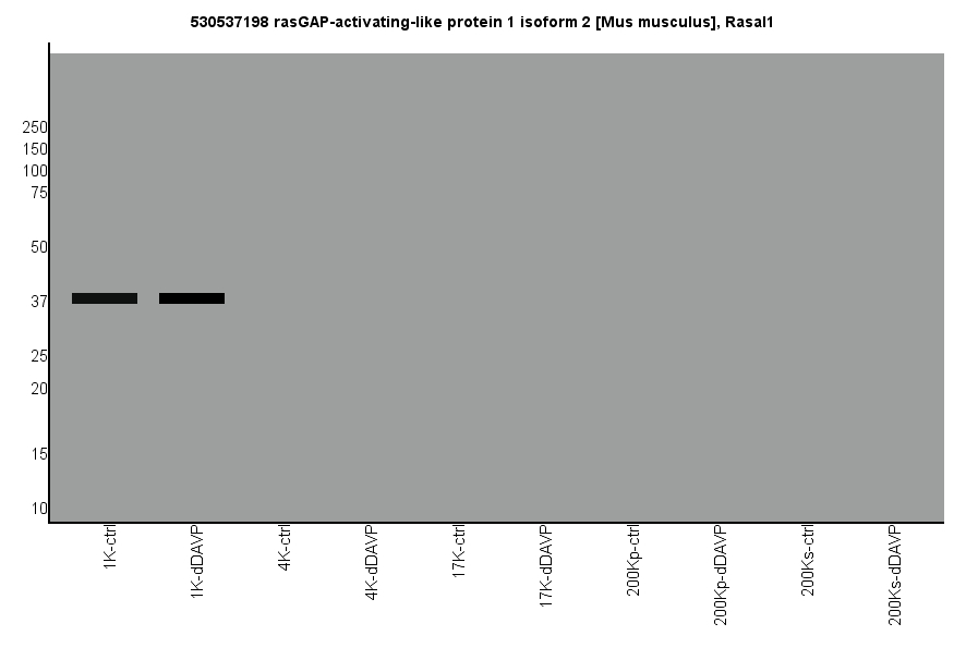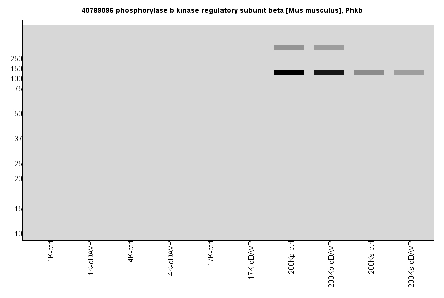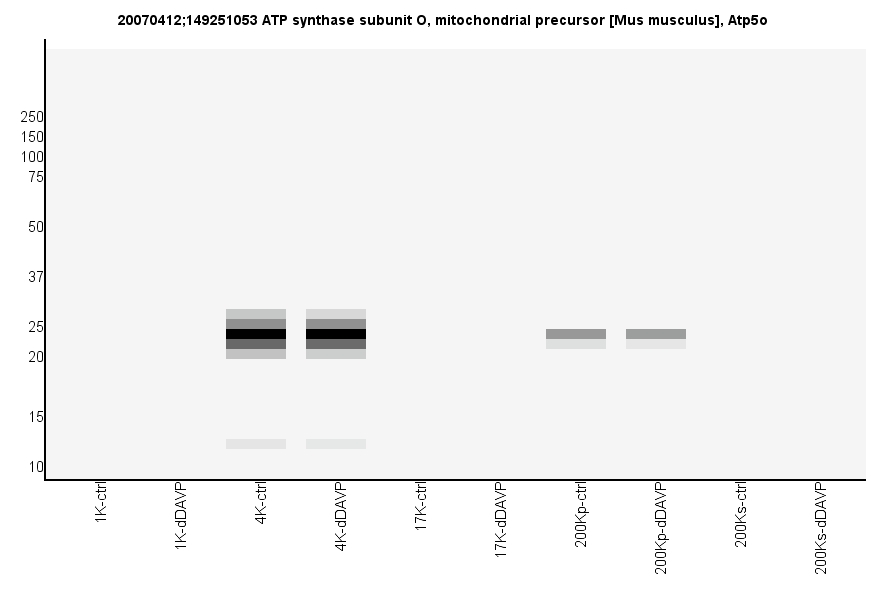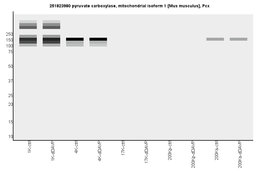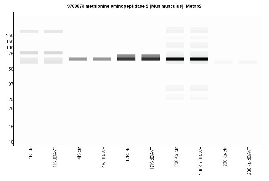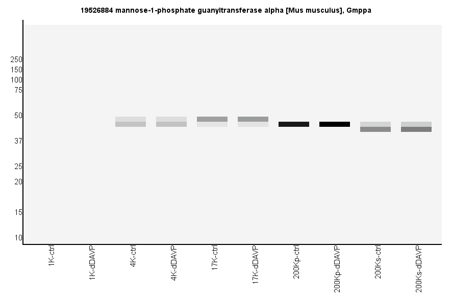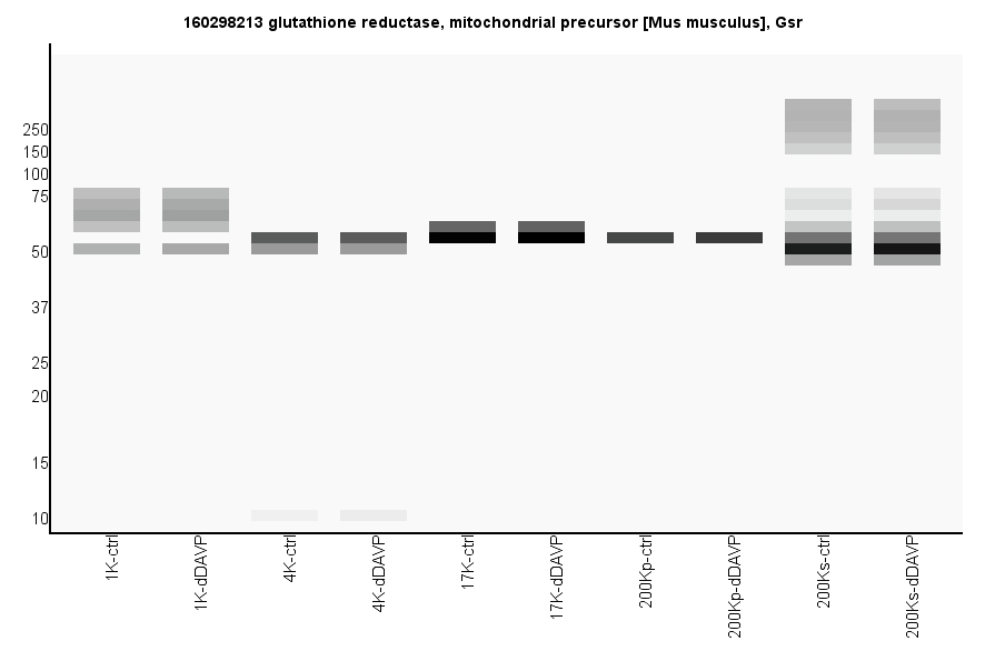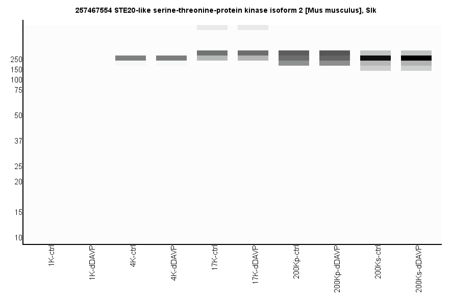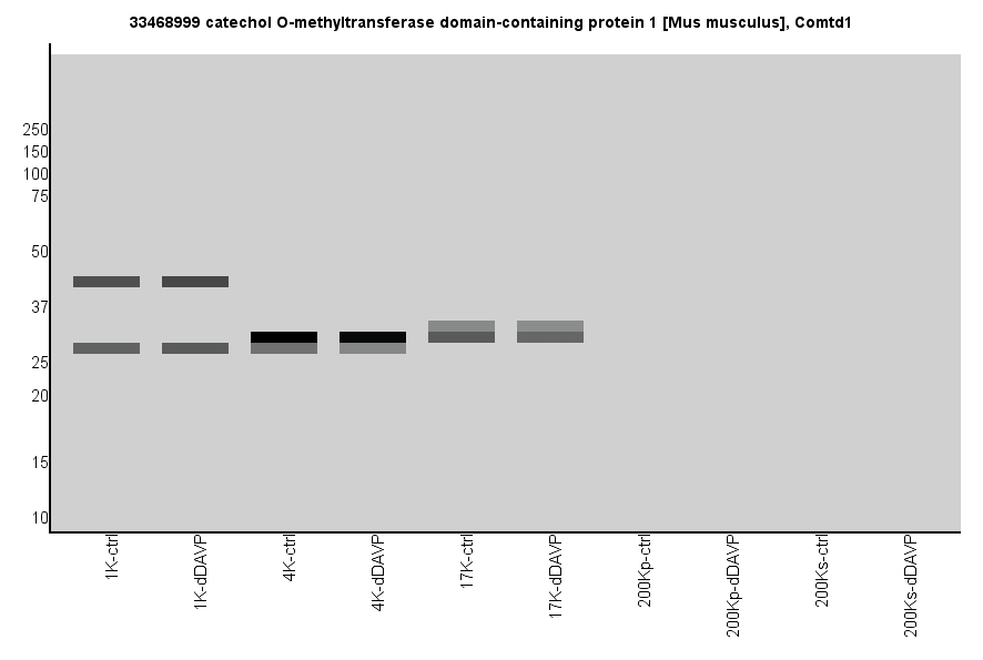The virtual western blot images show data normalized using a logarithmic conversion scale to map peptide intensities to gray-scale levels. Using this conversion method, low-abundance peptides are generally visible in the blot images. Switch back to the default linear conversion scale database page.