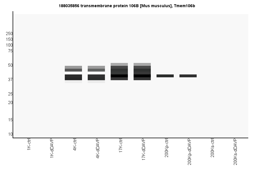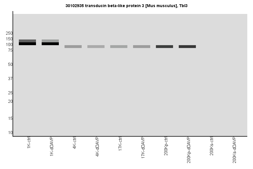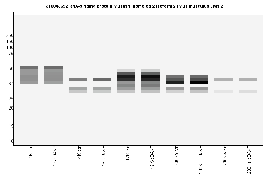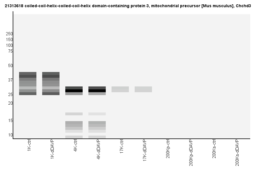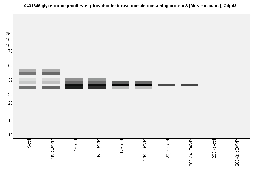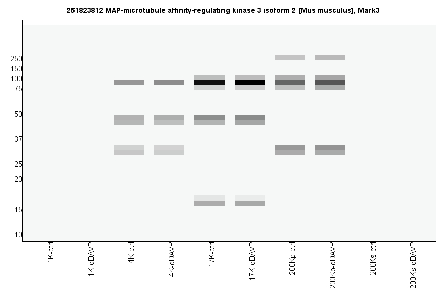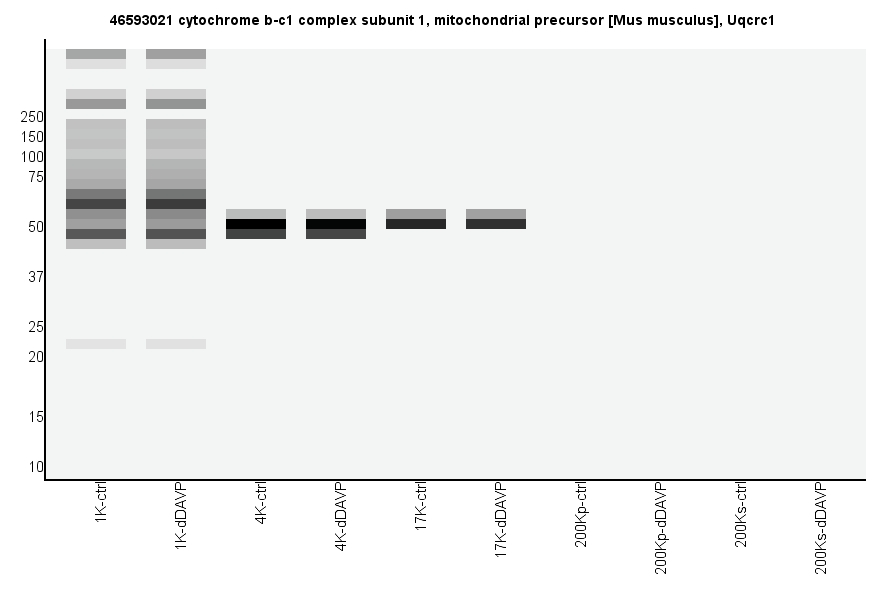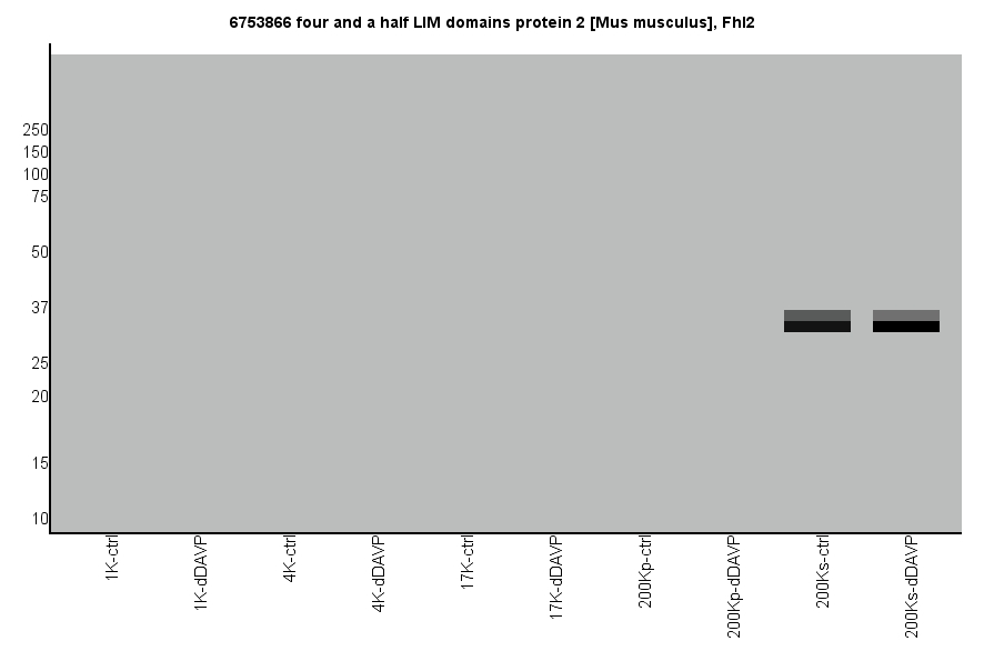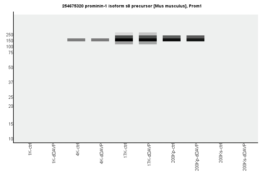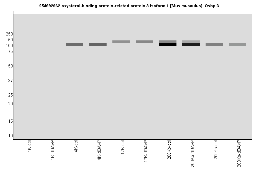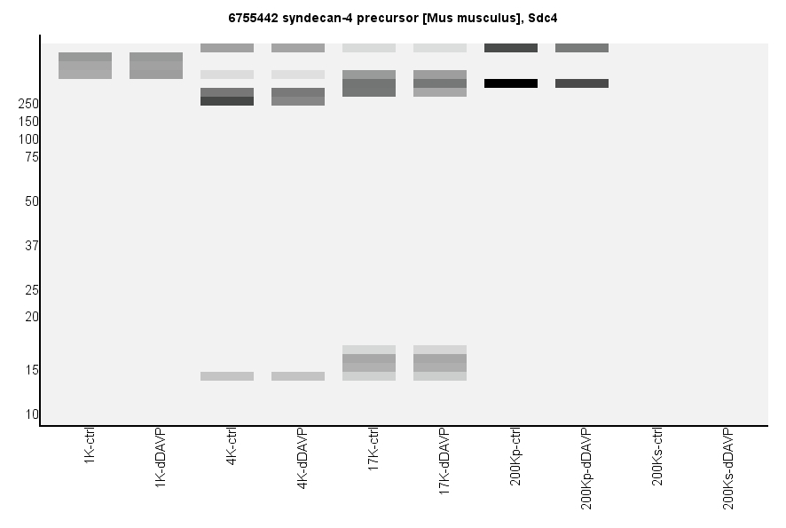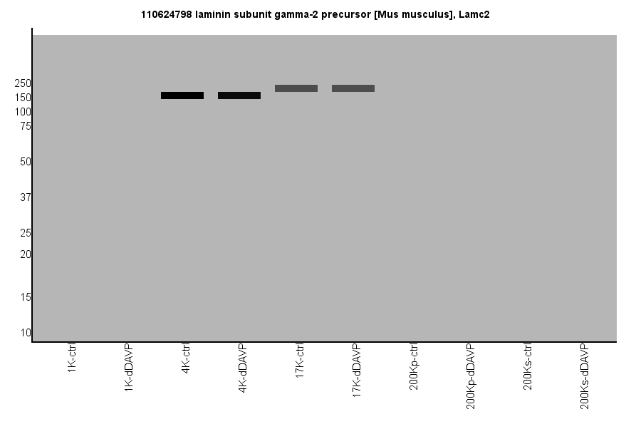The virtual western blot images show data normalized using a logarithmic conversion scale to map peptide intensities to gray-scale levels. Using this conversion method, low-abundance peptides are generally visible in the blot images. Switch back to the default linear conversion scale database page.