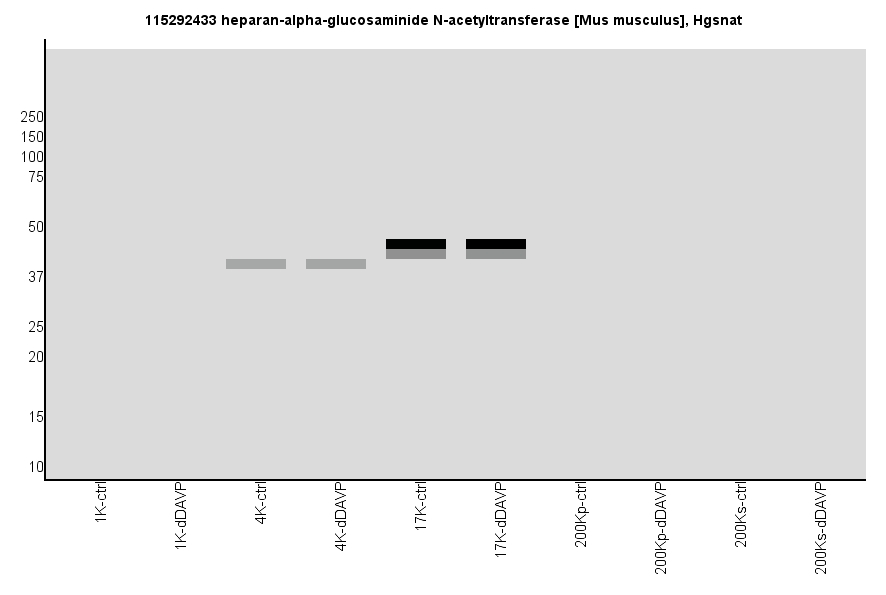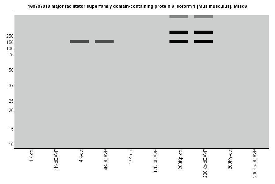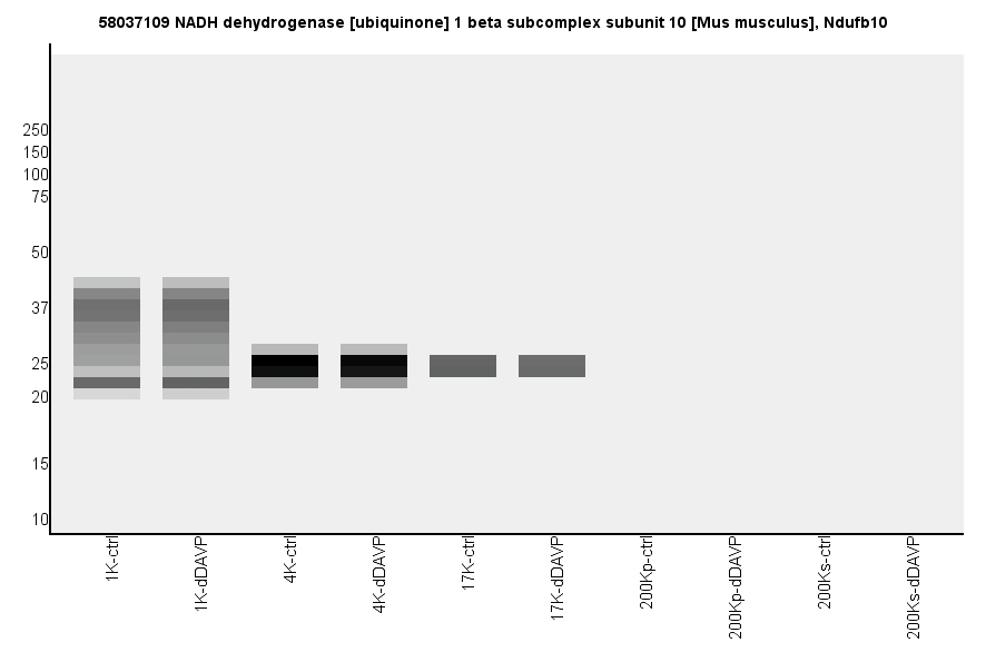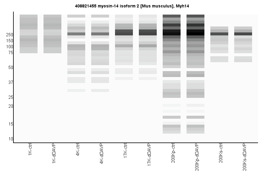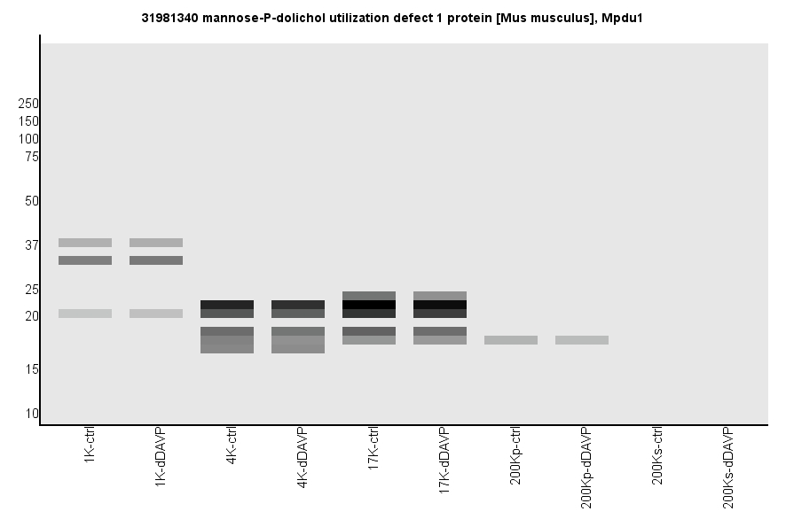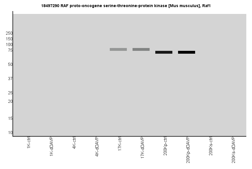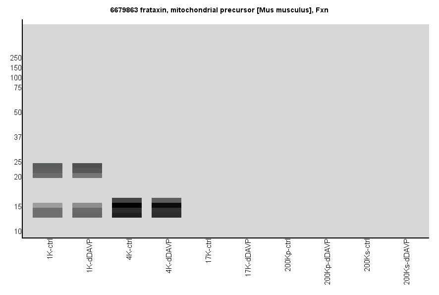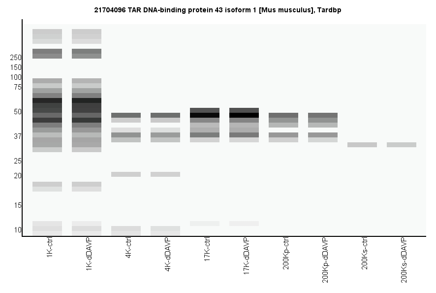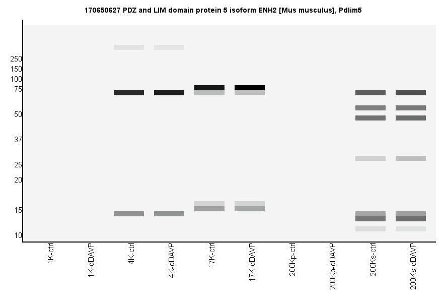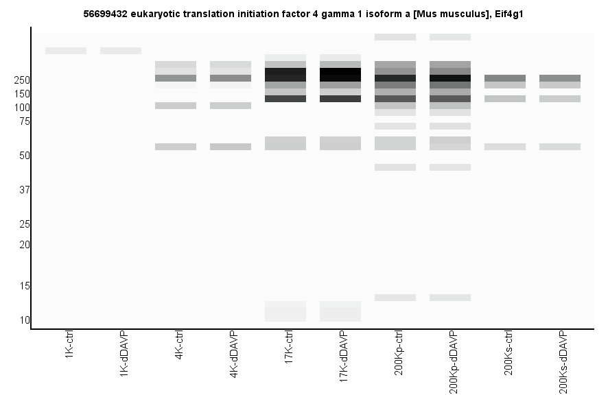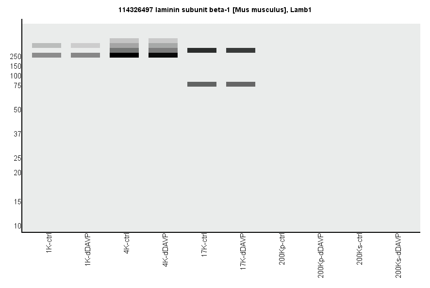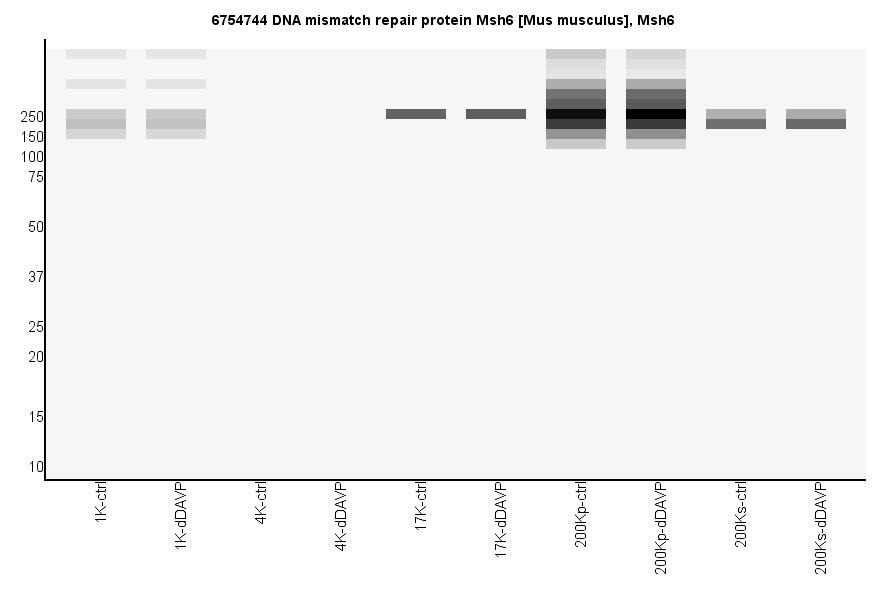 The virtual western blot images show data normalized using a logarithmic conversion scale to map peptide intensities to gray-scale levels. Using this conversion method, low-abundance peptides are generally visible in the blot images. Switch back to the default linear conversion scale database page.
