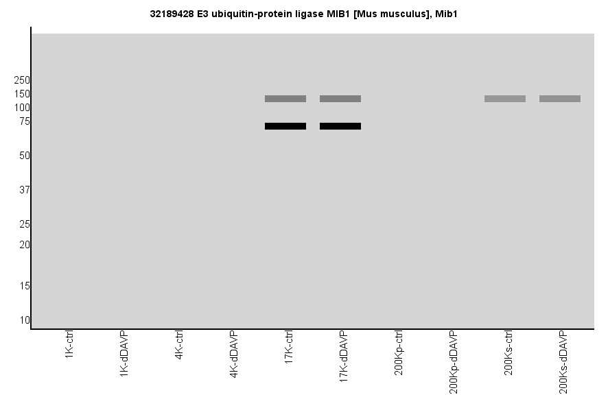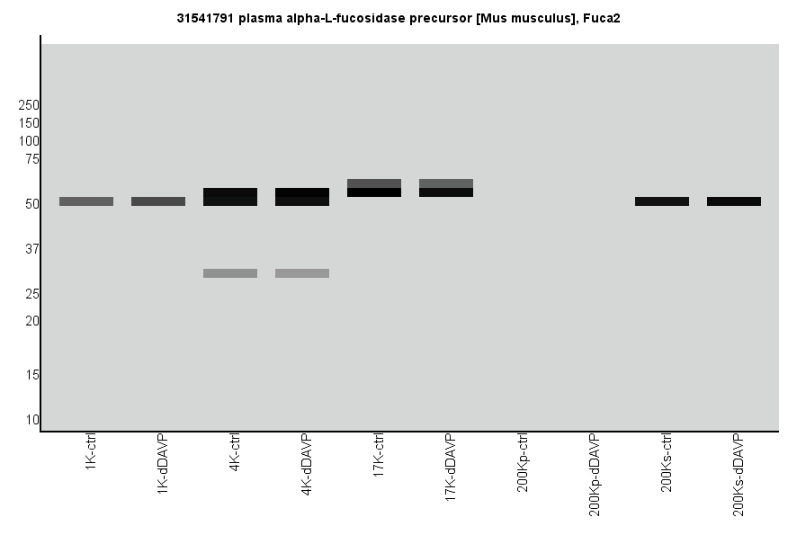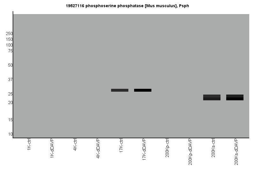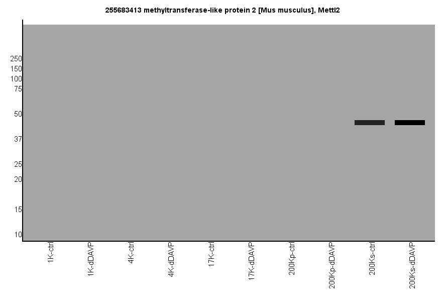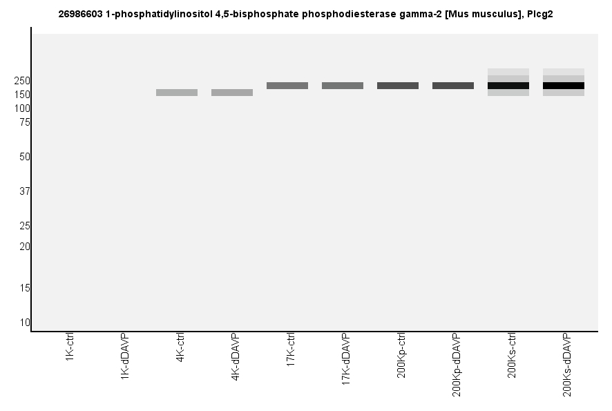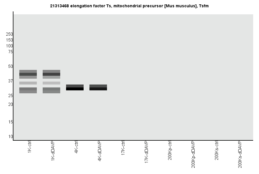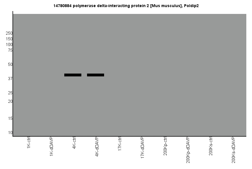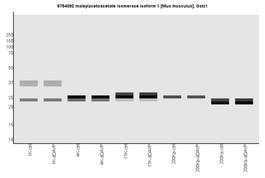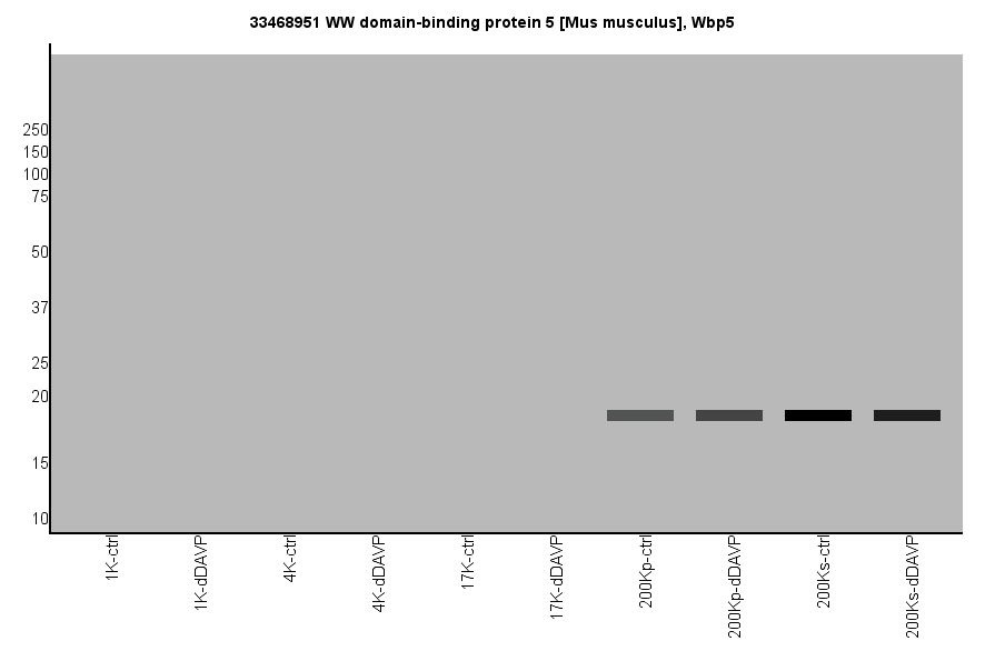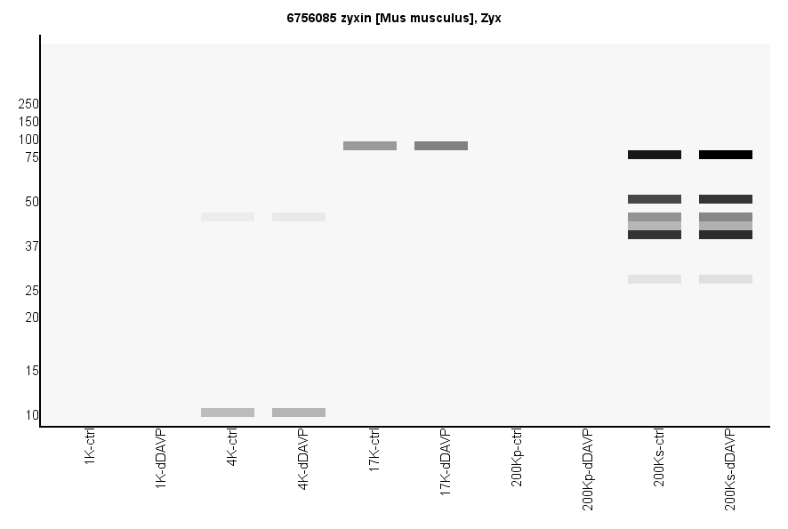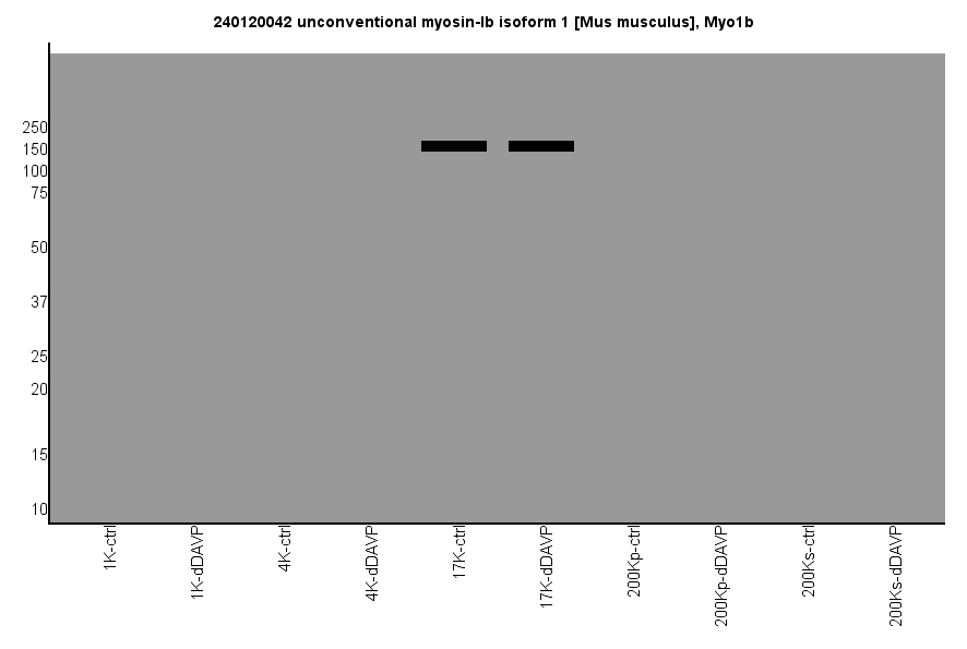 The virtual western blot images show data normalized using a logarithmic conversion scale to map peptide intensities to gray-scale levels. Using this conversion method, low-abundance peptides are generally visible in the blot images. Switch back to the default linear conversion scale database page.