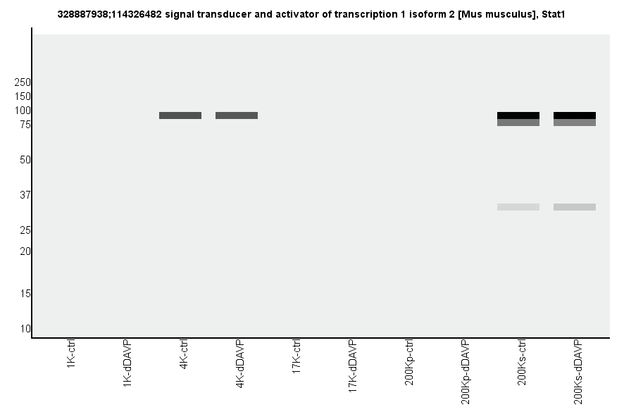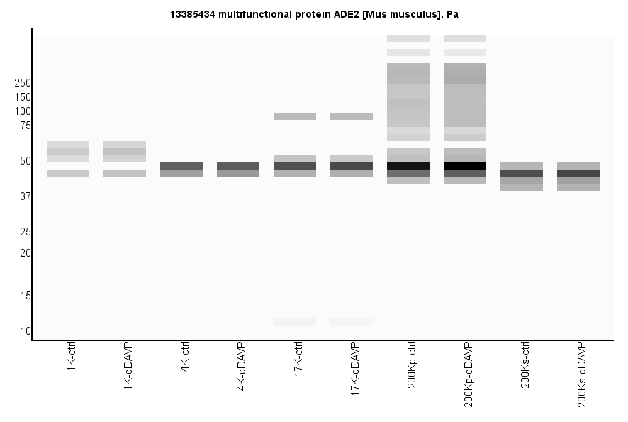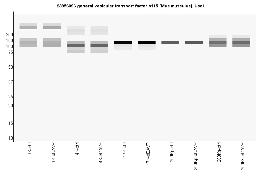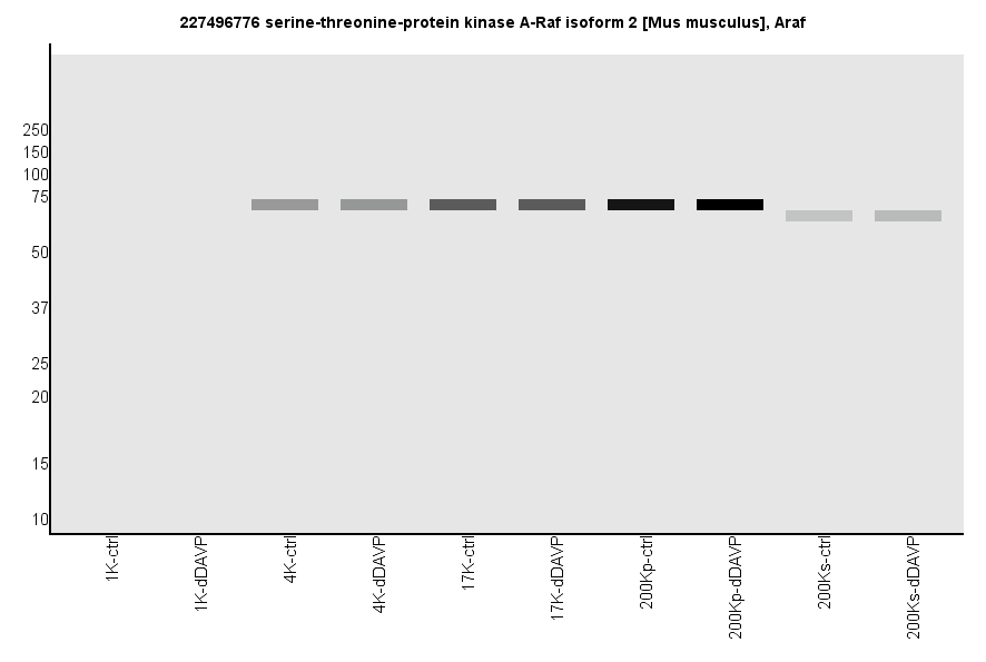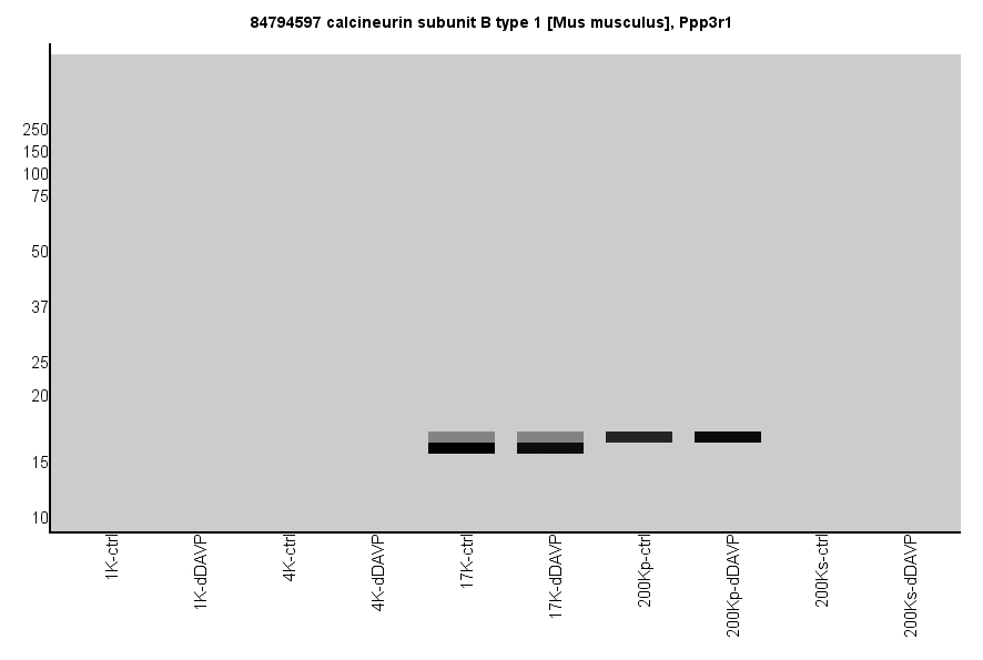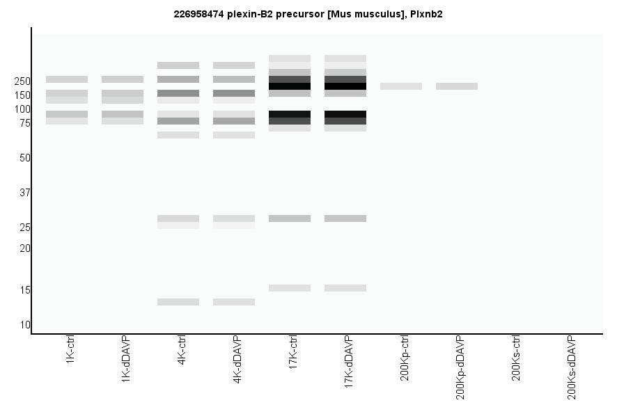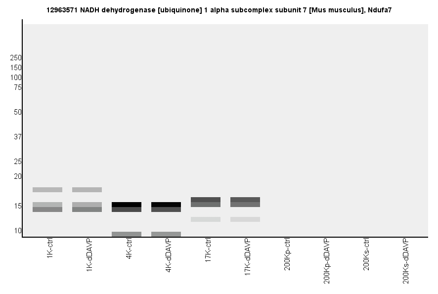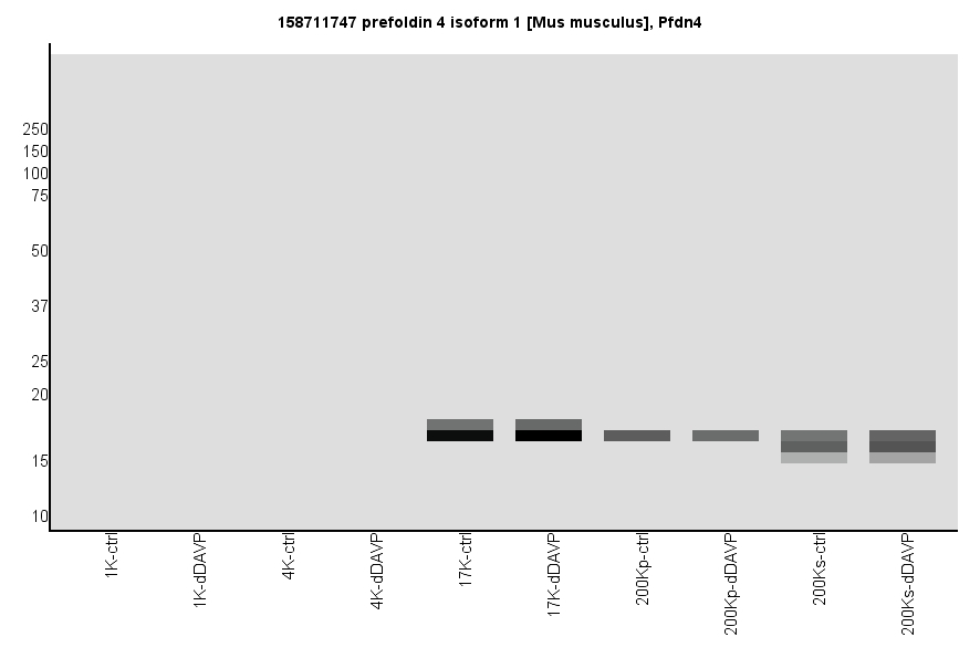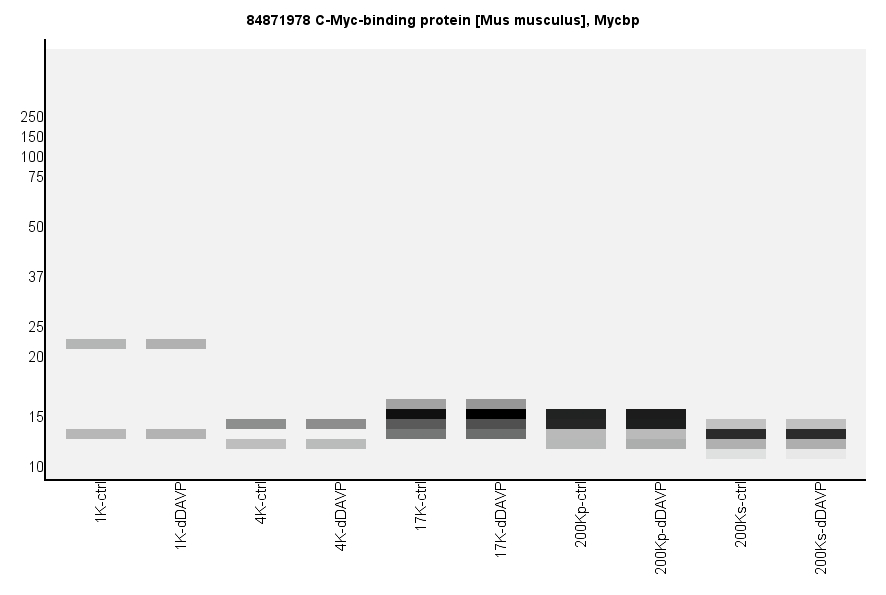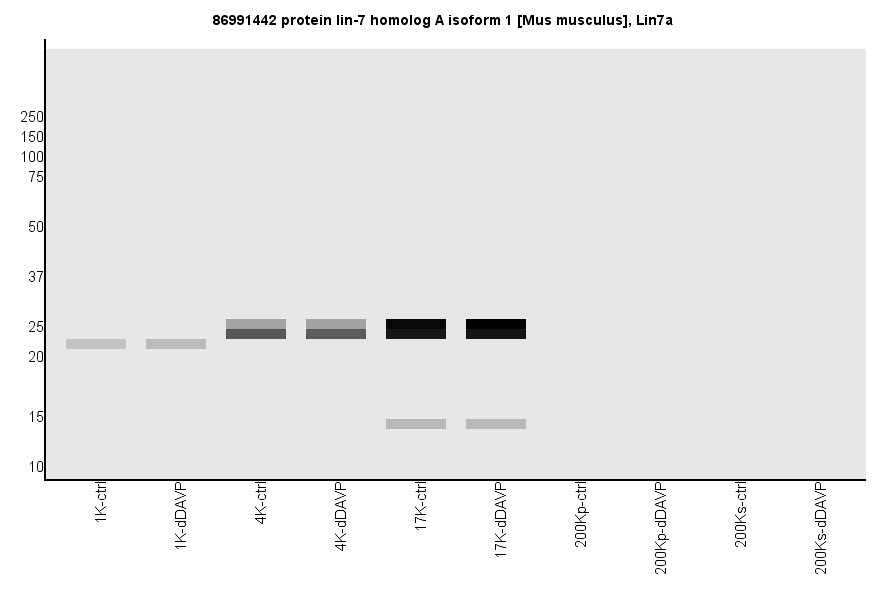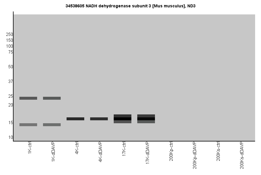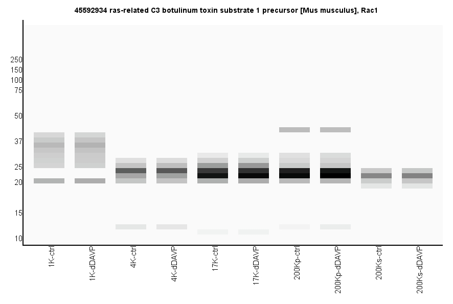 The virtual western blot images show data normalized using a logarithmic conversion scale to map peptide intensities to gray-scale levels. Using this conversion method, low-abundance peptides are generally visible in the blot images. Switch back to the default linear conversion scale database page.