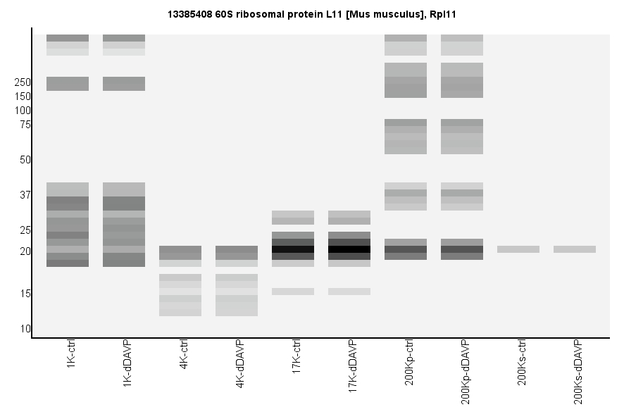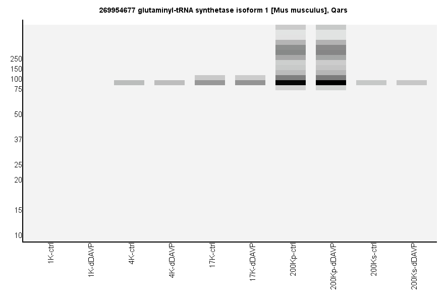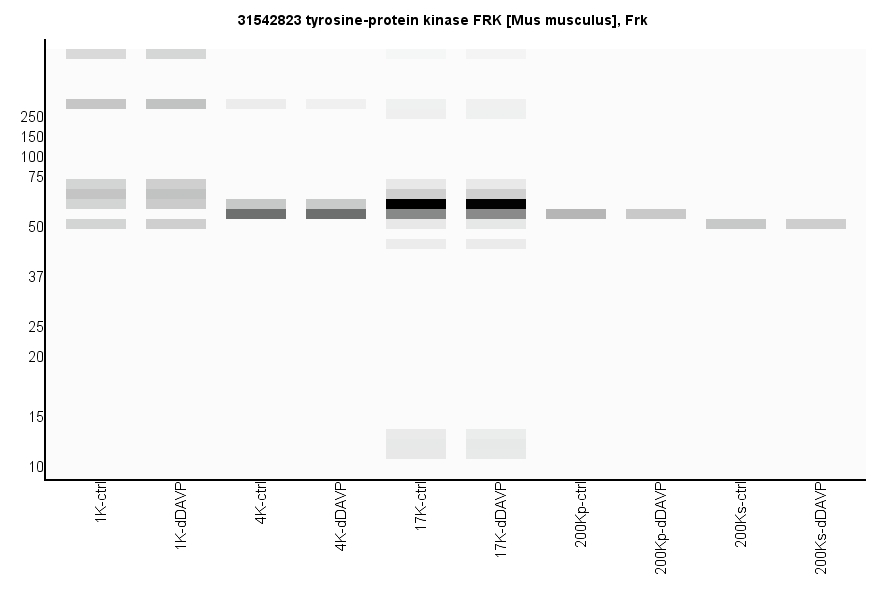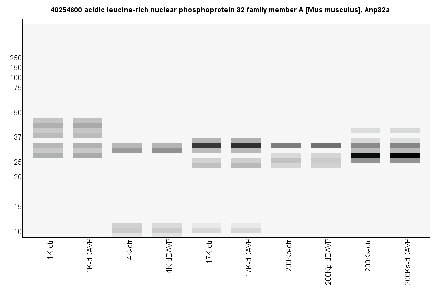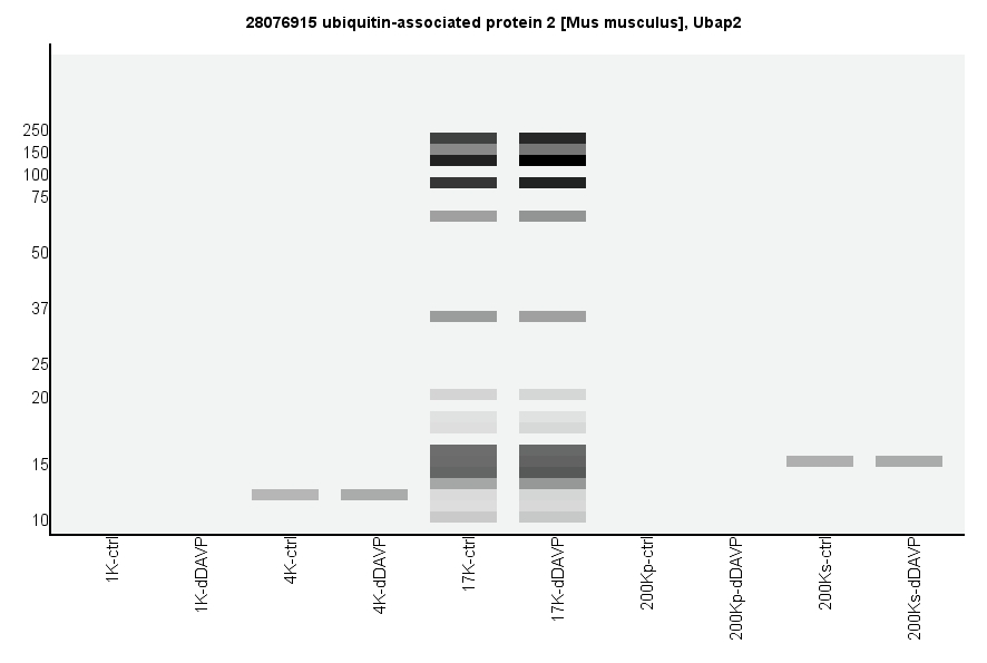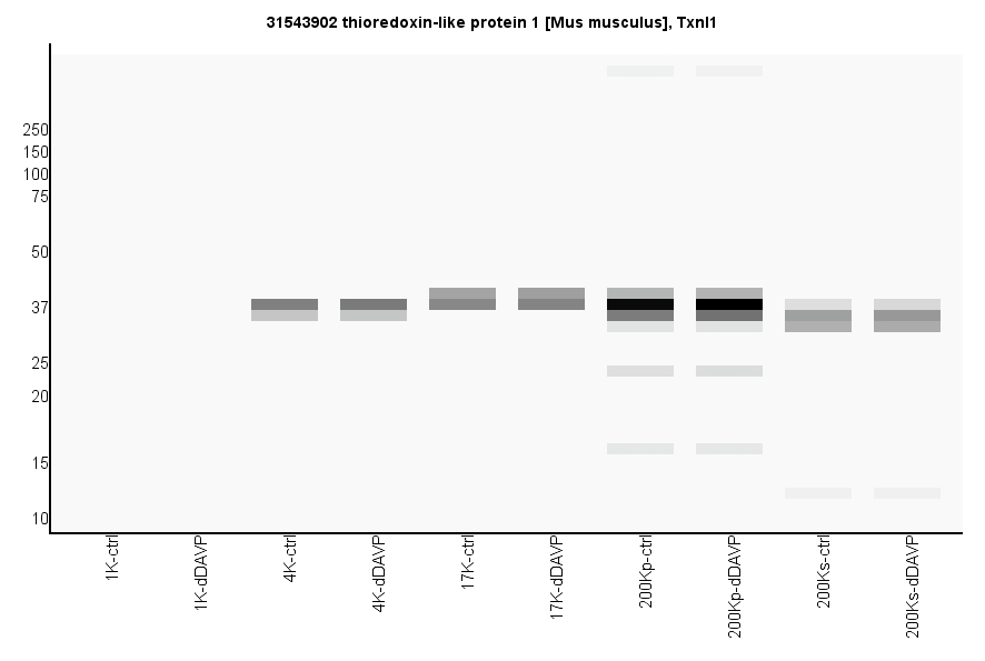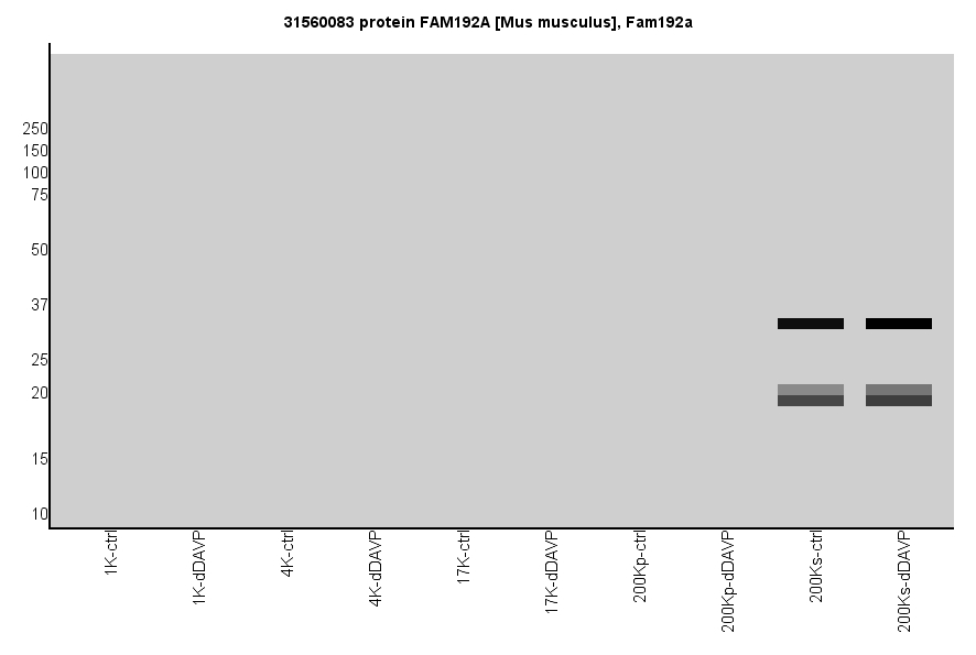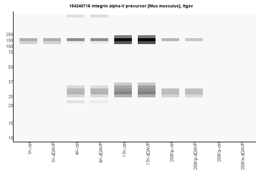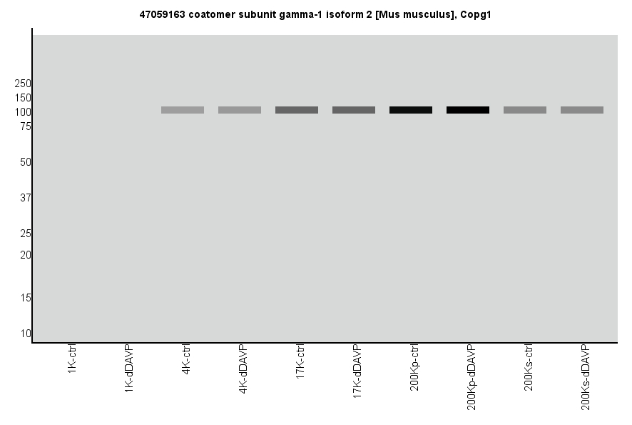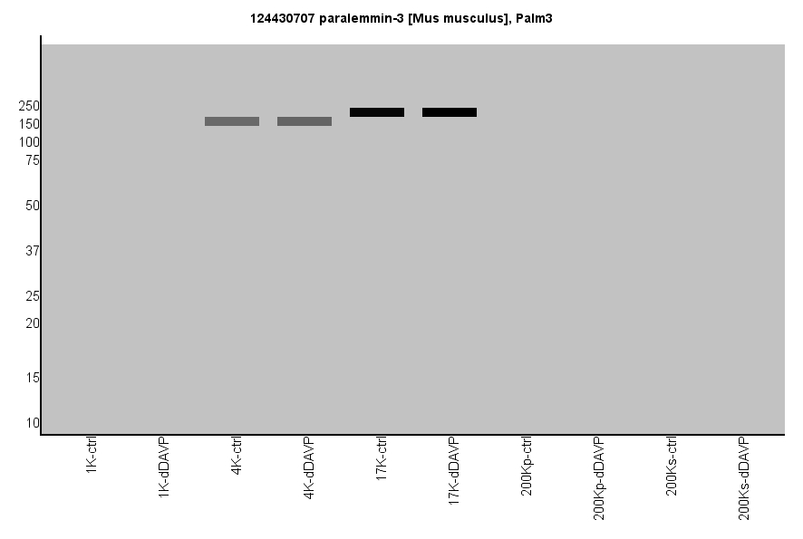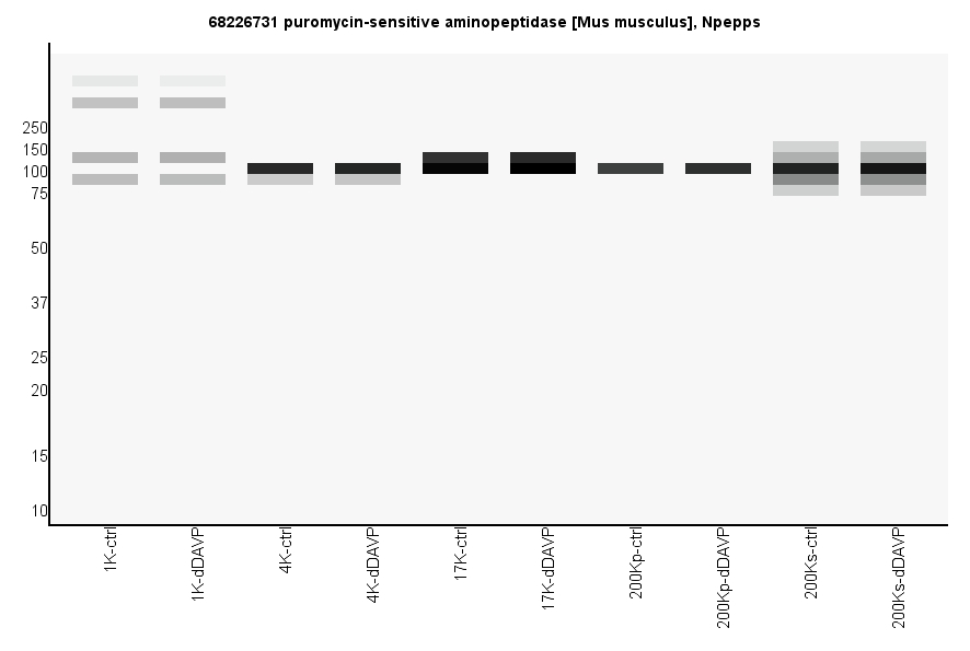 The virtual western blot images show data normalized using a logarithmic conversion scale to map peptide intensities to gray-scale levels. Using this conversion method, low-abundance peptides are generally visible in the blot images. Switch back to the default linear conversion scale database page.