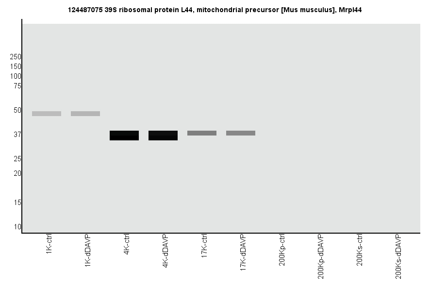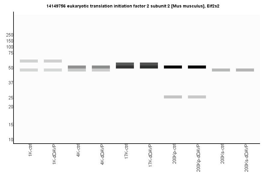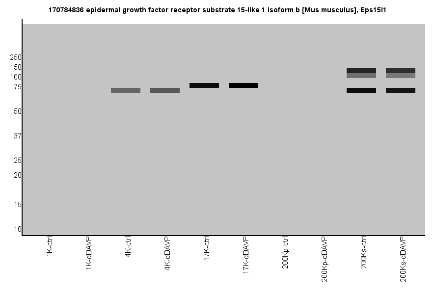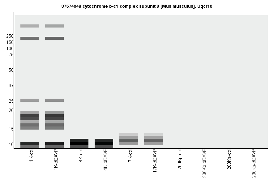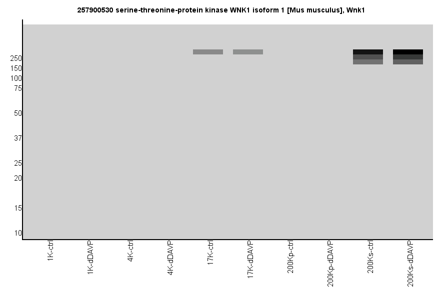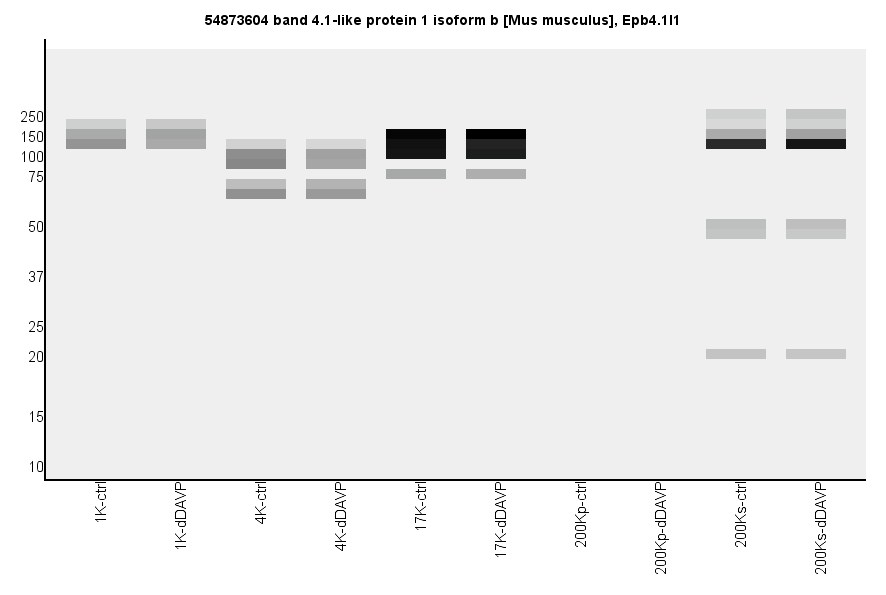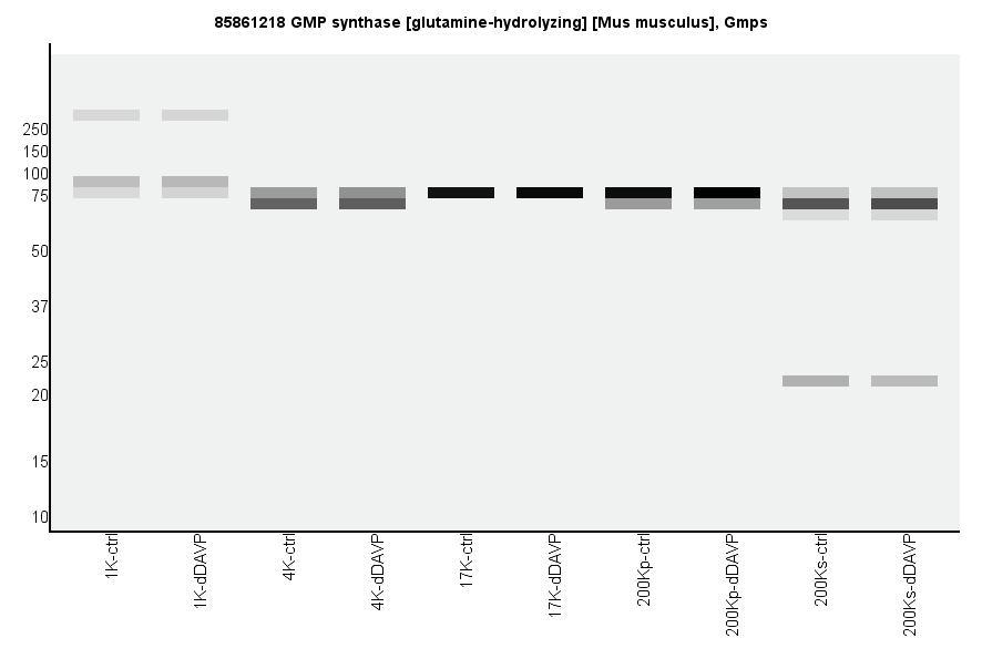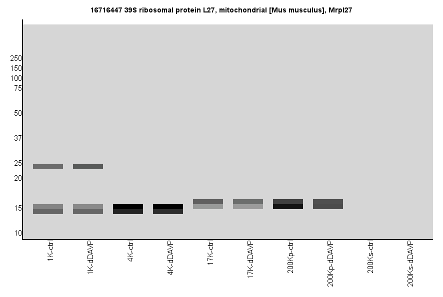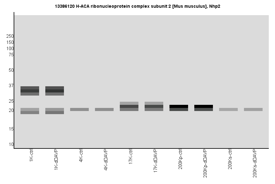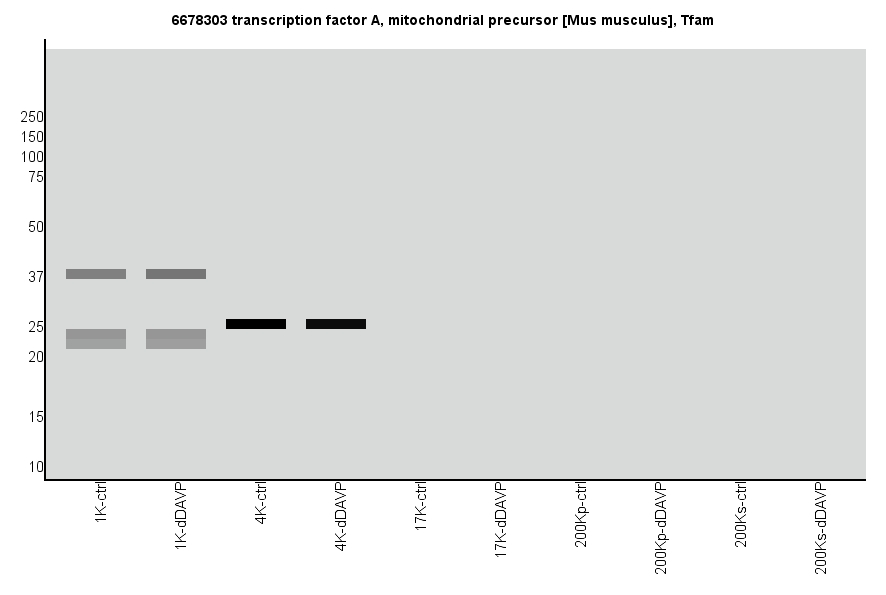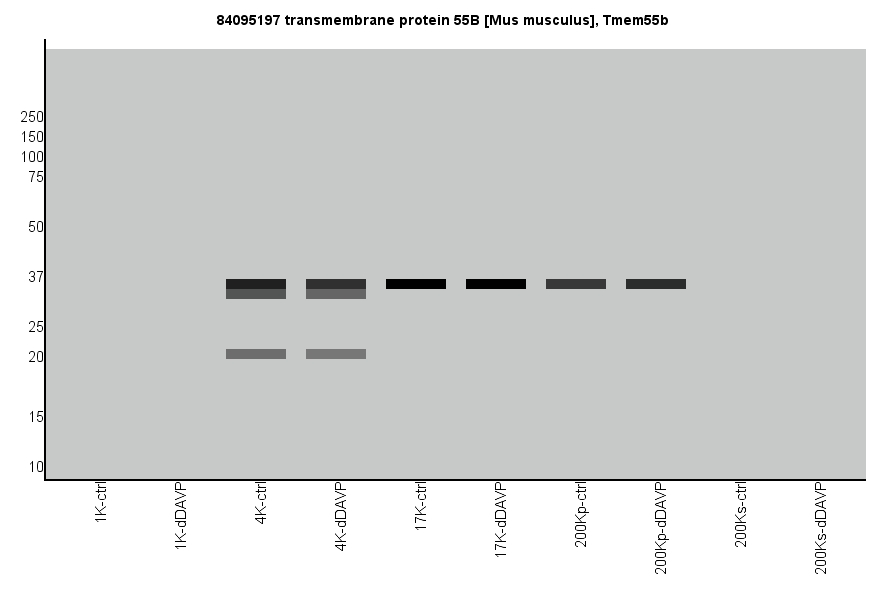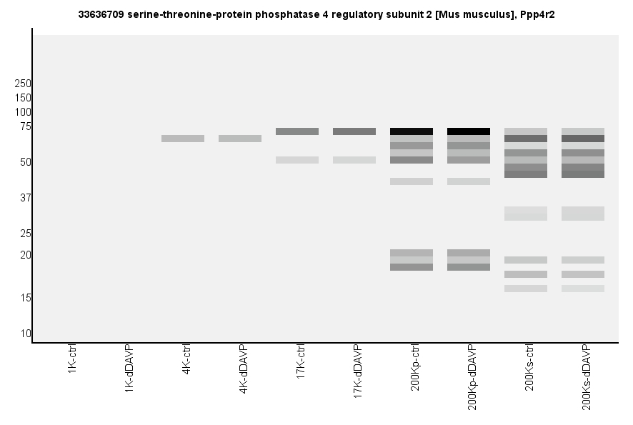 The virtual western blot images show data normalized using a logarithmic conversion scale to map peptide intensities to gray-scale levels. Using this conversion method, low-abundance peptides are generally visible in the blot images. Switch back to the default linear conversion scale database page.