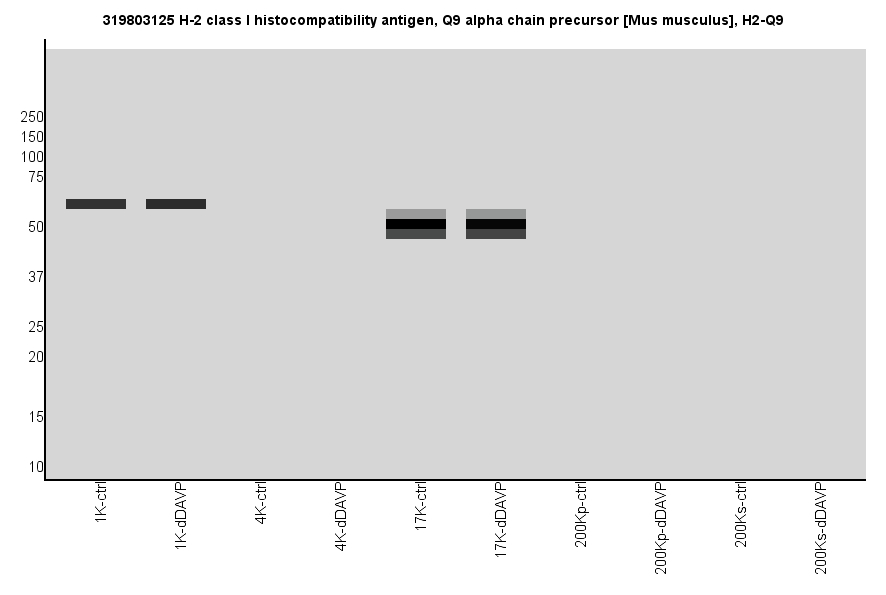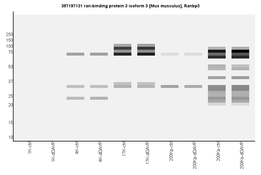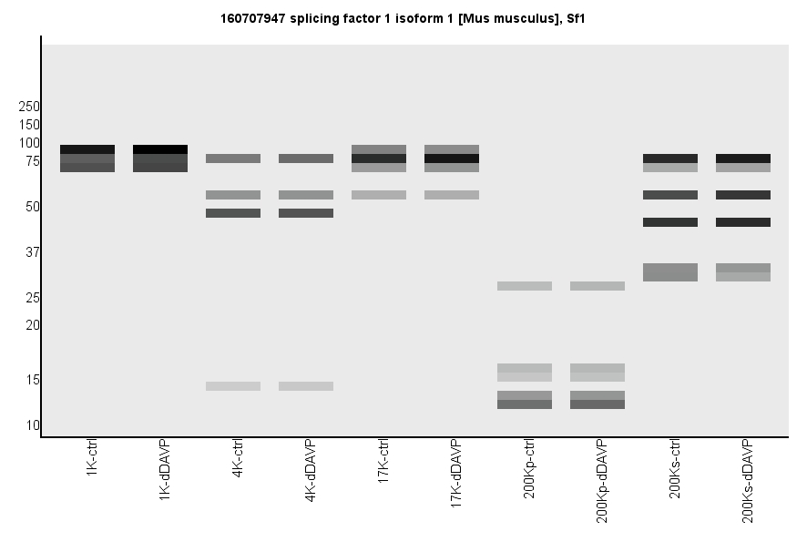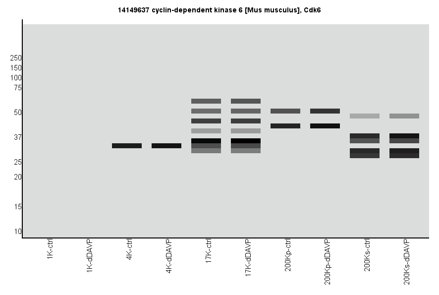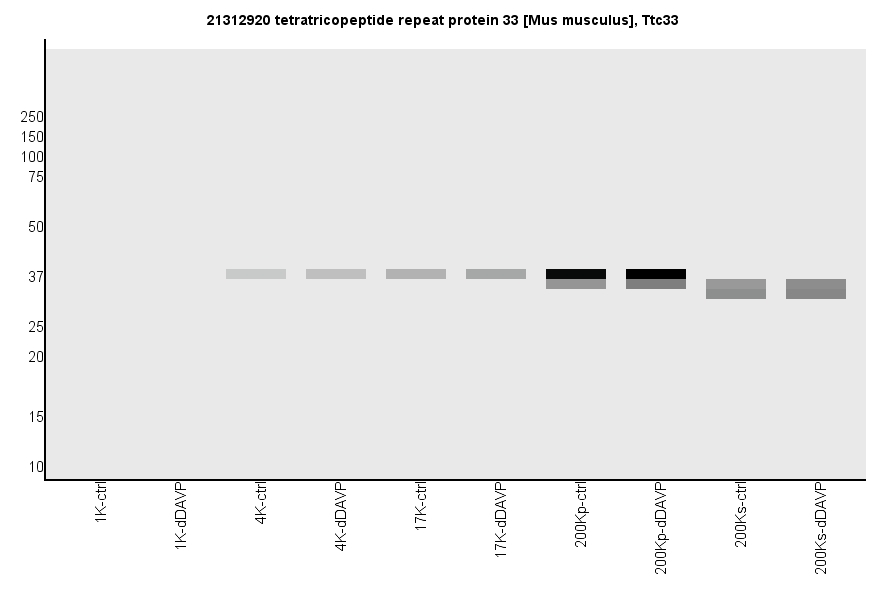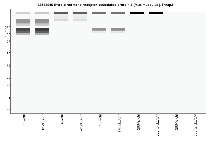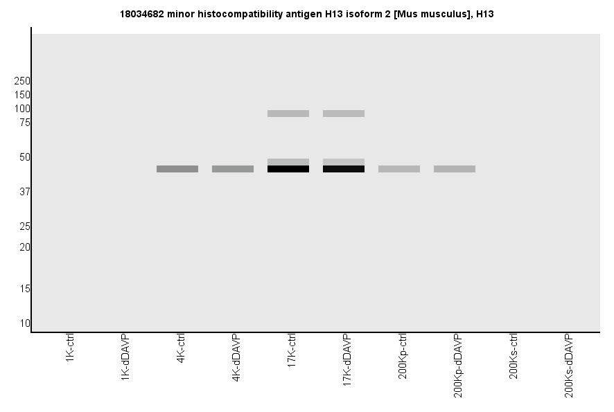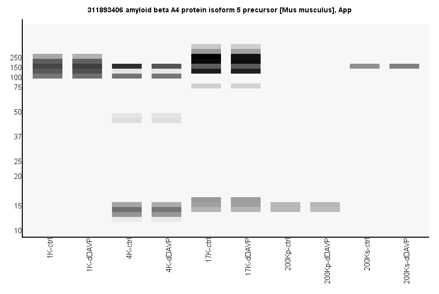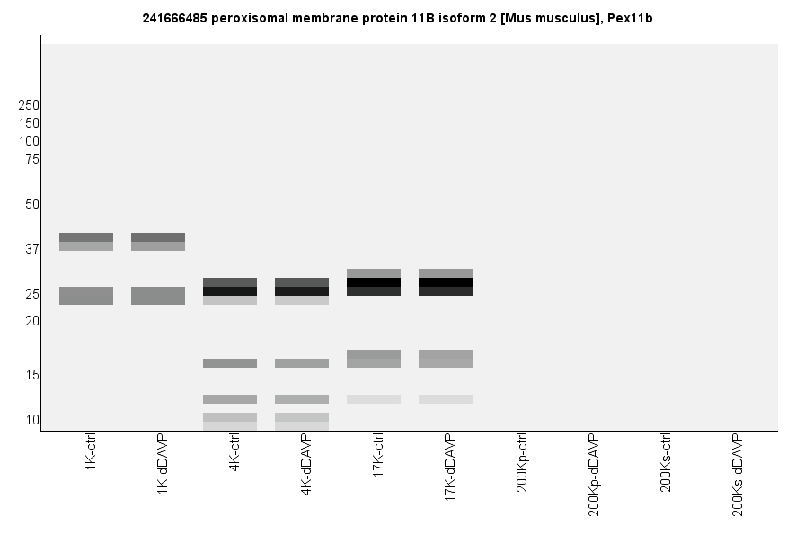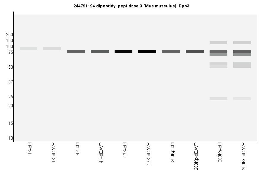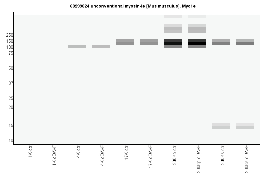 The virtual western blot images show data normalized using a logarithmic conversion scale to map peptide intensities to gray-scale levels. Using this conversion method, low-abundance peptides are generally visible in the blot images. Switch back to the default linear conversion scale database page.