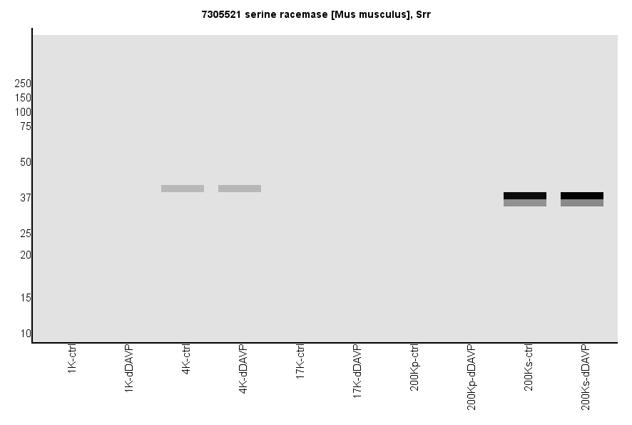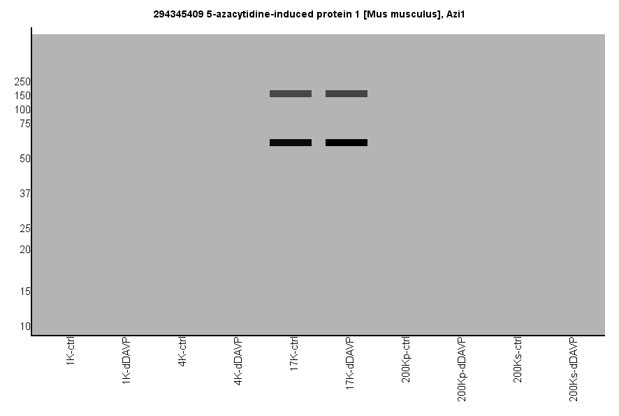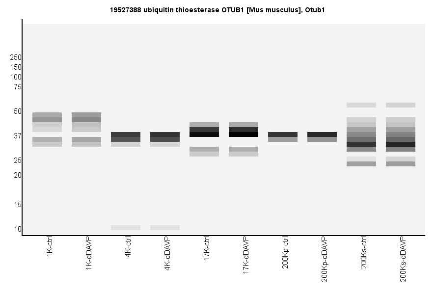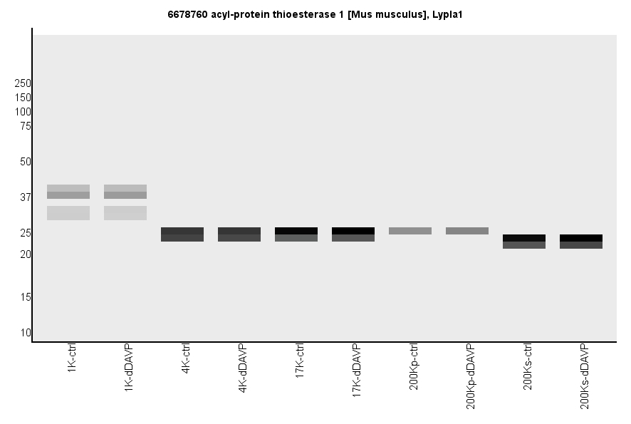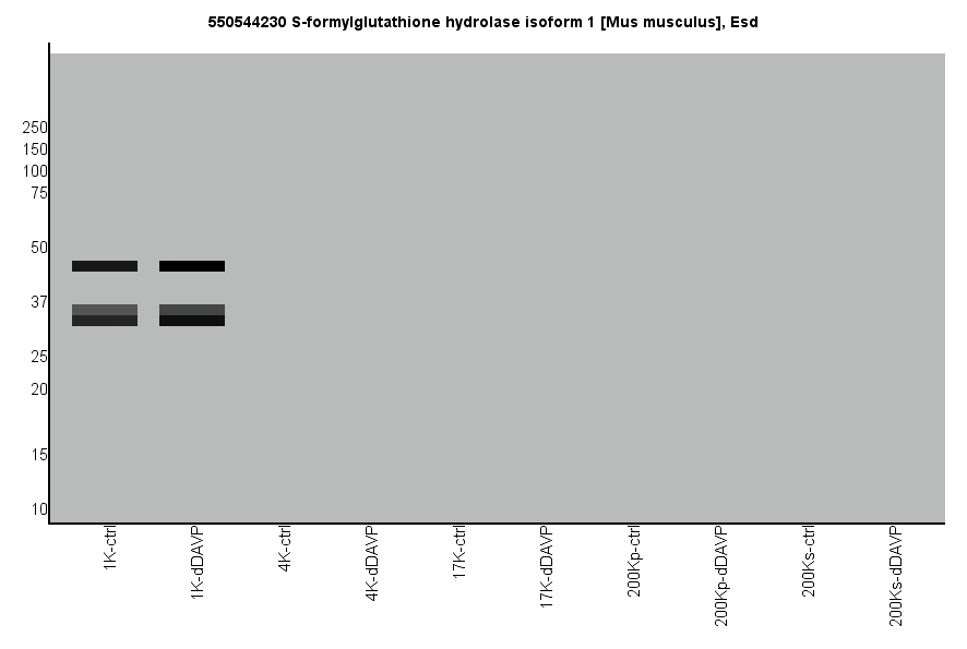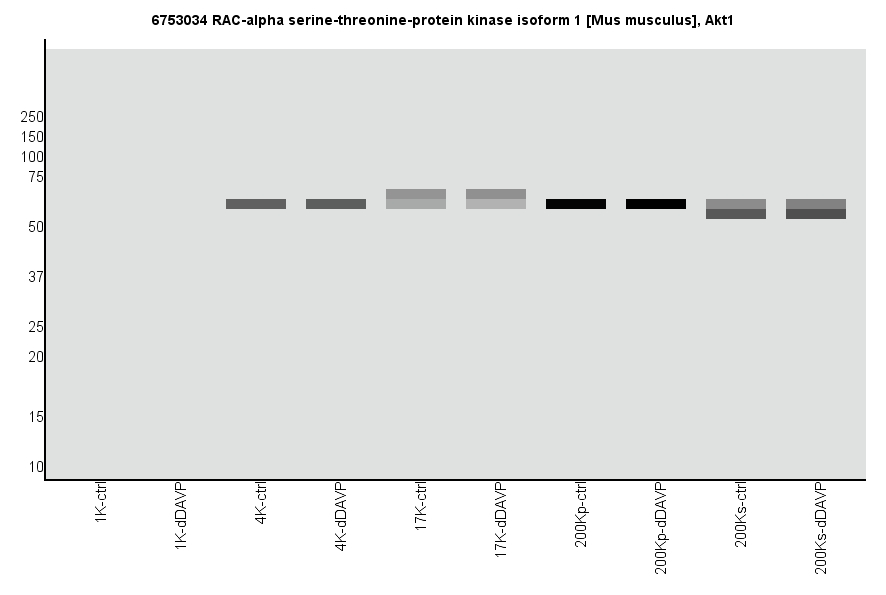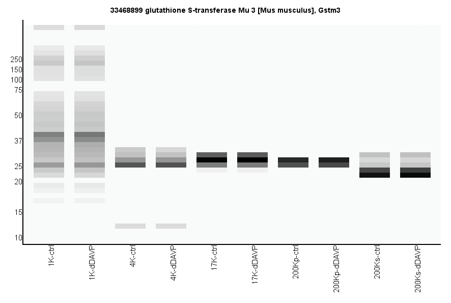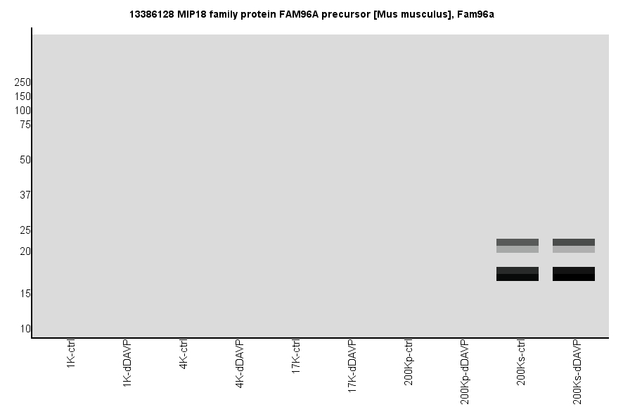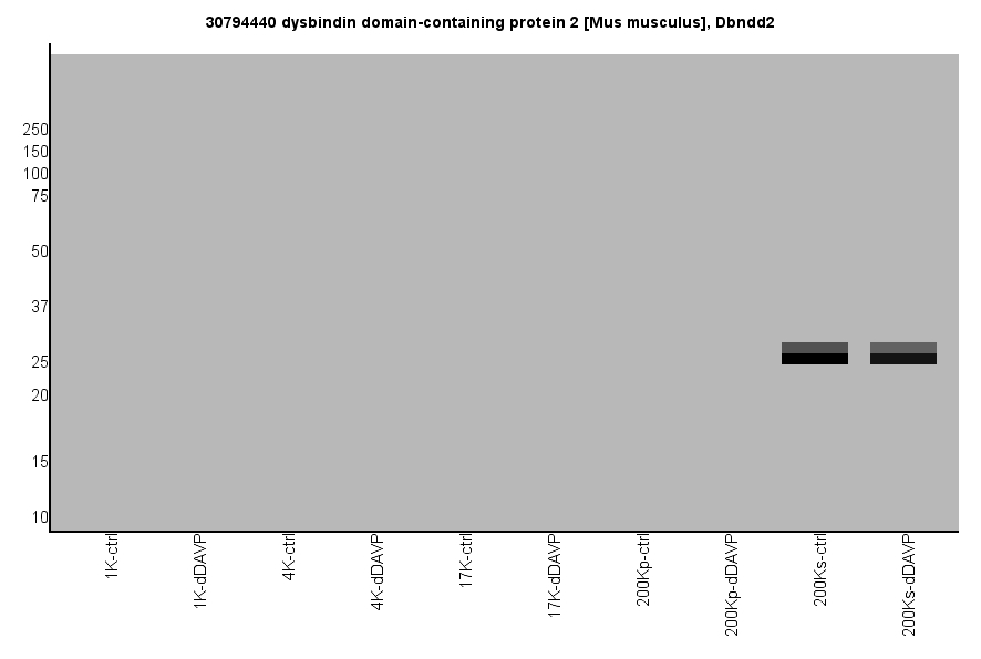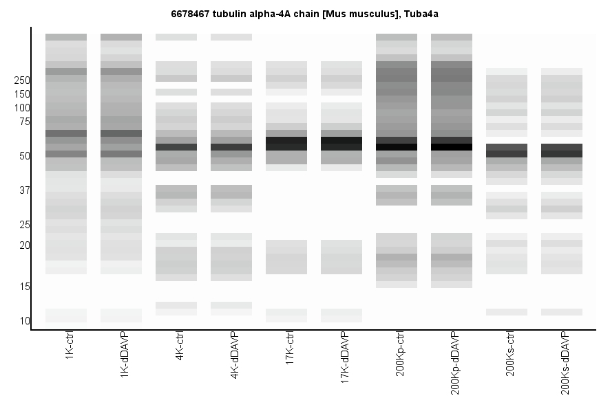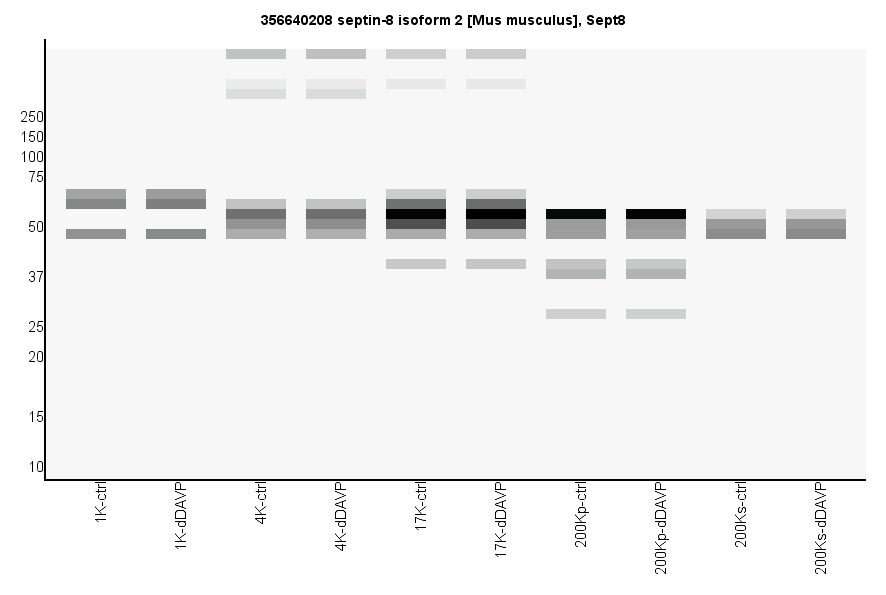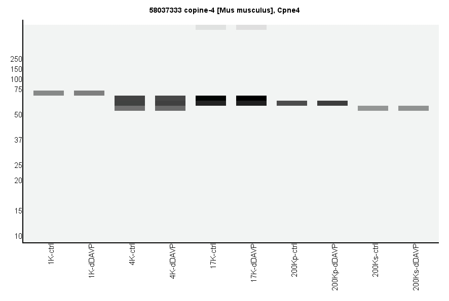 The virtual western blot images show data normalized using a logarithmic conversion scale to map peptide intensities to gray-scale levels. Using this conversion method, low-abundance peptides are generally visible in the blot images. Switch back to the default linear conversion scale database page.