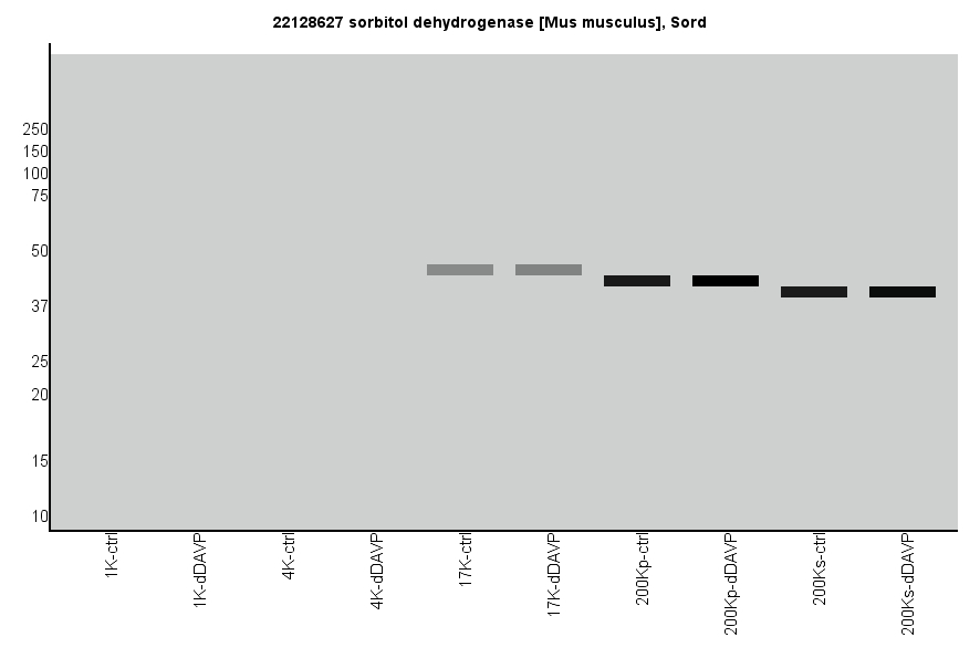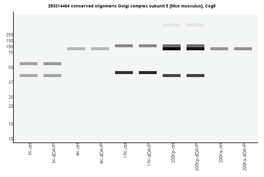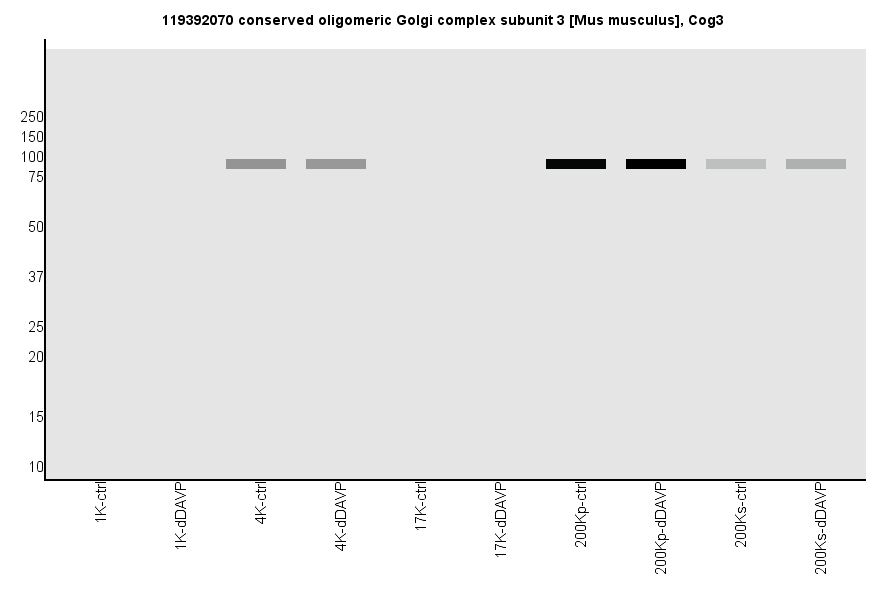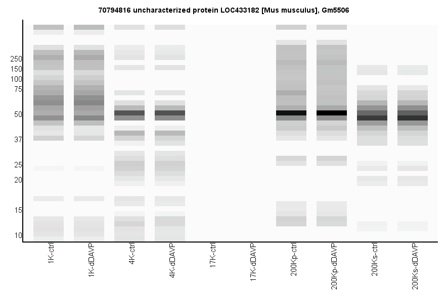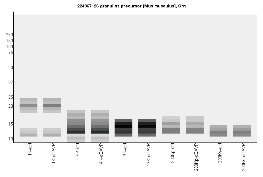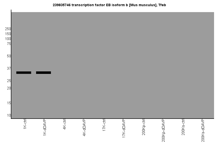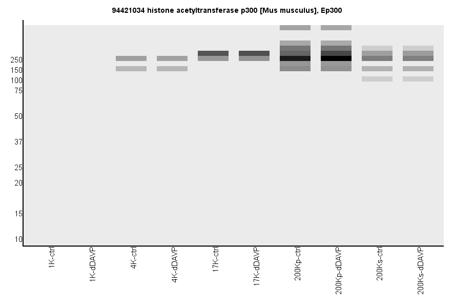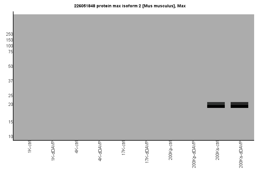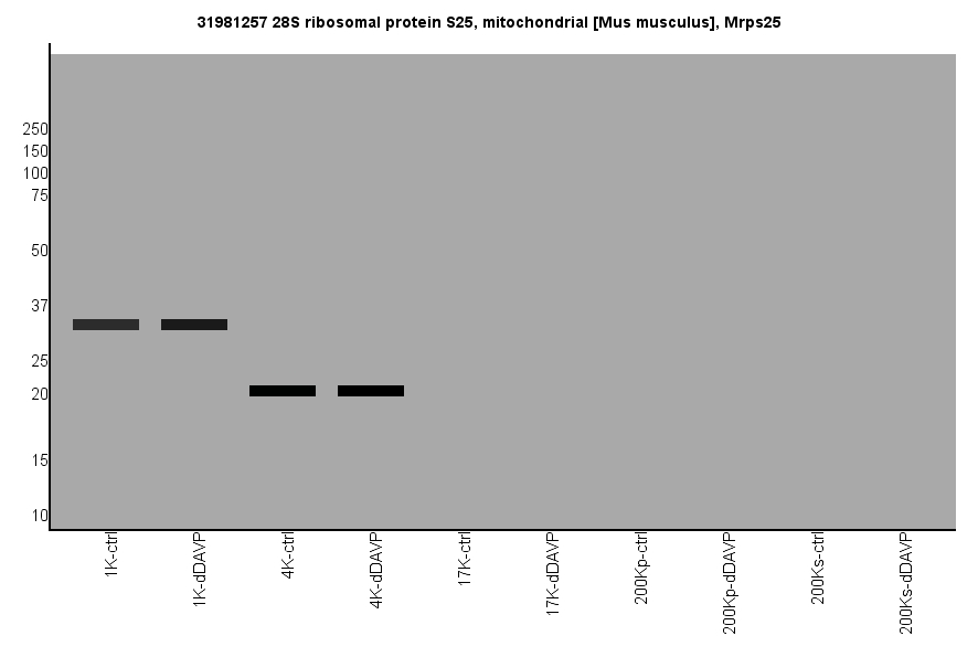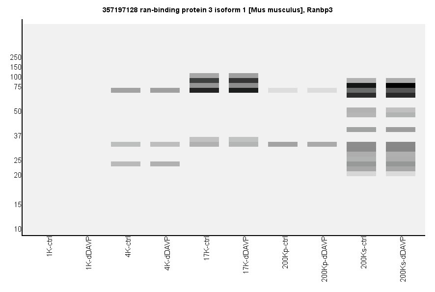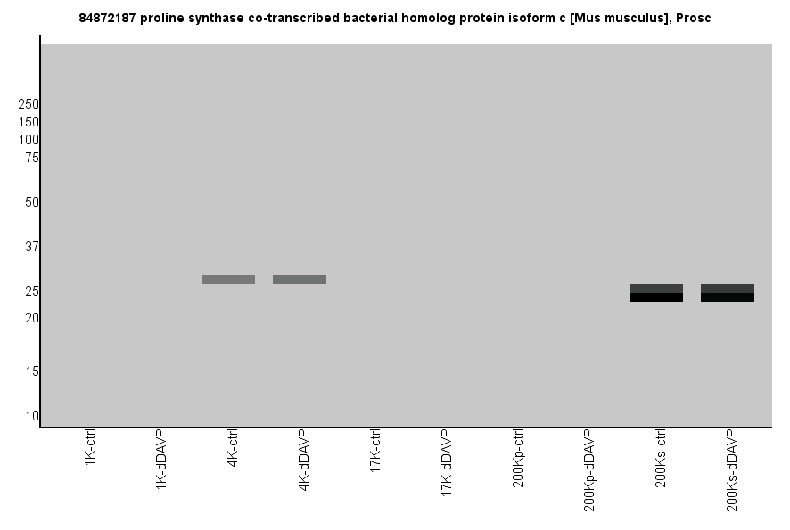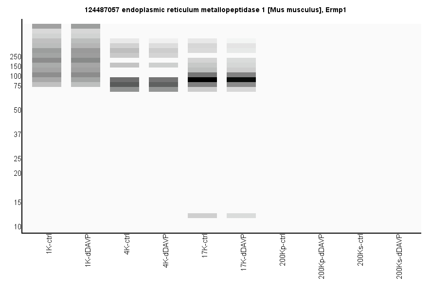 The virtual western blot images show data normalized using a logarithmic conversion scale to map peptide intensities to gray-scale levels. Using this conversion method, low-abundance peptides are generally visible in the blot images. Switch back to the default linear conversion scale database page.