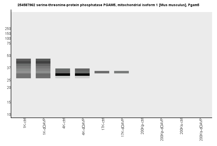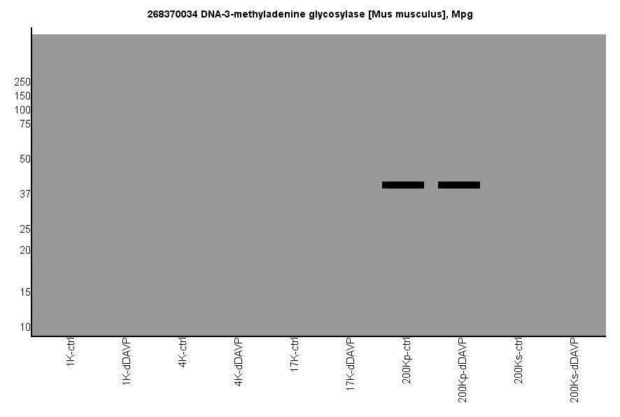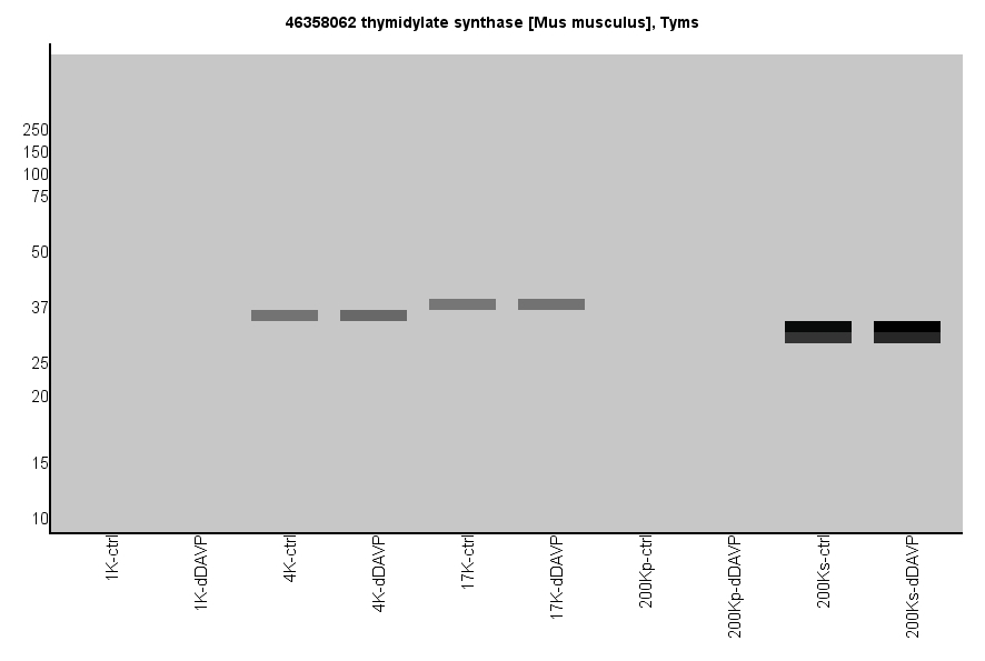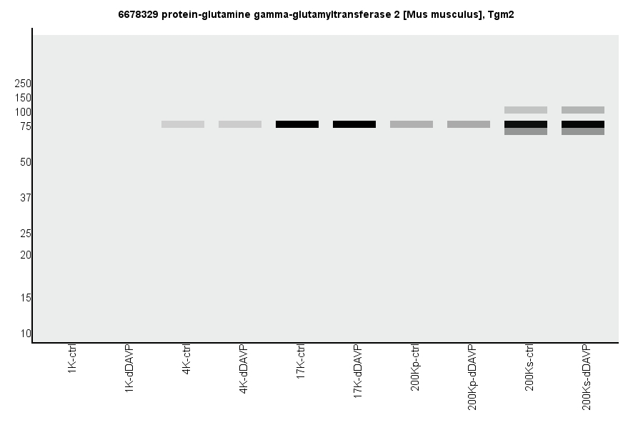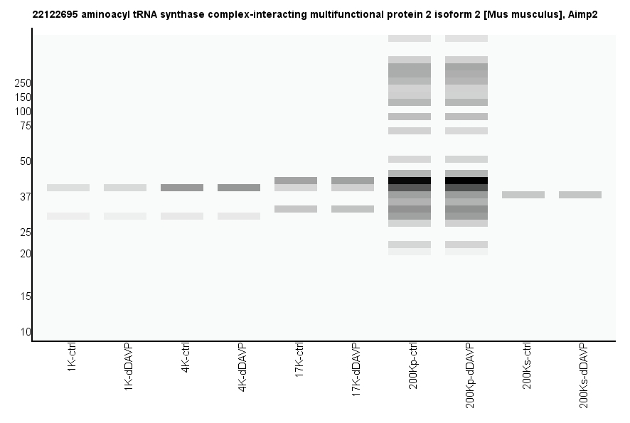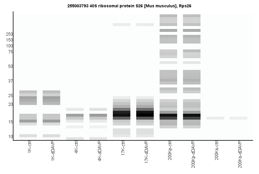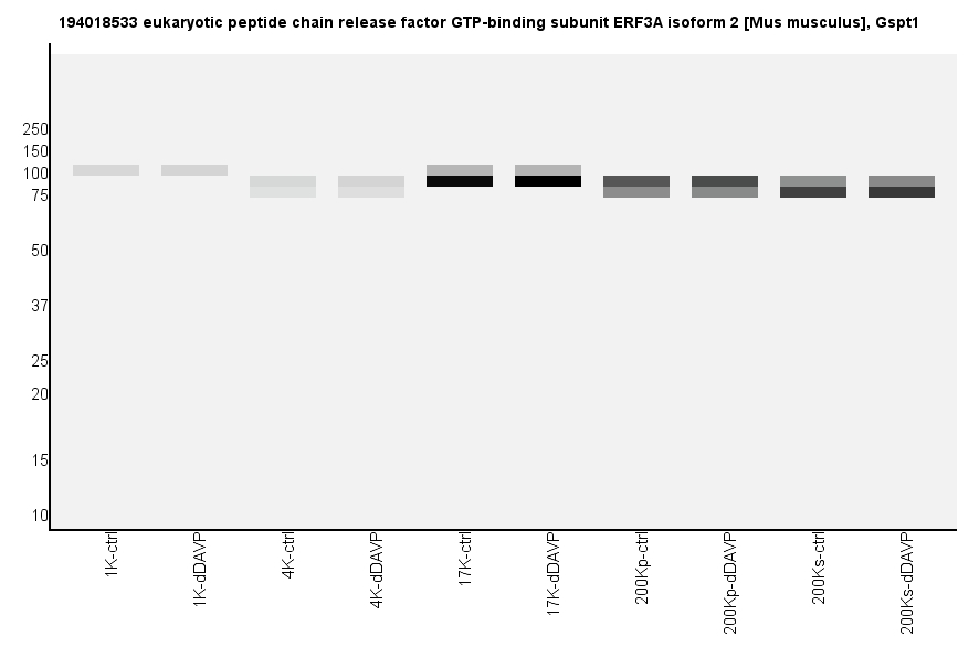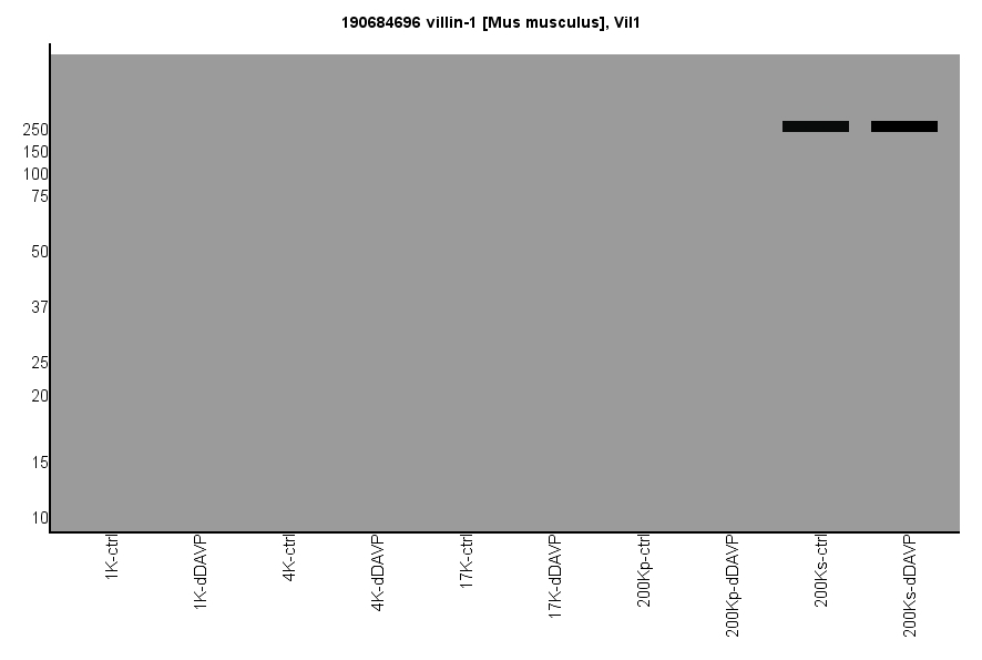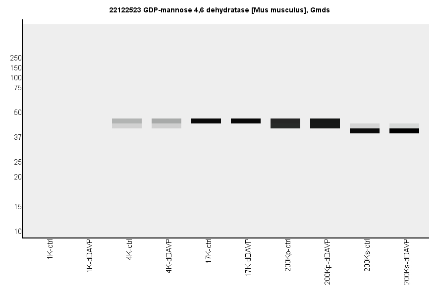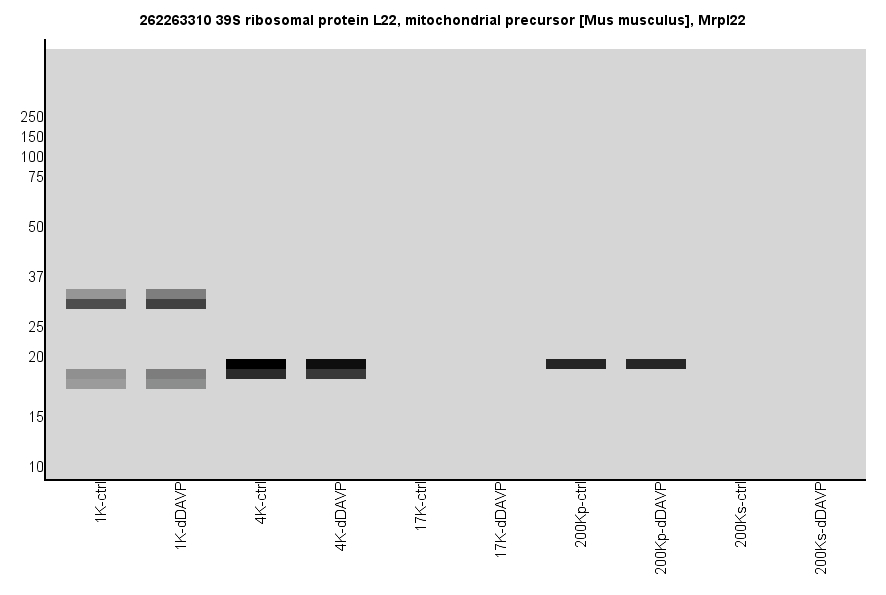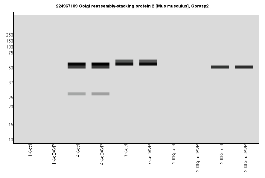 The virtual western blot images show data normalized using a logarithmic conversion scale to map peptide intensities to gray-scale levels. Using this conversion method, low-abundance peptides are generally visible in the blot images. Switch back to the default linear conversion scale database page.