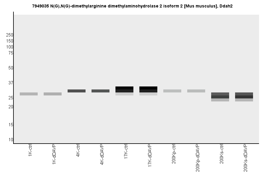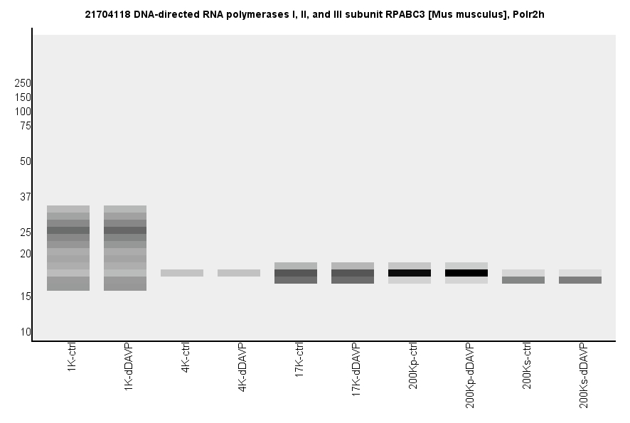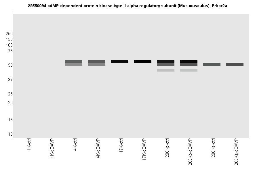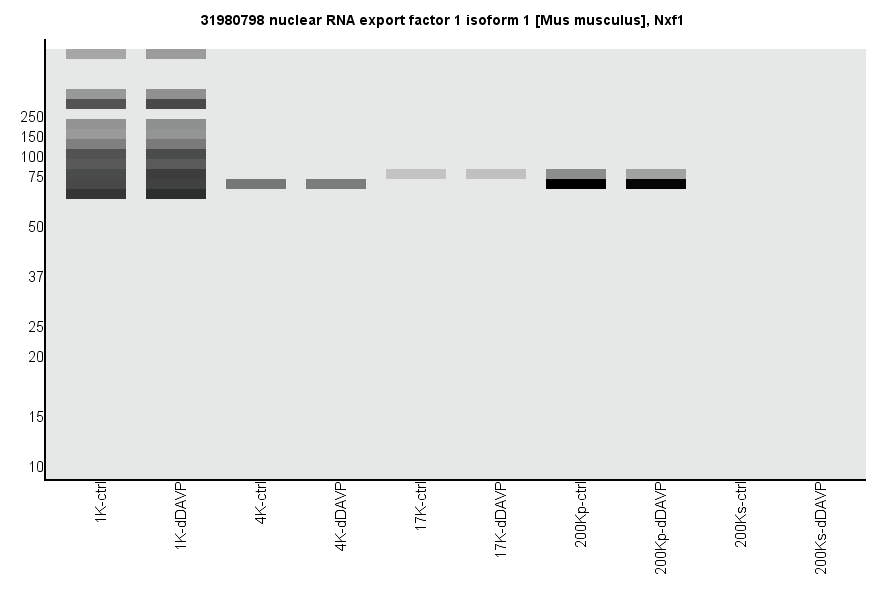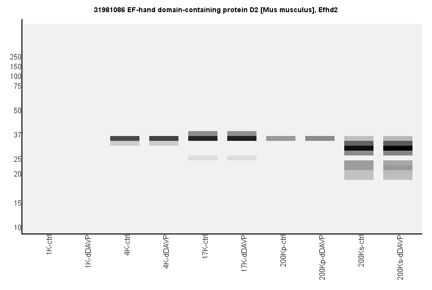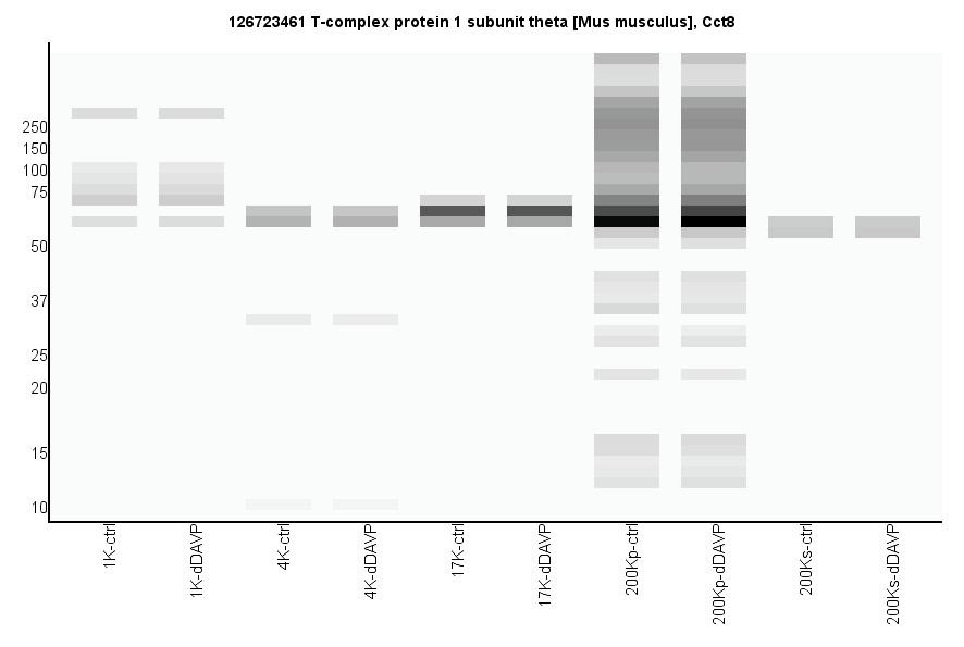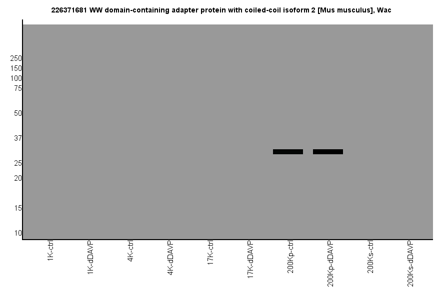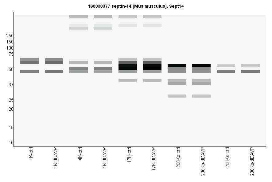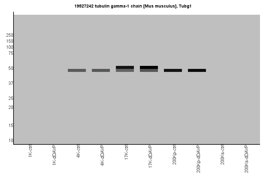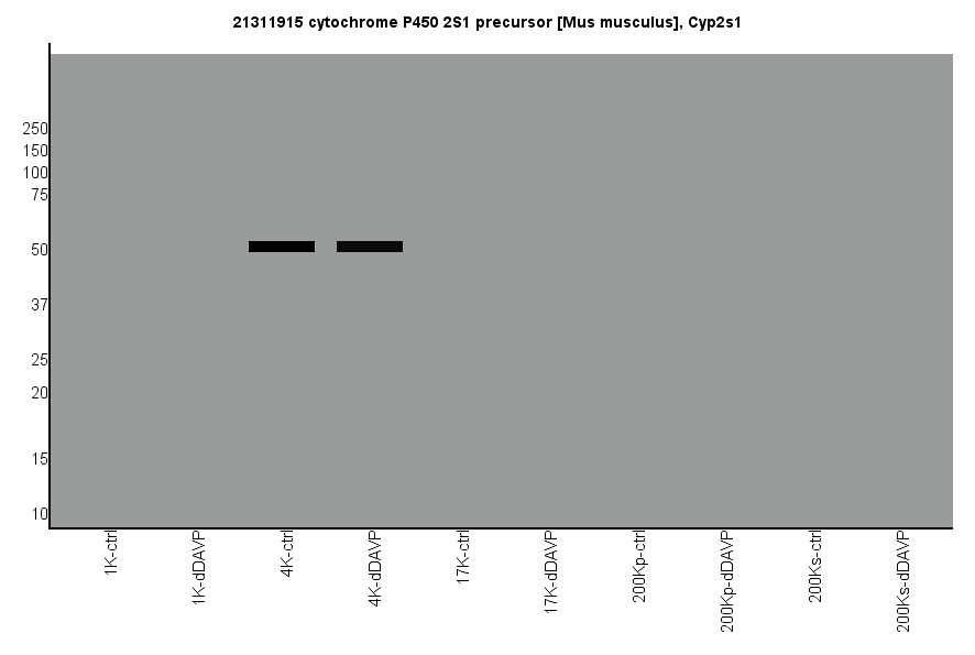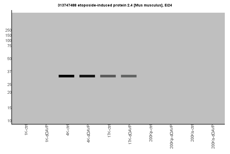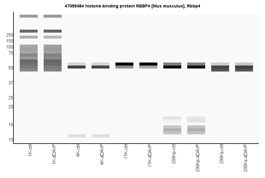 The virtual western blot images show data normalized using a logarithmic conversion scale to map peptide intensities to gray-scale levels. Using this conversion method, low-abundance peptides are generally visible in the blot images. Switch back to the default linear conversion scale database page.