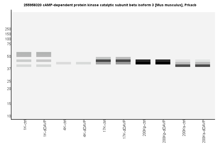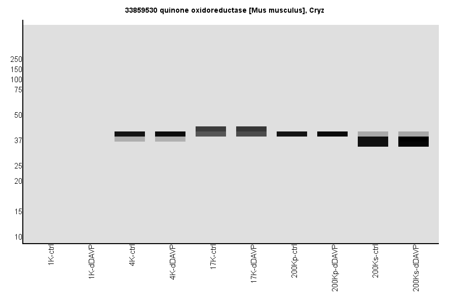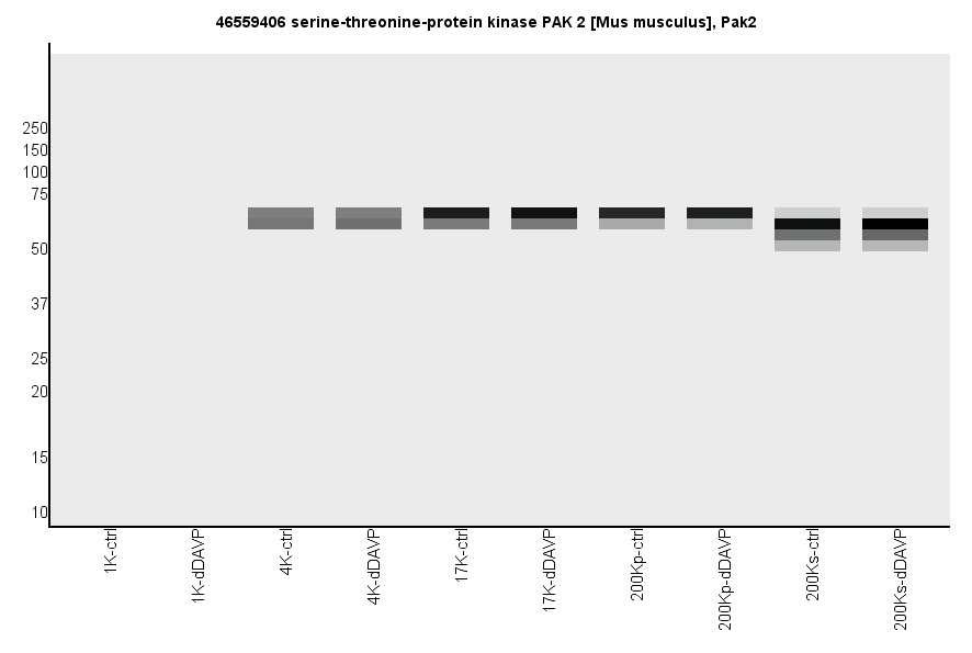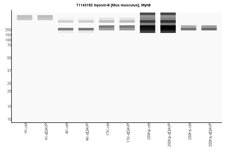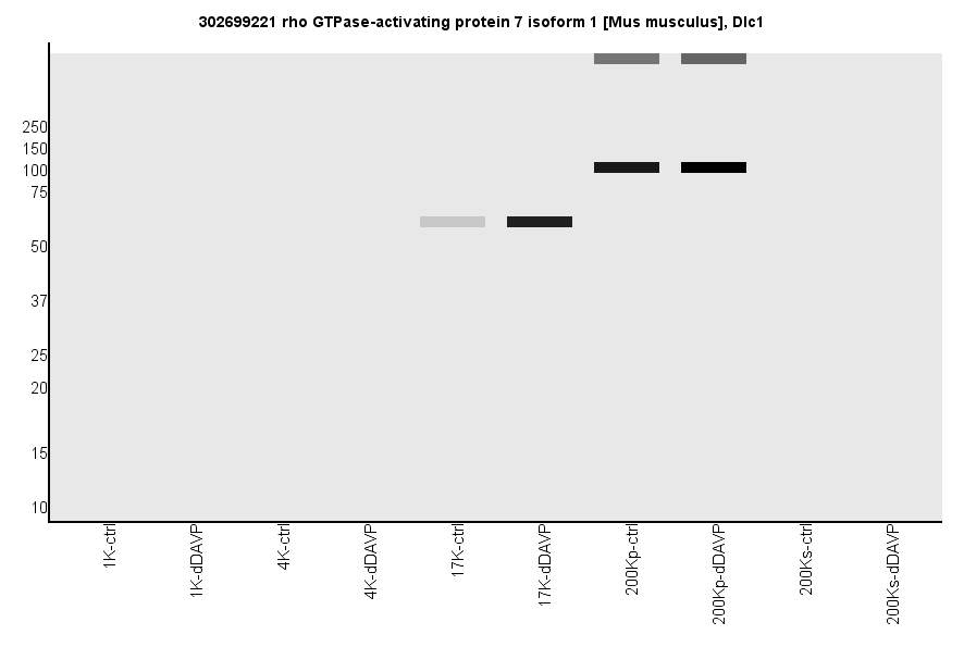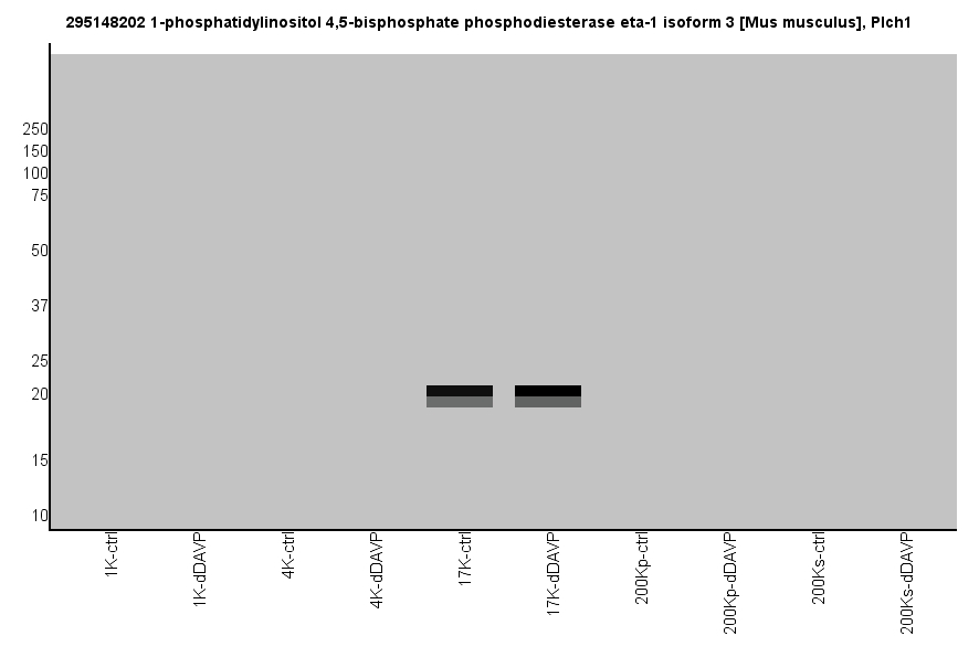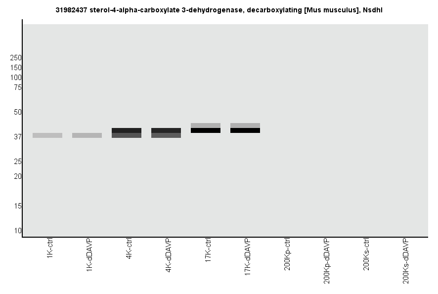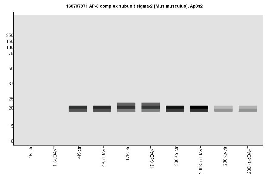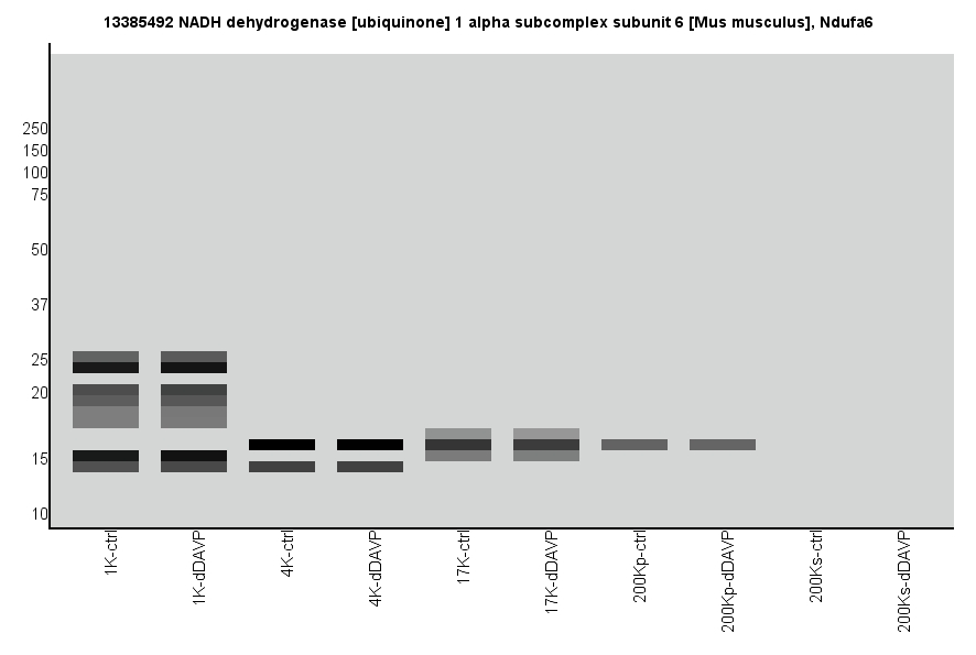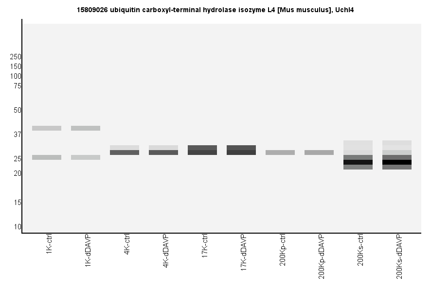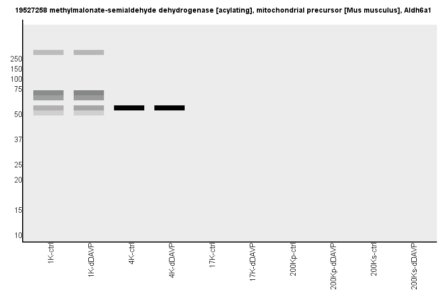 The virtual western blot images show data normalized using a logarithmic conversion scale to map peptide intensities to gray-scale levels. Using this conversion method, low-abundance peptides are generally visible in the blot images. Switch back to the default linear conversion scale database page.
