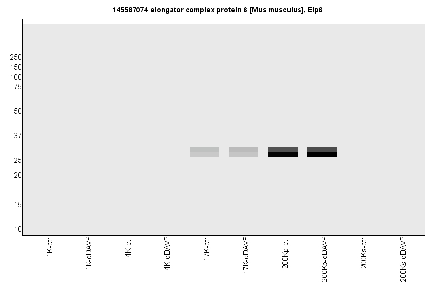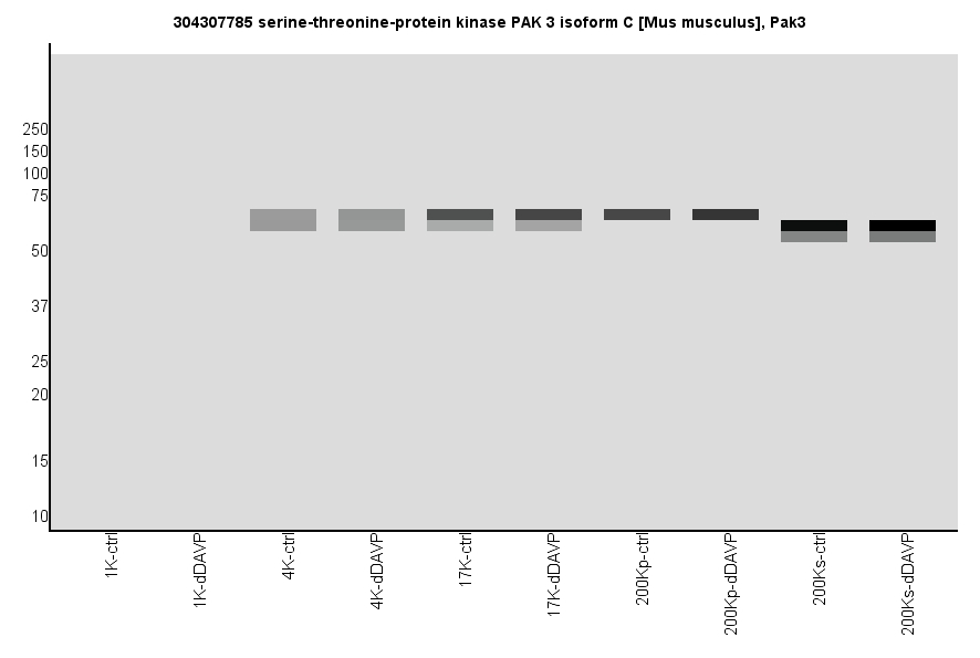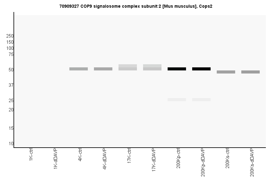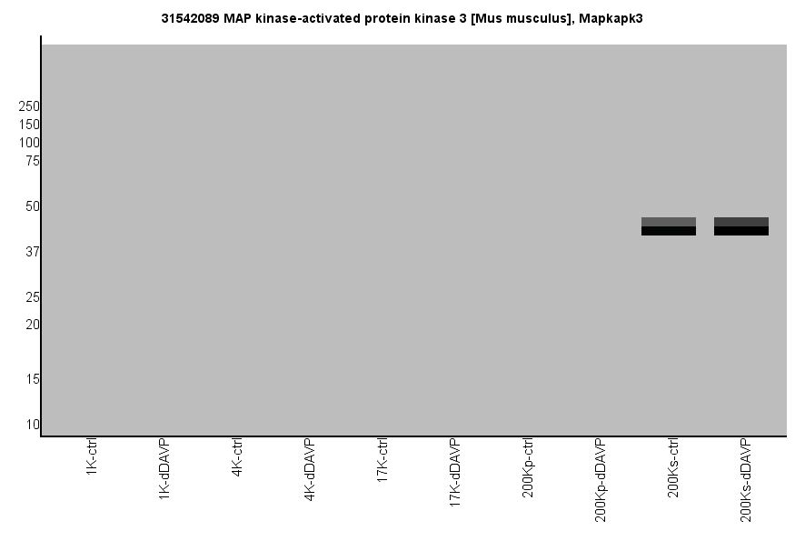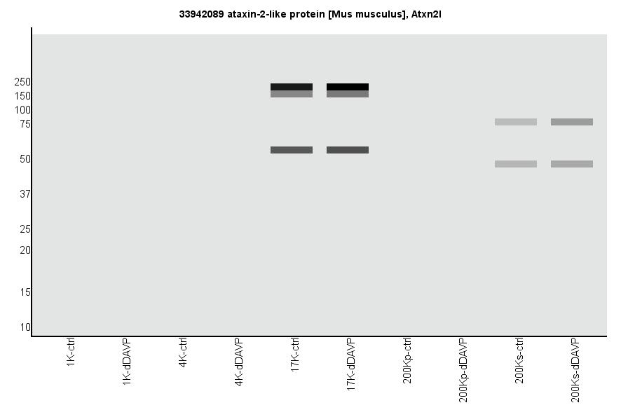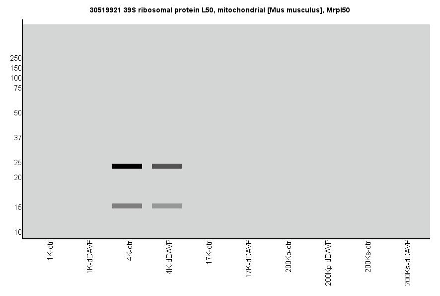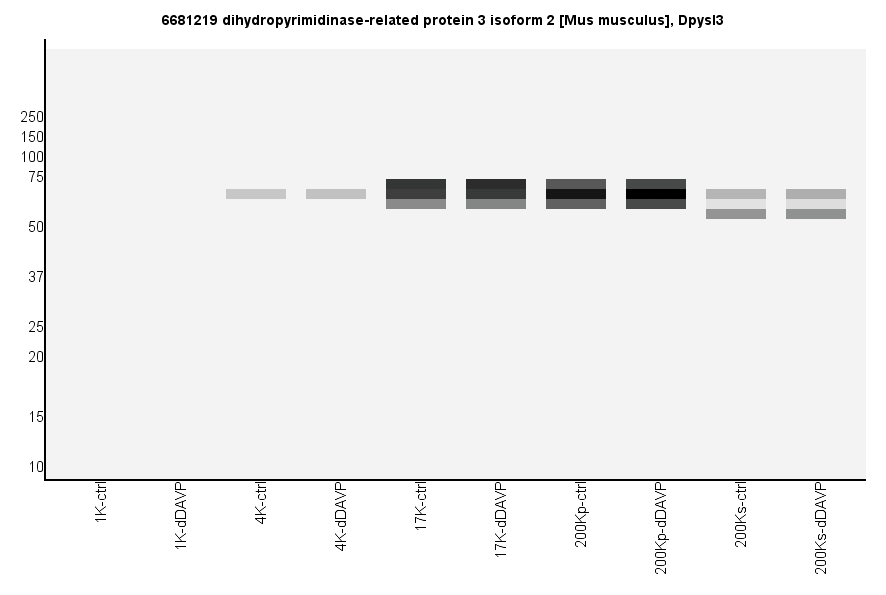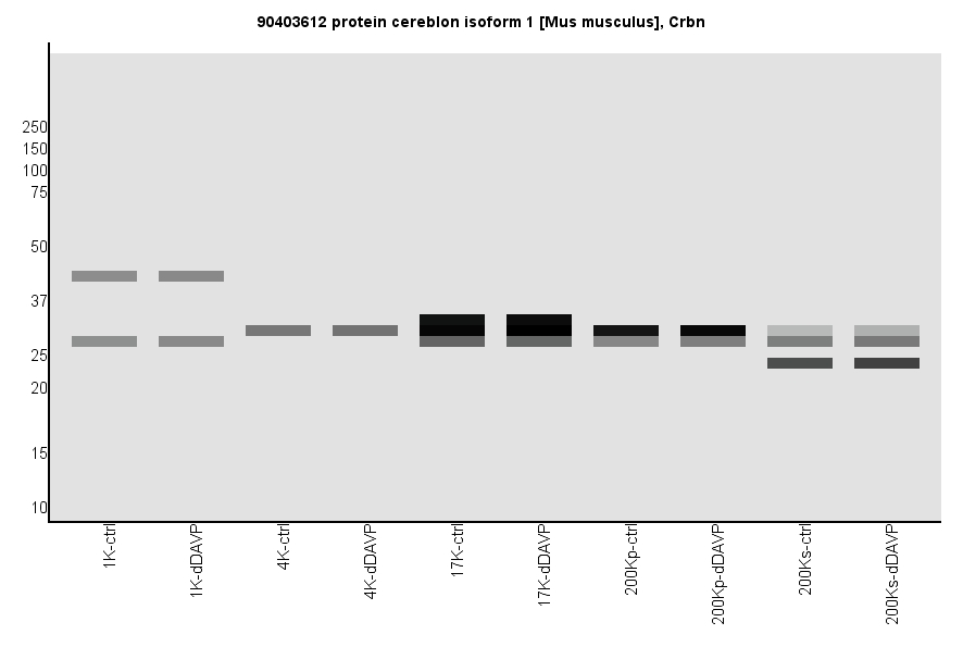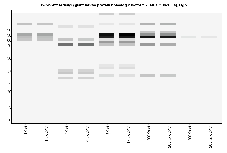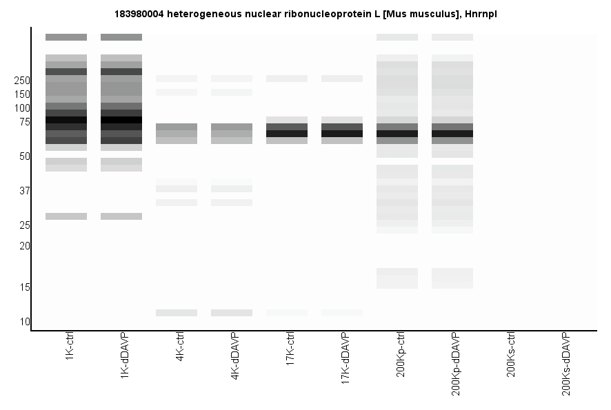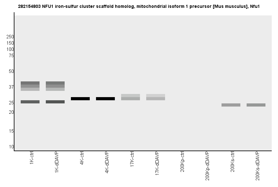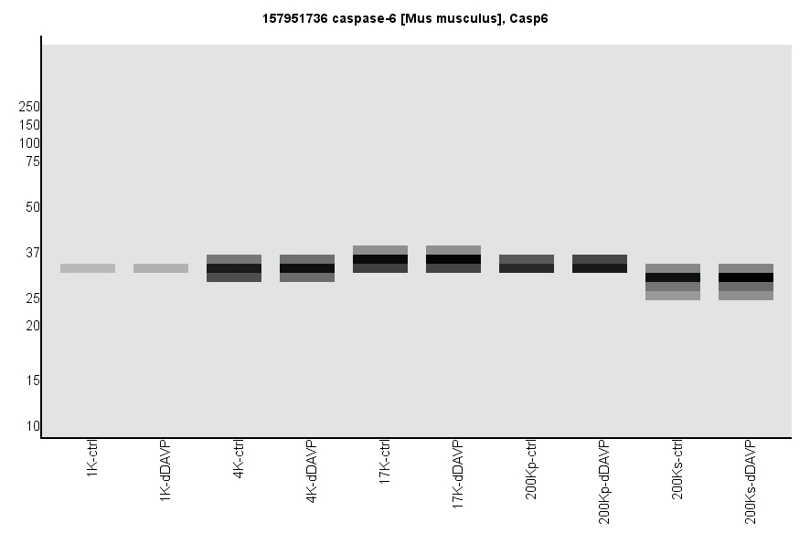 The virtual western blot images show data normalized using a logarithmic conversion scale to map peptide intensities to gray-scale levels. Using this conversion method, low-abundance peptides are generally visible in the blot images. Switch back to the default linear conversion scale database page.