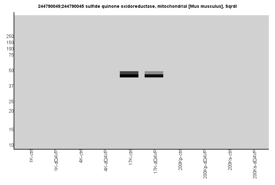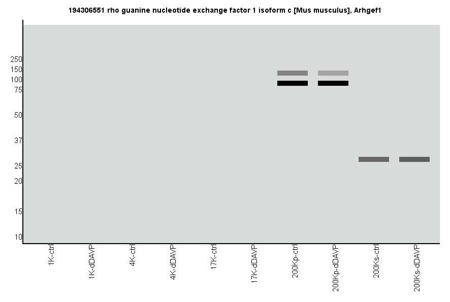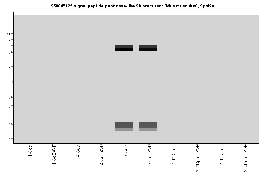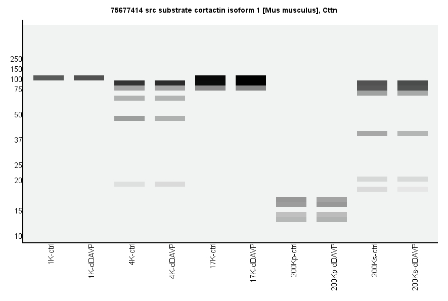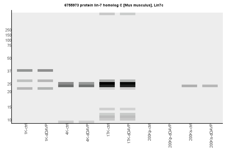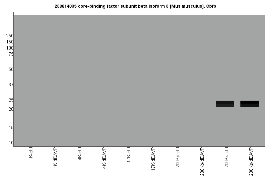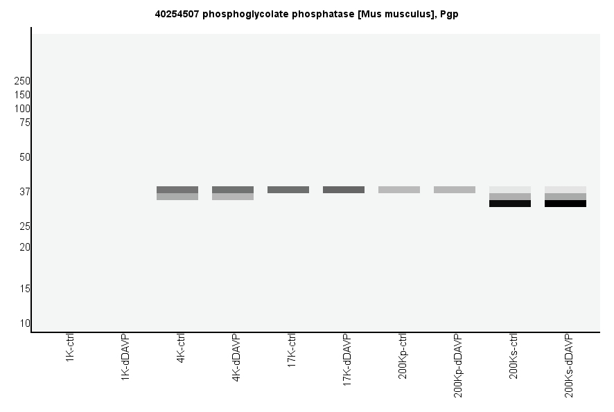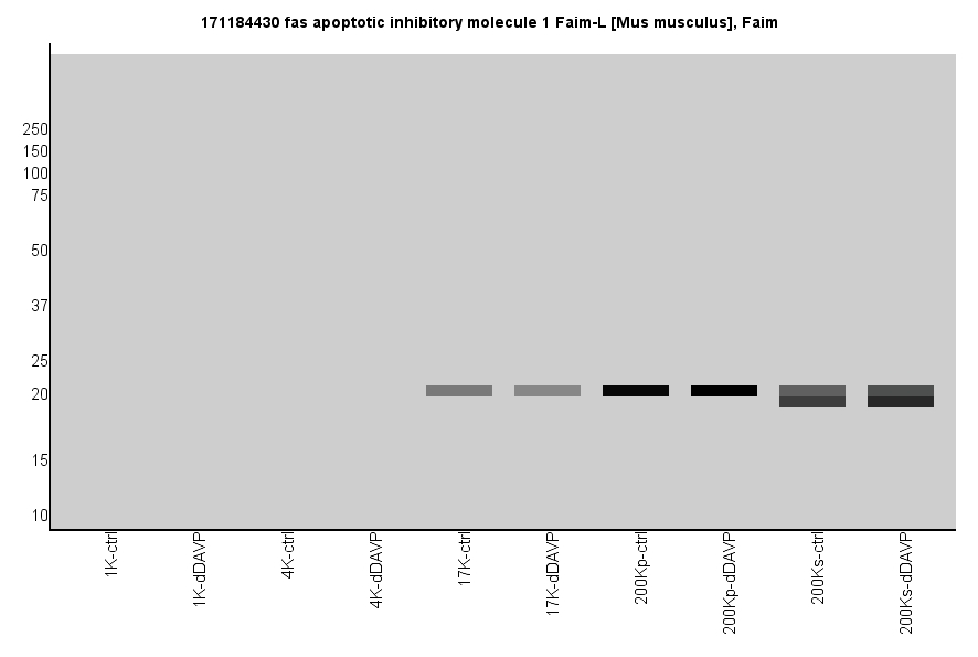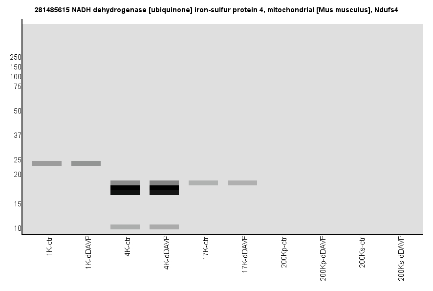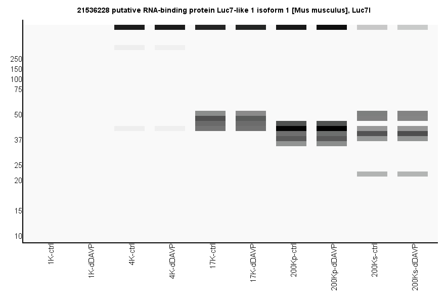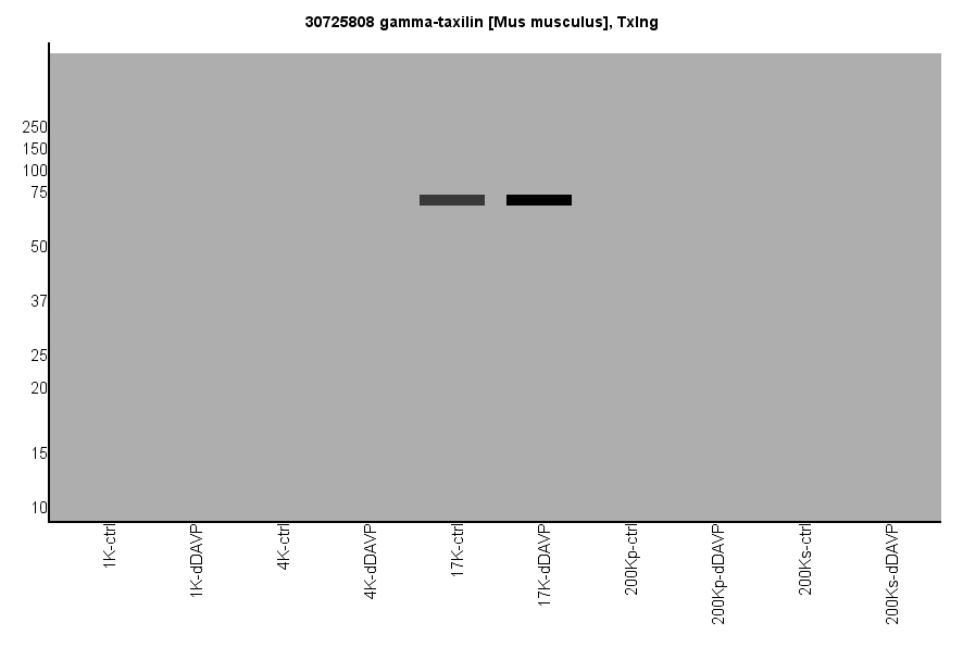 The virtual western blot images show data normalized using a logarithmic conversion scale to map peptide intensities to gray-scale levels. Using this conversion method, low-abundance peptides are generally visible in the blot images. Switch back to the default linear conversion scale database page.