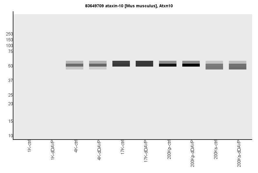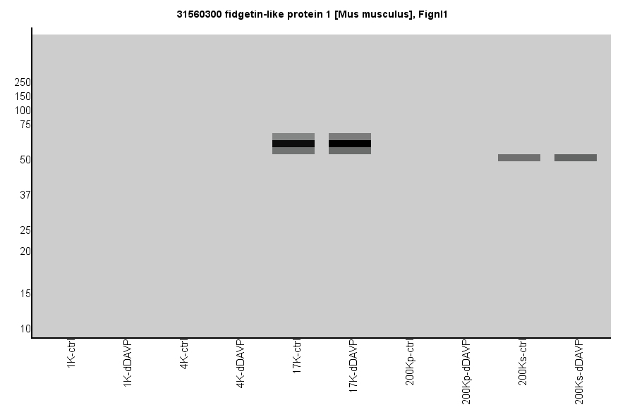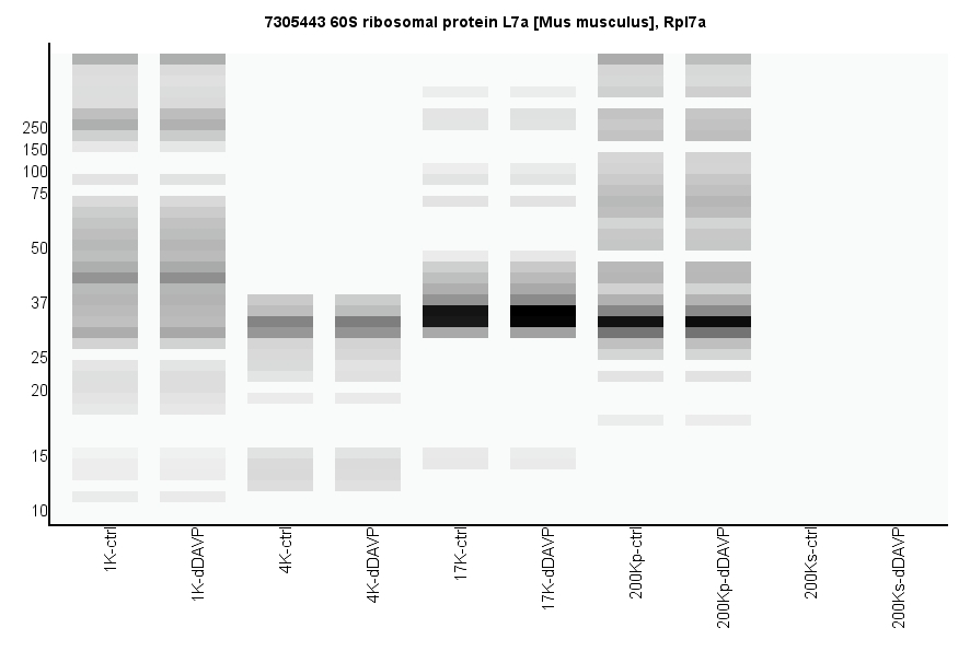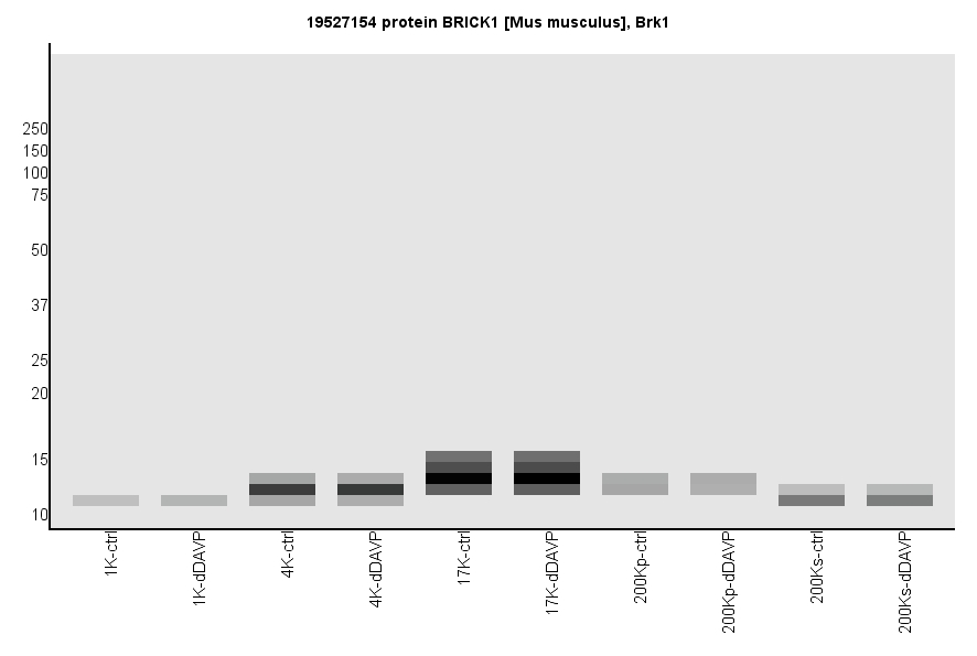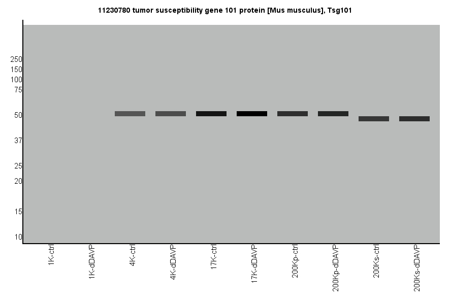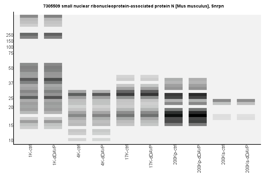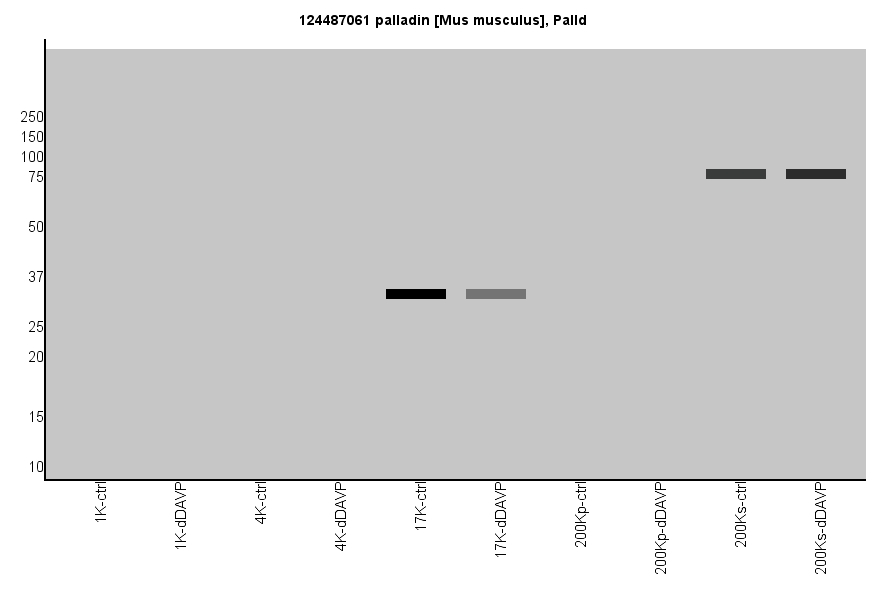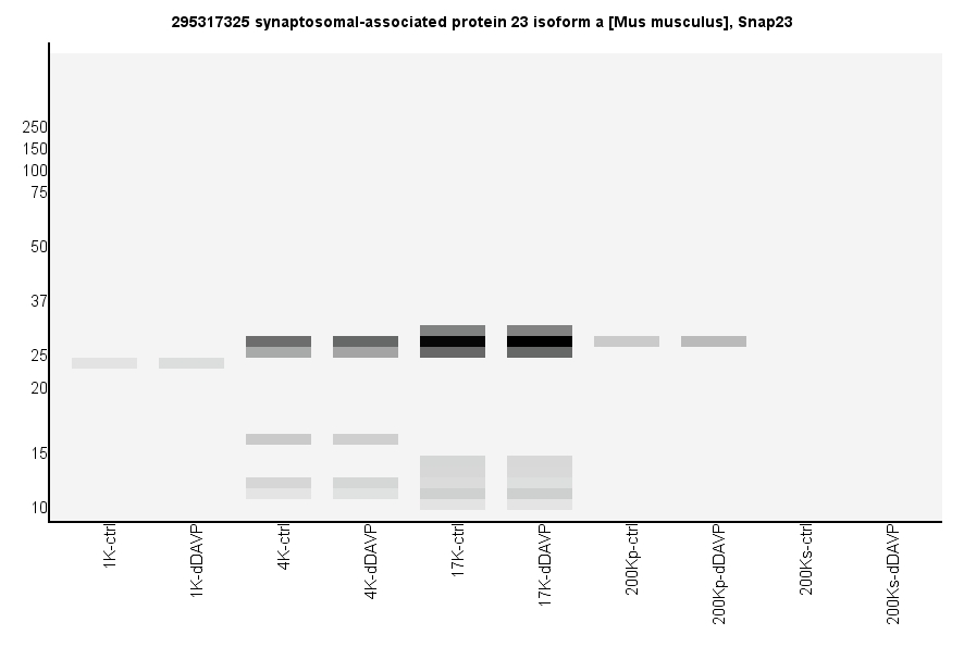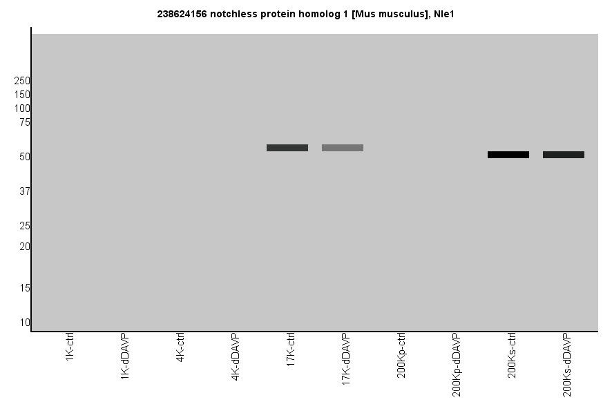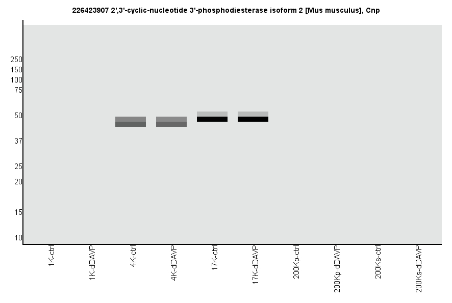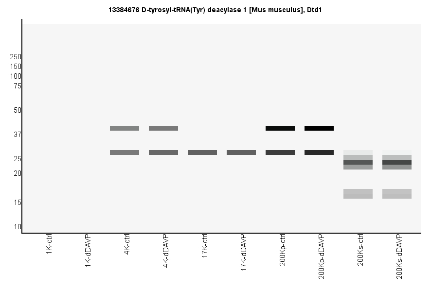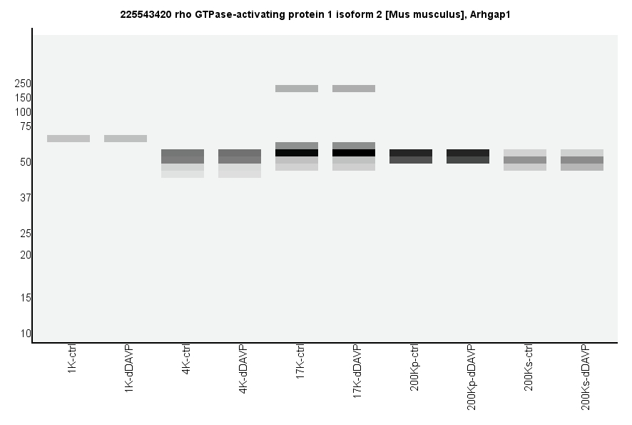 The virtual western blot images show data normalized using a logarithmic conversion scale to map peptide intensities to gray-scale levels. Using this conversion method, low-abundance peptides are generally visible in the blot images. Switch back to the default linear conversion scale database page.