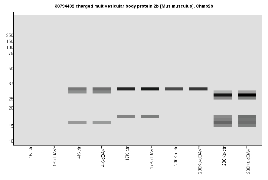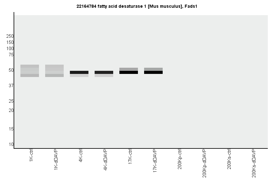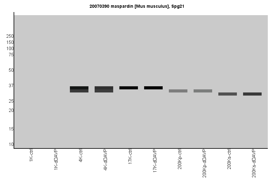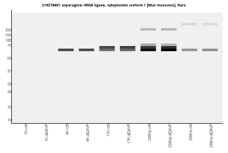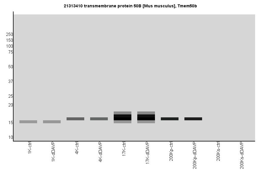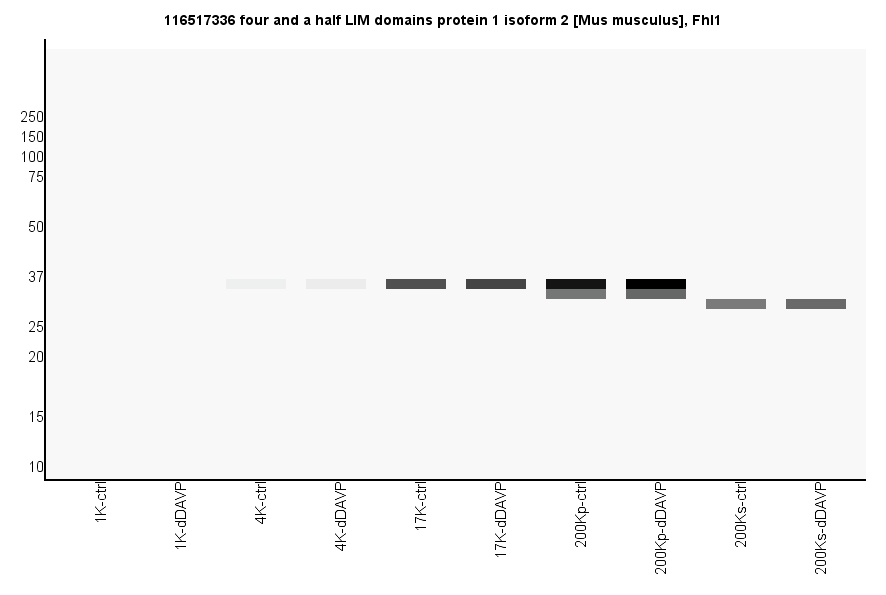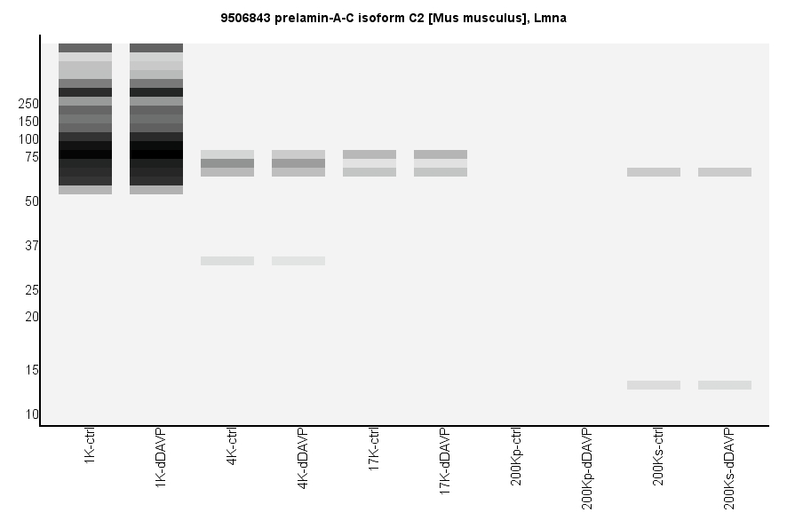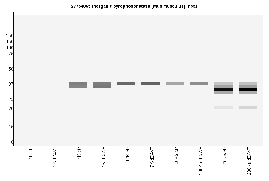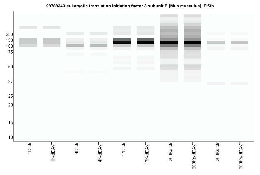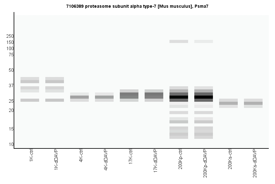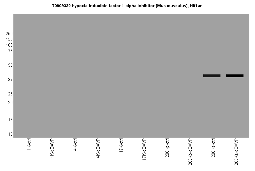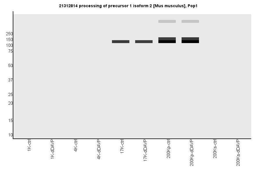The virtual western blot images show data normalized using a logarithmic conversion scale to map peptide intensities to gray-scale levels. Using this conversion method, low-abundance peptides are generally visible in the blot images. Switch back to the default linear conversion scale database page.